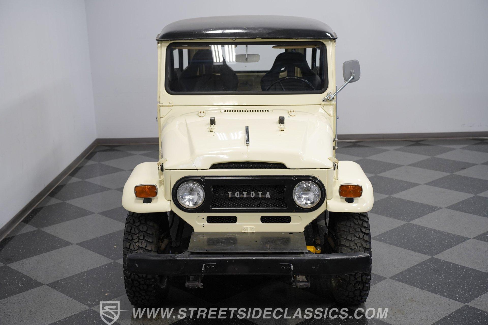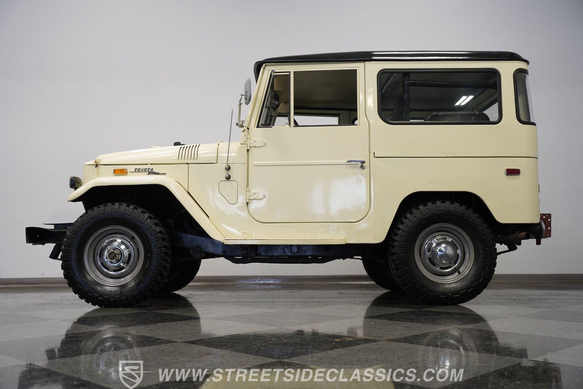 1970 Toyota Land Cruiser For Sale Owning a classic is about more than just transportation-it's about the stories you'll tell and the memories you'll make. With every turn of the key, this vehicle captures the spirit of adventure and a bygone era where the journey was just as important as the destination. Whether you're dreaming of conquering mountain trails or simply turning heads at a local meet, this Land Cruiser is a symbol of rugged reliability and timeless style. Now is your chance to write the next chapter with this 1970 Toyota Land Cruiser-a true icon ready for its next adventure. Step inside to find a functional and purposeful interior designed for both durability and comfort. The newly upgraded vinyl bucket seats up front provide supportive seating, while the twin rear jump seats offer space for companions or gear. Rugged rubber flooring means easy clean-up after any excursion, and the classic gauge cluster keeps you connected to every aspect of your drive. The interior is clean and straightforward, reflecting the Land Cruiser's authentic character. Under the hood, you'll find a 4.2L inline-six engine paired with a robust manual transmission, delivering the dependable power these Land Cruisers are known for. Performance is enhanced by a Weber 2-barrel carburetor, a dual-battery setup for extra reliability, and modern hoses and clamps throughout. The upgraded radiator helps keep things cool on long journeys, while a chambered muffler adds a purposeful note to the exhaust. With Toyota axles front and rear and factory-style suspension, this Land Cruiser is ready for trails or city streets alike. Highlights 4.2L Inline Six Engine Manual Transmission With 1-4+R Gears Weber 2-Barrel Carburetor Upgrade Dual-Battery Configuration Modern Hoses And Clamps Upgraded Radiator Chambered Muffler Exhaust BFGoodrich Mud-Terrain Tires (DOT 2021) Aftermarket Heavy-Duty Front Bumper Full Repaint, Straight Body New Vinyl Bucket Seats Factory-Style Suspension Clean Undercarriage, No Rust Believed Numbers Matching Engine Financing Available Vehicle Protection Plans Available Worldwide Shipping This 1970 Toyota Land Cruiser blends legendary capability with classic style, making it an excellent choice for collectors, off-road enthusiasts, or anyone seeking a unique ride that stands out from the crowd. Don't miss your opportunity to experience an icon-call, email, or come visit our showroom today!