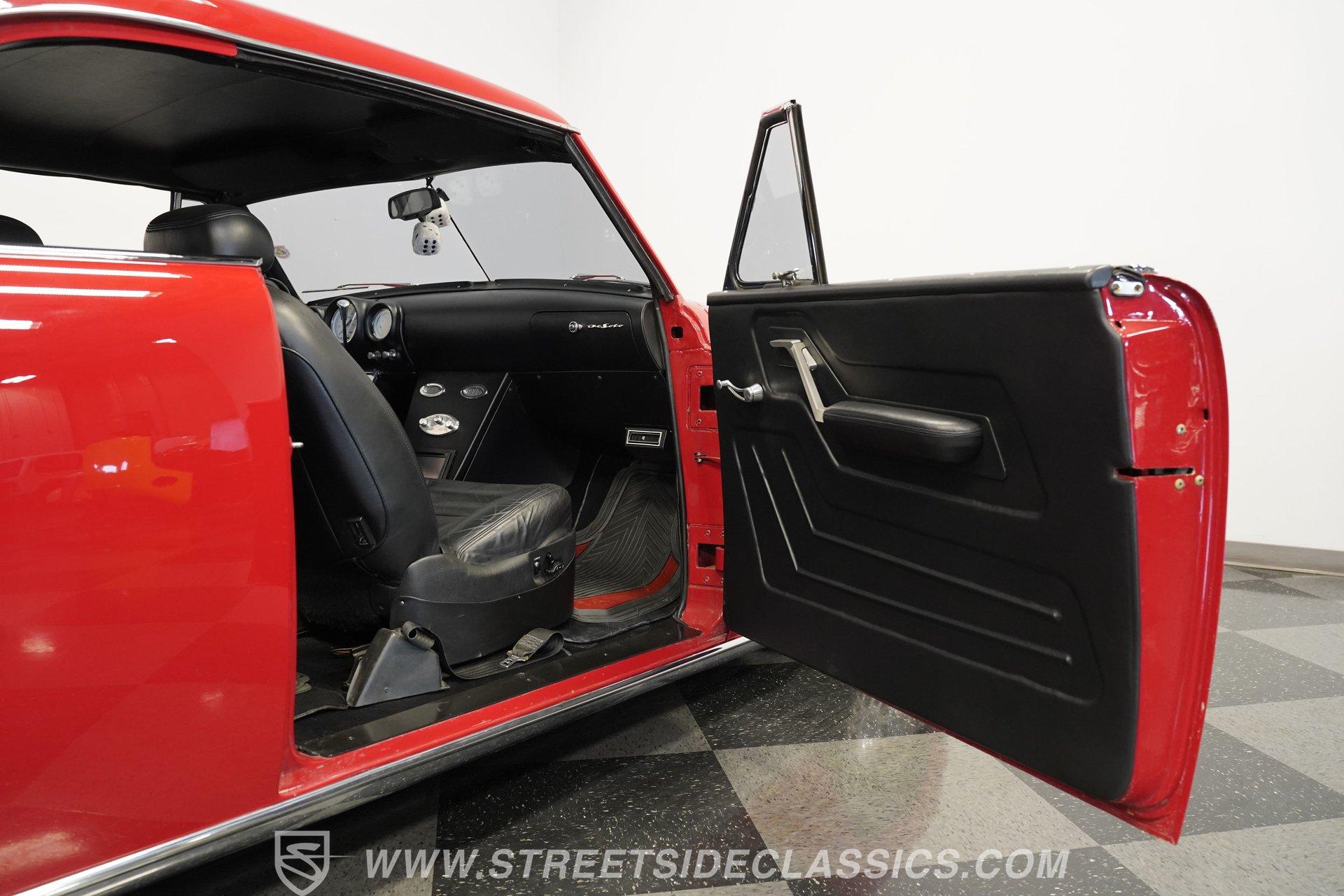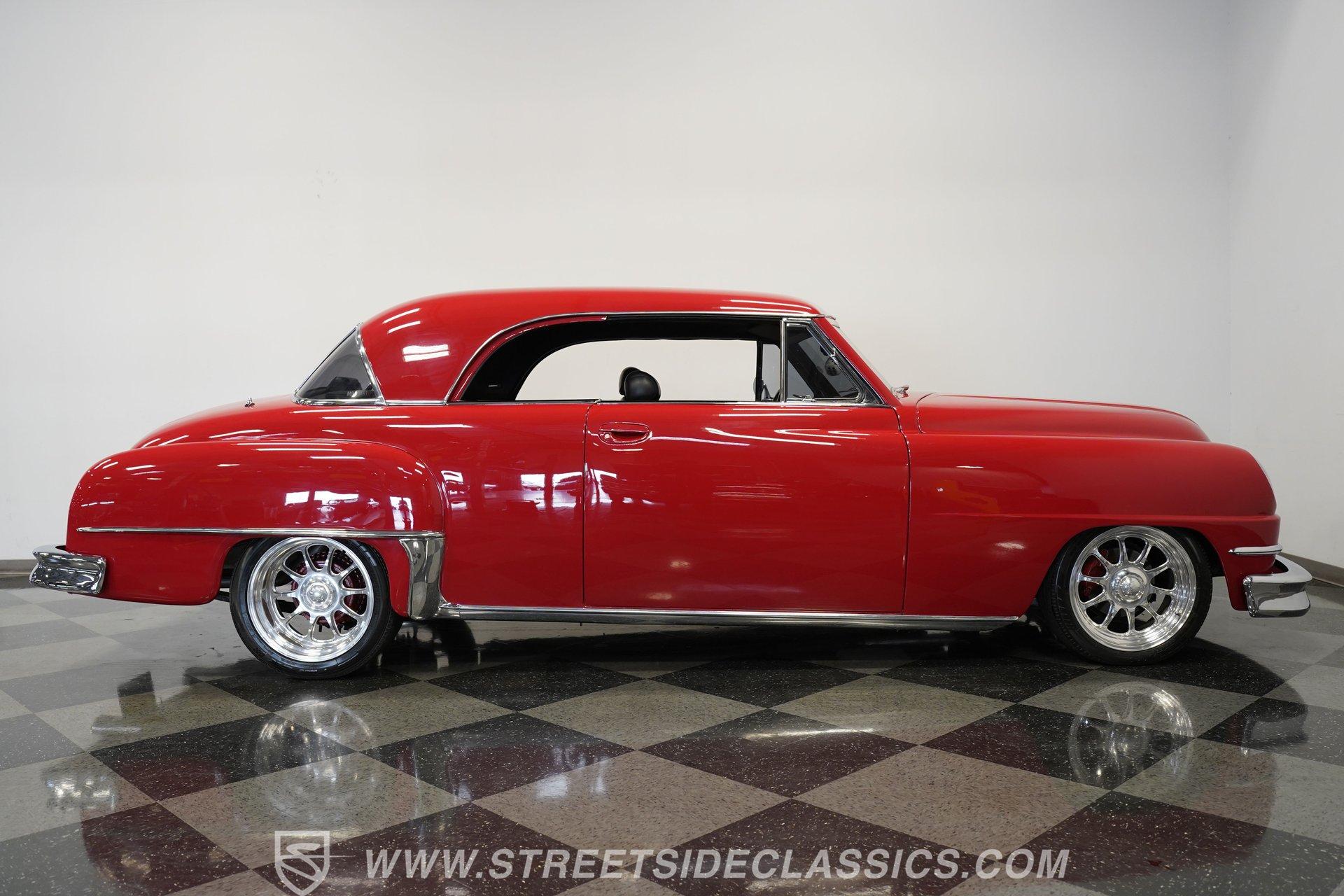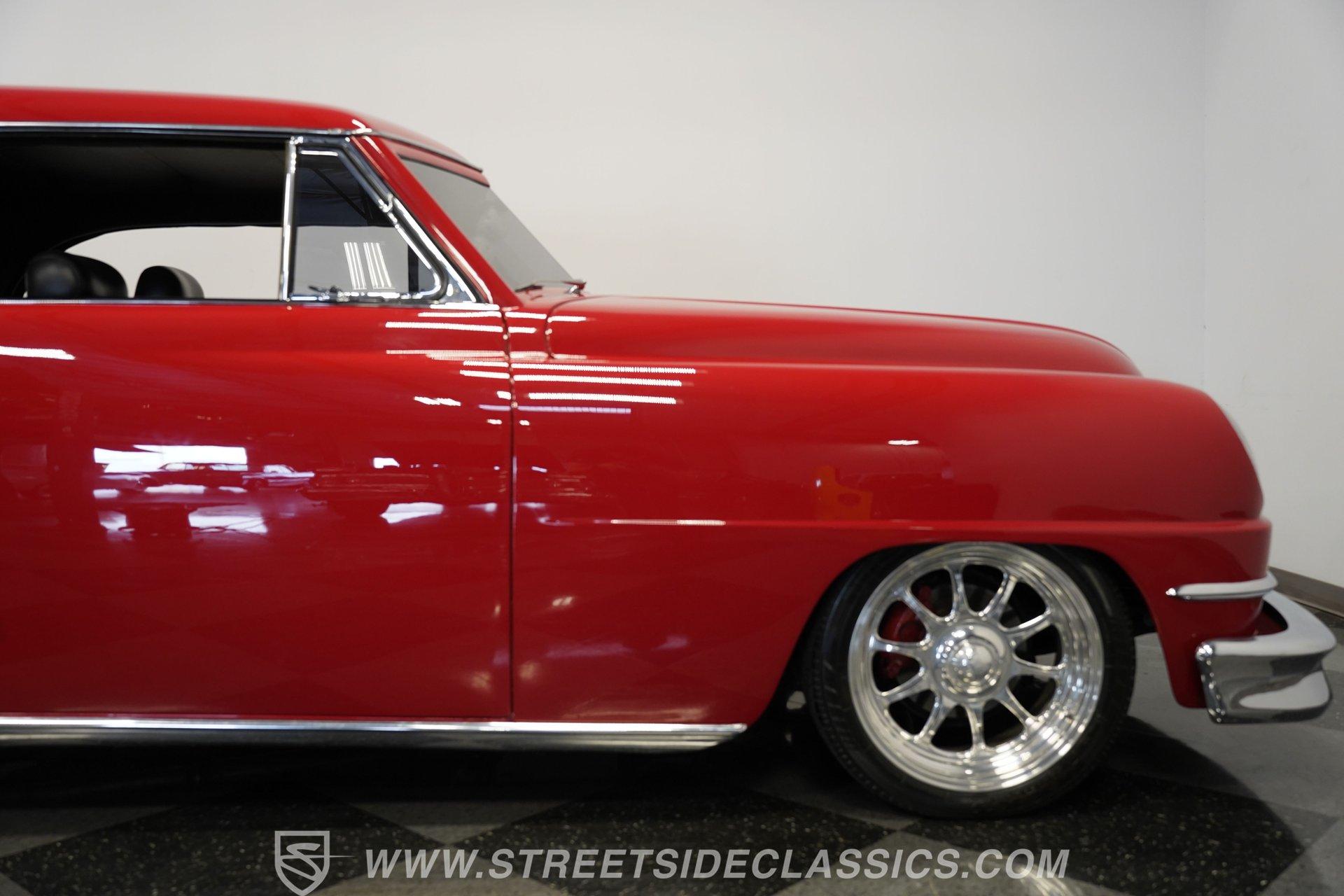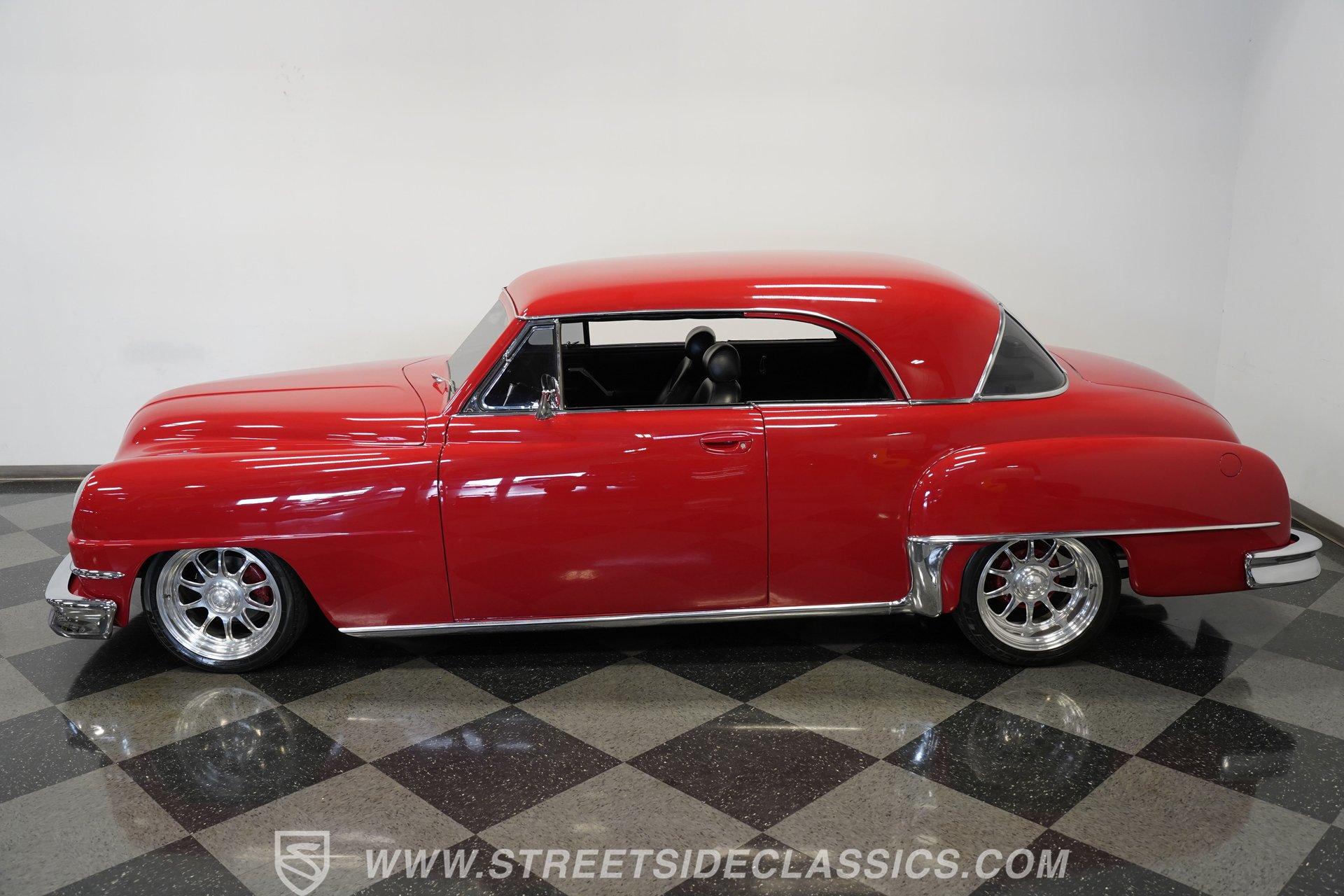 Some classics are more than just cars, they are rolling time capsules that tell stories of innovation and individuality. Imagine cruising down the boulevard in a machine that turns heads not just for its vintage charm, but for its bold custom touches that set it apart from every other ride on the road. This 1951 DeSoto Sportsman Hardtop is a statement piece, a fusion of timeless style and modern upgrades that reflects the spirit of an era reimagined for today. If you've been searching for a one-of-a-kind classic that's ready to make memories, this is the DeSoto you need to see. Step inside and experience a cabin crafted for both comfort and style. The interior features black leather upholstery that spans the two front seats and rear bench, offering a show-quality look with just the right touch of luxury. A billet-style steering wheel, matching door panels, and custom red-detailed floor mats complement the clean, well-maintained carpet. Upgraded Classic Instruments gauges and a modern Pioneer head unit blend vintage aesthetics with contemporary convenience, while ice-cold air conditioning and a well-fitted headliner ensure every drive is enjoyable. Under the hood, performance takes center stage with a robust 454 cubic inch V8, topped by a Holley 4-barrel carburetor and Holley intake. Modern upgrades include an open-element air cleaner, aluminum valve covers, and an accessory drive featuring a new alternator, power steering, and air conditioning. The 700R4 4-speed automatic transmission channels power to a GM 10-bolt rear end, while a true dual Flowmaster exhaust delivers a throaty rumble. Updated cooling and plumbing systems, along with a lowered suspension and coil-over front A-arms, provide a smooth, confident ride that's built for both cruising and performance. Highlights Custom Front Fenders With Integrated Headlights V-Butt Windshield With Chrome Trim Delete Badge Delete For Sleek Exterior 454 Cubic Inch V8 Engine Holley 4-Barrel Carburetor And Intake 700R4 4-Speed Automatic Transmission GM 10-Bolt Rear End Dual Flowmaster Exhaust System Lowered Stance With Coil-Over Front Suspension 18-Inch Billet Specialties Wheels Power Front Disc Brakes Black Leather Upholstery Classic Instruments Custom Gauges Full Repaint In Glossy Red Build Receipts And Restoration Photos Included Financing Available Vehicle Protection Plans Available Worldwide Shipping With its striking custom bodywork, powerful drivetrain, and meticulously finished interior, this 1951 DeSoto Sportsman Hardtop offers a rare blend of heritage and innovation. Whether you're looking to make a statement at the next car show or simply want to enjoy a standout classic on the open road, this DeSoto is ready for its next chapter. Call, email, or come visit our showroom today!