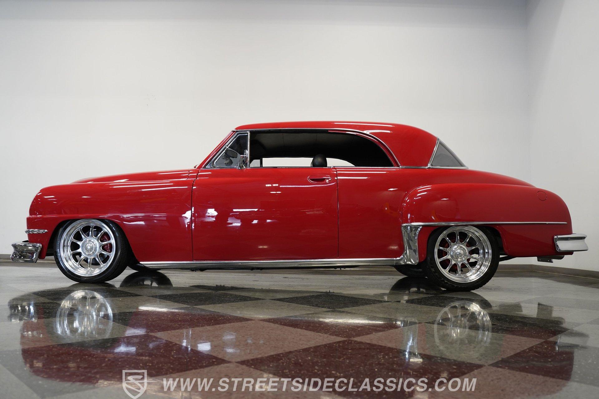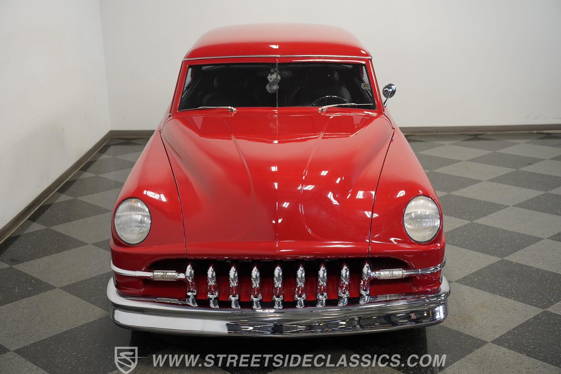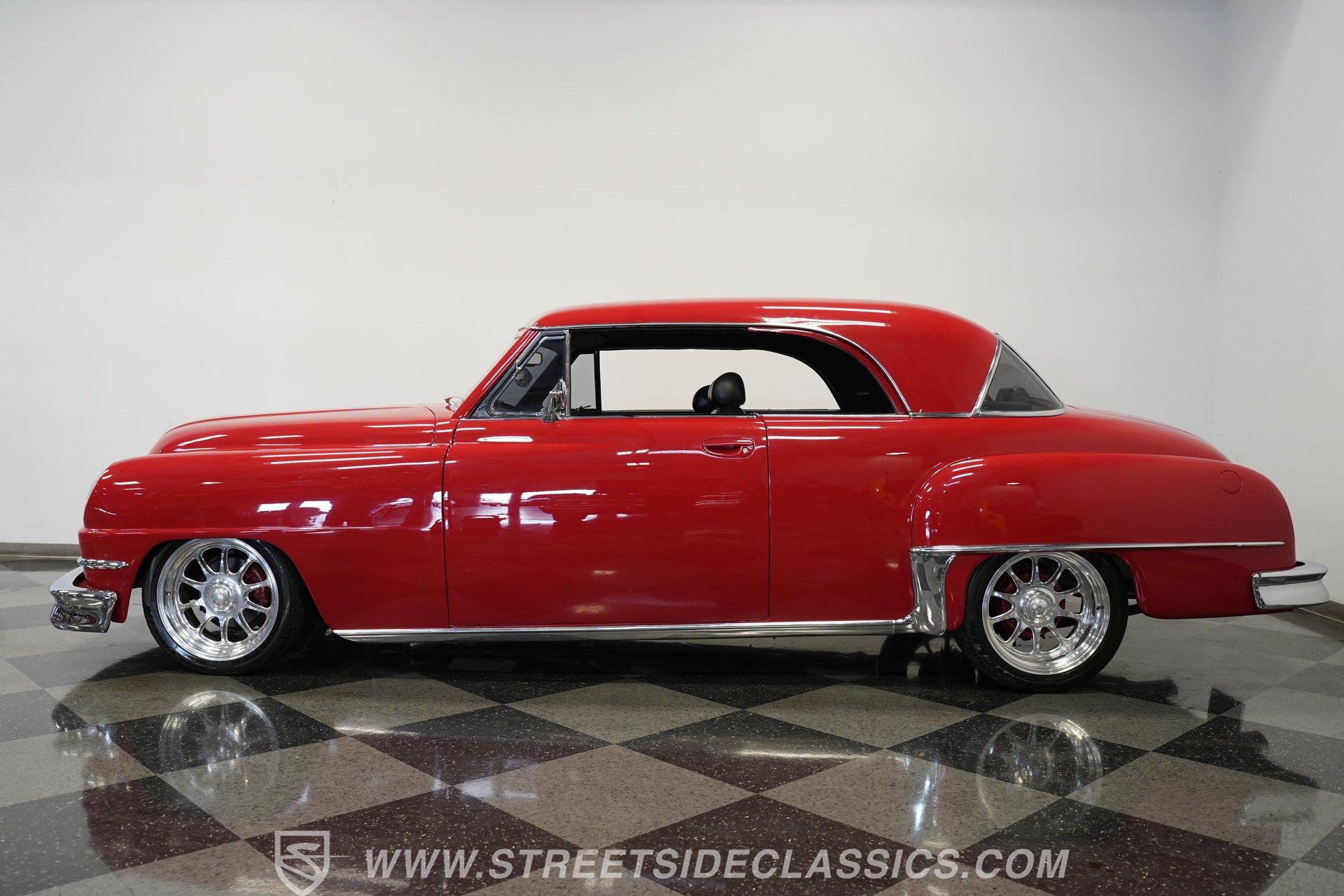 Some classics are more than just cars, they are rolling time capsules that tell stories of innovation and individuality. Imagine cruising down the boulevard in a machine that turns heads not just for its vintage charm, but for its bold custom touches that set it apart from every other ride on the road. This 1951 DeSoto Sportsman Hardtop is a statement piece, a fusion of timeless style and modern upgrades that reflects the spirit of an era reimagined for today. If you've been searching for a one-of-a-kind classic that's ready to make memories, this is the DeSoto you need to see. Step inside and experience a cabin crafted for both comfort and style. The interior features black leather upholstery that spans the two front seats and rear bench, offering a show-quality look with just the right touch of luxury. A billet-style steering wheel, matching door panels, and custom red-detailed floor mats complement the clean, well-maintained carpet. Upgraded Classic Instruments gauges and a modern Pioneer head unit blend vintage aesthetics with contemporary convenience, while ice-cold air conditioning and a well-fitted headliner ensure every drive is enjoyable. Under the hood, performance takes center stage with a robust 454 cubic inch V8, topped by a Holley 4-barrel carburetor and Holley intake. Modern upgrades include an open-element air cleaner, aluminum valve covers, and an accessory drive featuring a new alternator, power steering, and air conditioning. The 700R4 4-speed automatic transmission channels power to a GM 10-bolt rear end, while a true dual Flowmaster exhaust delivers a throaty rumble. Updated cooling and plumbing systems, along with a lowered suspension and coil-over front A-arms, provide a smooth, confident ride that's built for both cruising and performance. Highlights Custom Front Fenders With Integrated Headlights V-Butt Windshield With Chrome Trim Delete Badge Delete For Sleek Exterior 454 Cubic Inch V8 Engine Holley 4-Barrel Carburetor And Intake 700R4 4-Speed Automatic Transmission GM 10-Bolt Rear End Dual Flowmaster Exhaust System Lowered Stance With Coil-Over Front Suspension 18-Inch Billet Specialties Wheels Power Front Disc Brakes Black Leather Upholstery Classic Instruments Custom Gauges Full Repaint In Glossy Red Build Receipts And Restoration Photos Included Financing Available Vehicle Protection Plans Available Worldwide Shipping With its striking custom bodywork, powerful drivetrain, and meticulously finished interior, this 1951 DeSoto Sportsman Hardtop offers a rare blend of heritage and innovation. Whether you're looking to make a statement at the next car show or simply want to enjoy a standout classic on the open road, this DeSoto is ready for its next chapter. Call, email, or come visit our showroom today!