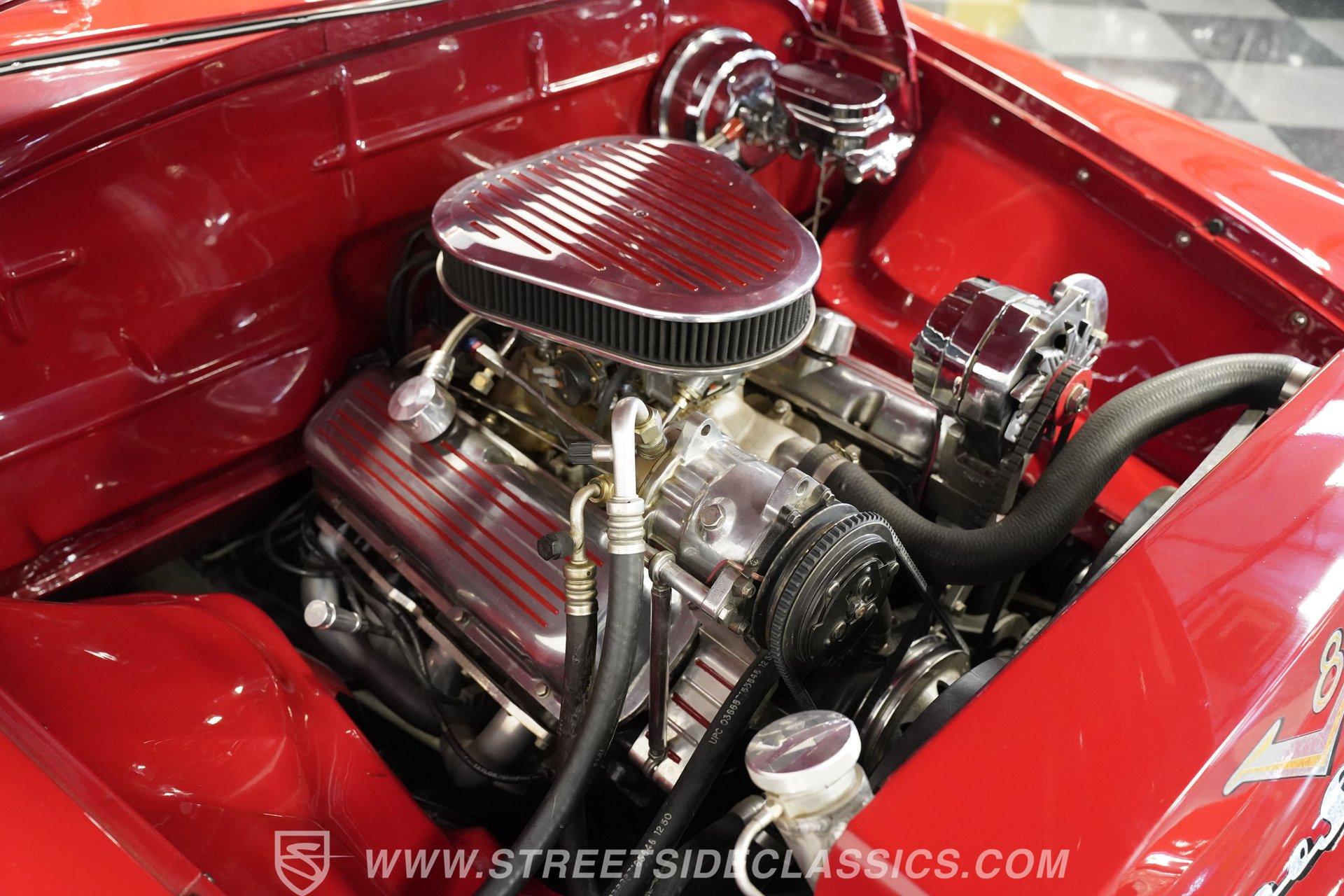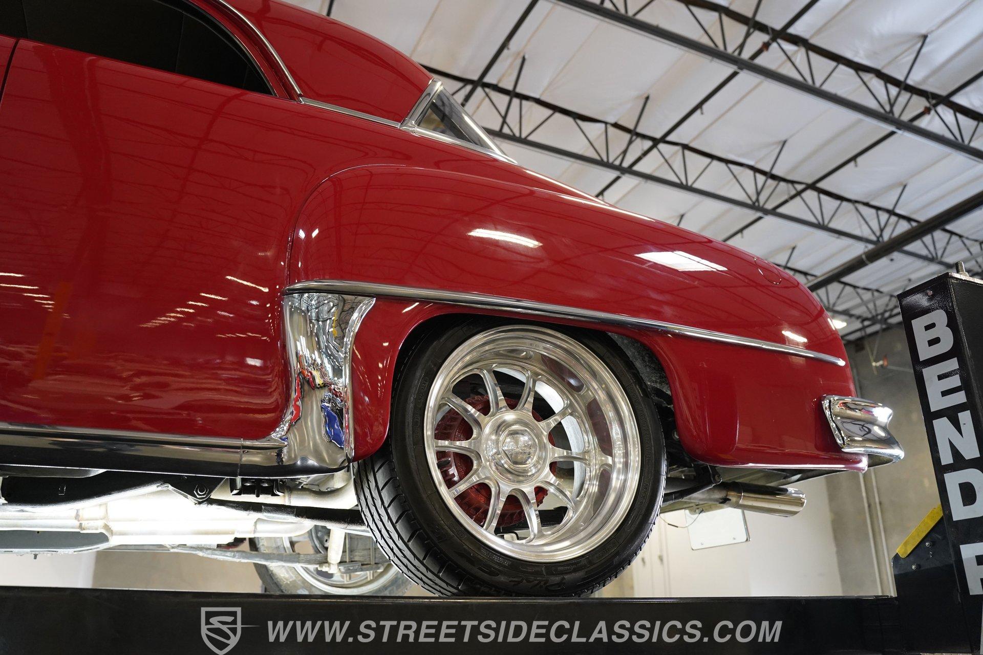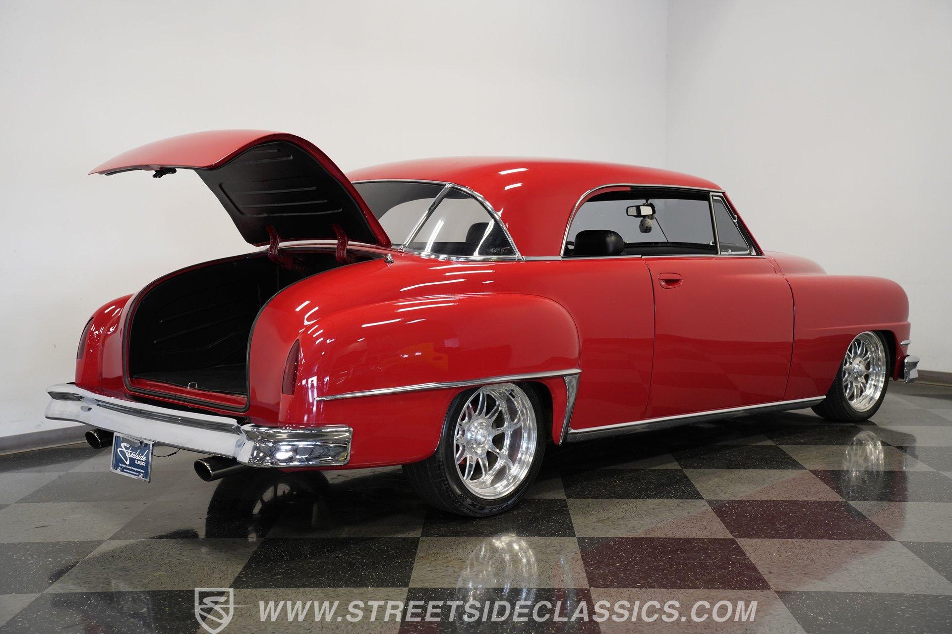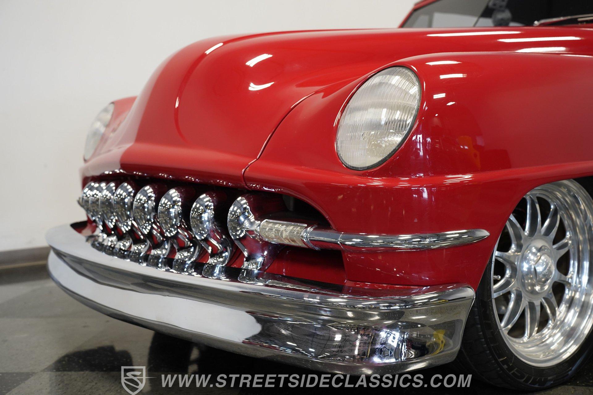 Some classics are more than just cars, they are rolling time capsules that tell stories of innovation and individuality. Imagine cruising down the boulevard in a machine that turns heads not just for its vintage charm, but for its bold custom touches that set it apart from every other ride on the road. This 1951 DeSoto Sportsman Hardtop is a statement piece, a fusion of timeless style and modern upgrades that reflects the spirit of an era reimagined for today. If you've been searching for a one-of-a-kind classic that's ready to make memories, this is the DeSoto you need to see. Step inside and experience a cabin crafted for both comfort and style. The interior features black leather upholstery that spans the two front seats and rear bench, offering a show-quality look with just the right touch of luxury. A billet-style steering wheel, matching door panels, and custom red-detailed floor mats complement the clean, well-maintained carpet. Upgraded Classic Instruments gauges and a modern Pioneer head unit blend vintage aesthetics with contemporary convenience, while ice-cold air conditioning and a well-fitted headliner ensure every drive is enjoyable. Under the hood, performance takes center stage with a robust 454 cubic inch V8, topped by a Holley 4-barrel carburetor and Holley intake. Modern upgrades include an open-element air cleaner, aluminum valve covers, and an accessory drive featuring a new alternator, power steering, and air conditioning. The 700R4 4-speed automatic transmission channels power to a GM 10-bolt rear end, while a true dual Flowmaster exhaust delivers a throaty rumble. Updated cooling and plumbing systems, along with a lowered suspension and coil-over front A-arms, provide a smooth, confident ride that's built for both cruising and performance. Highlights Custom Front Fenders With Integrated Headlights V-Butt Windshield With Chrome Trim Delete Badge Delete For Sleek Exterior 454 Cubic Inch V8 Engine Holley 4-Barrel Carburetor And Intake 700R4 4-Speed Automatic Transmission GM 10-Bolt Rear End Dual Flowmaster Exhaust System Lowered Stance With Coil-Over Front Suspension 18-Inch Billet Specialties Wheels Power Front Disc Brakes Black Leather Upholstery Classic Instruments Custom Gauges Full Repaint In Glossy Red Build Receipts And Restoration Photos Included Financing Available Vehicle Protection Plans Available Worldwide Shipping With its striking custom bodywork, powerful drivetrain, and meticulously finished interior, this 1951 DeSoto Sportsman Hardtop offers a rare blend of heritage and innovation. Whether you're looking to make a statement at the next car show or simply want to enjoy a standout classic on the open road, this DeSoto is ready for its next chapter. Call, email, or come visit our showroom today!