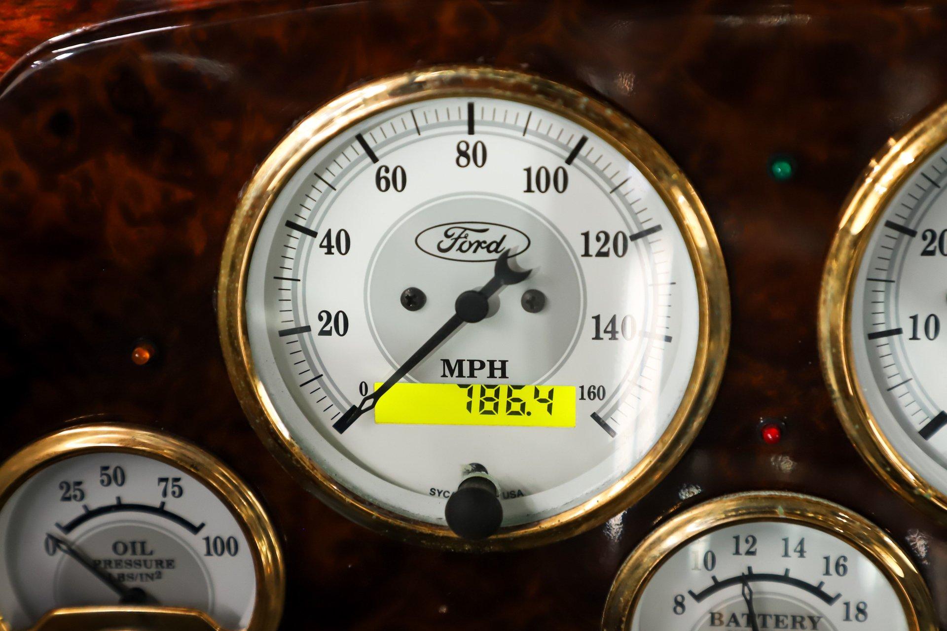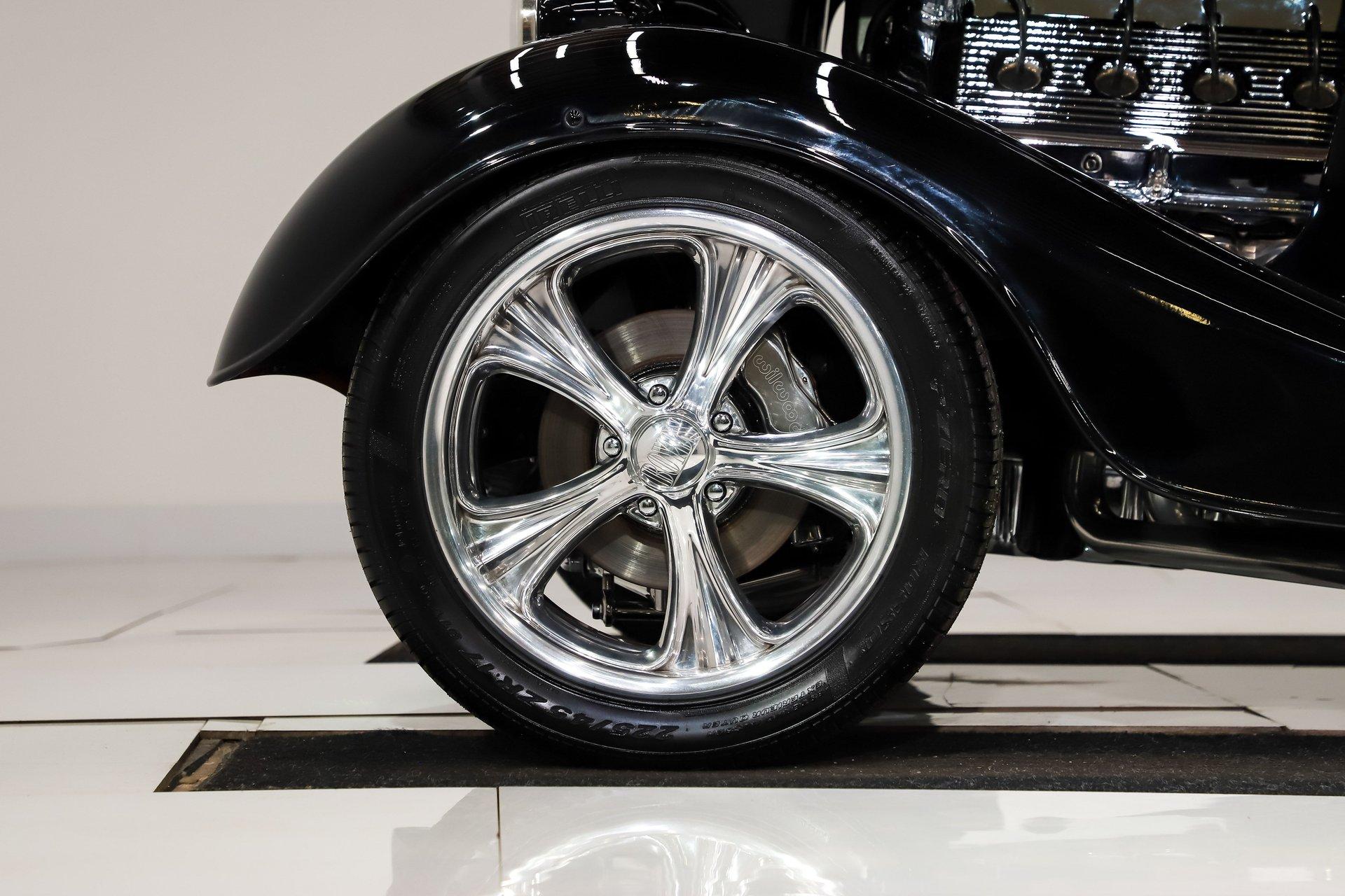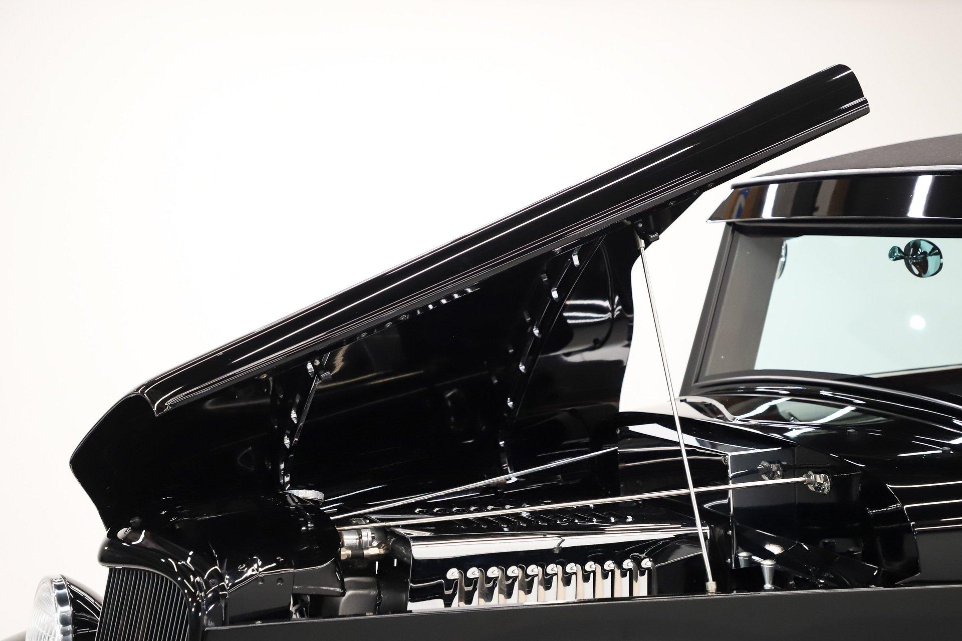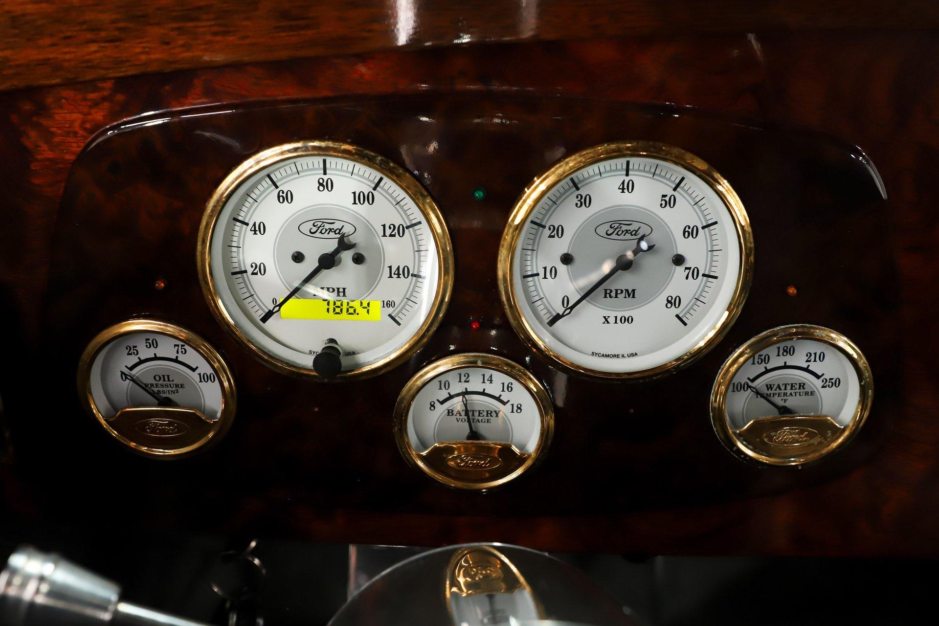 INTRODUCTION: Meticulous build top to bottom! The fit and finish is excellent, stainless hardware was used throughout, and it functions great! Less than 800 miles showing on the odometer, it still looks fresh. The walnut body, chromed Northstar engine and TCI chassis are just a few of the unique features on this classy hot rod. My guys really love this one, cars come and go here and this one has grabbed a lot of people's attention including my Father's, he flipped over it! EXTERIOR: Rare walnut body with Kewazingo inserts. The woodwork is solid and has a beautiful glossy finish. The doors use piano hinges for a solid and square fit, they shut like a regular car. The black painted surfaces are laser straight and have a mirror reflection. The padded top is finished in a rich black cloth. The glass is all smoked, the doors even have power windows! I love the big original style headlamps with Ford script lenses, the front turn signals are inconspicuously mounted under the fenders. In back it is using original style taillights along with flush mounted LED brake lights in the body. Those aren't the only flush mounted lights, there are some under the doors that light up when you open the doors with the hidden levers. How about the 4 individual side pipes showing under each fender! It is rolling proud and pretty on the Boyd's wheels: 17s in front, 18s in back and they are wearing Pirelli P Zero tires. INTERIOR: It is actually a very comfortable interior, I'm sitting in the car as I write this. The Tea seats are sporty buckets in front and a matching bench in back. Professionally installed gray tweed upholstery and cut carpet with bound edges. It also has 4 sets of seat belts, a Lokar shifter and chrome e-brake handle on the floor. There is certainly an abundance of beautiful woodwork inside as well, all with a high gloss polished finish in excellent shape. The walnut dash has vintage style gauges with Ford script and a matching quartz clock. The polished tilt column has a beautiful banjo style steering wheel with a walnut rim. An overhead console has a stereo and power deadbolt lock switches for the suicide doors. ENGINE COMPARTMENT: Cadillac Hot Rod Fabricators (CHRF) figured the really cool old school hot rods used Cadillac motors so why not incorporate the revolutionary Northstar engine into a Ford hot rod today. Well they successfully did and then turned it into a business. This 4.6 liter all aluminum V-8 with dual overhead cams and 4 valves per cylinder was built using CHRF components and innovation. It also has the Northstar Performance head bolt upgrade. It's covered in chrome and just looks cool, everyone thinks it's a Hemi! TRUNK COMPARTMENT: The rear is very accessible with easy to open upper and lower doors. When the tailgate is down it has a beautiful wood finish. UNDERSIDE: TCI chassis. Boxed and smoothed frame with tubular center support The front independent suspension is completely polished including the tubular control arms, swaybar, coilover adjustable gas shocks, spindles. in back it has a 4 link system with polished tubular control arms and panhard bar, coilover adjustable gas shocks. There are disc brakes at all 4 wheels , polished calipers, polished backing plates, polished master cylinder, chrome power booster, in front, e-brake. Rack & pinion steering. Polished stainless fuel tank. Looking up at the motor the oil pan is polished, the trans is a 700R4 overdrive automatic. polished aluminum driveshaft. Currie 9 inch rear with polished and finned center section chrome axle tubes. It's detailed under here, if it's not gloss black it's polished aluminum or chrome! SERVICE: We take pride in our cars and reputation. Therefore, we built a 2 million dollar, 10,000 square ft service center, and hired a team of technicians to service the essentials on every car we sell. CONCLUSION: The closer you look the more you will appreciate the extra care, time and skill that went into this build. I'm impressed! Vehicles are displayed in a museum setting. Admission applies without an appointment and is refunded with purchase, including a one-year museum membership. 815 385 3644 9-5 central Sales@volocars.com Answered ASAP Air conditioning Fuel injection Power brakes 4 wheel disc Rack & pinion Side exhaust TCI chassis Power windows Stereo system Tilt wheel Seatbelts Cloth top Smoked glass Boyd's wheels Pirelli tires