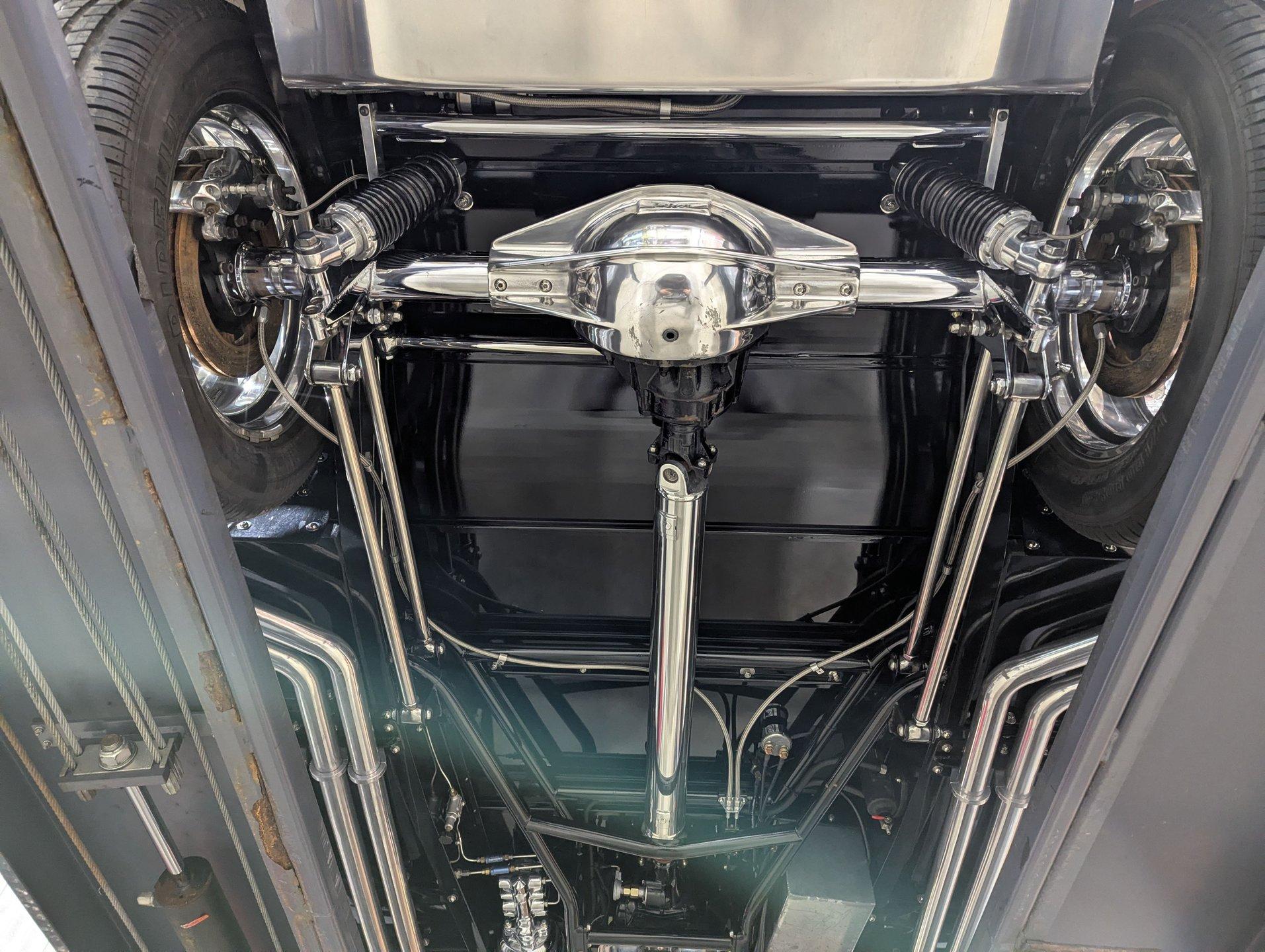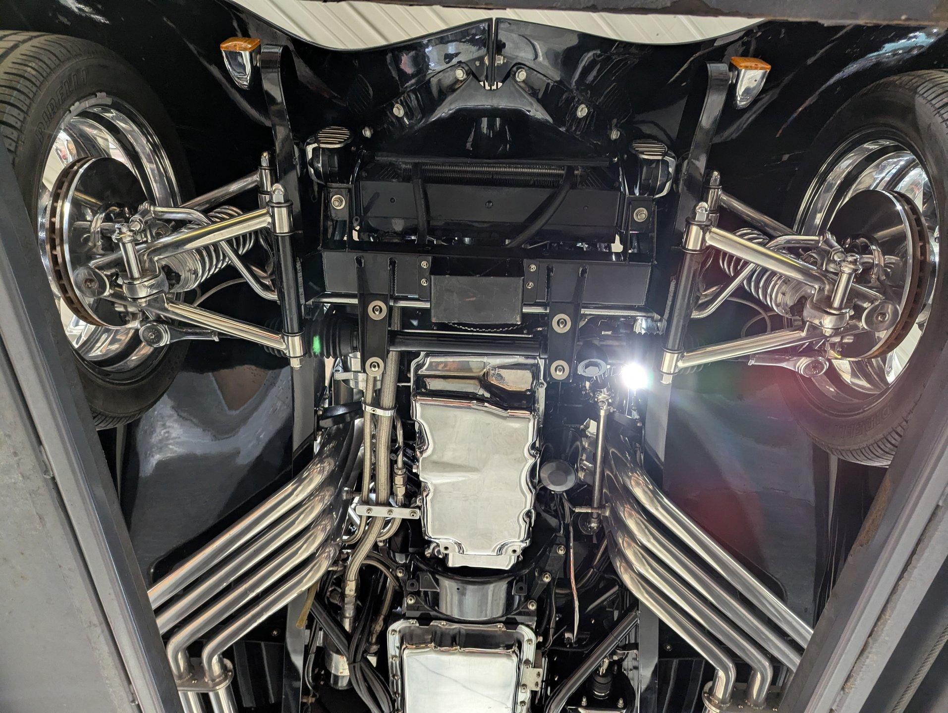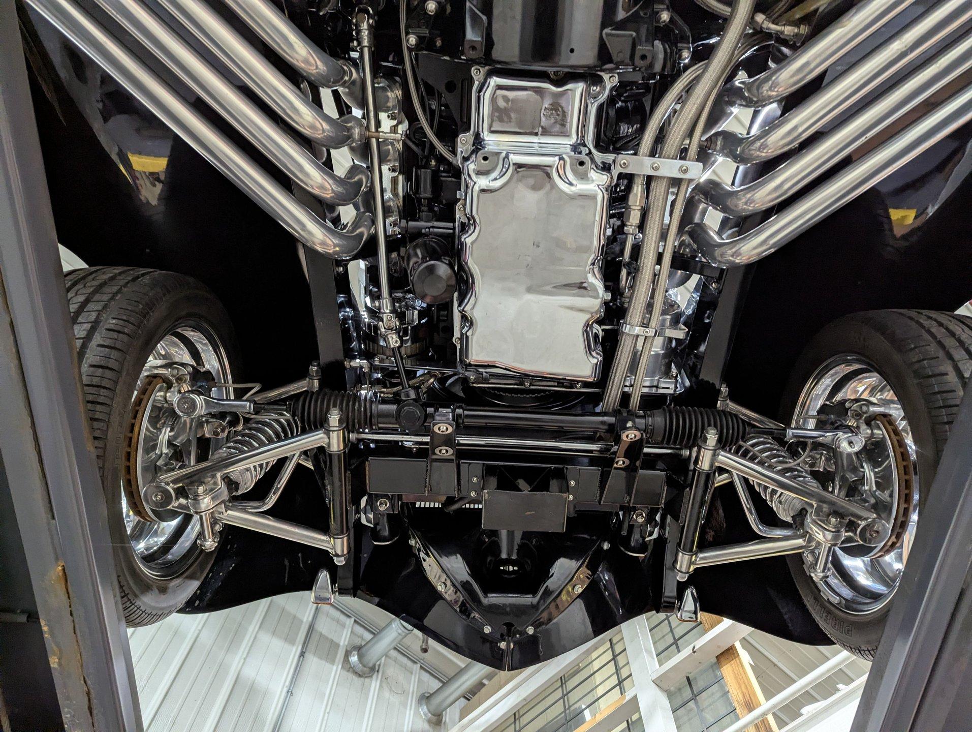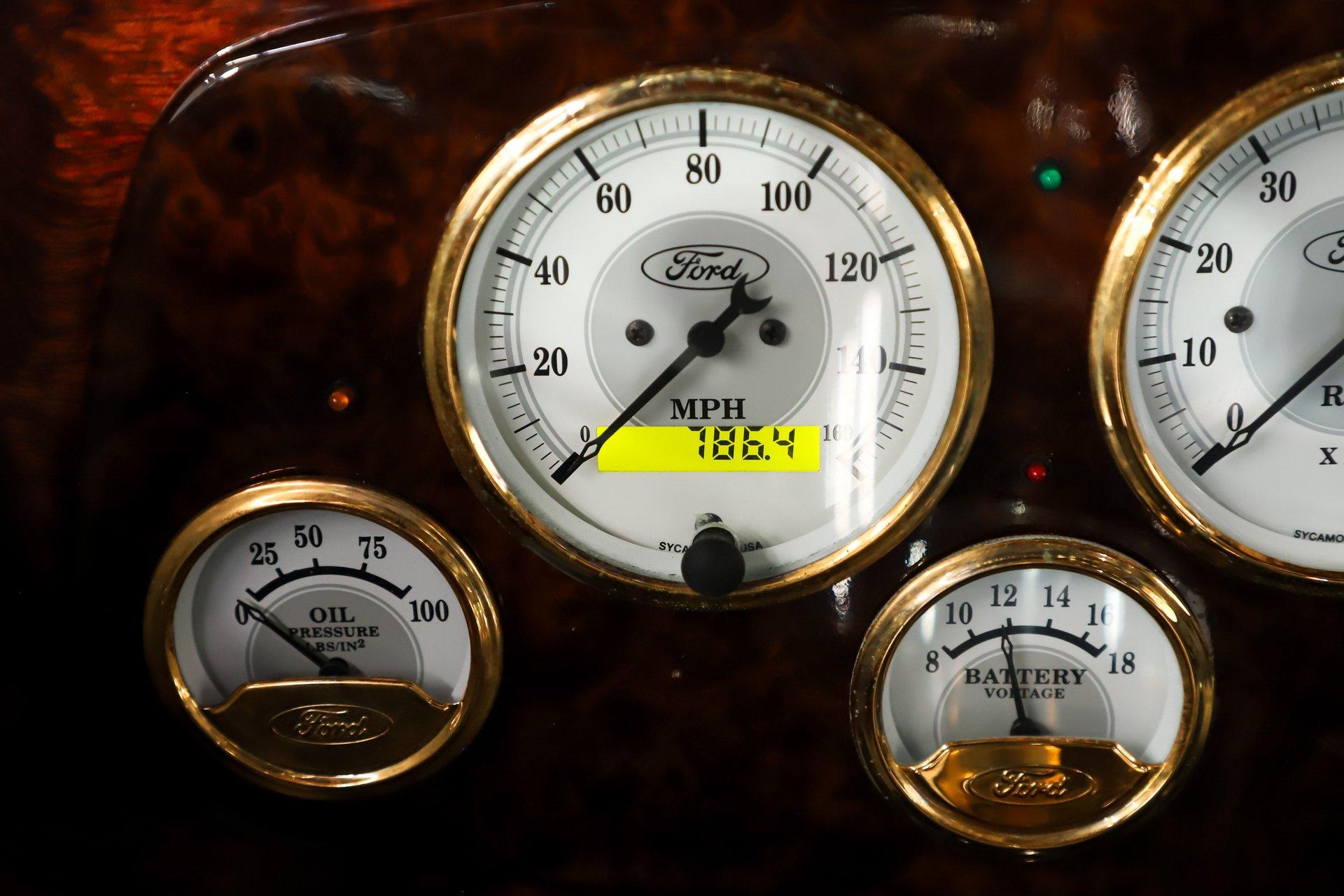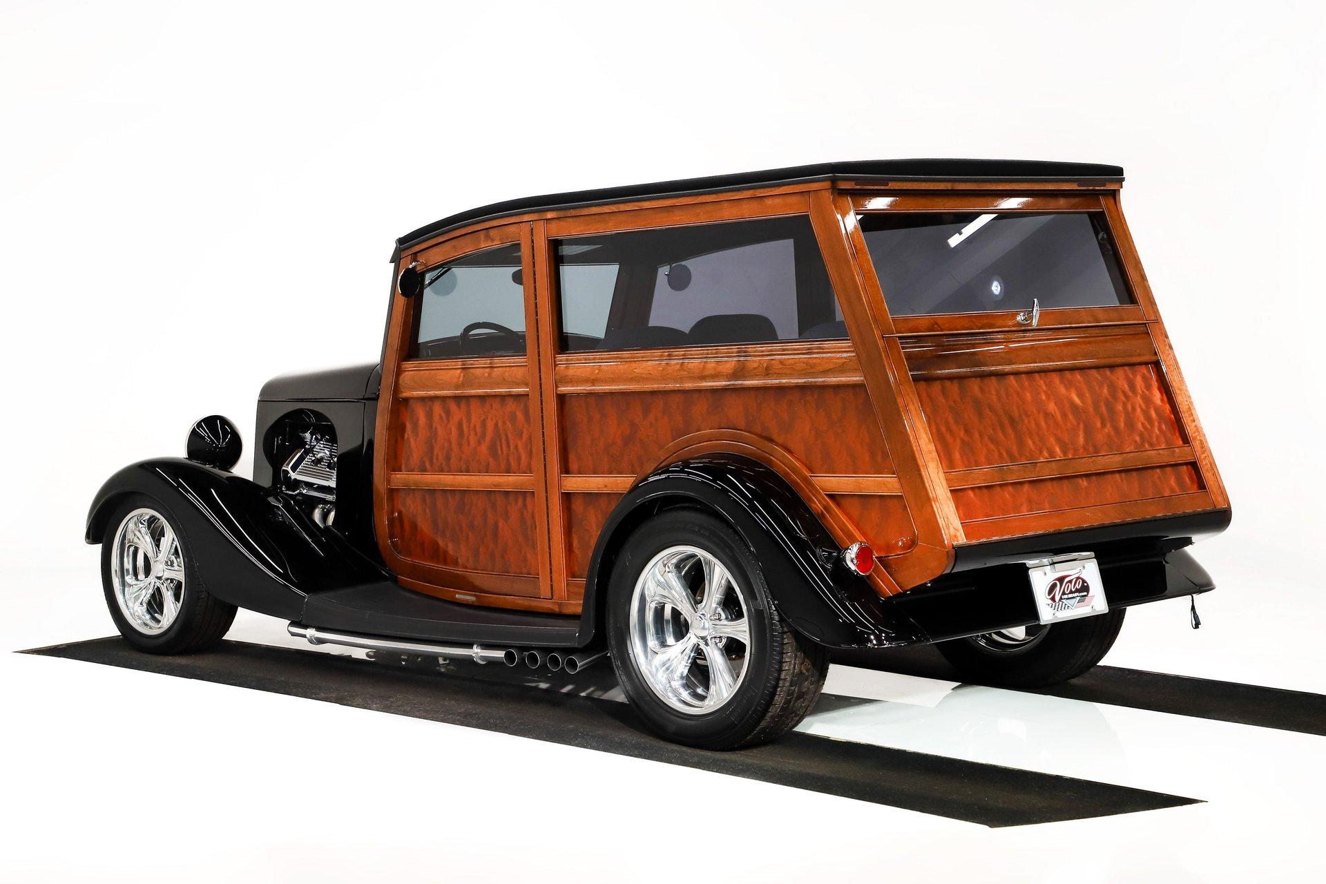 INTRODUCTION: Meticulous build top to bottom! The fit and finish is excellent, stainless hardware was used throughout, and it functions great! Less than 800 miles showing on the odometer, it still looks fresh. The walnut body, chromed Northstar engine and TCI chassis are just a few of the unique features on this classy hot rod. My guys really love this one, cars come and go here and this one has grabbed a lot of people's attention including my Father's, he flipped over it! EXTERIOR: Rare walnut body with Kewazingo inserts. The woodwork is solid and has a beautiful glossy finish. The doors use piano hinges for a solid and square fit, they shut like a regular car. The black painted surfaces are laser straight and have a mirror reflection. The padded top is finished in a rich black cloth. The glass is all smoked, the doors even have power windows! I love the big original style headlamps with Ford script lenses, the front turn signals are inconspicuously mounted under the fenders. In back it is using original style taillights along with flush mounted LED brake lights in the body. Those aren't the only flush mounted lights, there are some under the doors that light up when you open the doors with the hidden levers. How about the 4 individual side pipes showing under each fender! It is rolling proud and pretty on the Boyd's wheels: 17s in front, 18s in back and they are wearing Pirelli P Zero tires. INTERIOR: It is actually a very comfortable interior, I'm sitting in the car as I write this. The Tea seats are sporty buckets in front and a matching bench in back. Professionally installed gray tweed upholstery and cut carpet with bound edges. It also has 4 sets of seat belts, a Lokar shifter and chrome e-brake handle on the floor. There is certainly an abundance of beautiful woodwork inside as well, all with a high gloss polished finish in excellent shape. The walnut dash has vintage style gauges with Ford script and a matching quartz clock. The polished tilt column has a beautiful banjo style steering wheel with a walnut rim. An overhead console has a stereo and power deadbolt lock switches for the suicide doors. ENGINE COMPARTMENT: Cadillac Hot Rod Fabricators (CHRF) figured the really cool old school hot rods used Cadillac motors so why not incorporate the revolutionary Northstar engine into a Ford hot rod today. Well they successfully did and then turned it into a business. This 4.6 liter all aluminum V-8 with dual overhead cams and 4 valves per cylinder was built using CHRF components and innovation. It also has the Northstar Performance head bolt upgrade. It's covered in chrome and just looks cool, everyone thinks it's a Hemi! TRUNK COMPARTMENT: The rear is very accessible with easy to open upper and lower doors. When the tailgate is down it has a beautiful wood finish. UNDERSIDE: TCI chassis. Boxed and smoothed frame with tubular center support The front independent suspension is completely polished including the tubular control arms, swaybar, coilover adjustable gas shocks, spindles. in back it has a 4 link system with polished tubular control arms and panhard bar, coilover adjustable gas shocks. There are disc brakes at all 4 wheels , polished calipers, polished backing plates, polished master cylinder, chrome power booster, in front, e-brake. Rack & pinion steering. Polished stainless fuel tank. Looking up at the motor the oil pan is polished, the trans is a 700R4 overdrive automatic. polished aluminum driveshaft. Currie 9 inch rear with polished and finned center section chrome axle tubes. It's detailed under here, if it's not gloss black it's polished aluminum or chrome! SERVICE: We take pride in our cars and reputation. Therefore, we built a 2 million dollar, 10,000 square ft service center, and hired a team of technicians to service the essentials on every car we sell. CONCLUSION: The closer you look the more you will appreciate the extra care, time and skill that went into this build. I'm impressed! Vehicles are displayed in a museum setting. Admission applies without an appointment and is refunded with purchase, including a one-year museum membership. 815 385 3644 9-5 central Sales@volocars.com Answered ASAP Air conditioning Fuel injection Power brakes 4 wheel disc Rack & pinion Side exhaust TCI chassis Power windows Stereo system Tilt wheel Seatbelts Cloth top Smoked glass Boyd's wheels Pirelli tires