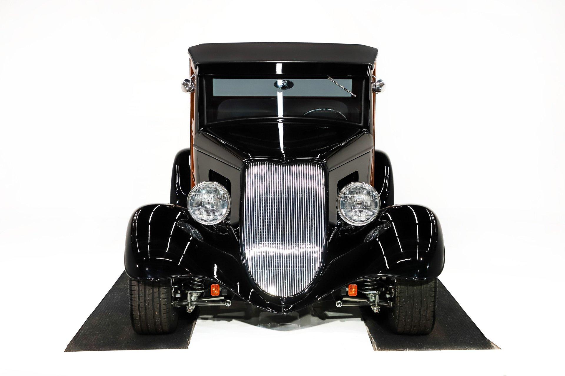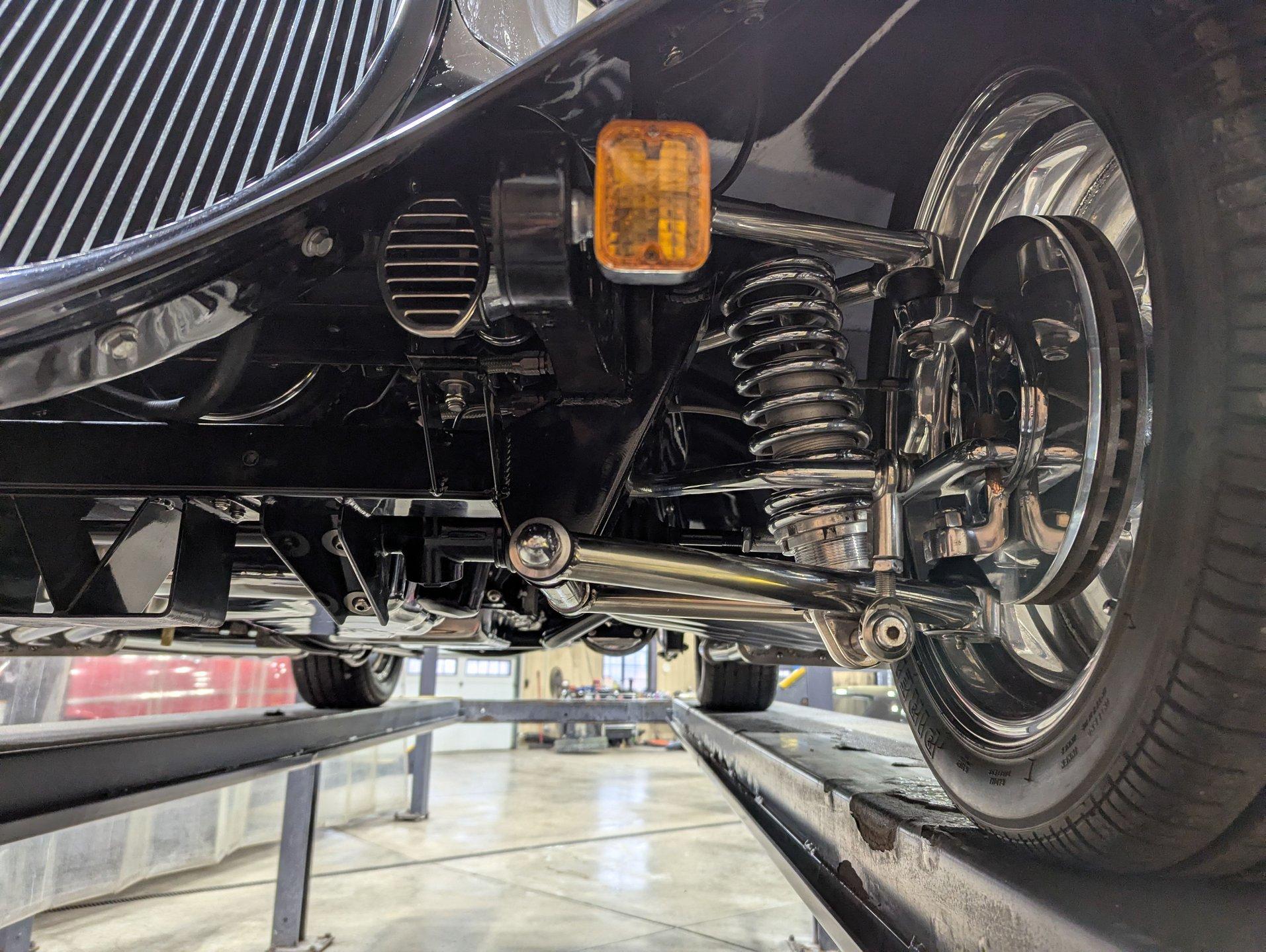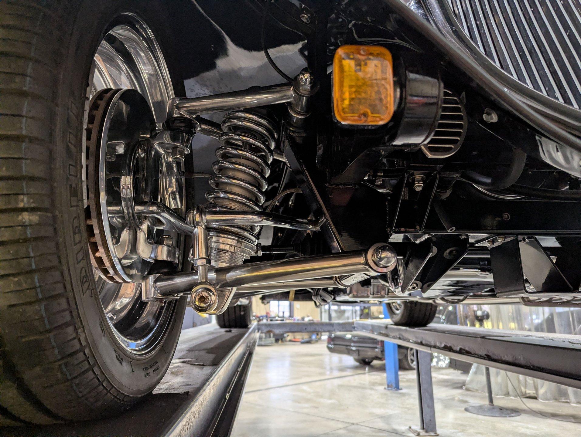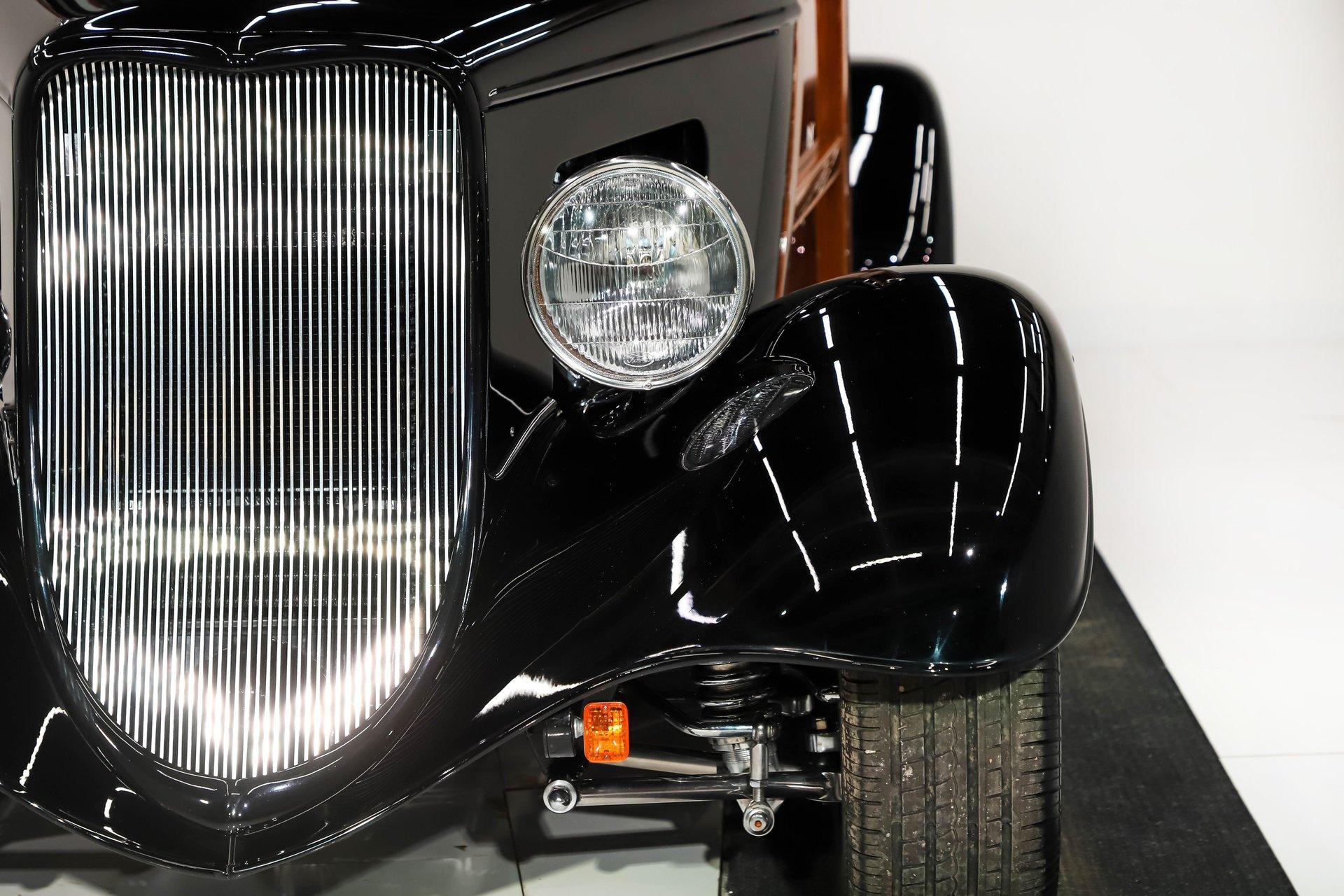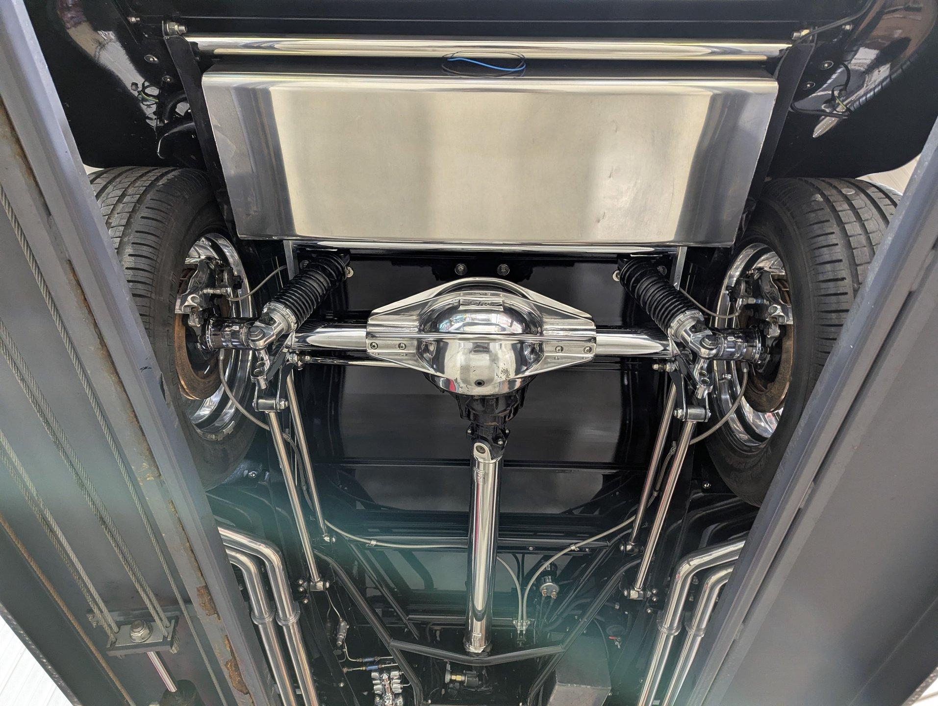 INTRODUCTION: Meticulous build top to bottom! The fit and finish is excellent, stainless hardware was used throughout, and it functions great! Less than 800 miles showing on the odometer, it still looks fresh. The walnut body, chromed Northstar engine and TCI chassis are just a few of the unique features on this classy hot rod. My guys really love this one, cars come and go here and this one has grabbed a lot of people's attention including my Father's, he flipped over it! EXTERIOR: Rare walnut body with Kewazingo inserts. The woodwork is solid and has a beautiful glossy finish. The doors use piano hinges for a solid and square fit, they shut like a regular car. The black painted surfaces are laser straight and have a mirror reflection. The padded top is finished in a rich black cloth. The glass is all smoked, the doors even have power windows! I love the big original style headlamps with Ford script lenses, the front turn signals are inconspicuously mounted under the fenders. In back it is using original style taillights along with flush mounted LED brake lights in the body. Those aren't the only flush mounted lights, there are some under the doors that light up when you open the doors with the hidden levers. How about the 4 individual side pipes showing under each fender! It is rolling proud and pretty on the Boyd's wheels: 17s in front, 18s in back and they are wearing Pirelli P Zero tires. INTERIOR: It is actually a very comfortable interior, I'm sitting in the car as I write this. The Tea seats are sporty buckets in front and a matching bench in back. Professionally installed gray tweed upholstery and cut carpet with bound edges. It also has 4 sets of seat belts, a Lokar shifter and chrome e-brake handle on the floor. There is certainly an abundance of beautiful woodwork inside as well, all with a high gloss polished finish in excellent shape. The walnut dash has vintage style gauges with Ford script and a matching quartz clock. The polished tilt column has a beautiful banjo style steering wheel with a walnut rim. An overhead console has a stereo and power deadbolt lock switches for the suicide doors. ENGINE COMPARTMENT: Cadillac Hot Rod Fabricators (CHRF) figured the really cool old school hot rods used Cadillac motors so why not incorporate the revolutionary Northstar engine into a Ford hot rod today. Well they successfully did and then turned it into a business. This 4.6 liter all aluminum V-8 with dual overhead cams and 4 valves per cylinder was built using CHRF components and innovation. It also has the Northstar Performance head bolt upgrade. It's covered in chrome and just looks cool, everyone thinks it's a Hemi! TRUNK COMPARTMENT: The rear is very accessible with easy to open upper and lower doors. When the tailgate is down it has a beautiful wood finish. UNDERSIDE: TCI chassis. Boxed and smoothed frame with tubular center support The front independent suspension is completely polished including the tubular control arms, swaybar, coilover adjustable gas shocks, spindles. in back it has a 4 link system with polished tubular control arms and panhard bar, coilover adjustable gas shocks. There are disc brakes at all 4 wheels , polished calipers, polished backing plates, polished master cylinder, chrome power booster, in front, e-brake. Rack & pinion steering. Polished stainless fuel tank. Looking up at the motor the oil pan is polished, the trans is a 700R4 overdrive automatic. polished aluminum driveshaft. Currie 9 inch rear with polished and finned center section chrome axle tubes. It's detailed under here, if it's not gloss black it's polished aluminum or chrome! SERVICE: We take pride in our cars and reputation. Therefore, we built a 2 million dollar, 10,000 square ft service center, and hired a team of technicians to service the essentials on every car we sell. CONCLUSION: The closer you look the more you will appreciate the extra care, time and skill that went into this build. I'm impressed! Vehicles are displayed in a museum setting. Admission applies without an appointment and is refunded with purchase, including a one-year museum membership. 815 385 3644 9-5 central Sales@volocars.com Answered ASAP Air conditioning Fuel injection Power brakes 4 wheel disc Rack & pinion Side exhaust TCI chassis Power windows Stereo system Tilt wheel Seatbelts Cloth top Smoked glass Boyd's wheels Pirelli tires