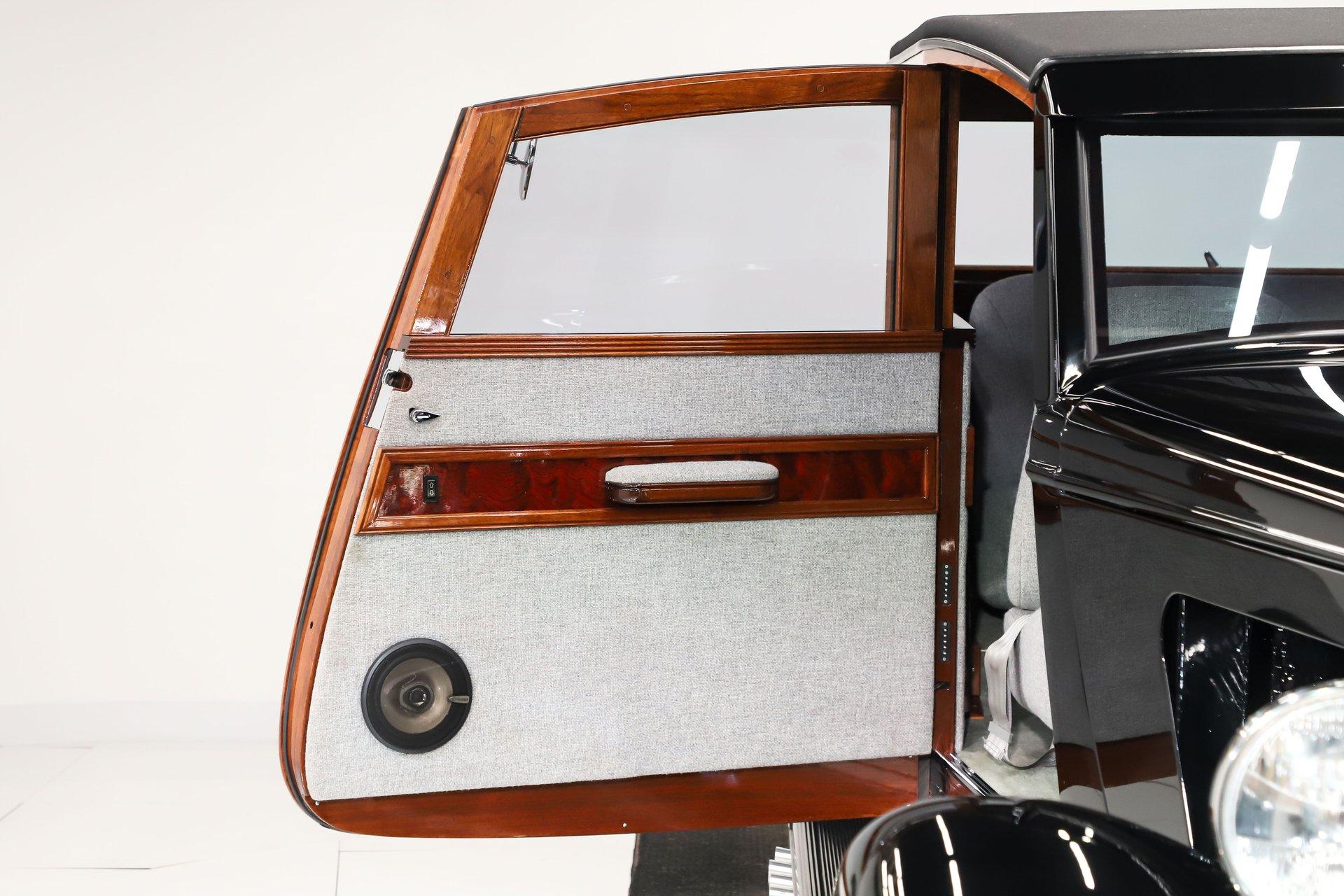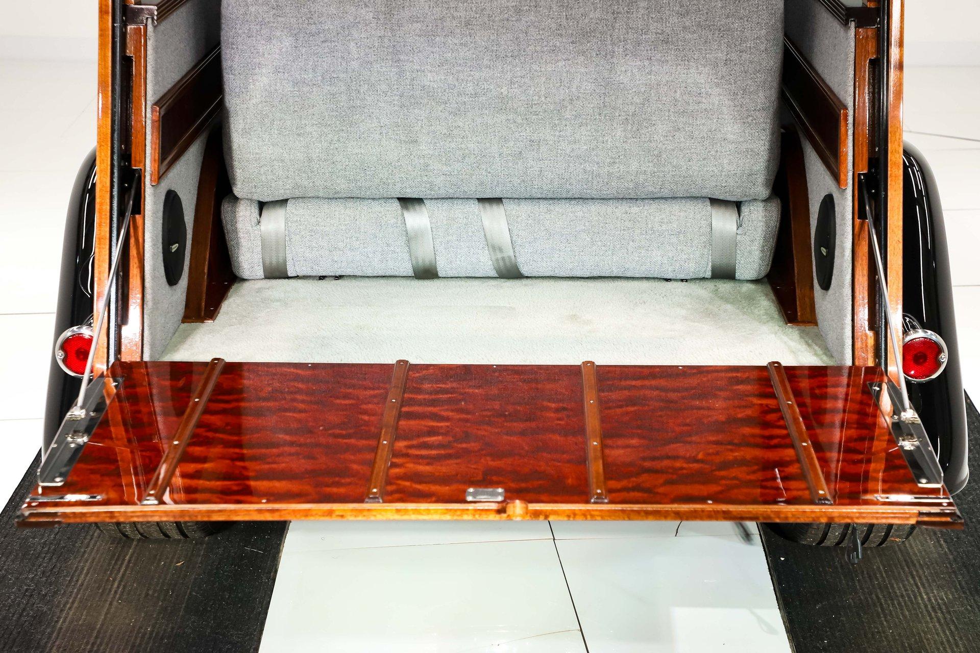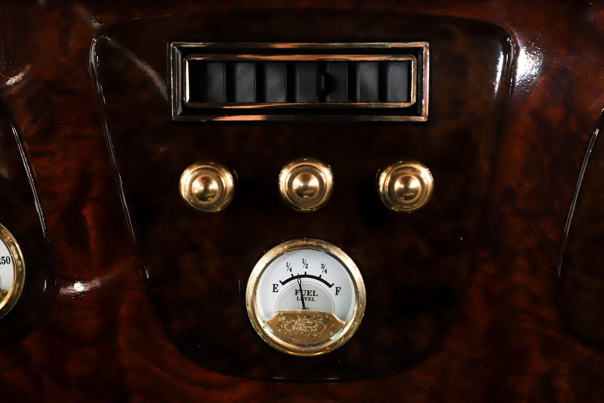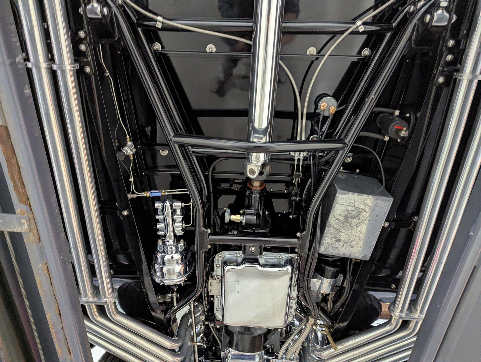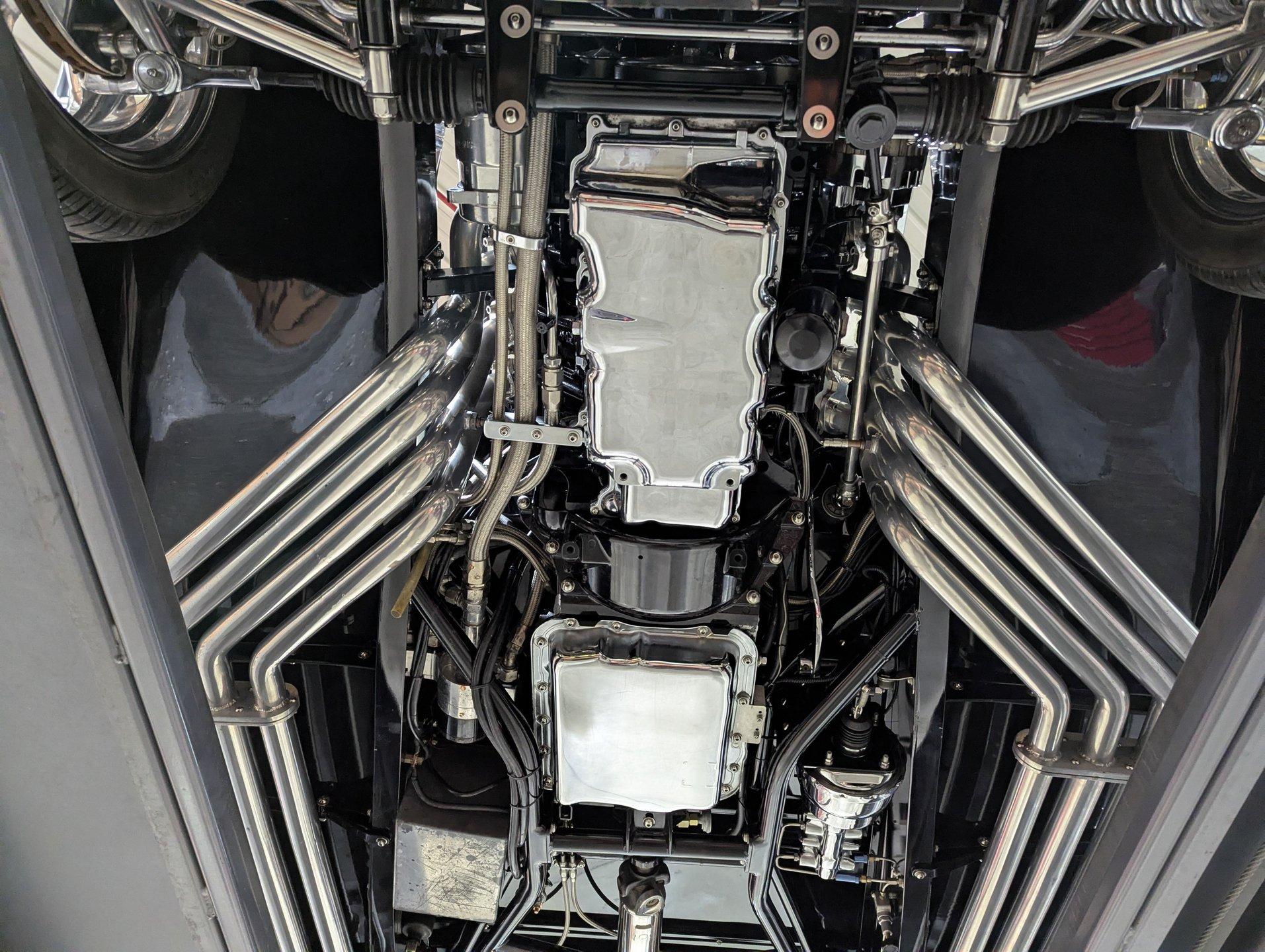 INTRODUCTION: Meticulous build top to bottom! The fit and finish is excellent, stainless hardware was used throughout, and it functions great! Less than 800 miles showing on the odometer, it still looks fresh. The walnut body, chromed Northstar engine and TCI chassis are just a few of the unique features on this classy hot rod. My guys really love this one, cars come and go here and this one has grabbed a lot of people's attention including my Father's, he flipped over it! EXTERIOR: Rare walnut body with Kewazingo inserts. The woodwork is solid and has a beautiful glossy finish. The doors use piano hinges for a solid and square fit, they shut like a regular car. The black painted surfaces are laser straight and have a mirror reflection. The padded top is finished in a rich black cloth. The glass is all smoked, the doors even have power windows! I love the big original style headlamps with Ford script lenses, the front turn signals are inconspicuously mounted under the fenders. In back it is using original style taillights along with flush mounted LED brake lights in the body. Those aren't the only flush mounted lights, there are some under the doors that light up when you open the doors with the hidden levers. How about the 4 individual side pipes showing under each fender! It is rolling proud and pretty on the Boyd's wheels: 17s in front, 18s in back and they are wearing Pirelli P Zero tires. INTERIOR: It is actually a very comfortable interior, I'm sitting in the car as I write this. The Tea seats are sporty buckets in front and a matching bench in back. Professionally installed gray tweed upholstery and cut carpet with bound edges. It also has 4 sets of seat belts, a Lokar shifter and chrome e-brake handle on the floor. There is certainly an abundance of beautiful woodwork inside as well, all with a high gloss polished finish in excellent shape. The walnut dash has vintage style gauges with Ford script and a matching quartz clock. The polished tilt column has a beautiful banjo style steering wheel with a walnut rim. An overhead console has a stereo and power deadbolt lock switches for the suicide doors. ENGINE COMPARTMENT: Cadillac Hot Rod Fabricators (CHRF) figured the really cool old school hot rods used Cadillac motors so why not incorporate the revolutionary Northstar engine into a Ford hot rod today. Well they successfully did and then turned it into a business. This 4.6 liter all aluminum V-8 with dual overhead cams and 4 valves per cylinder was built using CHRF components and innovation. It also has the Northstar Performance head bolt upgrade. It's covered in chrome and just looks cool, everyone thinks it's a Hemi! TRUNK COMPARTMENT: The rear is very accessible with easy to open upper and lower doors. When the tailgate is down it has a beautiful wood finish. UNDERSIDE: TCI chassis. Boxed and smoothed frame with tubular center support The front independent suspension is completely polished including the tubular control arms, swaybar, coilover adjustable gas shocks, spindles. in back it has a 4 link system with polished tubular control arms and panhard bar, coilover adjustable gas shocks. There are disc brakes at all 4 wheels , polished calipers, polished backing plates, polished master cylinder, chrome power booster, in front, e-brake. Rack & pinion steering. Polished stainless fuel tank. Looking up at the motor the oil pan is polished, the trans is a 700R4 overdrive automatic. polished aluminum driveshaft. Currie 9 inch rear with polished and finned center section chrome axle tubes. It's detailed under here, if it's not gloss black it's polished aluminum or chrome! SERVICE: We take pride in our cars and reputation. Therefore, we built a 2 million dollar, 10,000 square ft service center, and hired a team of technicians to service the essentials on every car we sell. CONCLUSION: The closer you look the more you will appreciate the extra care, time and skill that went into this build. I'm impressed! Vehicles are displayed in a museum setting. Admission applies without an appointment and is refunded with purchase, including a one-year museum membership. 815 385 3644 9-5 central Sales@volocars.com Answered ASAP Air conditioning Fuel injection Power brakes 4 wheel disc Rack & pinion Side exhaust TCI chassis Power windows Stereo system Tilt wheel Seatbelts Cloth top Smoked glass Boyd's wheels Pirelli tires