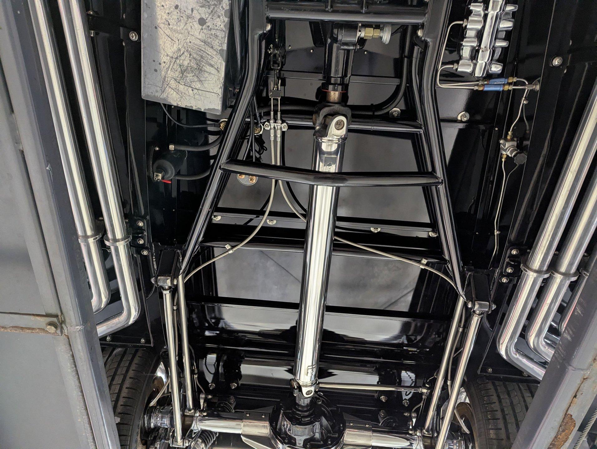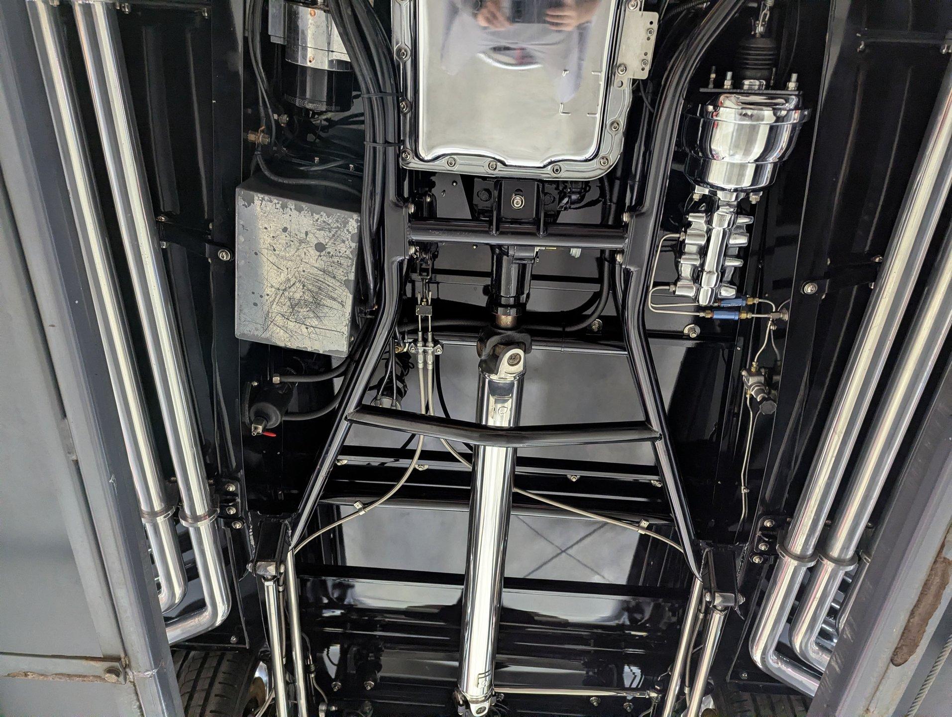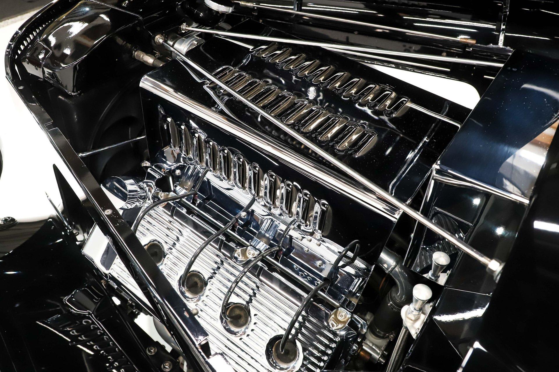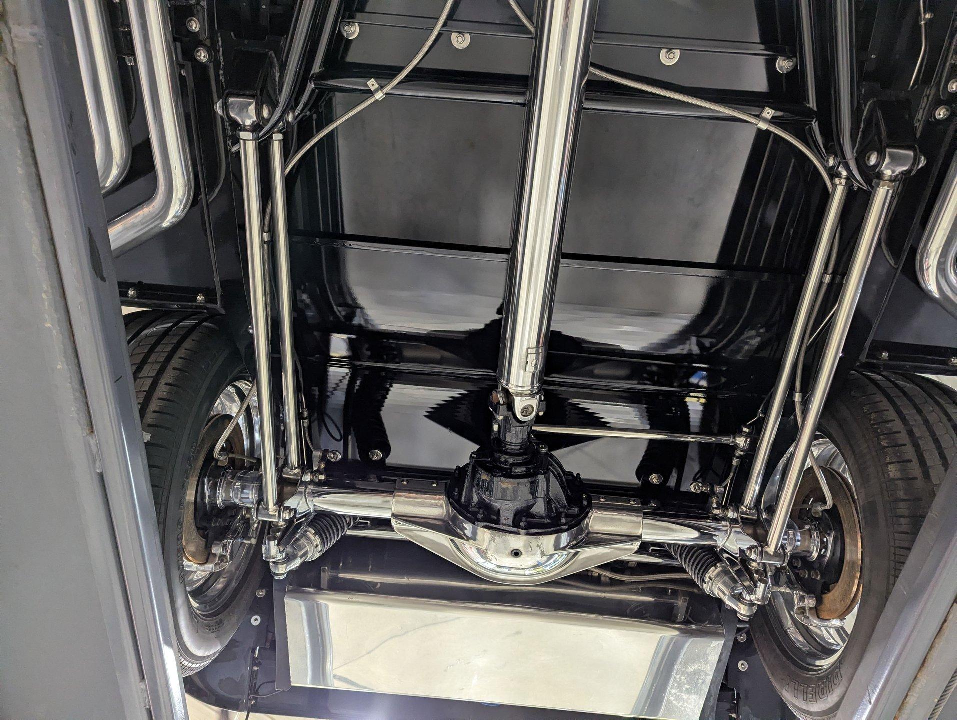 INTRODUCTION: Meticulous build top to bottom! The fit and finish is excellent, stainless hardware was used throughout, and it functions great! Less than 800 miles showing on the odometer, it still looks fresh. The walnut body, chromed Northstar engine and TCI chassis are just a few of the unique features on this classy hot rod. My guys really love this one, cars come and go here and this one has grabbed a lot of people's attention including my Father's, he flipped over it! EXTERIOR: Rare walnut body with Kewazingo inserts. The woodwork is solid and has a beautiful glossy finish. The doors use piano hinges for a solid and square fit, they shut like a regular car. The black painted surfaces are laser straight and have a mirror reflection. The padded top is finished in a rich black cloth. The glass is all smoked, the doors even have power windows! I love the big original style headlamps with Ford script lenses, the front turn signals are inconspicuously mounted under the fenders. In back it is using original style taillights along with flush mounted LED brake lights in the body. Those aren't the only flush mounted lights, there are some under the doors that light up when you open the doors with the hidden levers. How about the 4 individual side pipes showing under each fender! It is rolling proud and pretty on the Boyd's wheels: 17s in front, 18s in back and they are wearing Pirelli P Zero tires. INTERIOR: It is actually a very comfortable interior, I'm sitting in the car as I write this. The Tea seats are sporty buckets in front and a matching bench in back. Professionally installed gray tweed upholstery and cut carpet with bound edges. It also has 4 sets of seat belts, a Lokar shifter and chrome e-brake handle on the floor. There is certainly an abundance of beautiful woodwork inside as well, all with a high gloss polished finish in excellent shape. The walnut dash has vintage style gauges with Ford script and a matching quartz clock. The polished tilt column has a beautiful banjo style steering wheel with a walnut rim. An overhead console has a stereo and power deadbolt lock switches for the suicide doors. ENGINE COMPARTMENT: Cadillac Hot Rod Fabricators (CHRF) figured the really cool old school hot rods used Cadillac motors so why not incorporate the revolutionary Northstar engine into a Ford hot rod today. Well they successfully did and then turned it into a business. This 4.6 liter all aluminum V-8 with dual overhead cams and 4 valves per cylinder was built using CHRF components and innovation. It also has the Northstar Performance head bolt upgrade. It's covered in chrome and just looks cool, everyone thinks it's a Hemi! TRUNK COMPARTMENT: The rear is very accessible with easy to open upper and lower doors. When the tailgate is down it has a beautiful wood finish. UNDERSIDE: TCI chassis. Boxed and smoothed frame with tubular center support The front independent suspension is completely polished including the tubular control arms, swaybar, coilover adjustable gas shocks, spindles. in back it has a 4 link system with polished tubular control arms and panhard bar, coilover adjustable gas shocks. There are disc brakes at all 4 wheels , polished calipers, polished backing plates, polished master cylinder, chrome power booster, in front, e-brake. Rack & pinion steering. Polished stainless fuel tank. Looking up at the motor the oil pan is polished, the trans is a 700R4 overdrive automatic. polished aluminum driveshaft. Currie 9 inch rear with polished and finned center section chrome axle tubes. It's detailed under here, if it's not gloss black it's polished aluminum or chrome! SERVICE: We take pride in our cars and reputation. Therefore, we built a 2 million dollar, 10,000 square ft service center, and hired a team of technicians to service the essentials on every car we sell. CONCLUSION: The closer you look the more you will appreciate the extra care, time and skill that went into this build. I'm impressed! Vehicles are displayed in a museum setting. Admission applies without an appointment and is refunded with purchase, including a one-year museum membership. 815 385 3644 9-5 central Sales@volocars.com Answered ASAP Air conditioning Fuel injection Power brakes 4 wheel disc Rack & pinion Side exhaust TCI chassis Power windows Stereo system Tilt wheel Seatbelts Cloth top Smoked glass Boyd's wheels Pirelli tires