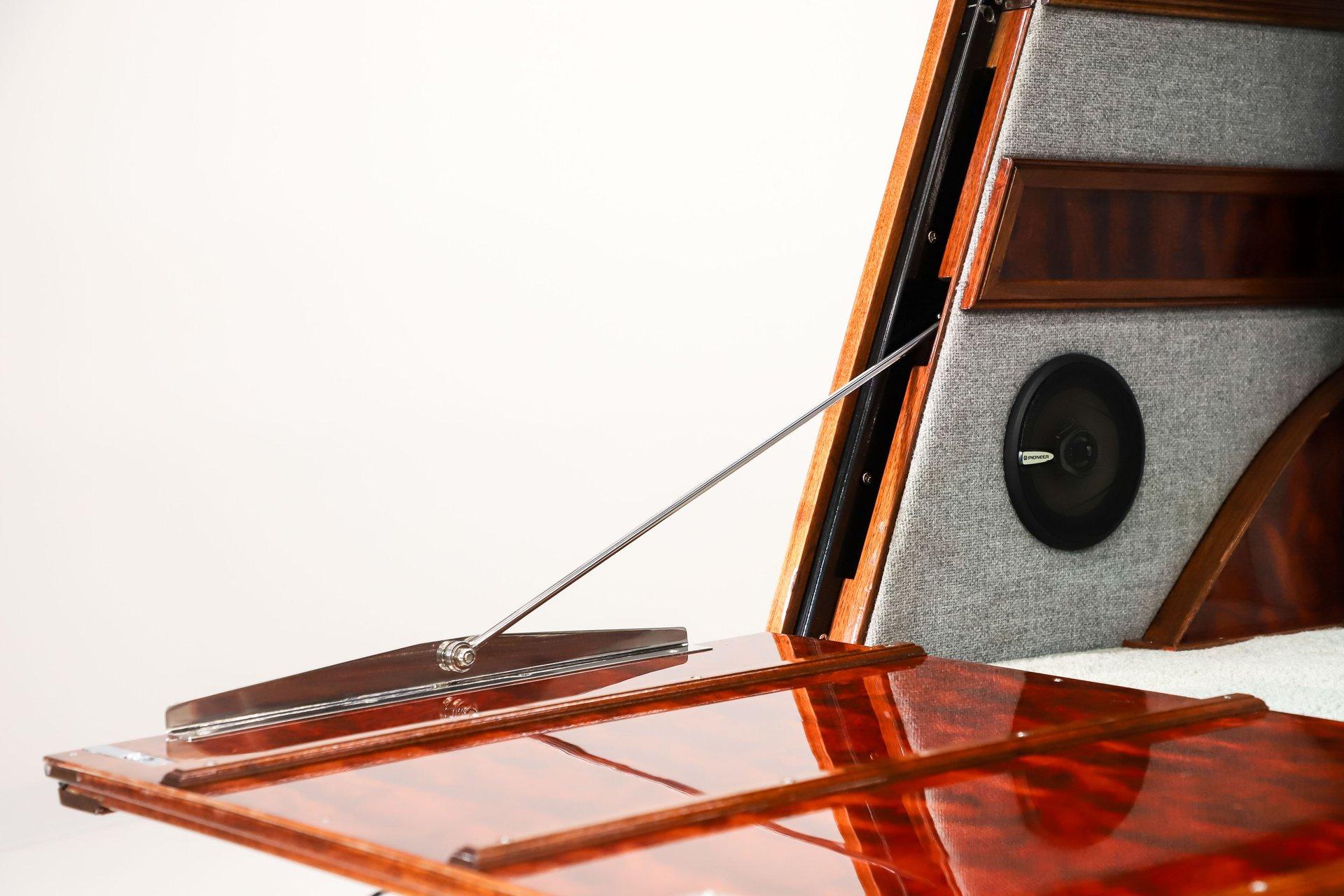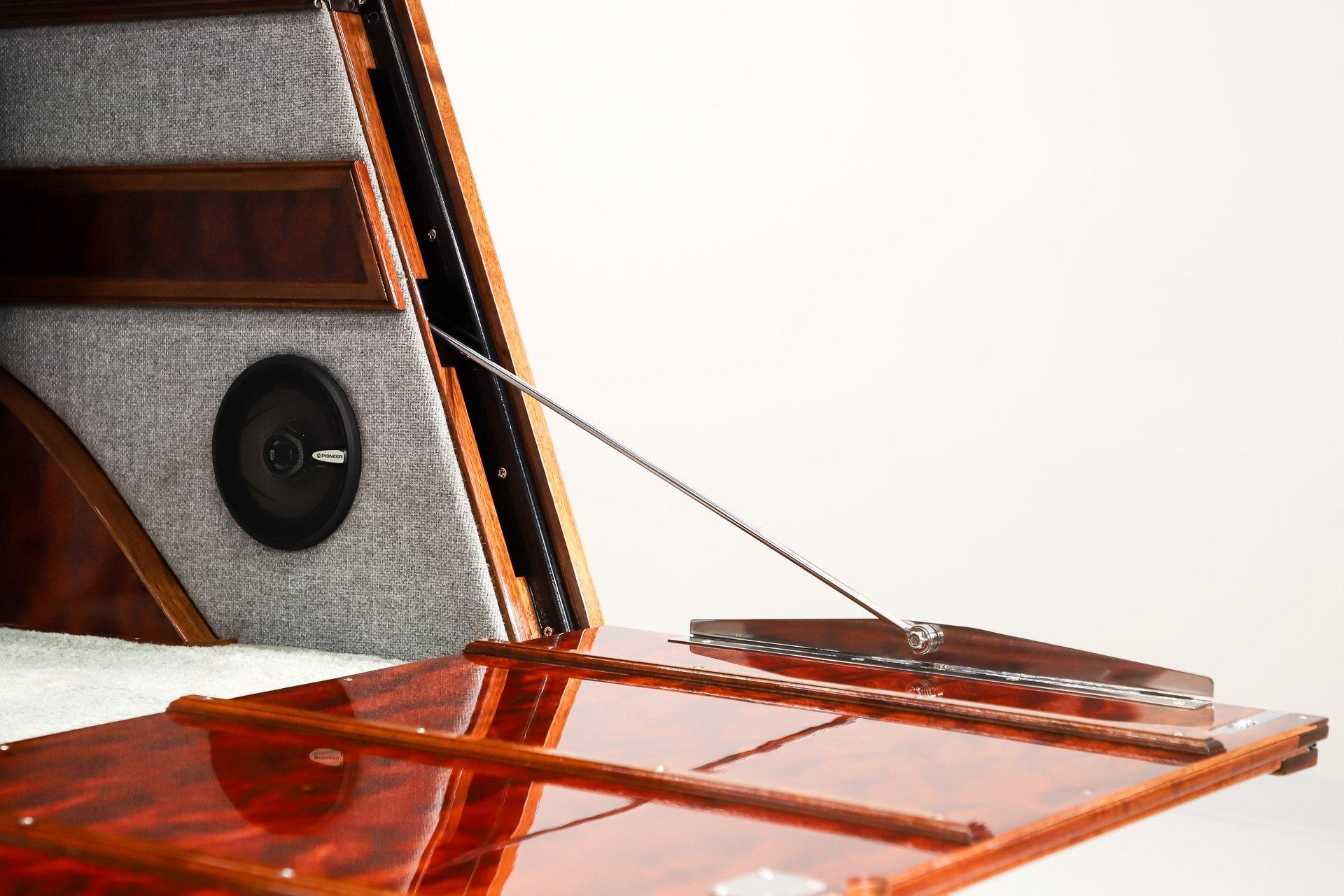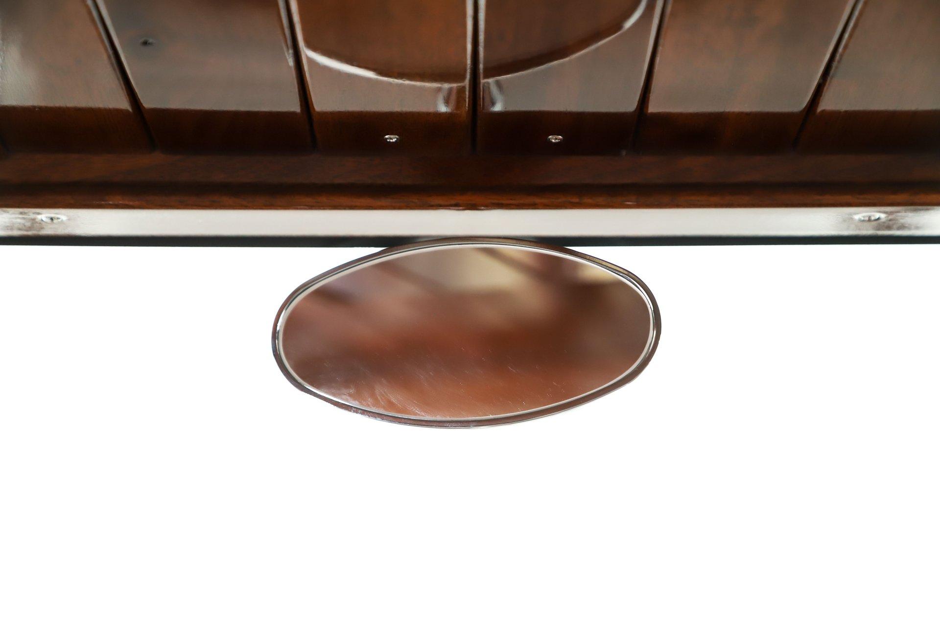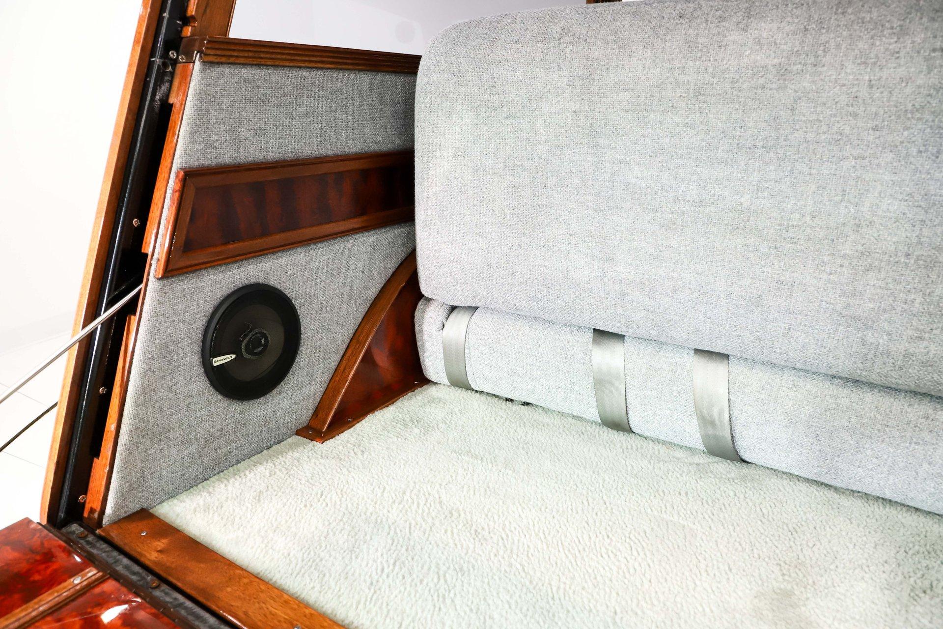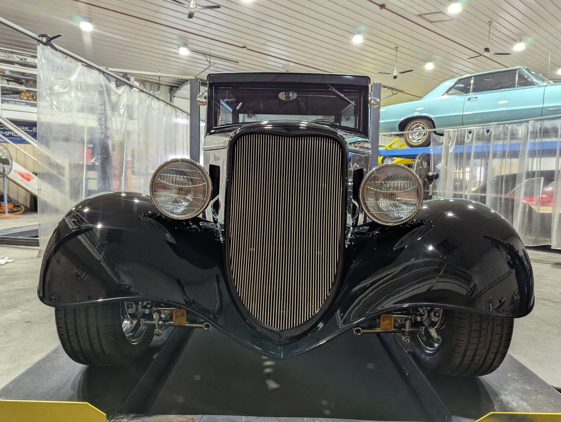 INTRODUCTION: Meticulous build top to bottom! The fit and finish is excellent, stainless hardware was used throughout, and it functions great! Less than 800 miles showing on the odometer, it still looks fresh. The walnut body, chromed Northstar engine and TCI chassis are just a few of the unique features on this classy hot rod. My guys really love this one, cars come and go here and this one has grabbed a lot of people's attention including my Father's, he flipped over it! EXTERIOR: Rare walnut body with Kewazingo inserts. The woodwork is solid and has a beautiful glossy finish. The doors use piano hinges for a solid and square fit, they shut like a regular car. The black painted surfaces are laser straight and have a mirror reflection. The padded top is finished in a rich black cloth. The glass is all smoked, the doors even have power windows! I love the big original style headlamps with Ford script lenses, the front turn signals are inconspicuously mounted under the fenders. In back it is using original style taillights along with flush mounted LED brake lights in the body. Those aren't the only flush mounted lights, there are some under the doors that light up when you open the doors with the hidden levers. How about the 4 individual side pipes showing under each fender! It is rolling proud and pretty on the Boyd's wheels: 17s in front, 18s in back and they are wearing Pirelli P Zero tires. INTERIOR: It is actually a very comfortable interior, I'm sitting in the car as I write this. The Tea seats are sporty buckets in front and a matching bench in back. Professionally installed gray tweed upholstery and cut carpet with bound edges. It also has 4 sets of seat belts, a Lokar shifter and chrome e-brake handle on the floor. There is certainly an abundance of beautiful woodwork inside as well, all with a high gloss polished finish in excellent shape. The walnut dash has vintage style gauges with Ford script and a matching quartz clock. The polished tilt column has a beautiful banjo style steering wheel with a walnut rim. An overhead console has a stereo and power deadbolt lock switches for the suicide doors. ENGINE COMPARTMENT: Cadillac Hot Rod Fabricators (CHRF) figured the really cool old school hot rods used Cadillac motors so why not incorporate the revolutionary Northstar engine into a Ford hot rod today. Well they successfully did and then turned it into a business. This 4.6 liter all aluminum V-8 with dual overhead cams and 4 valves per cylinder was built using CHRF components and innovation. It also has the Northstar Performance head bolt upgrade. It's covered in chrome and just looks cool, everyone thinks it's a Hemi! TRUNK COMPARTMENT: The rear is very accessible with easy to open upper and lower doors. When the tailgate is down it has a beautiful wood finish. UNDERSIDE: TCI chassis. Boxed and smoothed frame with tubular center support The front independent suspension is completely polished including the tubular control arms, swaybar, coilover adjustable gas shocks, spindles. in back it has a 4 link system with polished tubular control arms and panhard bar, coilover adjustable gas shocks. There are disc brakes at all 4 wheels , polished calipers, polished backing plates, polished master cylinder, chrome power booster, in front, e-brake. Rack & pinion steering. Polished stainless fuel tank. Looking up at the motor the oil pan is polished, the trans is a 700R4 overdrive automatic. polished aluminum driveshaft. Currie 9 inch rear with polished and finned center section chrome axle tubes. It's detailed under here, if it's not gloss black it's polished aluminum or chrome! SERVICE: We take pride in our cars and reputation. Therefore, we built a 2 million dollar, 10,000 square ft service center, and hired a team of technicians to service the essentials on every car we sell. CONCLUSION: The closer you look the more you will appreciate the extra care, time and skill that went into this build. I'm impressed! Vehicles are displayed in a museum setting. Admission applies without an appointment and is refunded with purchase, including a one-year museum membership. 815 385 3644 9-5 central Sales@volocars.com Answered ASAP Air conditioning Fuel injection Power brakes 4 wheel disc Rack & pinion Side exhaust TCI chassis Power windows Stereo system Tilt wheel Seatbelts Cloth top Smoked glass Boyd's wheels Pirelli tires
