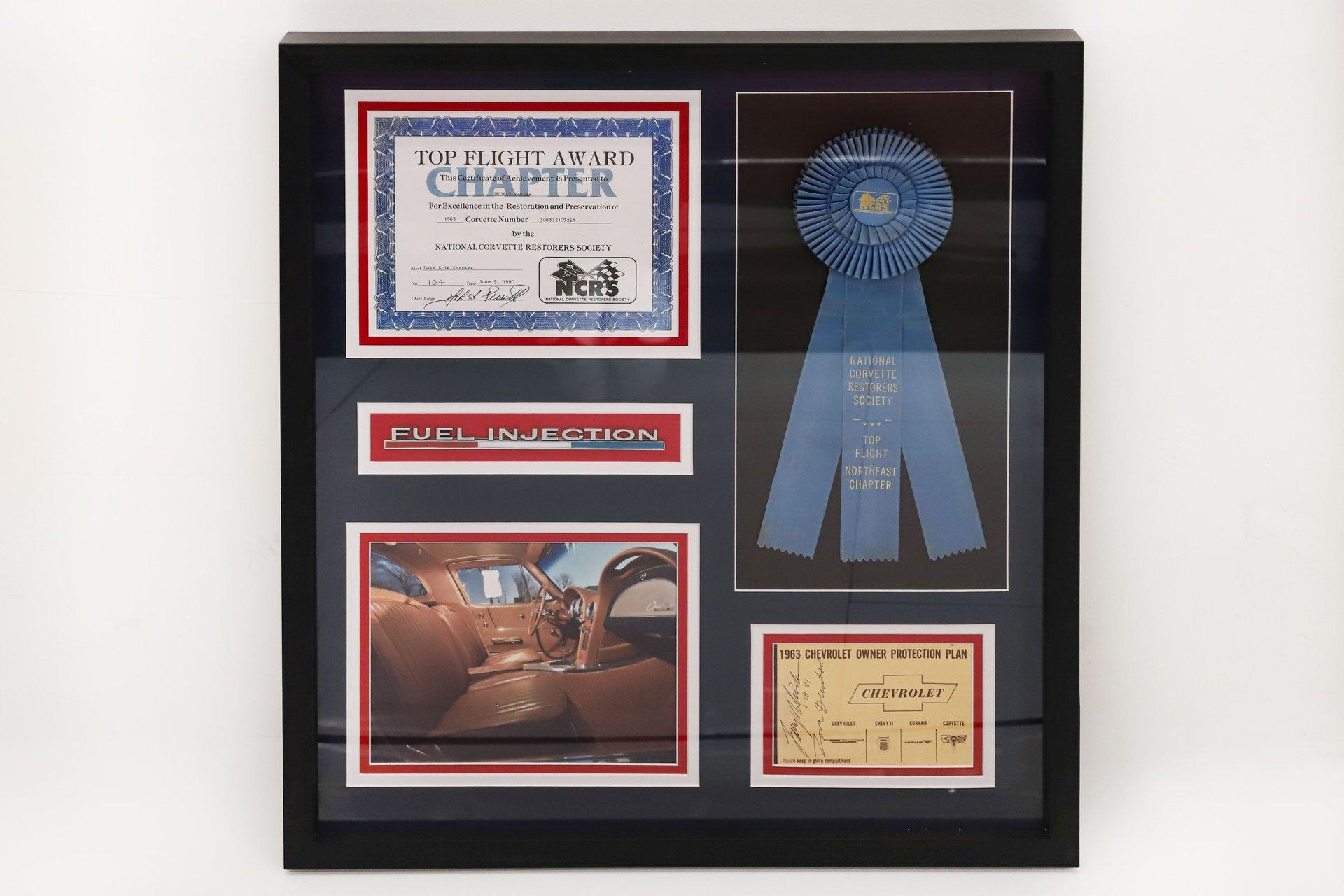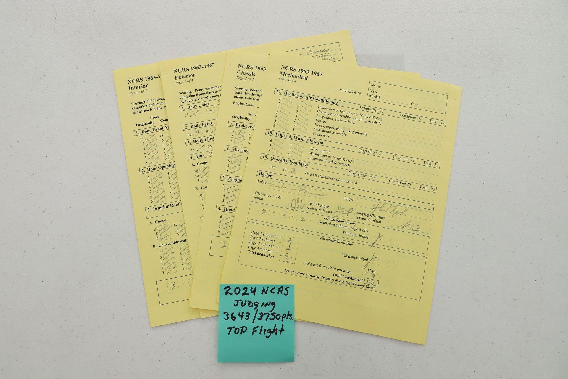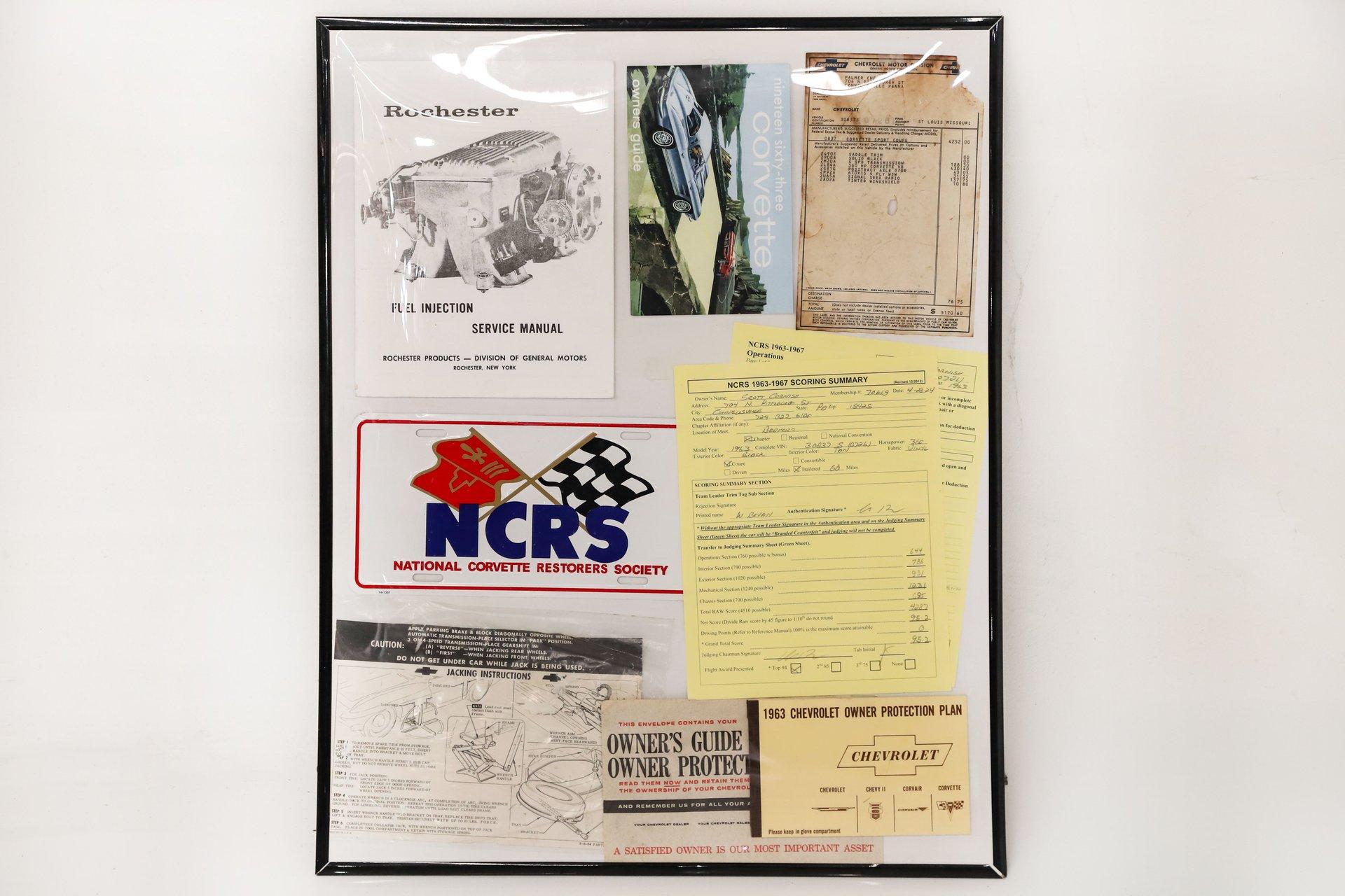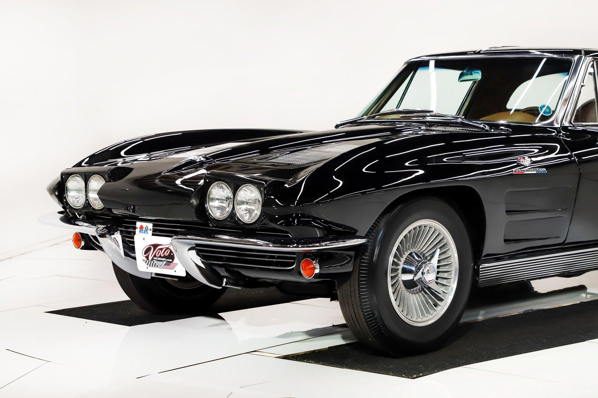 INTRODUCTION: 4 x NCRS Top Flight winner, 35,779 actual miles, 1 owner for 45 years! Factory Tuxedo Black is extremely desirable, add to it the saddle tan interior and you have one extremely rare combination! Oh yeah, it's a fuel injected, #s matching car as well. HISTORY: Scrutinized by several experts and repeatedly given top honors. You can rest assured this car is legit! Thomas Ranker bought the car in 1980 and owned it until 2024, 44 years! While he owned the car he won numerous awards including 3 Top Flights, Bloomington Silver Certified, 1st place Corvettes at Carlisle and more. He took such an interest he went on to become an NCRS judge himself (not allowed to judge his own car). It was his baby and he carefully maintained its low miles and originality. He sold it to Scott C. on 3-29-24, a collector who had been after the car for years. Scott had it judged again and it won Top Flight for the fourth time. It scored 3643/3750 points (40 points deducted for not having original hubcaps). We know Scott C. and I talked him out of the car for my Dad's collection. Scott regretted selling it, I'm sure my Dad will too! EXTERIOR: Factory born Tuxedo Black! Verified multiple times by multiple experts. Claimed to be a no hit body, it is straight and fits right. The headlights open and close properly, the doors can be shut with your pinky! The paint is polished so slick a fly couldn't land on it but it is about 40 years old and does have minor flaws. All of the chrome is bright. The “early” cars had a roller latch on the fuel door and a short stem bow tie mirror, this has both including correctly dated glass in the mirror. The moldings around the windows are straight and fit right. The glass is all original according to the date codes I deciphered, an original windshield helps verify low miles. It also has correct T3 headlights and reproduction BFG SilverTown tires. The knock off wheels are always a highly desirable feature. INTERIOR: Factory Saddle Tan interior, verified by experts. It is in outstanding condition floor to ceiling and very functional. The carpet front to back looks fresh and installed properly. The dash pads, door panels and headliner are mint. The original 1963 gauges include the 6500 redline tachometer - correct for a Fuelie. They all work including the clock, the original radio works too. The glove box door is 1963 only and in mint shape, inside is too. The console looks original and very good, home to the correct 4-speed shifter. The seat upholstery is excellent, the seatbelts are original. All of the trim, knobs etc are in great shape, everything fits properly too. The correct jack and lead hammer for the knock off wheels is in the rear compartment. ENGINE COMPARTMENT: Verified multiple times by experts, this is the original motor. Codes, casting #s, dates and VIN #s match. All the components are correct and proper. It has ignition shielding, finned valve covers that matches the finned fuel injection unit, correct hoses and clamps, even the belt is correct! It is detailed like the day it rolled off the assembly line. The 327-360hp engine is quite potent. It features a hot cam, mechanical lifters, domed pistons, high compression and the Rochester fuel injection. UNDERSIDE: 1963 was the first year for front and rear independent suspension. It was rebuilt and restored to factory condition from the black spiral shocks to the assembly line markings. It has its correct drum brake system all around, the e-brake assembly is hooked up. The dual exhaust is correct down to the GM part numbers on the mufflers and the polished tips going out through the valence. Looking up at the motor it is clean Chevy Orange, has the correct starter and canister type oil filter. The 4-speed transmission is VIN # matching and date coded to this car. The driveshaft leads back to its original posi rear end with 3.70 gears. The floors are excellent raw fiberglass like it's supposed to be, not painted over. The spare tire carrier is in great shape and complete including the original lock. SERVICE: We take pride in our cars and reputation. Therefore, we built a 2 million dollar, 10,000 square ft service center, and hired a team of technicians to service the essentials on every car we sell. CONCLUSION: This is a holy grail of split windows. Whether it goes to the most prestigious collection, or in someone's garage, you can rest assured that it is one of the most desirable in existence! Vehicles are displayed in a museum setting. Admission applies without an appointment and is refunded with purchase, including a one-year museum membership. 815 385 3644 9-5 central Sales@volocars.com Answered ASAP Fuel injection 3.70 posi Signal seek radio Tinted windshield Knock off wheels Reproduction tires 4 x Top Flight winner NCCB Silver Certified