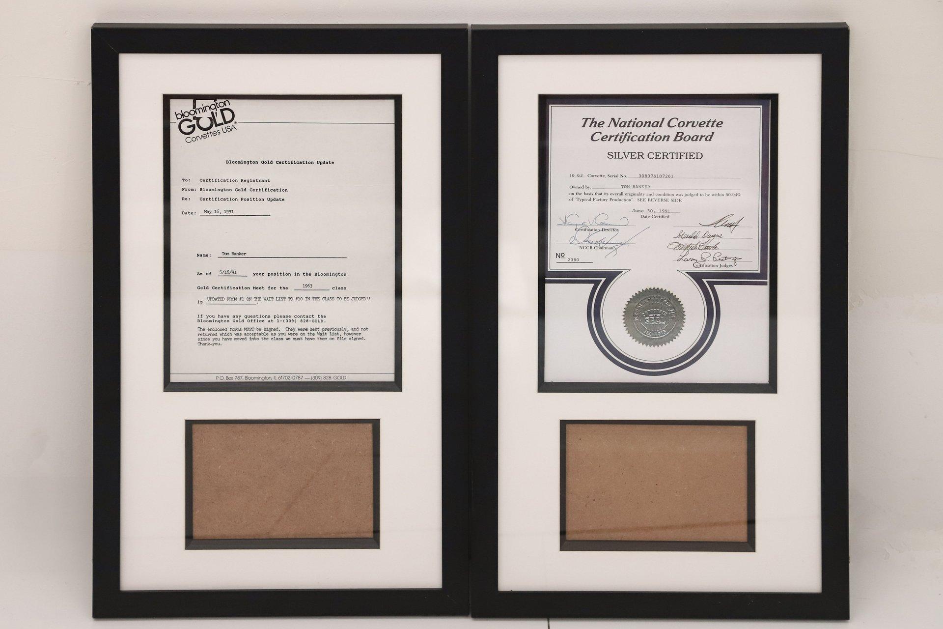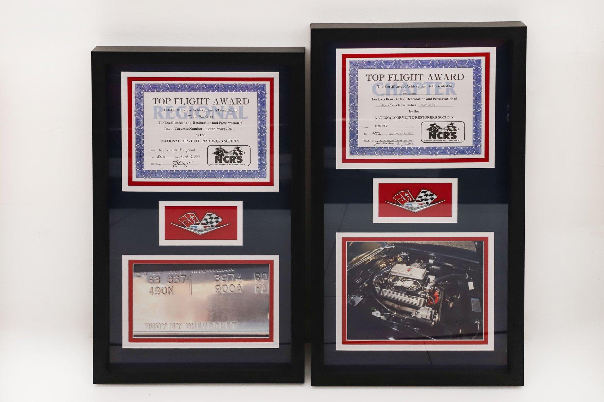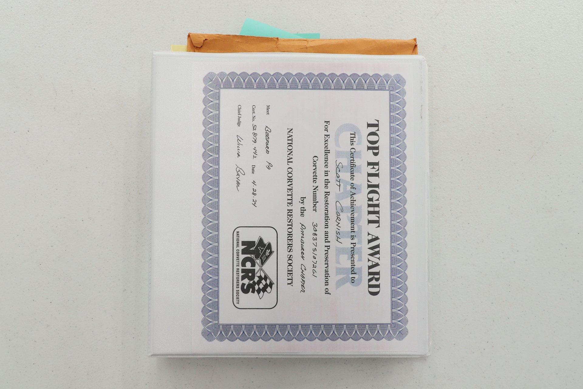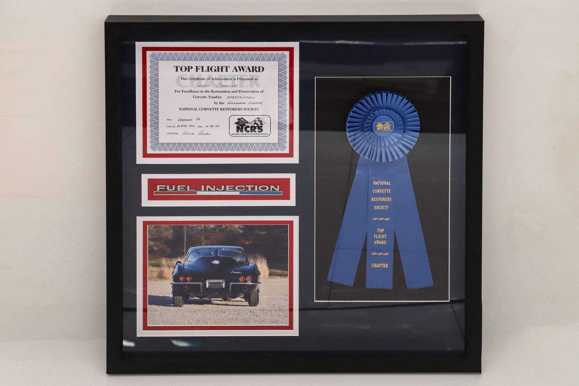 INTRODUCTION: 4 x NCRS Top Flight winner, 35,779 actual miles, 1 owner for 45 years! Factory Tuxedo Black is extremely desirable, add to it the saddle tan interior and you have one extremely rare combination! Oh yeah, it's a fuel injected, #s matching car as well. HISTORY: Scrutinized by several experts and repeatedly given top honors. You can rest assured this car is legit! Thomas Ranker bought the car in 1980 and owned it until 2024, 44 years! While he owned the car he won numerous awards including 3 Top Flights, Bloomington Silver Certified, 1st place Corvettes at Carlisle and more. He took such an interest he went on to become an NCRS judge himself (not allowed to judge his own car). It was his baby and he carefully maintained its low miles and originality. He sold it to Scott C. on 3-29-24, a collector who had been after the car for years. Scott had it judged again and it won Top Flight for the fourth time. It scored 3643/3750 points (40 points deducted for not having original hubcaps). We know Scott C. and I talked him out of the car for my Dad's collection. Scott regretted selling it, I'm sure my Dad will too! EXTERIOR: Factory born Tuxedo Black! Verified multiple times by multiple experts. Claimed to be a no hit body, it is straight and fits right. The headlights open and close properly, the doors can be shut with your pinky! The paint is polished so slick a fly couldn't land on it but it is about 40 years old and does have minor flaws. All of the chrome is bright. The “early” cars had a roller latch on the fuel door and a short stem bow tie mirror, this has both including correctly dated glass in the mirror. The moldings around the windows are straight and fit right. The glass is all original according to the date codes I deciphered, an original windshield helps verify low miles. It also has correct T3 headlights and reproduction BFG SilverTown tires. The knock off wheels are always a highly desirable feature. INTERIOR: Factory Saddle Tan interior, verified by experts. It is in outstanding condition floor to ceiling and very functional. The carpet front to back looks fresh and installed properly. The dash pads, door panels and headliner are mint. The original 1963 gauges include the 6500 redline tachometer - correct for a Fuelie. They all work including the clock, the original radio works too. The glove box door is 1963 only and in mint shape, inside is too. The console looks original and very good, home to the correct 4-speed shifter. The seat upholstery is excellent, the seatbelts are original. All of the trim, knobs etc are in great shape, everything fits properly too. The correct jack and lead hammer for the knock off wheels is in the rear compartment. ENGINE COMPARTMENT: Verified multiple times by experts, this is the original motor. Codes, casting #s, dates and VIN #s match. All the components are correct and proper. It has ignition shielding, finned valve covers that matches the finned fuel injection unit, correct hoses and clamps, even the belt is correct! It is detailed like the day it rolled off the assembly line. The 327-360hp engine is quite potent. It features a hot cam, mechanical lifters, domed pistons, high compression and the Rochester fuel injection. UNDERSIDE: 1963 was the first year for front and rear independent suspension. It was rebuilt and restored to factory condition from the black spiral shocks to the assembly line markings. It has its correct drum brake system all around, the e-brake assembly is hooked up. The dual exhaust is correct down to the GM part numbers on the mufflers and the polished tips going out through the valence. Looking up at the motor it is clean Chevy Orange, has the correct starter and canister type oil filter. The 4-speed transmission is VIN # matching and date coded to this car. The driveshaft leads back to its original posi rear end with 3.70 gears. The floors are excellent raw fiberglass like it's supposed to be, not painted over. The spare tire carrier is in great shape and complete including the original lock. SERVICE: We take pride in our cars and reputation. Therefore, we built a 2 million dollar, 10,000 square ft service center, and hired a team of technicians to service the essentials on every car we sell. CONCLUSION: This is a holy grail of split windows. Whether it goes to the most prestigious collection, or in someone's garage, you can rest assured that it is one of the most desirable in existence! Vehicles are displayed in a museum setting. Admission applies without an appointment and is refunded with purchase, including a one-year museum membership. 815 385 3644 9-5 central Sales@volocars.com Answered ASAP Fuel injection 3.70 posi Signal seek radio Tinted windshield Knock off wheels Reproduction tires 4 x Top Flight winner NCCB Silver Certified