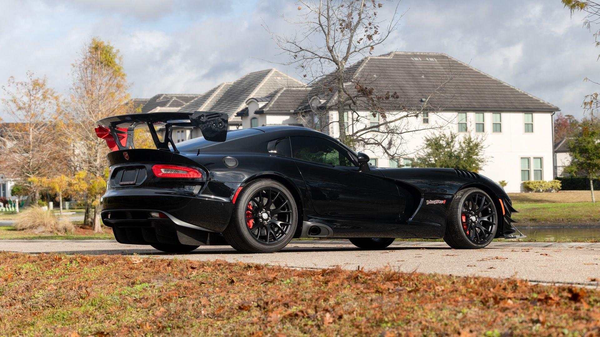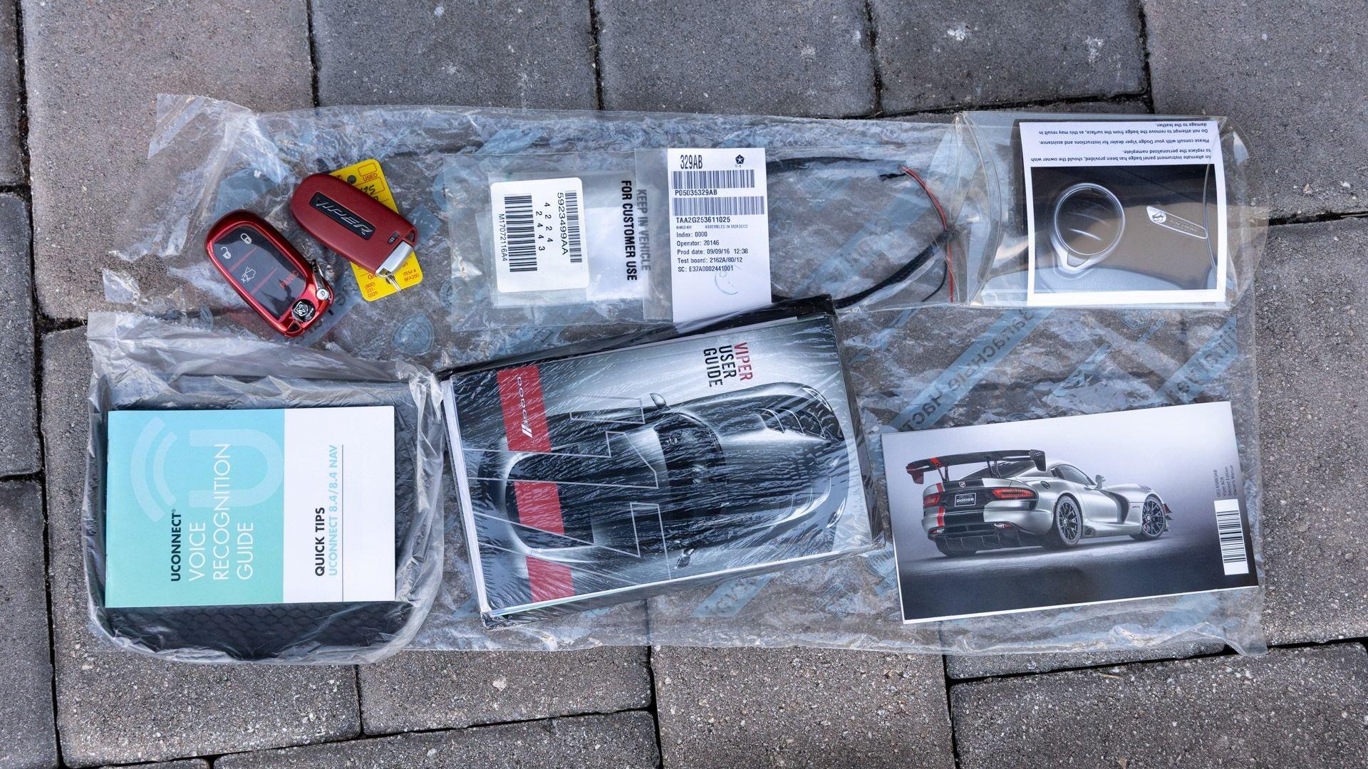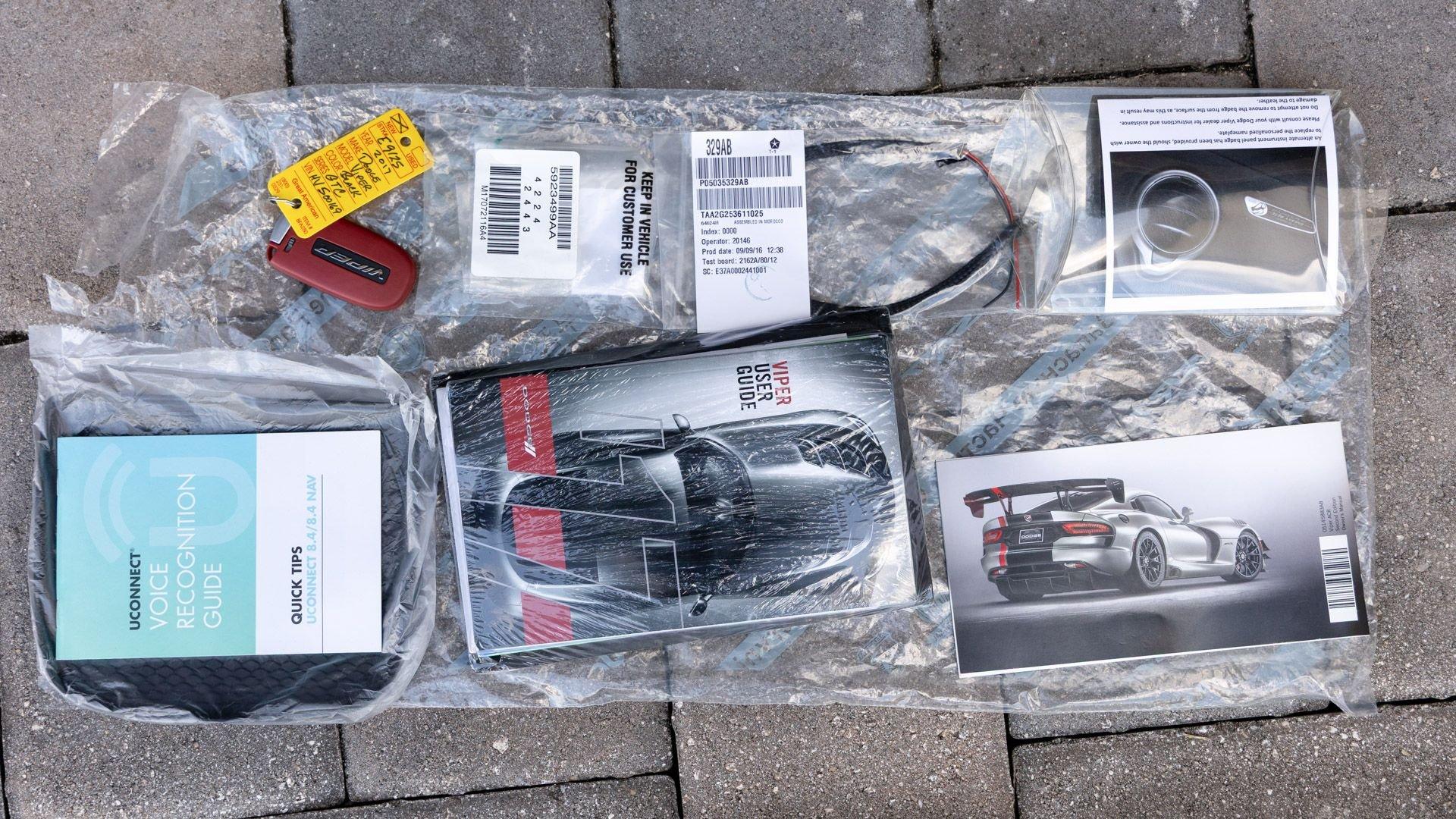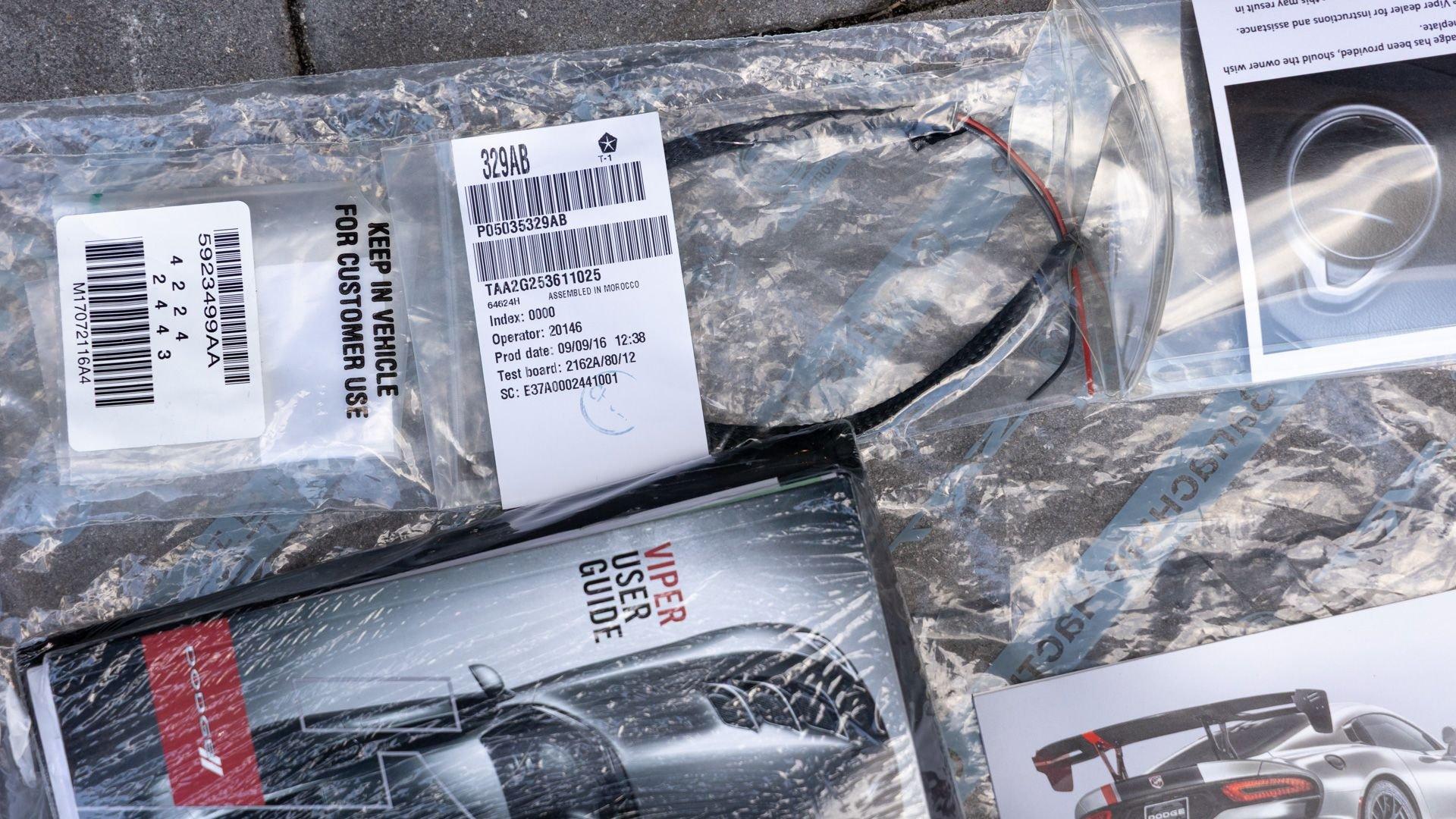 Chassis No. 1C3BDEDZ8HV500168 VoooDoo II Edition No. 30/31 The Dodge Viper ACR (American Club Racer), launched in 2016, took the performance car world by storm by setting 13 road course lap records, the most of any production car, as certified by the SCCA. At the heart of the Viper ACR is a formidable 8.4-liter V10 engine, delivering an impressive 645 horsepower through a six-speed manual transmission. It features Brembo Carbon Ceramic Matrix 15-inch rotors with six-piston calipers and double-adjustable Bilstein coil-over suspension capable of sustaining up to 1.5 g while cornering. This 2017 Dodge Viper is the 30th of just 31 VoooDoo II Edition ACRs—one of the most evocative tributes built to commemorate both the Viper’s 25th anniversary and the end of the model’s production in 2017. Built to revive the 2010 special edition Viper ACR of the same name, the 2017 VoooDoo II Edition ACR is unmistakable in specification—finished in Venom Black with a graphite metallic ACR driver’s stripe and red tracer outline, complemented by VoooDoo II exterior sill decals and badges. Step inside its black Alcantara and leather-trimmed ACR interior to discover silver accent stitching throughout, plus a serialized VoooDoo II instrument panel plaque above the glove compartment. It is further equipped with the desirable Extreme Aero Package ($6,900), which further elevates the vehicle's aerodynamic capabilities with an extreme front splitter, removable hood louvers to reduce front wheel drag, four dive planes, a rear carbon fiber diffuser, and a 74-inch adjustable dual-element rear wing that combine to produce one ton of downforce at 177 miles per hour. According to its clean CARFAX Vehicle History Report, this special Viper ACR was sold new in July 2017 through Ed Tomko Chrysler Jeep Dodge and was first registered in New Jersey. It has remained under single ownership, accumulating just 150 miles at cataloging. This example is furnished with its original delivery items including two keys, front splitter, owner's manuals, and supplementary literature. This 2017 Dodge Viper Vooodoo II Edition ACR-Extreme is offered in collector grade condition and additionally outfitted with some of the most desirable options during the final year of production. It is a stunning blend of track-focused, circuit capability and street legal use producing an analog driving experience nearly impossible to match today.