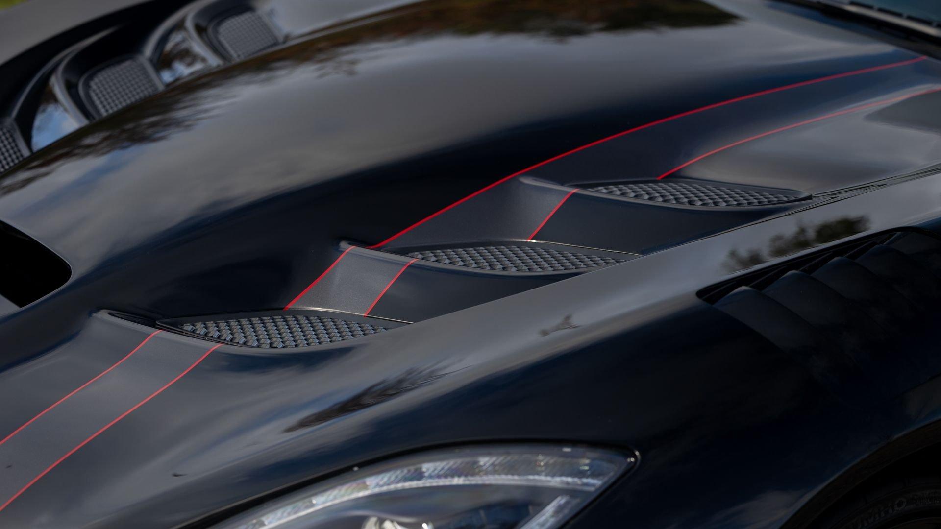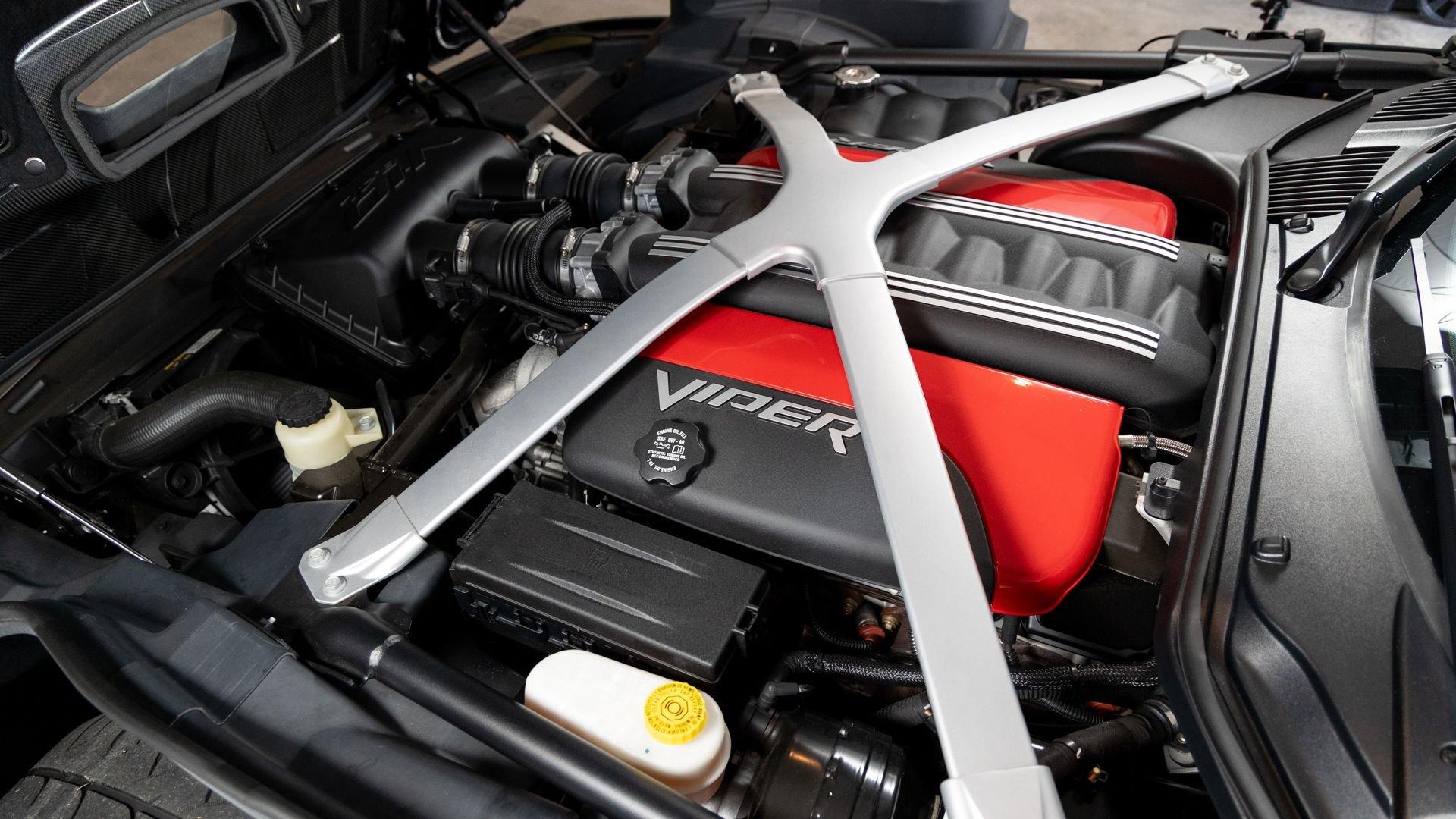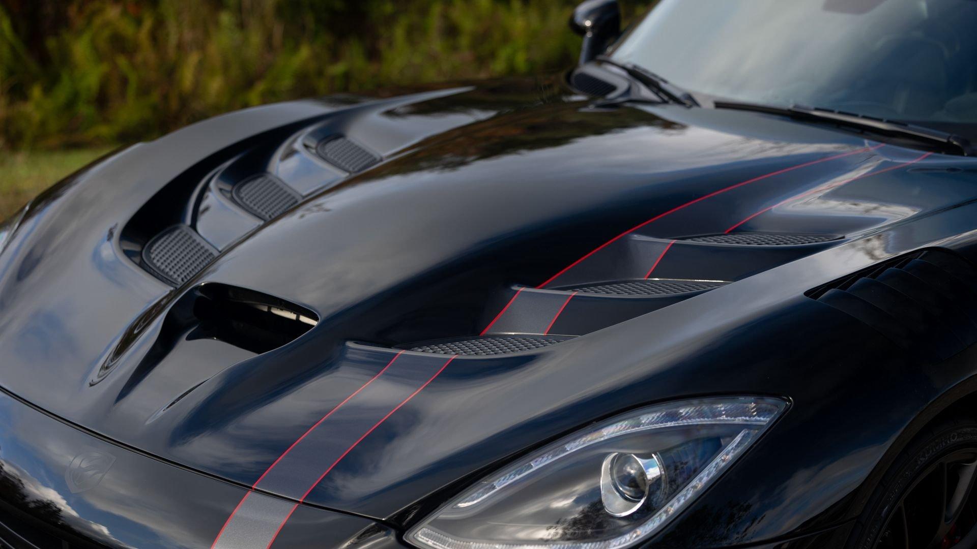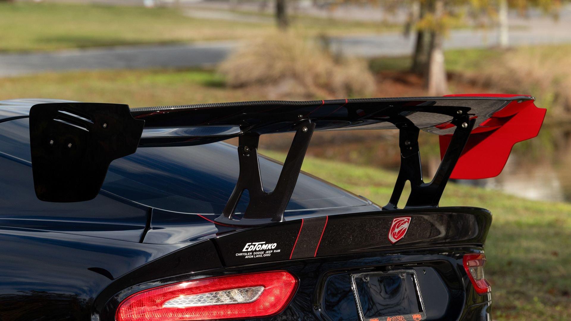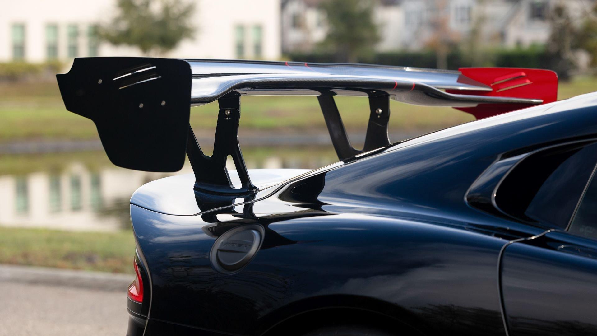 Chassis No. 1C3BDEDZ8HV500168 VoooDoo II Edition No. 30/31 The Dodge Viper ACR (American Club Racer), launched in 2016, took the performance car world by storm by setting 13 road course lap records, the most of any production car, as certified by the SCCA. At the heart of the Viper ACR is a formidable 8.4-liter V10 engine, delivering an impressive 645 horsepower through a six-speed manual transmission. It features Brembo Carbon Ceramic Matrix 15-inch rotors with six-piston calipers and double-adjustable Bilstein coil-over suspension capable of sustaining up to 1.5 g while cornering. This 2017 Dodge Viper is the 30th of just 31 VoooDoo II Edition ACRs—one of the most evocative tributes built to commemorate both the Viper’s 25th anniversary and the end of the model’s production in 2017. Built to revive the 2010 special edition Viper ACR of the same name, the 2017 VoooDoo II Edition ACR is unmistakable in specification—finished in Venom Black with a graphite metallic ACR driver’s stripe and red tracer outline, complemented by VoooDoo II exterior sill decals and badges. Step inside its black Alcantara and leather-trimmed ACR interior to discover silver accent stitching throughout, plus a serialized VoooDoo II instrument panel plaque above the glove compartment. It is further equipped with the desirable Extreme Aero Package ($6,900), which further elevates the vehicle's aerodynamic capabilities with an extreme front splitter, removable hood louvers to reduce front wheel drag, four dive planes, a rear carbon fiber diffuser, and a 74-inch adjustable dual-element rear wing that combine to produce one ton of downforce at 177 miles per hour. According to its clean CARFAX Vehicle History Report, this special Viper ACR was sold new in July 2017 through Ed Tomko Chrysler Jeep Dodge and was first registered in New Jersey. It has remained under single ownership, accumulating just 150 miles at cataloging. This example is furnished with its original delivery items including two keys, front splitter, owner's manuals, and supplementary literature. This 2017 Dodge Viper Vooodoo II Edition ACR-Extreme is offered in collector grade condition and additionally outfitted with some of the most desirable options during the final year of production. It is a stunning blend of track-focused, circuit capability and street legal use producing an analog driving experience nearly impossible to match today.