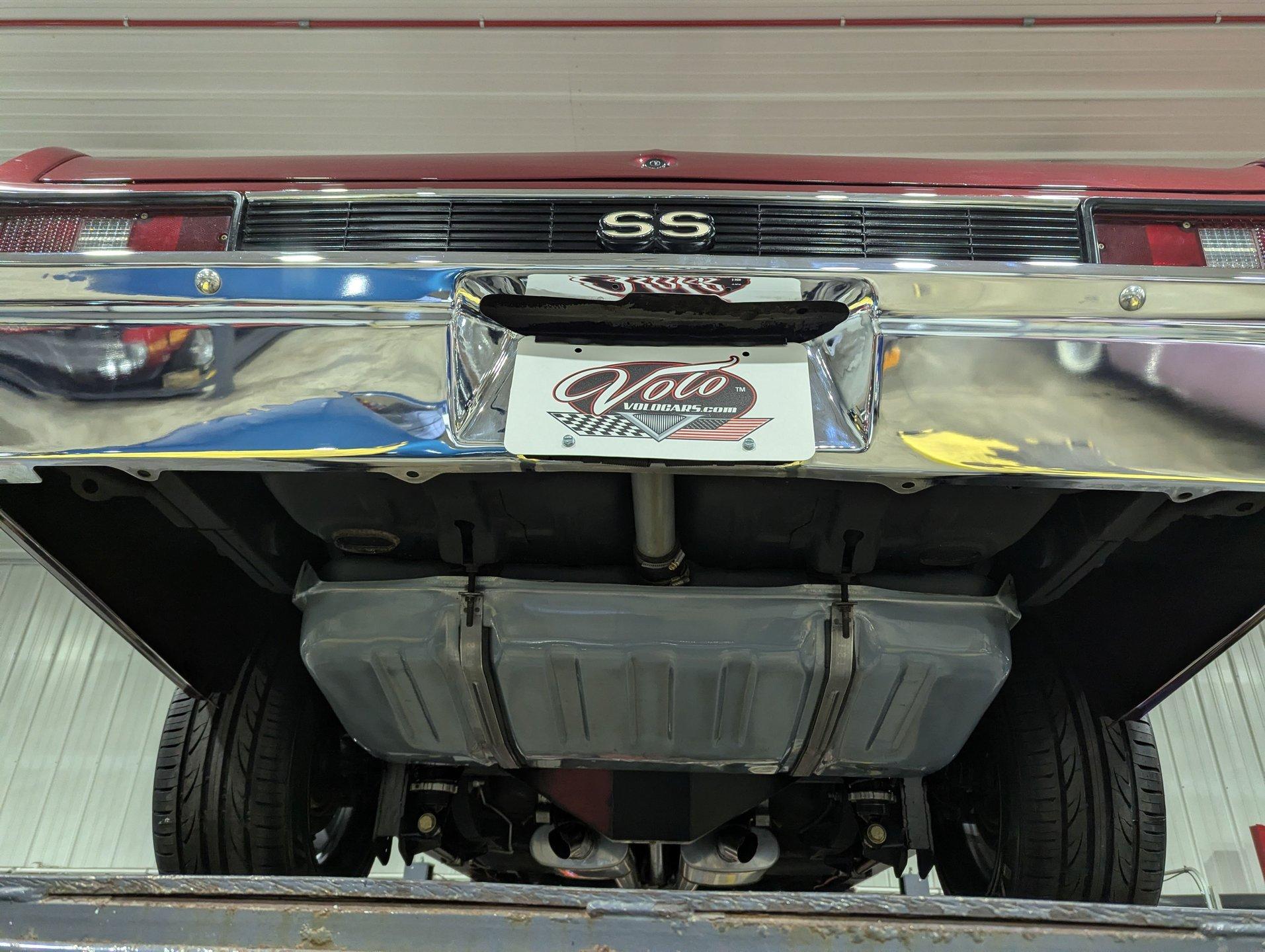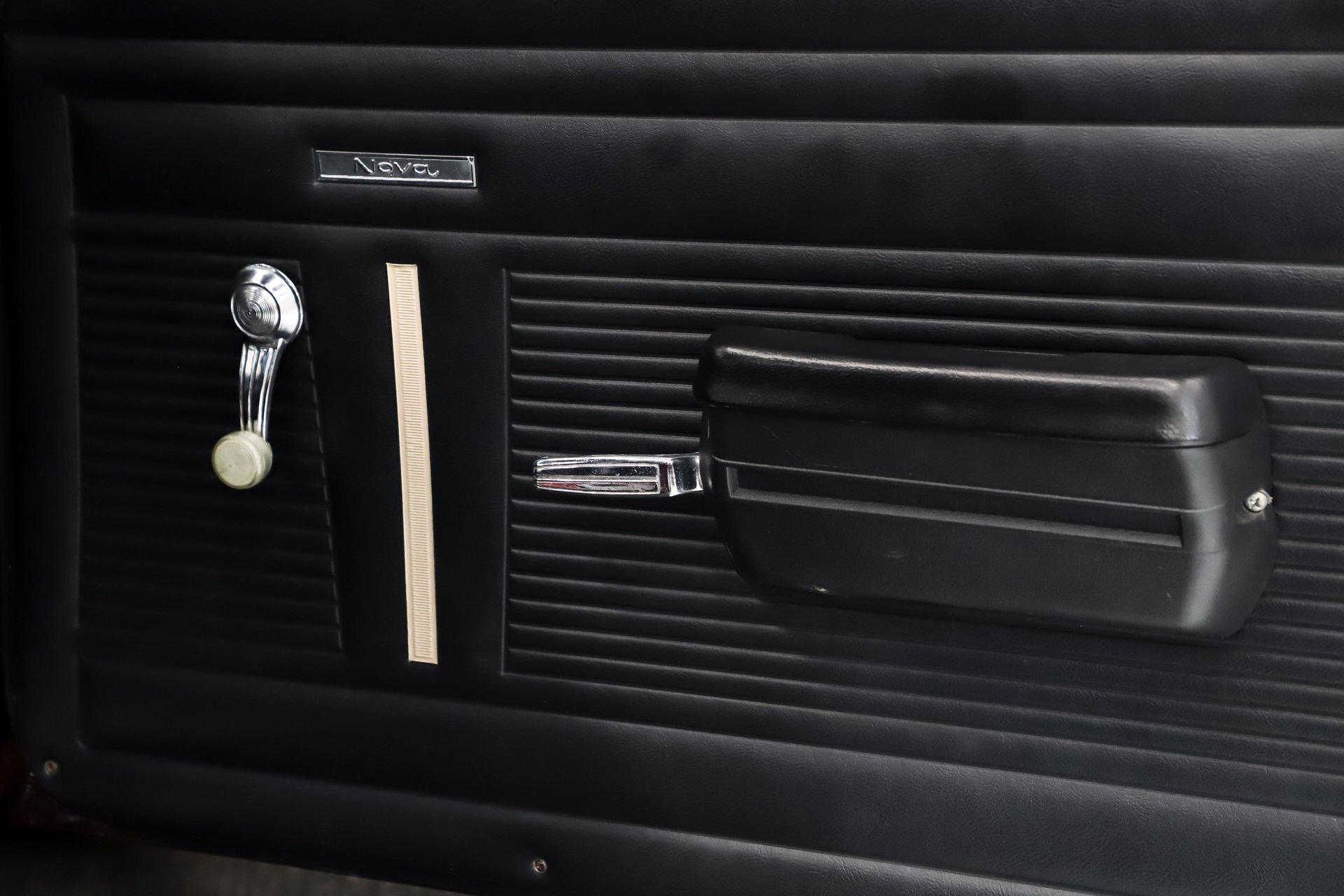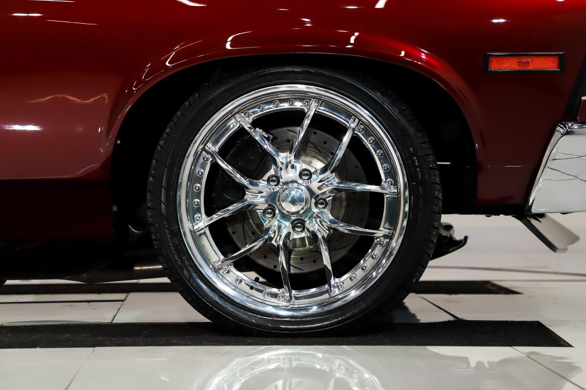 INTRODUCTION: The color, stance and wheels make this Nova a knockout! The LS motor and upgraded chassis make it just as awesome to drive! I promise you will be bombarded with looks, thumbs up and compliments. EXTERIOR: Wow, it's beautiful! The body is laser straight, fits right and has a cowl hood. Painted a beautiful burgundy metallic, it looks like a piece of hard candy. Most of the trim has been blacked out, the bumpers have a fresh bright chrome finish. Upfront there's a carbon fiber front spoiler and Holley Retrobright LED headlights. The windshield and back window were replaced, the side glass has been tinted. The wheels may be the star of the show! 18x7 Billet Specialties in front and 18x9.5s in back and they are wrapped in performance tires. INTERIOR: This is a full custom interior, sporty and comfy! TMI seats front and back with alcantara inserts and red stitching. There is custom carpet on the floor with embroidered mats and up above is a fiberglass 1 piece headliner covered in alcantara with matching visors. The side panels are reproductions. The center console offers an armrest and cup holders. The dash pad is new and the e-brake instrument panel is custom with a totally cool Holley digital screen for the engine's vitals. Upgraded Vintage Air electric slide control panel and a tilt column with a leather cushion grip three spoke wheel. It also has a Bluetooth system with kick panel speakers, 6x9s and an amplifier. The LED dome light is nice and bright. ENGINE COMPARTMENT: That's a strong and reliable 6.0L LS motor with a BTR Stage III cam, PRC aluminum heads, stainless headers, polished air intake tube and a Terminator X ECU. The front of the motor has all the modern components and serpentine belt system. Other features include modern heat and air conditioning, modern power steering and power brake systems. Upgraded aluminum radiator with an aluminum overflow bottle and a big electric fan. The engine bay is painted beautiful like the car, the firewall was smoothed out and the wiper motor was deleted. TRUNK COMPARTMENT: Under the lid and the jamb are painted slick like the car. Inside is lined with a sound and the floor was carpeted. It was boxed and upholstered, the gel battery was relocated behind the rear panel. UNDERSIDE: The body was off the frame, it appears to be solid with two floor pan patches. The steering and suspension was completely redone and upgraded with fat tubular control arms, lowering springs, gas shocks, billet spindles and a heavier swaybar. In back is a four link setup with tubular control arms, coilover adjustable gas shocks and a panhard bar. The fuel system was replaced and compatible with the fuel injection motor. It has a custom exhaust with stainless mufflers and was coated. There are drilled and slotted disc brakes at all four of the wheels. Looking up at the motor it has an aluminum Holley oil pan and high torque starter. The trans is a 4L60 overdrive automatic for easy highway cruising. In back is a rad looking Fab 9 narrowed rear end with an aluminum center section and 3.73 posi gears. SERVICE: We take pride in our cars and reputation. Therefore, we built a 2 million dollar, 10,000 square ft service center, and hired a team of technicians to service the essentials on every car we sell. CONCLUSION: Bottomline, this is a hot car! Outside on a sunny day- Wow! It's so much more than a pretty face though- it's an exhilarating, comfortable car to drive too. Vehicles are displayed in a museum setting. Admission applies without an appointment and is refunded with purchase, including a one-year museum membership. 815 385 3644 9-5 central Sales@volocars.com Answered ASAP Air conditioning Power steering Power brakes 4 wheel disc 3.73 posi Fuel injection Tilt wheel TMI seats Console Digital dash display Bluetooth stereo Tinted glass Cowl hood Front spoiler Billet Specialties wheels