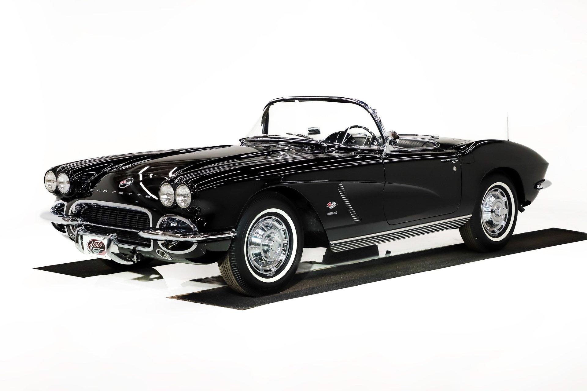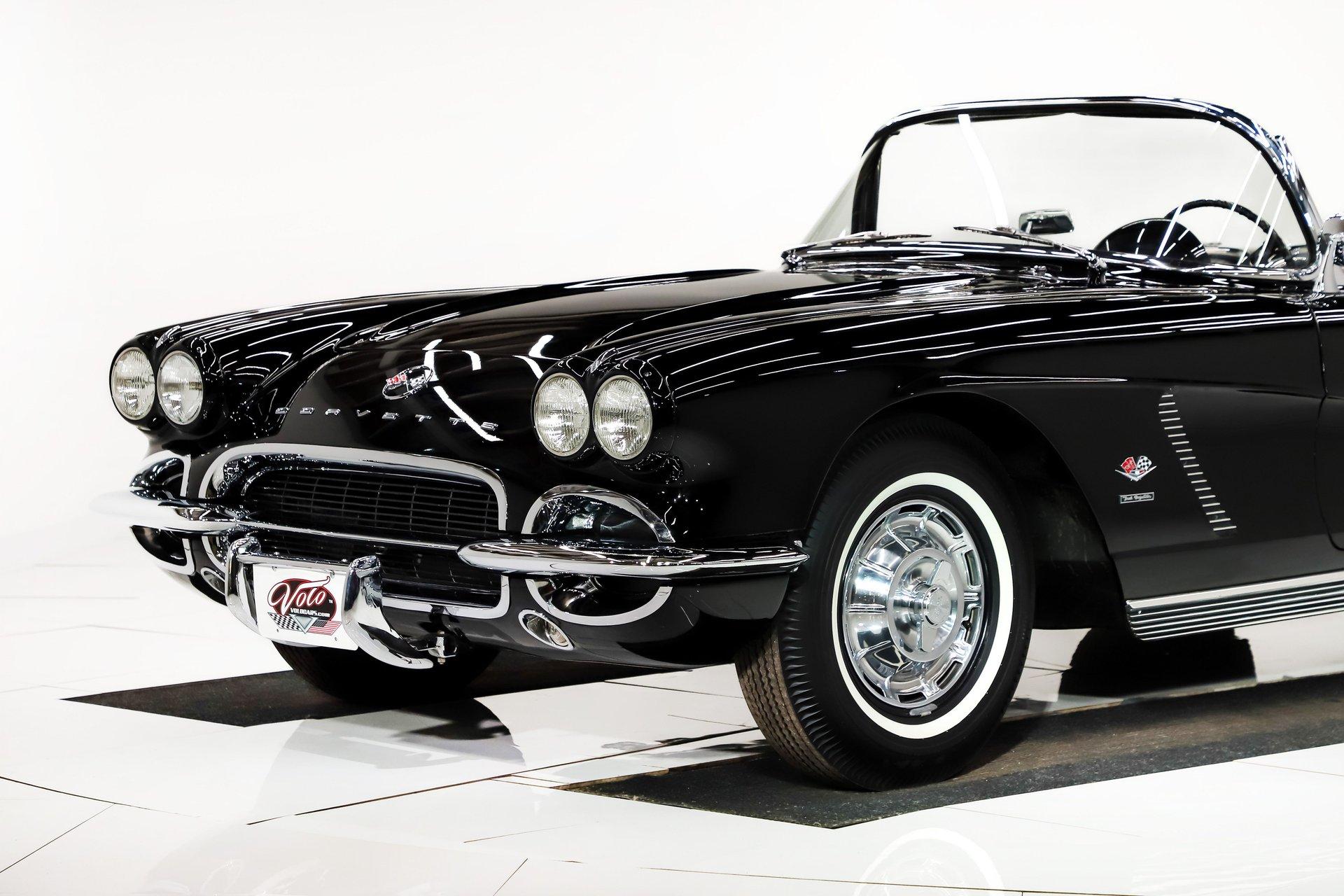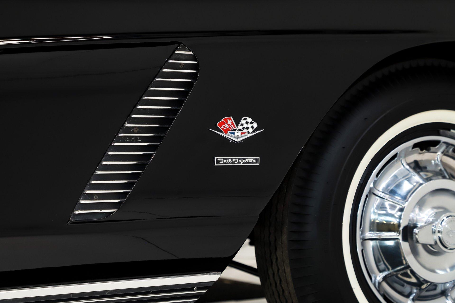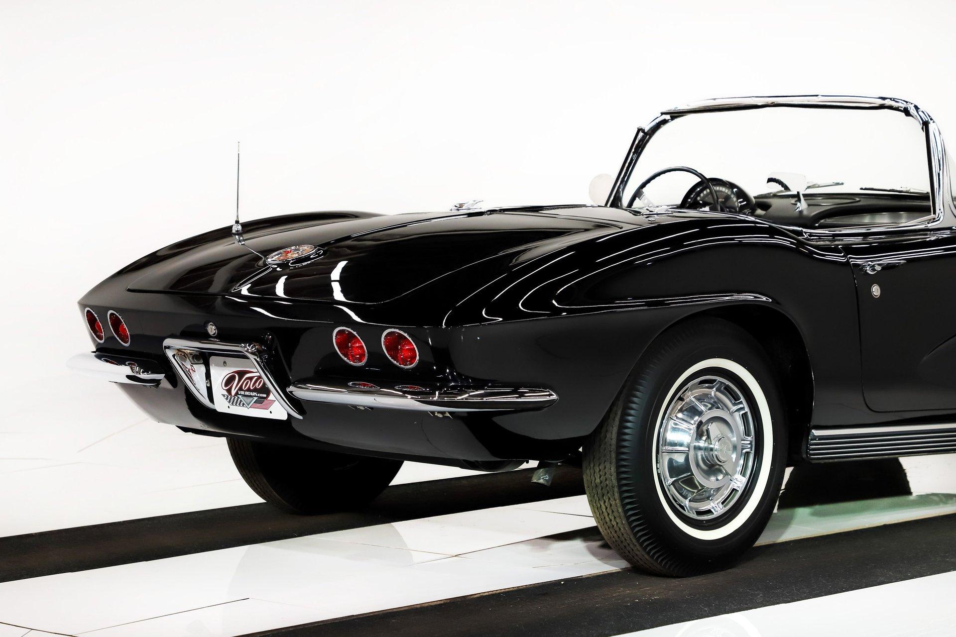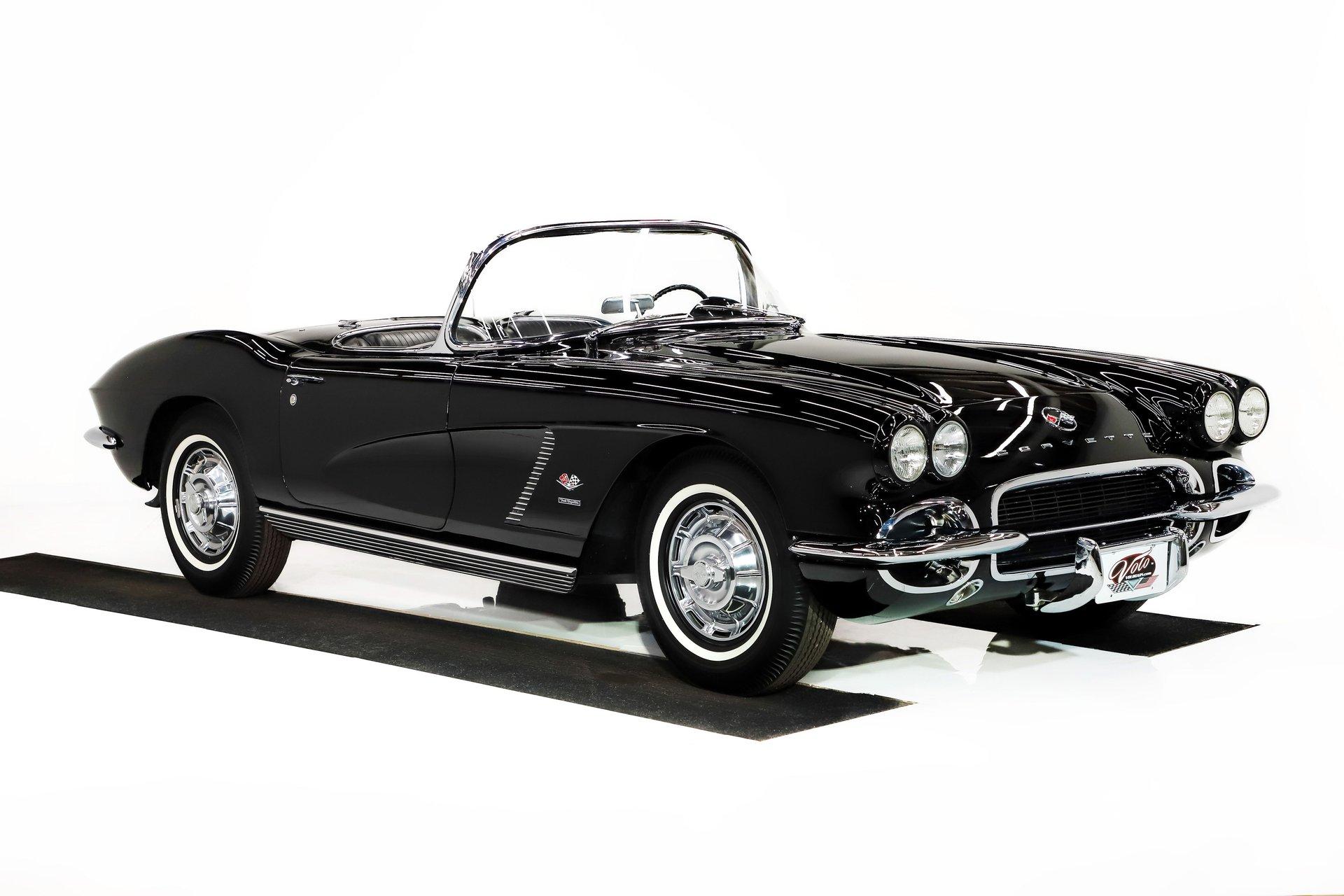 INTRODUCTION: A two top Fuelie! VIN #s matching 327 fuelie, 4 speed manual trans, and 4.11 posi rear end. Being triple black doesn't hurt it either; what a mischievous and gorgeous color combination. It's been nicely restored, starts easily, and drives fantastic. This is the pinnacle of first generation Corvettes! EXTERIOR: Desirable color combo! Plus it's a 2 topper that includes a folding black convertible top and a removable hardtop that matches the exterior paint. Very good fit and finishes throughout with consistent gaps and doors that close easily. Looking down the side of the nice and straight body is impressive with its smooth contours and sharp lines. The paint has a shiny high gloss finish and the brightwork has a lustrous shine. The weatherstrips are soft and pliable. It's sitting pretty on a set of 15” painted steel rims with factory spinner hubcaps and reproduction Firestone Deluxe Champion whitewall tires. INTERIOR: Very nicely restored! It has the correct style grey and black speckled carpet that's in great shape. The upholstery and door panels were replaced plus the dash pad is fresh. The fiberglass was repainted and has a nice shiny finish. All the gauges are clean with clear lenses and it has the correct 6500 redline tachometer. It also has the original style Wonderbar in the factory location. All the knobs, handles, armrests look great. Correct lockout shifter with original knob, and a new bezel. It has seat belts and some embroidered mats too. ENGINE COMPARTMENT: Great originality! The original #’s matching fuel injected 327 with 360 horsepower. The casting codes and dates line up, the matching vin is stamped on the pad, the fuel injection unit even has correct #s on its tag. In addition to the fuel injection some of the other features included an aggressive cam, domed pistons, high compression, high revving solid lifters, high performance heads and they were dressed with finned aluminum valve covers. It has correct air cleaner, ignition shielding, deep groove pulleys, choke tube, glass fuel filter etc. Correct radiator, shroud, fan, expansion tank and even the clamps. It is detailed very nicely. TRUNK COMPARTMENT: Beautifully finished! The underside of the trunk lid, inside the jamb, and the trunk pan have all been neatly repainted. The black rubber mat, divider, latch mechanism, and weatherstrip were all replaced. Under the mat is all clean fiberglass and a spare tire. A car cover is also included. UNDERSIDE: It's very clean, well preserved and maintained as needed. The floors are still in their raw fiberglass and have not been painted over like most of them. The frame and chassis components are clean metal painted satin black. After our inspection of the suspension and steering we replaced the kingpins and bushings then had the front end aligned. It still has its travel limit straps in back.The exhaust system looks solid and has a crossover pipe. The brakes are working properly, e-brake is hooked up. Looking up at the motor it is clean and has the correct canister type oil filter. The original #s matching T10 4-speed was just rebuilt and it has a new clutch. The u-joints look fresh on the driveshaft which leads back to its original 4.11 posi; dated 1962, code CN. SERVICE: Turnkey ready! We take pride in our cars and reputation. Therefore, we built a 2 million dollar, 10,000 square ft service center, and hired a team of technicians to service the essentials on every car we sell. CONCLUSION: This is a classic Corvette with aggressive power and looks to match! It's exhilarating to drive, so much more fun than stocks or bonds. Vehicles are displayed in a museum setting. Admission applies without an appointment and is refunded with purchase, including a one-year museum membership. 815-385-3644 9-5 central Sales@volocars.com Answered ASAP Fuel injection 4.11 posi Removable hardtop Convertible top Seatbelts Reproduction whitewalls