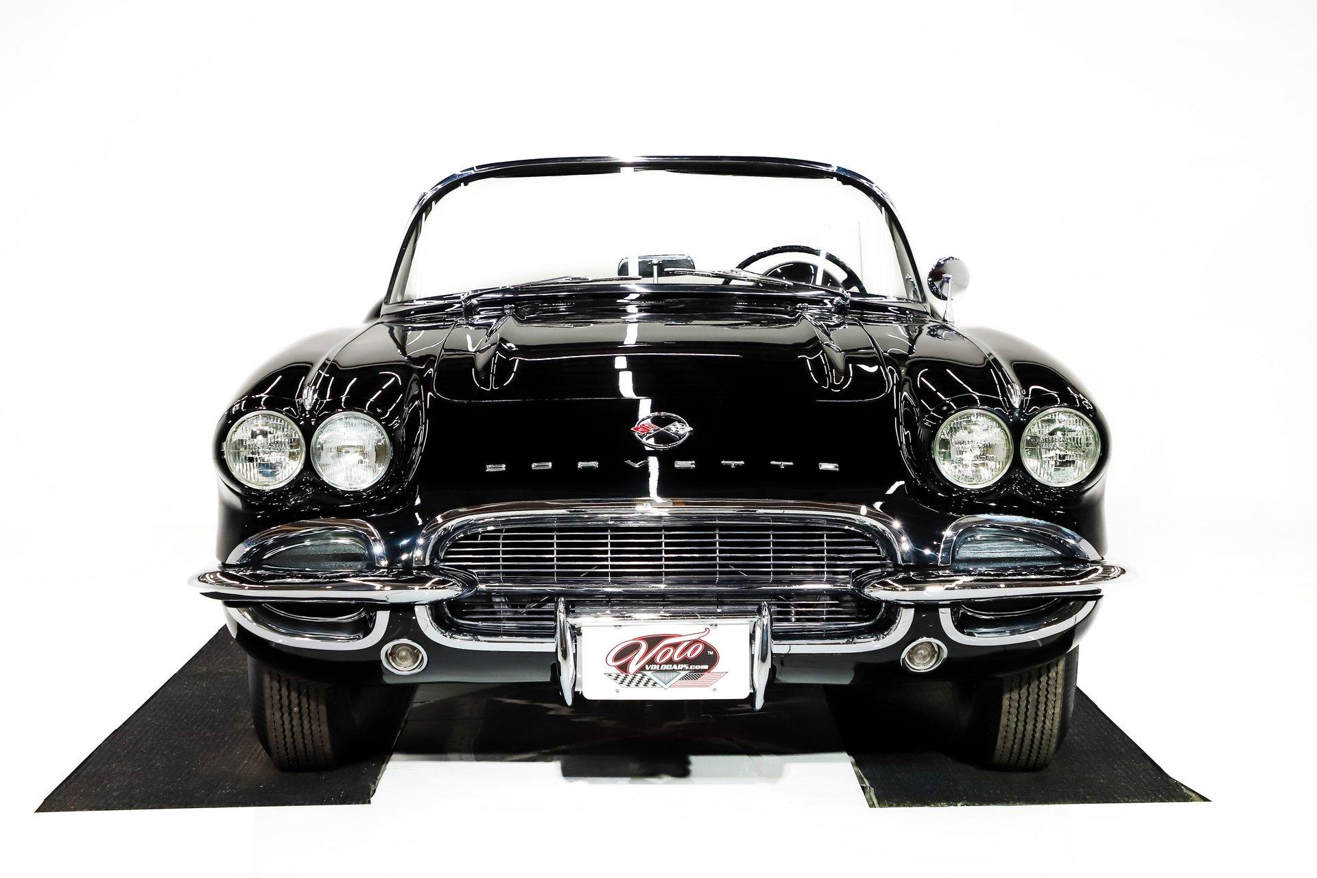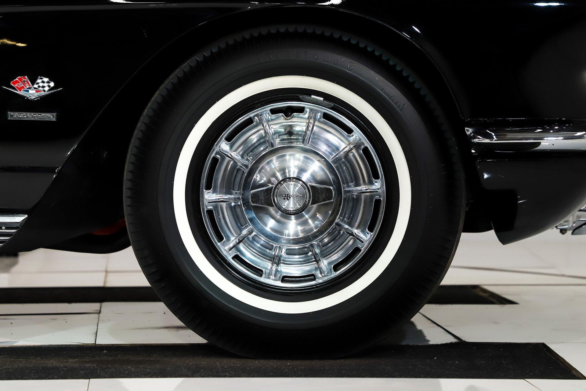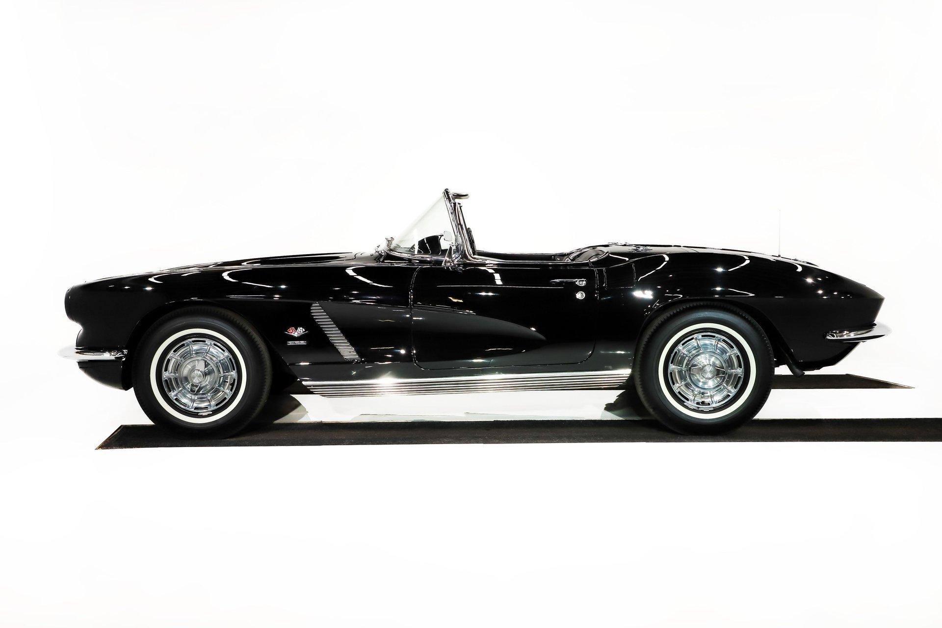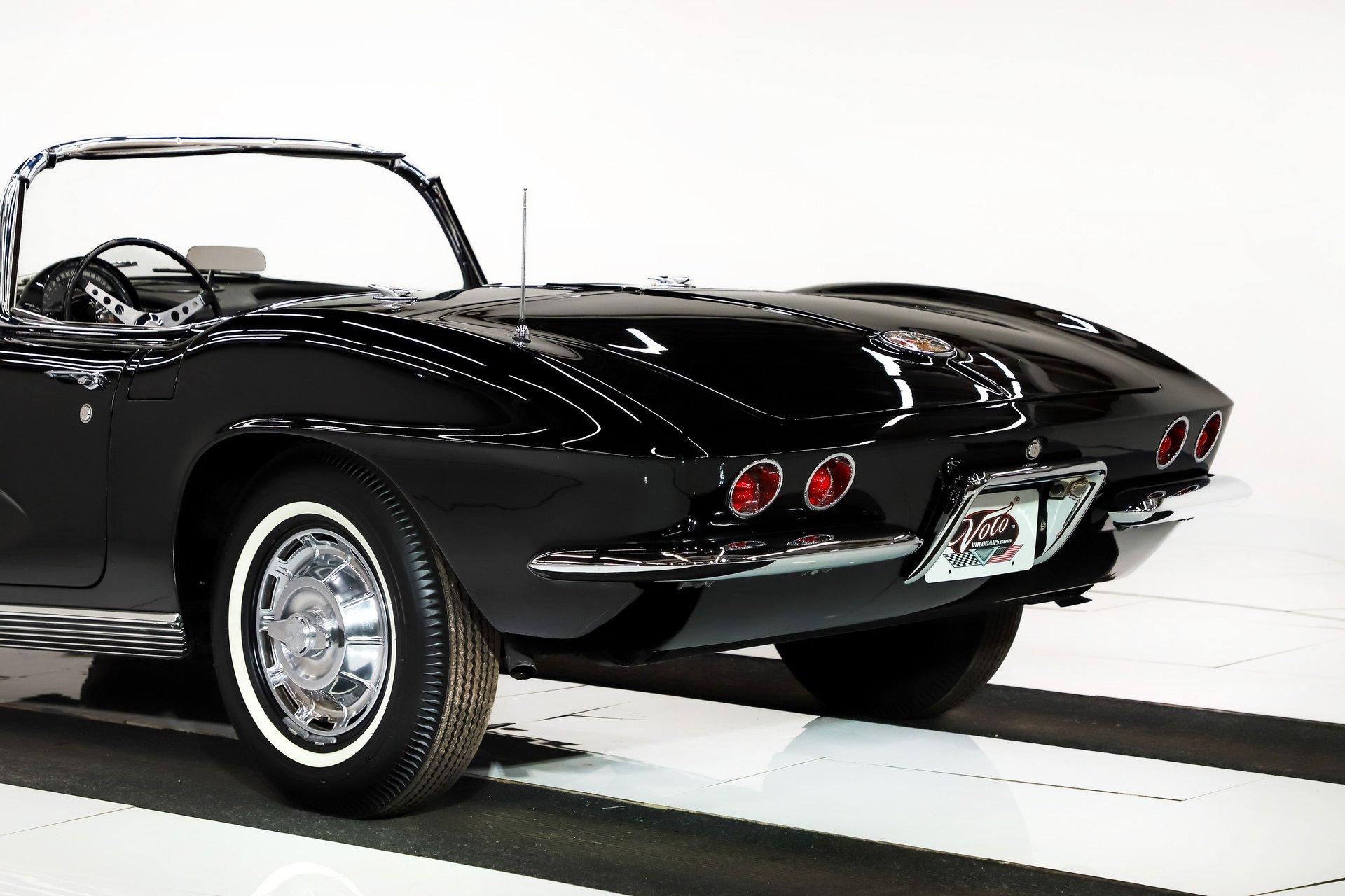 INTRODUCTION: A two top Fuelie! VIN #s matching 327 fuelie, 4 speed manual trans, and 4.11 posi rear end. Being triple black doesn't hurt it either; what a mischievous and gorgeous color combination. It's been nicely restored, starts easily, and drives fantastic. This is the pinnacle of first generation Corvettes! EXTERIOR: Desirable color combo! Plus it's a 2 topper that includes a folding black convertible top and a removable hardtop that matches the exterior paint. Very good fit and finishes throughout with consistent gaps and doors that close easily. Looking down the side of the nice and straight body is impressive with its smooth contours and sharp lines. The paint has a shiny high gloss finish and the brightwork has a lustrous shine. The weatherstrips are soft and pliable. It's sitting pretty on a set of 15” painted steel rims with factory spinner hubcaps and reproduction Firestone Deluxe Champion whitewall tires. INTERIOR: Very nicely restored! It has the correct style grey and black speckled carpet that's in great shape. The upholstery and door panels were replaced plus the dash pad is fresh. The fiberglass was repainted and has a nice shiny finish. All the gauges are clean with clear lenses and it has the correct 6500 redline tachometer. It also has the original style Wonderbar in the factory location. All the knobs, handles, armrests look great. Correct lockout shifter with original knob, and a new bezel. It has seat belts and some embroidered mats too. ENGINE COMPARTMENT: Great originality! The original #’s matching fuel injected 327 with 360 horsepower. The casting codes and dates line up, the matching vin is stamped on the pad, the fuel injection unit even has correct #s on its tag. In addition to the fuel injection some of the other features included an aggressive cam, domed pistons, high compression, high revving solid lifters, high performance heads and they were dressed with finned aluminum valve covers. It has correct air cleaner, ignition shielding, deep groove pulleys, choke tube, glass fuel filter etc. Correct radiator, shroud, fan, expansion tank and even the clamps. It is detailed very nicely. TRUNK COMPARTMENT: Beautifully finished! The underside of the trunk lid, inside the jamb, and the trunk pan have all been neatly repainted. The black rubber mat, divider, latch mechanism, and weatherstrip were all replaced. Under the mat is all clean fiberglass and a spare tire. A car cover is also included. UNDERSIDE: It's very clean, well preserved and maintained as needed. The floors are still in their raw fiberglass and have not been painted over like most of them. The frame and chassis components are clean metal painted satin black. After our inspection of the suspension and steering we replaced the kingpins and bushings then had the front end aligned. It still has its travel limit straps in back.The exhaust system looks solid and has a crossover pipe. The brakes are working properly, e-brake is hooked up. Looking up at the motor it is clean and has the correct canister type oil filter. The original #s matching T10 4-speed was just rebuilt and it has a new clutch. The u-joints look fresh on the driveshaft which leads back to its original 4.11 posi; dated 1962, code CN. SERVICE: Turnkey ready! We take pride in our cars and reputation. Therefore, we built a 2 million dollar, 10,000 square ft service center, and hired a team of technicians to service the essentials on every car we sell. CONCLUSION: This is a classic Corvette with aggressive power and looks to match! It's exhilarating to drive, so much more fun than stocks or bonds. Vehicles are displayed in a museum setting. Admission applies without an appointment and is refunded with purchase, including a one-year museum membership. 815-385-3644 9-5 central Sales@volocars.com Answered ASAP Fuel injection 4.11 posi Removable hardtop Convertible top Seatbelts Reproduction whitewalls