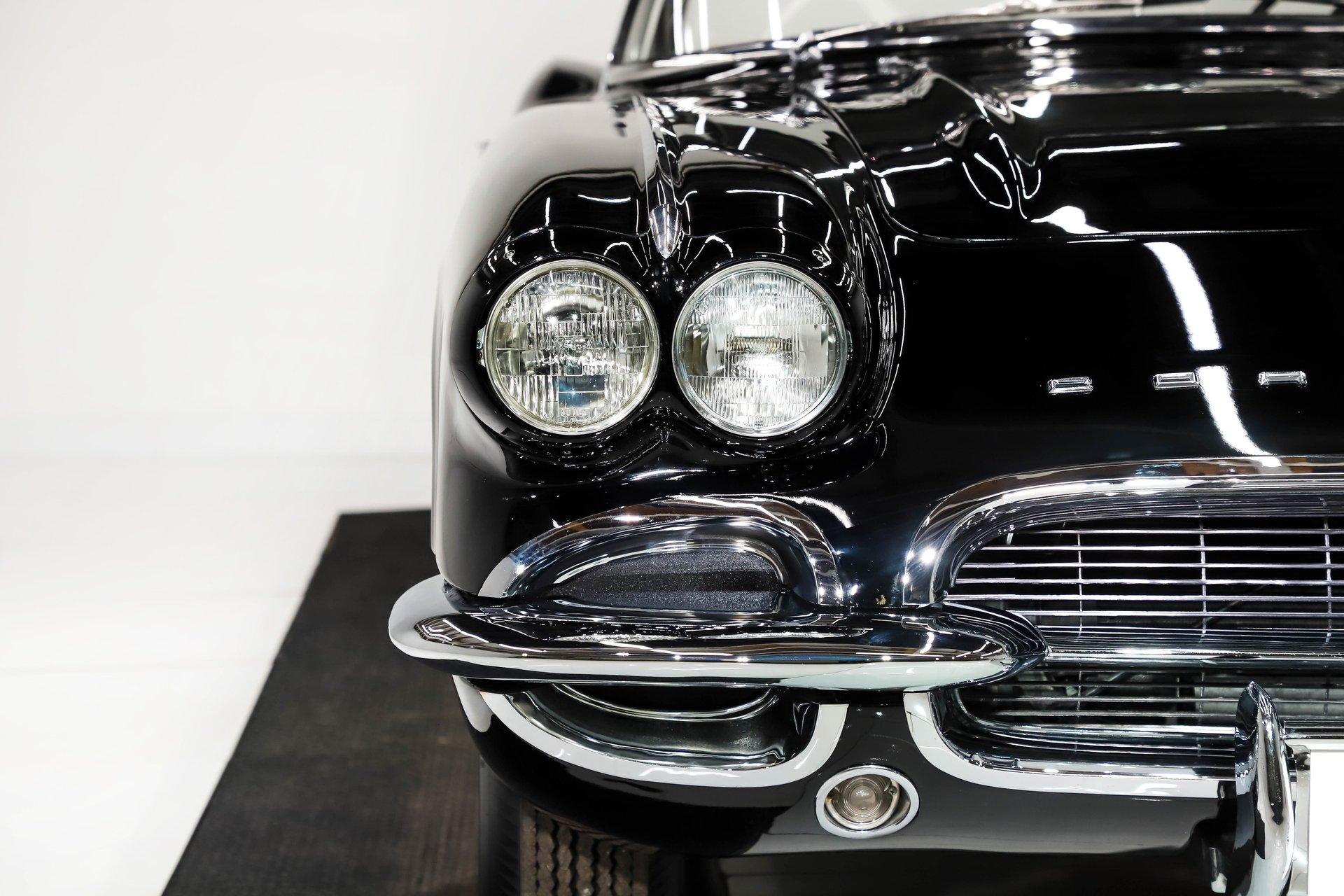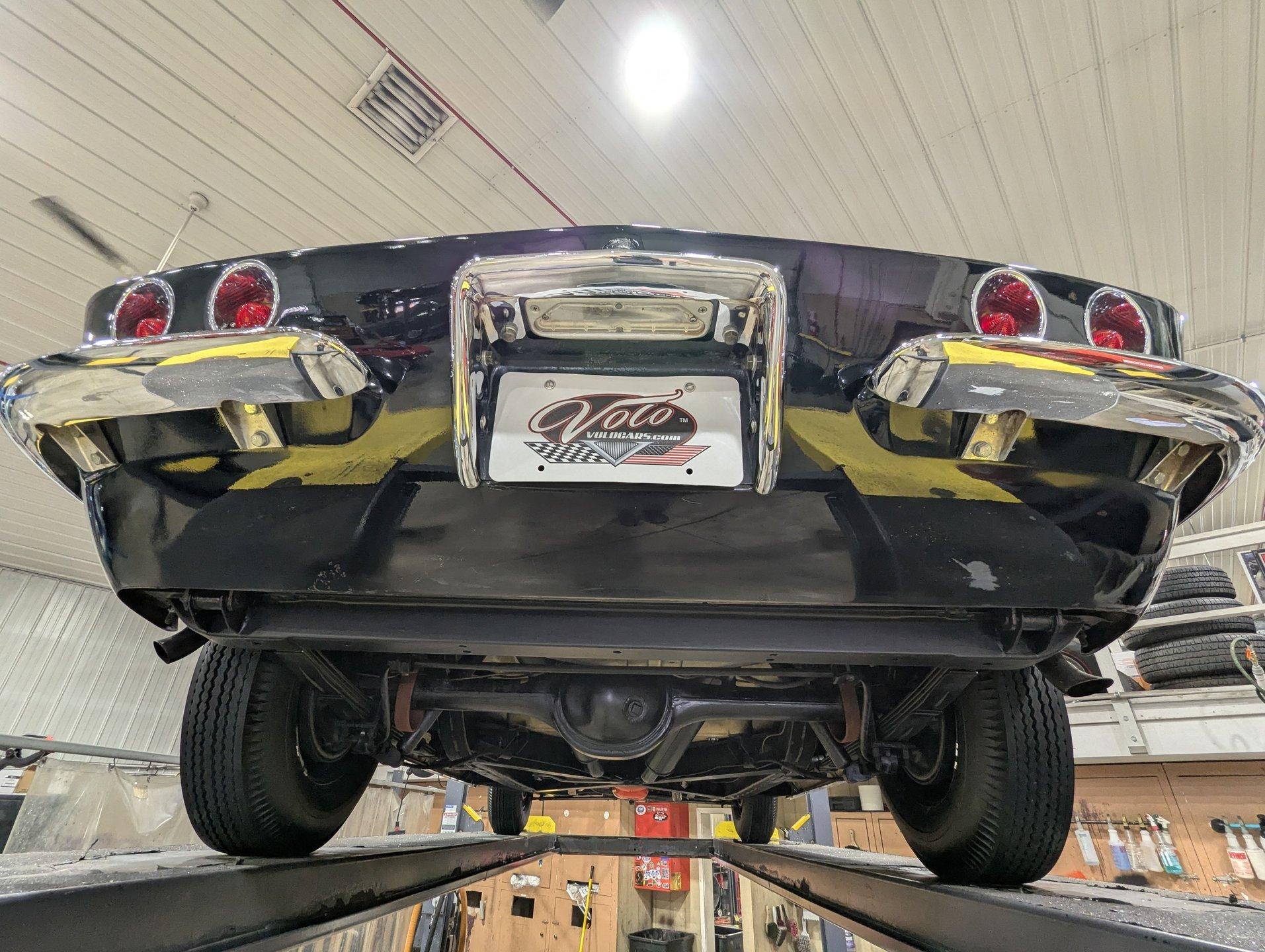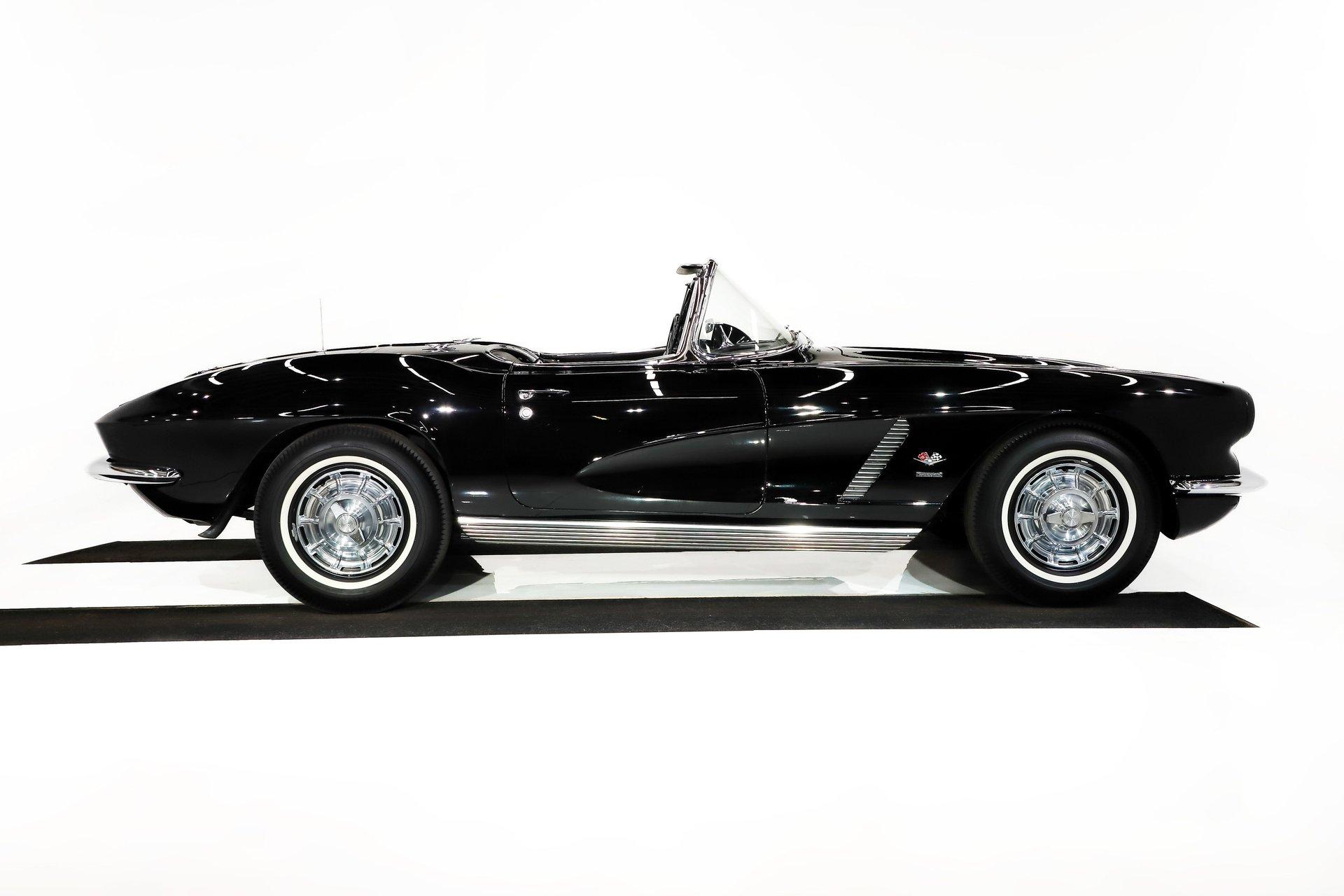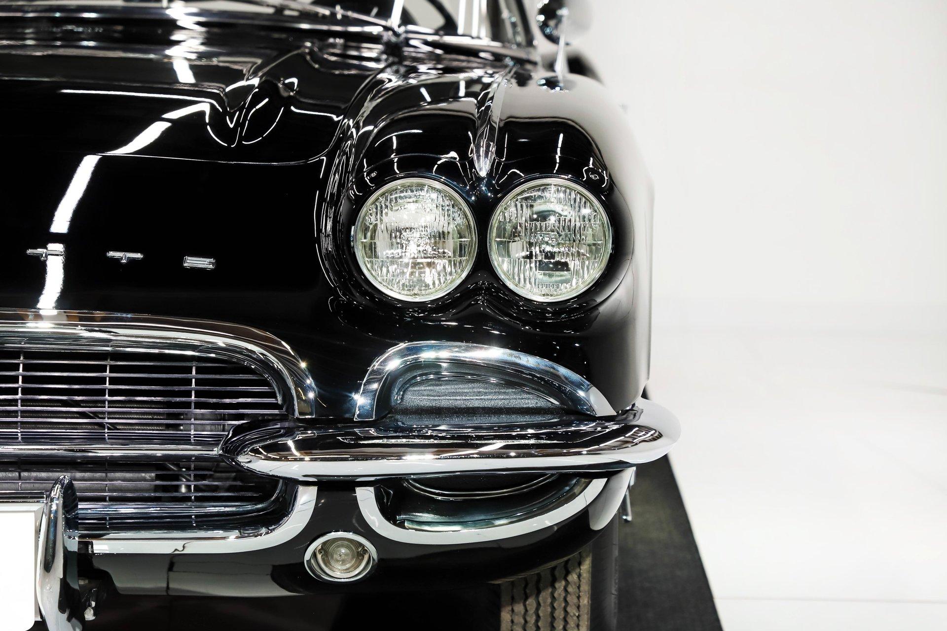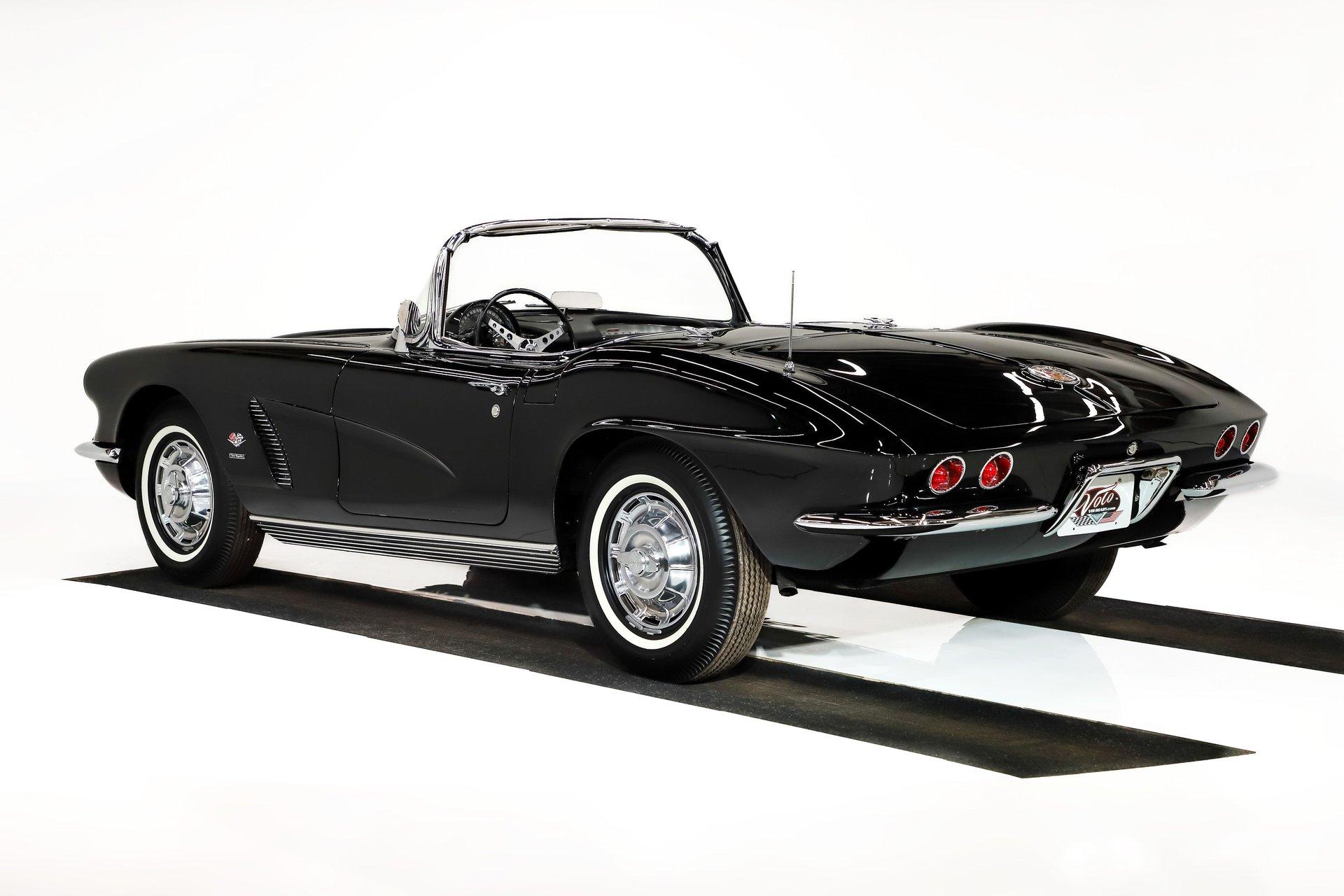 INTRODUCTION: A two top Fuelie! VIN #s matching 327 fuelie, 4 speed manual trans, and 4.11 posi rear end. Being triple black doesn't hurt it either; what a mischievous and gorgeous color combination. It's been nicely restored, starts easily, and drives fantastic. This is the pinnacle of first generation Corvettes! EXTERIOR: Desirable color combo! Plus it's a 2 topper that includes a folding black convertible top and a removable hardtop that matches the exterior paint. Very good fit and finishes throughout with consistent gaps and doors that close easily. Looking down the side of the nice and straight body is impressive with its smooth contours and sharp lines. The paint has a shiny high gloss finish and the brightwork has a lustrous shine. The weatherstrips are soft and pliable. It's sitting pretty on a set of 15” painted steel rims with factory spinner hubcaps and reproduction Firestone Deluxe Champion whitewall tires. INTERIOR: Very nicely restored! It has the correct style grey and black speckled carpet that's in great shape. The upholstery and door panels were replaced plus the dash pad is fresh. The fiberglass was repainted and has a nice shiny finish. All the gauges are clean with clear lenses and it has the correct 6500 redline tachometer. It also has the original style Wonderbar in the factory location. All the knobs, handles, armrests look great. Correct lockout shifter with original knob, and a new bezel. It has seat belts and some embroidered mats too. ENGINE COMPARTMENT: Great originality! The original #’s matching fuel injected 327 with 360 horsepower. The casting codes and dates line up, the matching vin is stamped on the pad, the fuel injection unit even has correct #s on its tag. In addition to the fuel injection some of the other features included an aggressive cam, domed pistons, high compression, high revving solid lifters, high performance heads and they were dressed with finned aluminum valve covers. It has correct air cleaner, ignition shielding, deep groove pulleys, choke tube, glass fuel filter etc. Correct radiator, shroud, fan, expansion tank and even the clamps. It is detailed very nicely. TRUNK COMPARTMENT: Beautifully finished! The underside of the trunk lid, inside the jamb, and the trunk pan have all been neatly repainted. The black rubber mat, divider, latch mechanism, and weatherstrip were all replaced. Under the mat is all clean fiberglass and a spare tire. A car cover is also included. UNDERSIDE: It's very clean, well preserved and maintained as needed. The floors are still in their raw fiberglass and have not been painted over like most of them. The frame and chassis components are clean metal painted satin black. After our inspection of the suspension and steering we replaced the kingpins and bushings then had the front end aligned. It still has its travel limit straps in back.The exhaust system looks solid and has a crossover pipe. The brakes are working properly, e-brake is hooked up. Looking up at the motor it is clean and has the correct canister type oil filter. The original #s matching T10 4-speed was just rebuilt and it has a new clutch. The u-joints look fresh on the driveshaft which leads back to its original 4.11 posi; dated 1962, code CN. SERVICE: Turnkey ready! We take pride in our cars and reputation. Therefore, we built a 2 million dollar, 10,000 square ft service center, and hired a team of technicians to service the essentials on every car we sell. CONCLUSION: This is a classic Corvette with aggressive power and looks to match! It's exhilarating to drive, so much more fun than stocks or bonds. Vehicles are displayed in a museum setting. Admission applies without an appointment and is refunded with purchase, including a one-year museum membership. 815-385-3644 9-5 central Sales@volocars.com Answered ASAP Fuel injection 4.11 posi Removable hardtop Convertible top Seatbelts Reproduction whitewalls