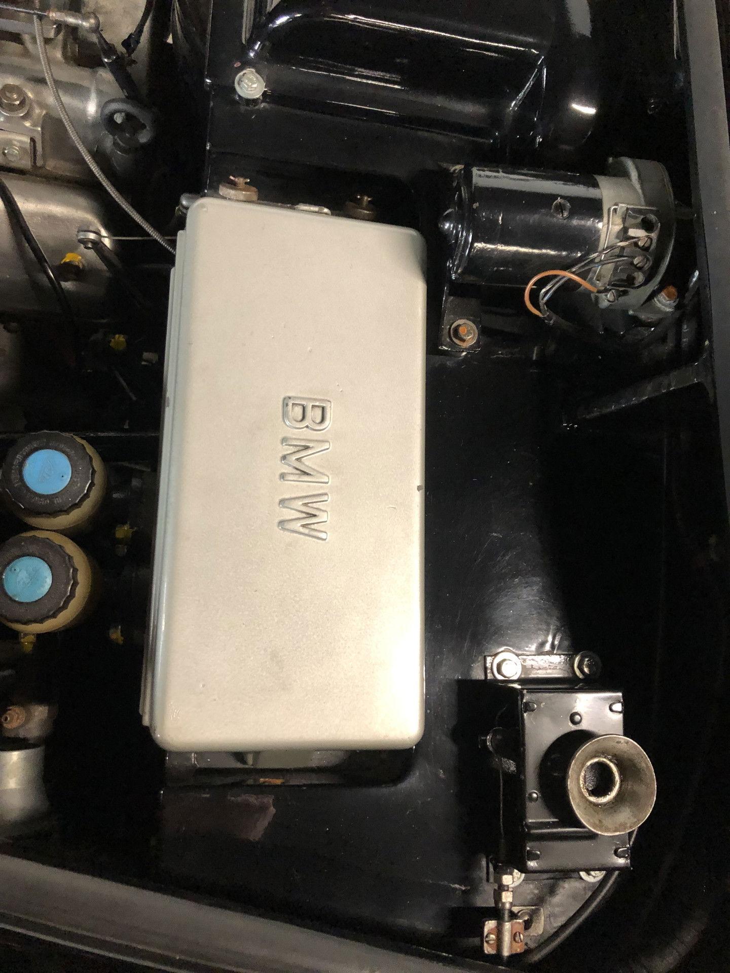 The BMW presented here comes from Italy. It is a black 503 with red leather interior. This is a beautiful combination and the leather is still of perfect quality. Furthermore, the car looks absolutely great, even from underneath. The engine runs nicely and you can see from the finish that this is a top mobile. It drives, shifts, steers and brakes perfectly. A real gentlemen's car.