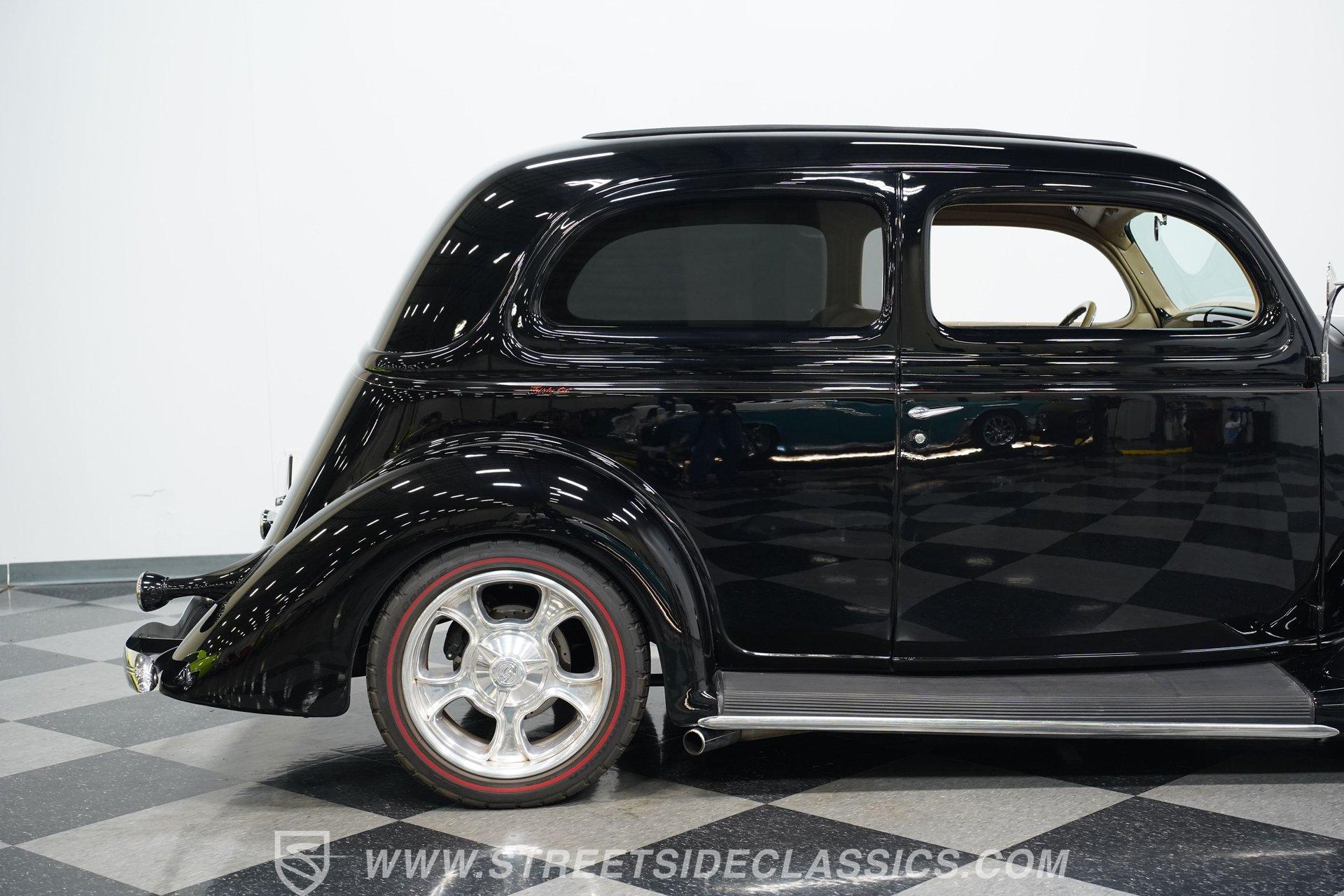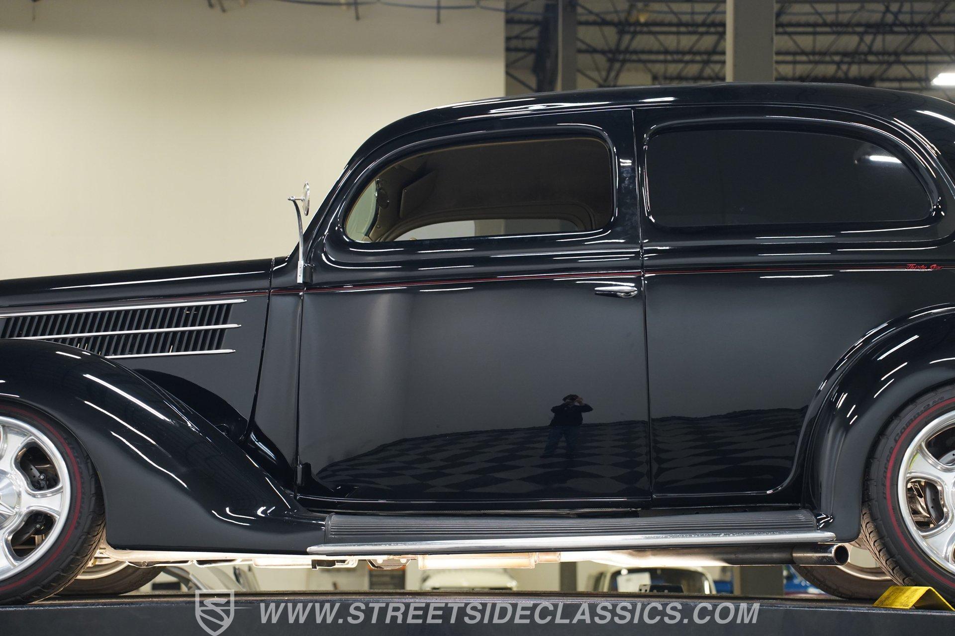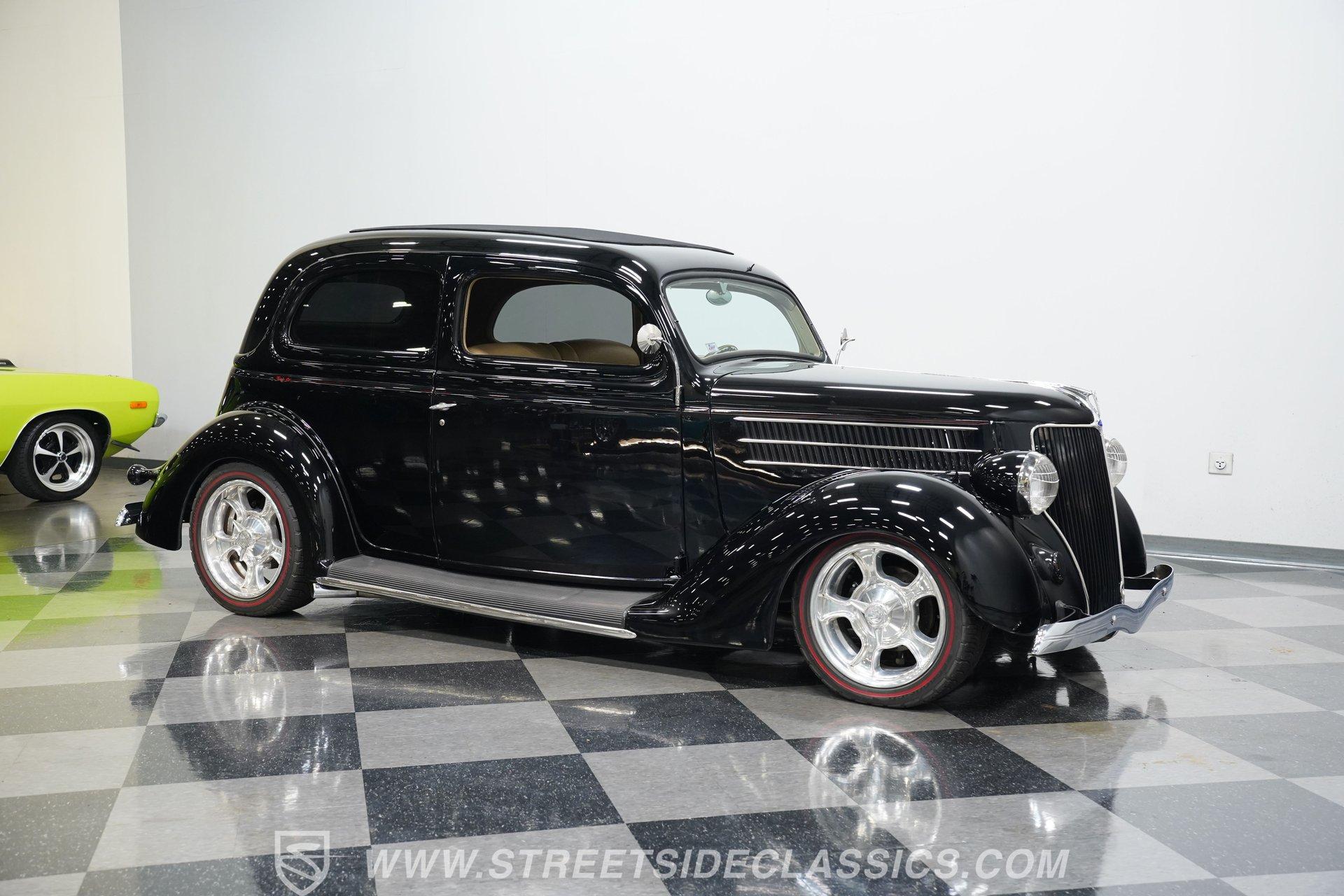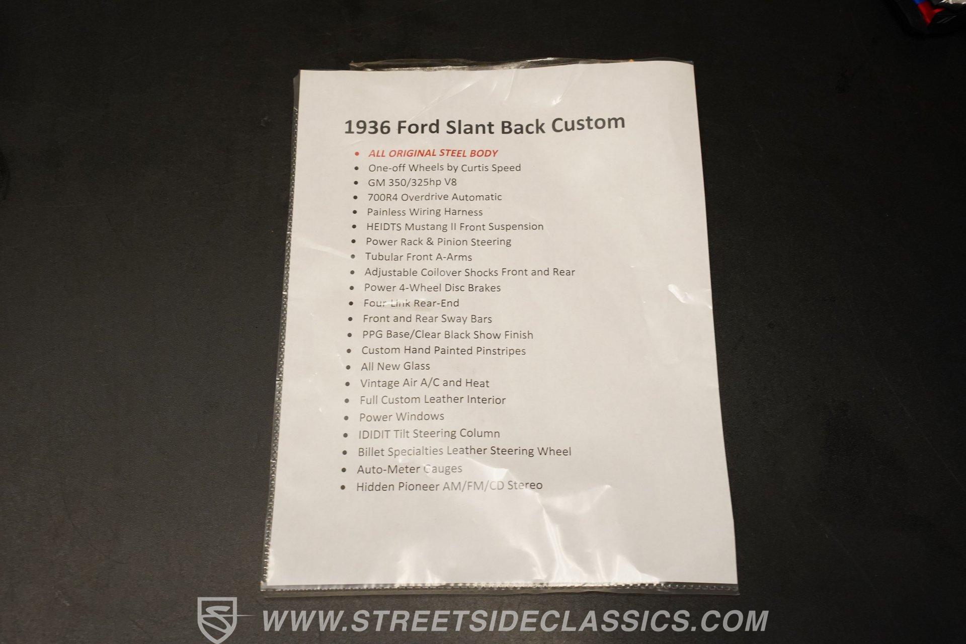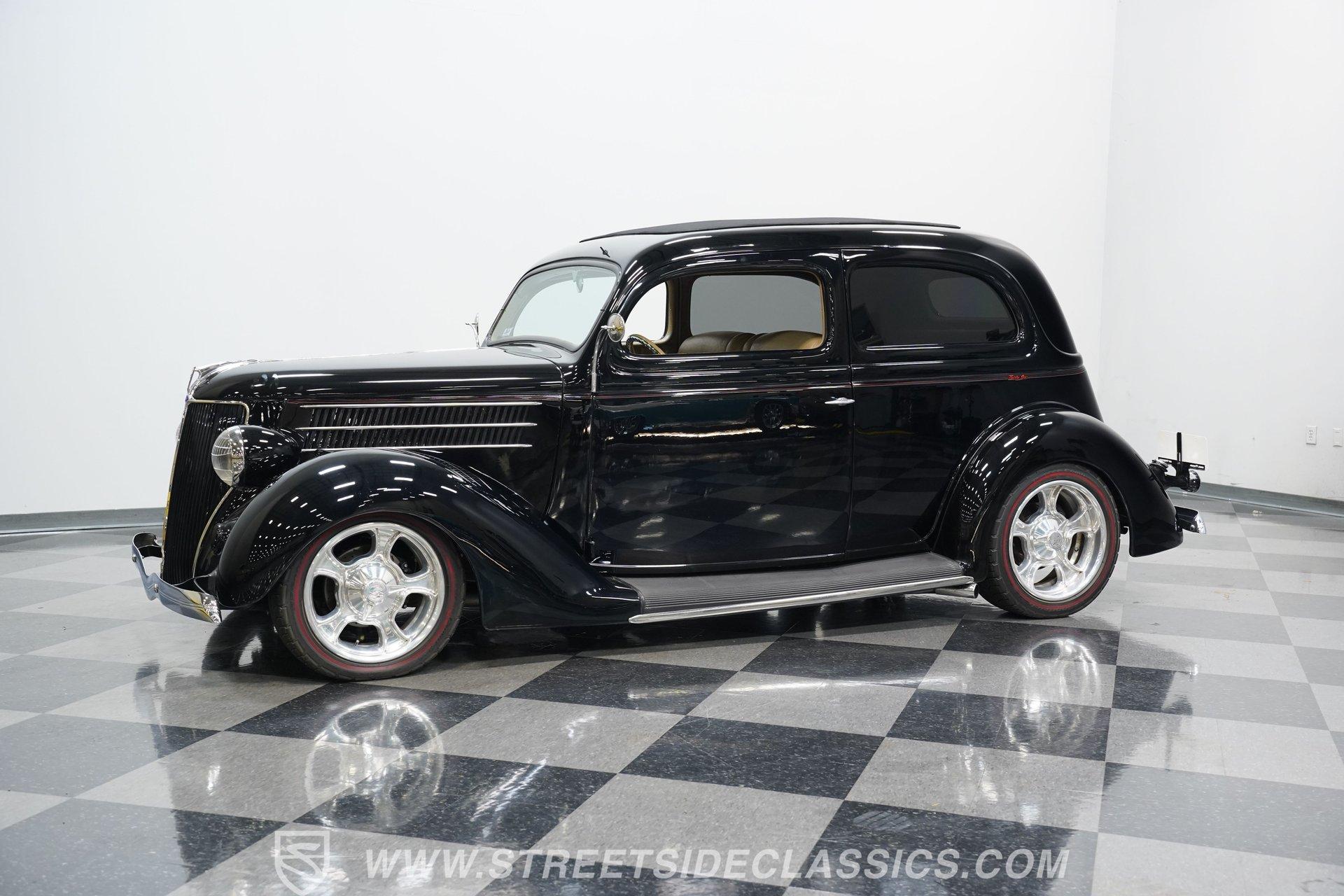 Step back in time and experience the thrill of a true American classic that has been thoughtfully transformed for today's roads. This 1936 Ford Tudor Slantback Streetrod is more than a car; it's a rolling piece of history infused with modern performance and comfort, blending vintage charm with contemporary flair. Imagine the heads turning as you cruise by, the smooth hum of a powerful engine beneath the hood, and the pride of owning a vehicle that bridges the past and present. This beautifully restored and upgraded machine invites you to make new memories while honoring timeless style. Step inside to find an interior designed for comfort and cool cruising. The cabin features a clean, full replacement with split bench seating upfront and a bench seat in the rear, all upholstered in smooth leather. Upgraded Auto Meter gauges provide precise readouts while a vintage ACC air conditioning system vents cool air through the dash. Convenience is at your fingertips with power windows and a tilt steering column, making every drive a pleasure whether you're on a leisurely Sunday ride or a spirited street run. Under the hood, this streetrod boasts a robust 350 V8 crate engine paired with a smooth-shifting 4-speed automatic transmission, recently serviced with a new filter. Performance is enhanced by a Holley carburetor and Edelbrock manifolds with block hugger headers, offering a potent and distinctive soundtrack. The drivetrain is complemented by power steering and power brakes for confident handling, while the Mustang II front suspension with tubular A-arms and coilovers, along with a 4-link rear suspension, deliver a balanced and controlled ride. Four-wheel power disc brakes and 17/18-inch Billet Specialties wheels wrapped in performance tires complete the package. Highlights 1936 Ford Tudor Slantback Streetrod 350 V8 Crate Engine 4-Speed Automatic Transmission 19,639 Miles Since Built Full Replacement Leather Interior Vintage ACC Air Conditioning System Power Steering and Power Brakes Holley Carburetor and Edelbrock Manifolds Block Hugger Headers Mustang II Front Suspension with Coilovers 4-Link Rear Suspension with Coilovers Four Wheel Power Disc Brakes 17" Front and 18" Rear Billet Specialties Wheels Dual Exhaust System Full Repaint with Red Pinstriping Financing Available Vehicle Protection Plans Available Worldwide Shipping This 1936 Ford Tudor Slantback Streetrod offers an exciting blend of classic style and modern upgrades, making it a fantastic choice for collectors and enthusiasts alike. Ready to hit the road with confidence and style, this streetrod is waiting for you to take the wheel. Call, email, or come visit our showroom today!