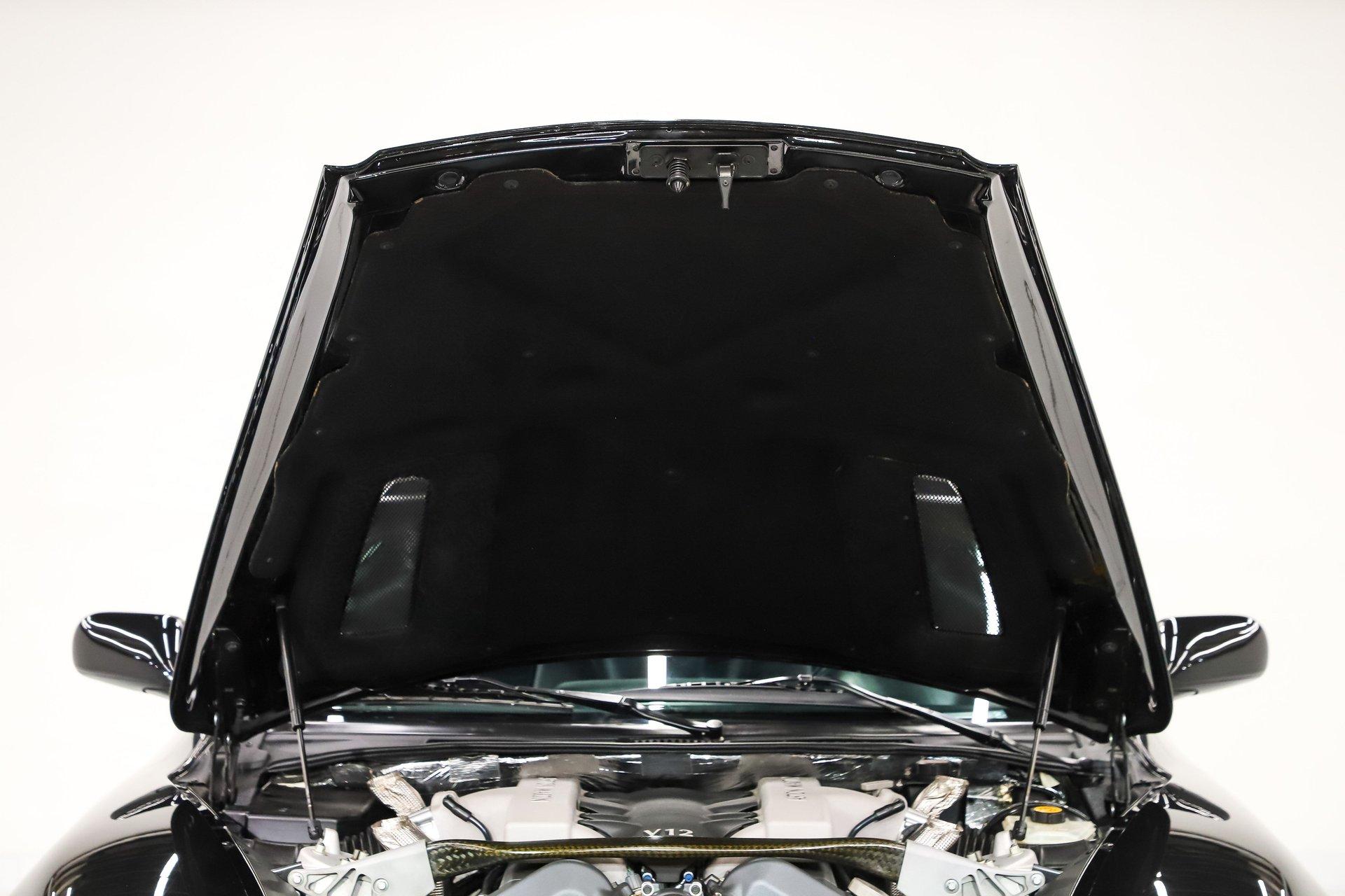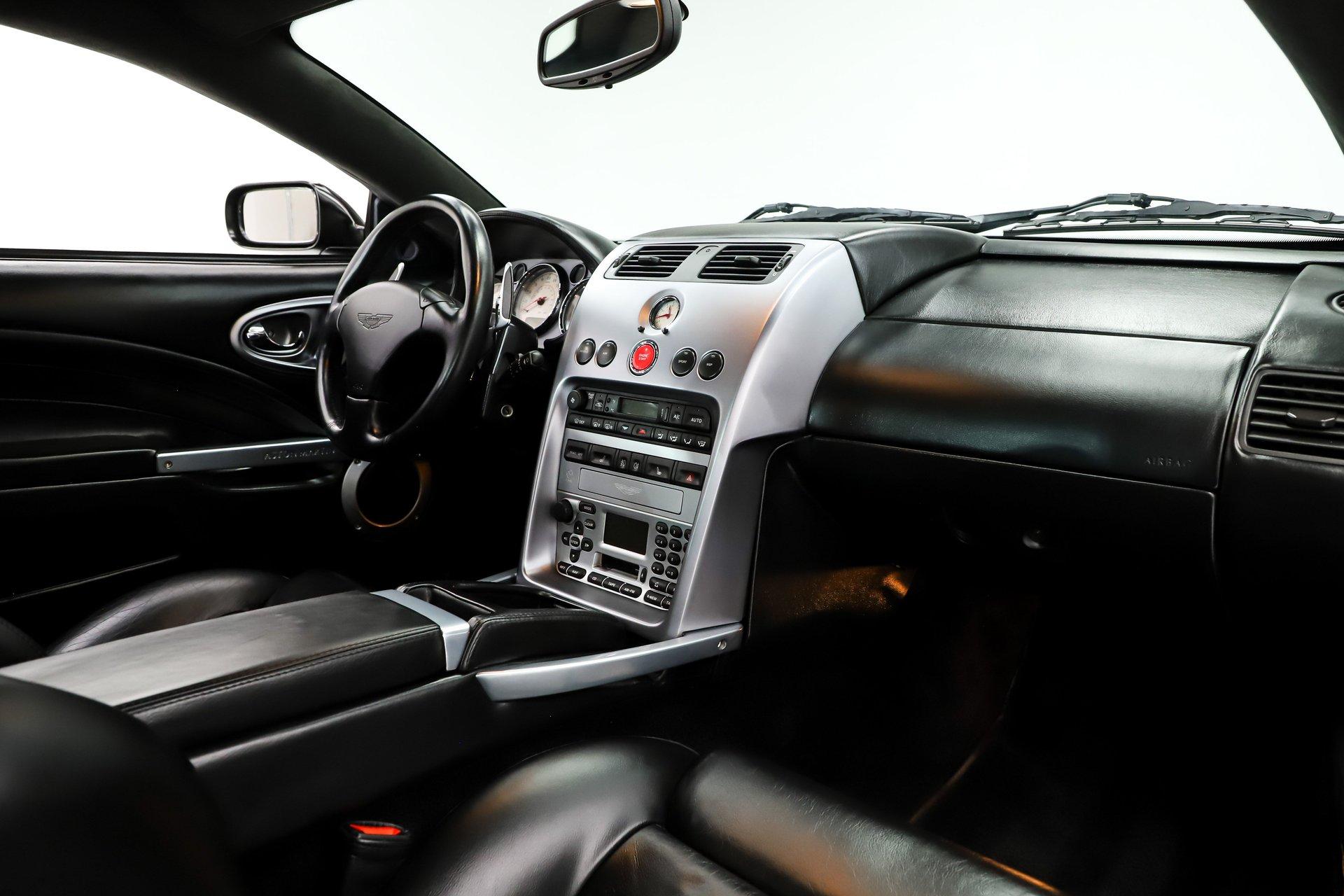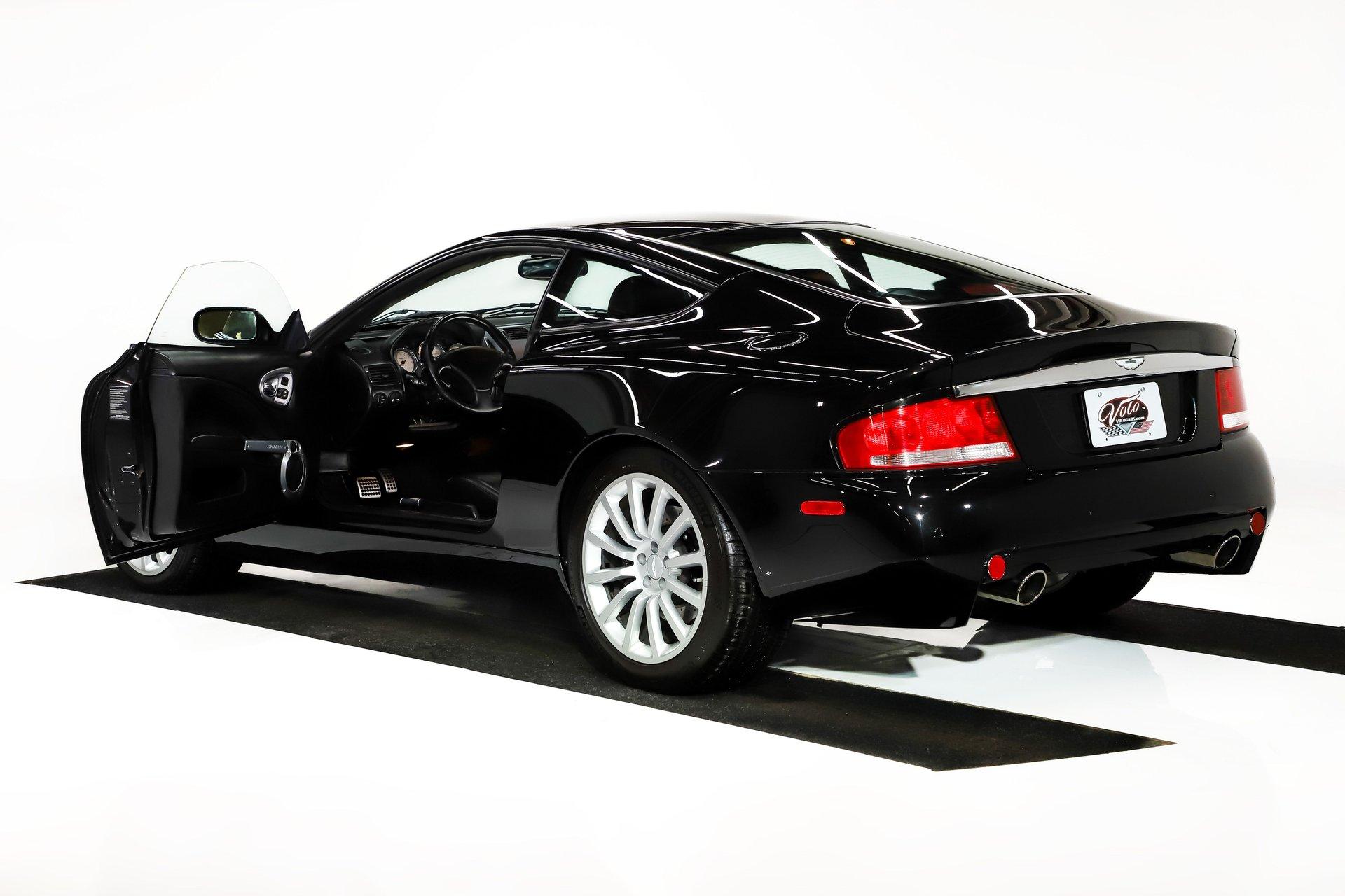 INTRODUCTION: Only 2,655 actual miles! Very possibly the best one in existence. The Carfax is spotless with only 2 owners and regular maintenance and inspections. The Vanquish was hand built in England and was Aston Martin’s Flagship model. This Supercar was priced at $245,900 new, which is equivalent to $435,000 today! Capable of 0-60 in 4.5 seconds and a top speed of 190mph! It was praised by the critics and called the ultimate Grand Tourer. Aston Martin has always been synonymous with 007, this is the car represented in the James Bond film- Die Another Day. EXTERIOR: A stunning blend of elegance and super car aggression with muscular flowing lines. It is virtually flawless, I couldn't find any defects. The super formed aluminum body panels were individually hand finished, then given nine coats of black metallic which were hand flattened in between coats. It took 54 hours to prepare, paint and polish the Vanquish. The Michelin Pilot Sport tires are wrapped around 18 inch wheels. INTERIOR: It is spotless inside too. Very sophisticated and sporty at the same time. This one has the optional 2+2 rear seat package. The exquisite hand stitched upholstery takes 78 hours and 8 Bridge of Weir leather hydes to trim the interior, there's glove soft leather everywhere! The power Recaro seats have lumbar and optional heat. This one has the premium stereo with an amplifier, subwoofer, speakers and tweeters throughout. I tested it out and it made my hair move! The tilt-telescopic wheel has paddle shifters for some spirited driving. From the Wilton carpet to the alcantara headliner it is first class! ENGINE COMPARTMENT: This high revving V-12 with 4 valves per cylinder makes an impressive 460 hp. Each engine assembly was done by hand. This motor compartment is still like brand new, it is an interesting mechanical marvel just to look at! TRUNK COMPARTMENT: Of course it is like new and has some high class features. Under the trunk lid is an Aston Martin umbrella and there is also an Aston Martin branded first aid kit. This is also where you will load your favorite CDs into the CD changer. There is also a battery disconnect. UNDERSIDE: The Vanquish used a carbon fiber and alloy structure which was a big advancement for Aston Martin. It is very clean underneath and it is mostly covered with an aerodynamic aluminum pan. Features include a stainless dual exhaust with a sport mode, 4 wheel ABS drilled disc brakes and speed sensing power steering. The suspension has front and back independent double wishbones with swaybars. The trans is an automated 6-speed manual with overdrive and the rear end has 3.69 posi gears. SERVICE: We take pride in our cars and reputation. Therefore, we built a 2 million dollar, 10,000 square ft service center, and hired a team of technicians to service the essentials on every car we sell. CONCLUSION: A true blend of old world craftsmanship and new world engineering. Only 1489 Vanquish were built total over a 3 year period, this one is #1321. Being it's one of the best there is, it has great investment potential. Vehicles are displayed in a museum setting. Admission applies without an appointment and is refunded with purchase, including a one-year museum membership. 815 385 3644 9-5 central Sales@volocars.com Answered ASAP Speed sensitive steering 4 wheel disc brakes 3.69 posi rear Heated seats Navigation Premium audio Rear seating Garage door opener Aluminum pedals Tilt-telescopic wheel Power seats Power mirrors Umbrella 19” wheels Clean Carfax