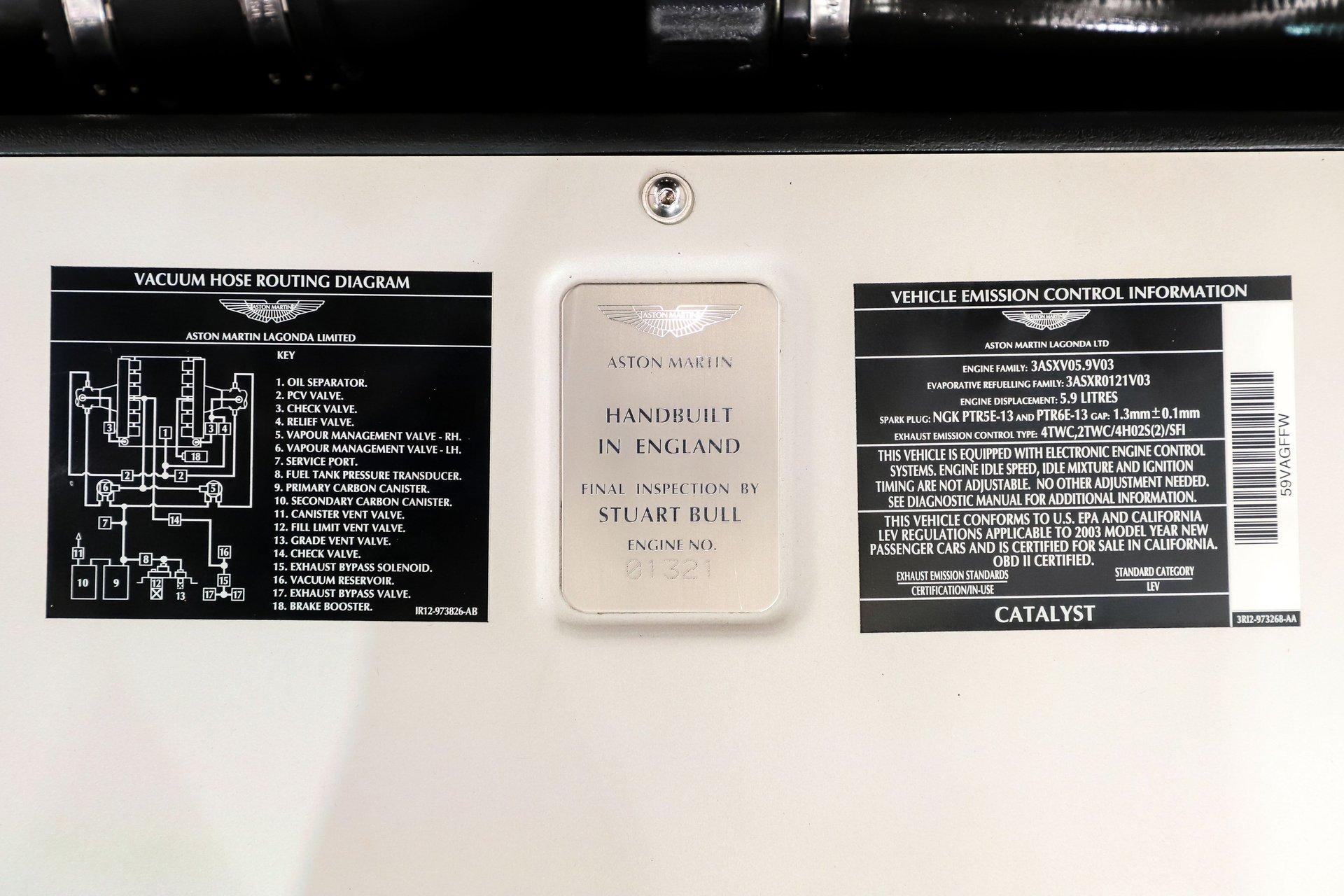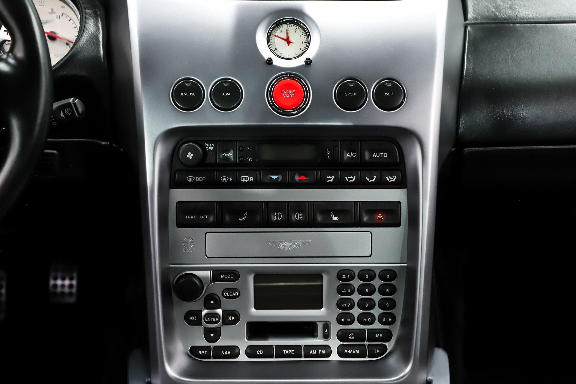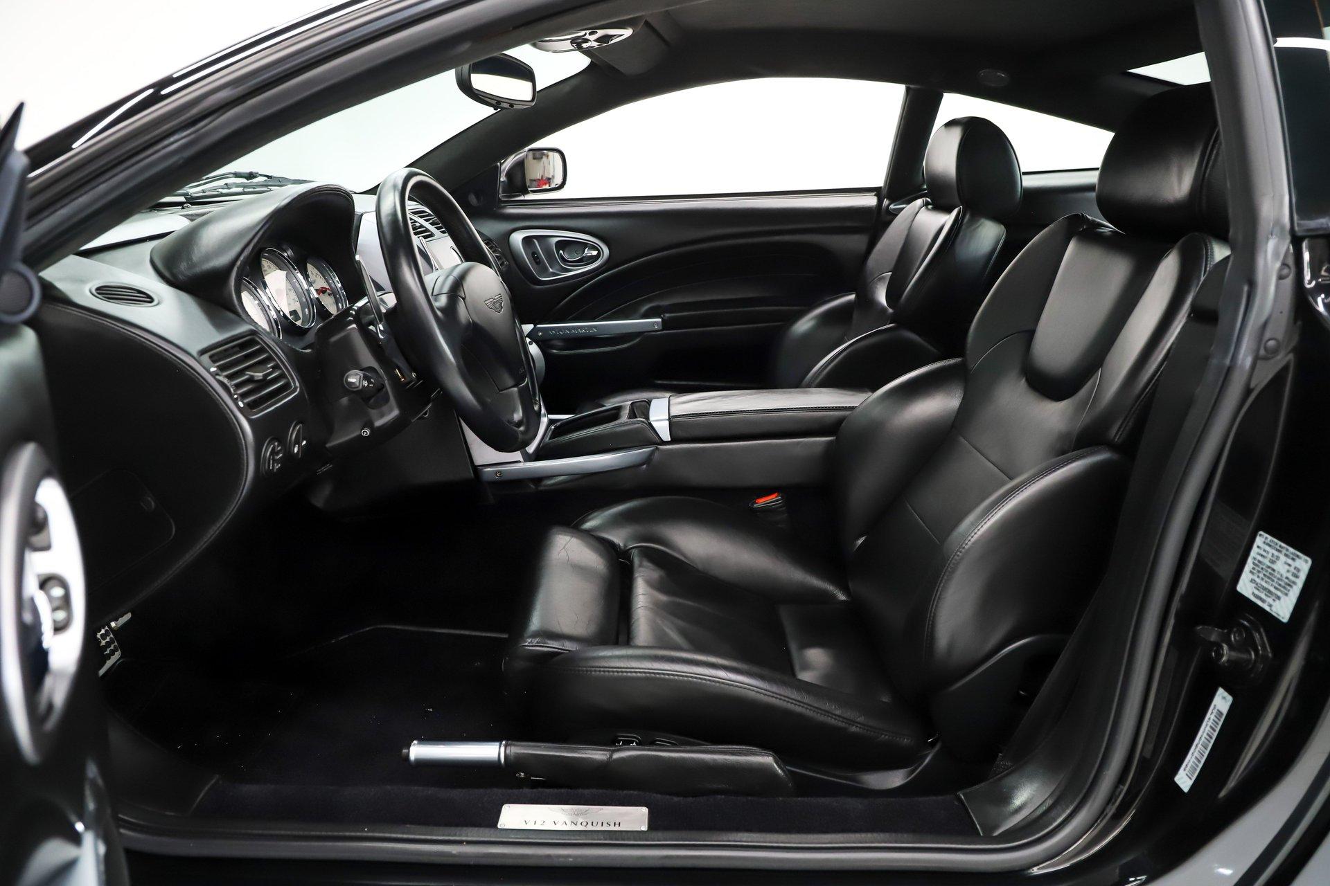 INTRODUCTION: Only 2,655 actual miles! Very possibly the best one in existence. The Carfax is spotless with only 2 owners and regular maintenance and inspections. The Vanquish was hand built in England and was Aston Martin’s Flagship model. This Supercar was priced at $245,900 new, which is equivalent to $435,000 today! Capable of 0-60 in 4.5 seconds and a top speed of 190mph! It was praised by the critics and called the ultimate Grand Tourer. Aston Martin has always been synonymous with 007, this is the car represented in the James Bond film- Die Another Day. EXTERIOR: A stunning blend of elegance and super car aggression with muscular flowing lines. It is virtually flawless, I couldn't find any defects. The super formed aluminum body panels were individually hand finished, then given nine coats of black metallic which were hand flattened in between coats. It took 54 hours to prepare, paint and polish the Vanquish. The Michelin Pilot Sport tires are wrapped around 18 inch wheels. INTERIOR: It is spotless inside too. Very sophisticated and sporty at the same time. This one has the optional 2+2 rear seat package. The exquisite hand stitched upholstery takes 78 hours and 8 Bridge of Weir leather hydes to trim the interior, there's glove soft leather everywhere! The power Recaro seats have lumbar and optional heat. This one has the premium stereo with an amplifier, subwoofer, speakers and tweeters throughout. I tested it out and it made my hair move! The tilt-telescopic wheel has paddle shifters for some spirited driving. From the Wilton carpet to the alcantara headliner it is first class! ENGINE COMPARTMENT: This high revving V-12 with 4 valves per cylinder makes an impressive 460 hp. Each engine assembly was done by hand. This motor compartment is still like brand new, it is an interesting mechanical marvel just to look at! TRUNK COMPARTMENT: Of course it is like new and has some high class features. Under the trunk lid is an Aston Martin umbrella and there is also an Aston Martin branded first aid kit. This is also where you will load your favorite CDs into the CD changer. There is also a battery disconnect. UNDERSIDE: The Vanquish used a carbon fiber and alloy structure which was a big advancement for Aston Martin. It is very clean underneath and it is mostly covered with an aerodynamic aluminum pan. Features include a stainless dual exhaust with a sport mode, 4 wheel ABS drilled disc brakes and speed sensing power steering. The suspension has front and back independent double wishbones with swaybars. The trans is an automated 6-speed manual with overdrive and the rear end has 3.69 posi gears. SERVICE: We take pride in our cars and reputation. Therefore, we built a 2 million dollar, 10,000 square ft service center, and hired a team of technicians to service the essentials on every car we sell. CONCLUSION: A true blend of old world craftsmanship and new world engineering. Only 1489 Vanquish were built total over a 3 year period, this one is #1321. Being it's one of the best there is, it has great investment potential. Vehicles are displayed in a museum setting. Admission applies without an appointment and is refunded with purchase, including a one-year museum membership. 815 385 3644 9-5 central Sales@volocars.com Answered ASAP Speed sensitive steering 4 wheel disc brakes 3.69 posi rear Heated seats Navigation Premium audio Rear seating Garage door opener Aluminum pedals Tilt-telescopic wheel Power seats Power mirrors Umbrella 19” wheels Clean Carfax