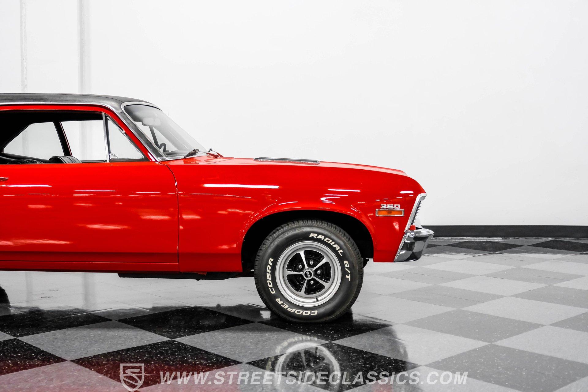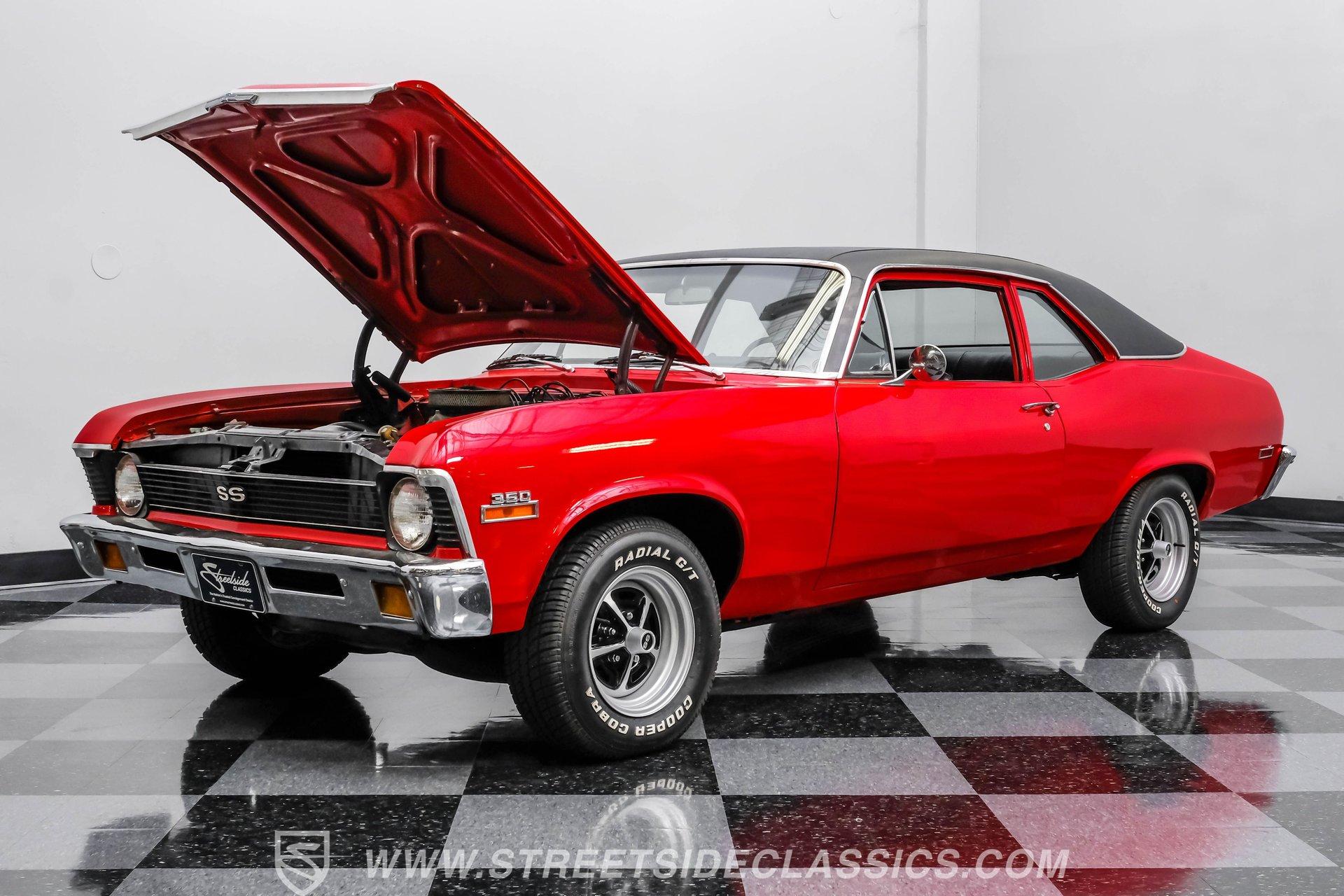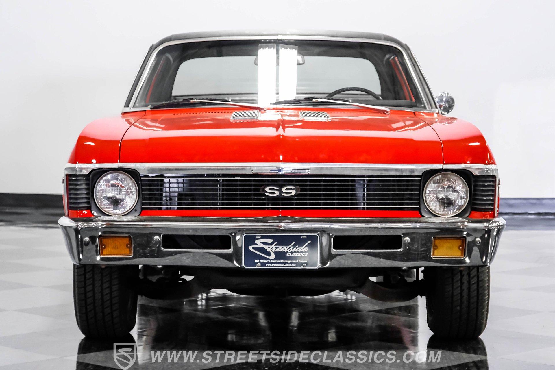 Some cars are more than just a mode of transportation-they are rolling memories, capturing the essence of an era when muscle cars ruled the road and every cruise was an event. The Chevrolet Nova stands as an icon of American performance, a statement of style and spirit for those who appreciate the thrill of classic driving. Finished in vibrant red with a sleek black vinyl roof and shining chrome accents, this 1971 Chevrolet Nova SS is more than a car-it's a piece of muscle history ready for its next chapter. Slip inside and discover a timeless black vinyl interior featuring upgraded bucket seats for a sportier feel. The cabin is anchored by the factory dashboard and steering wheel, correct door panels and a black headliner. An under-dash AutoGauge cluster provides vital stats, while an older Jensen AM/FM/Cassette radio remains on display. The doors close solidly, the windows crank smoothly, and the overall atmosphere invites you to settle in and enjoy every drive. Under the hood, you will find the top-tier, numbers-matching 350 cubic inch L48 V8 paired with a TH350 3-speed automatic transmission. Performance upgrades include a Holley 4-barrel carburetor, Edelbrock intake, long-tube headers, and a mild performance cam, offering a classic muscle car soundtrack and plenty of power. The 12-bolt rear axle and rear sway bar add stability, while power steering and power front disc brakes ensure a confident ride. This Nova is ready for weekend cruising or spirited drives. Highlights: Numbers Matching L48 350ci V8 Engine Holley 4-Barrel Carburetor and Edelbrock Intake Long Tube Headers TH350 3-Speed Automatic Transmission 12-Bolt Rear Axle Power Steering Power Front Disc Brakes Full Repaint In Red With Black Vinyl Top 14" Mag-Style SS Wheels Black Vinyl Interior w/ Upgraded Bucket Seats Under-Dash AutoGauge Cluster Financing Available Vehicle Protection Plans Available Worldwide Shipping Owning a 1971 Chevrolet Nova SS means joining the ranks of true enthusiasts who appreciate classic muscle and timeless style. Whether you are building your collection or looking for a bold weekend cruiser, this Nova SS offers the perfect blend of heritage and performance. Do not miss your chance to take the wheel and make new memories. Call, email, or come visit our showroom today!