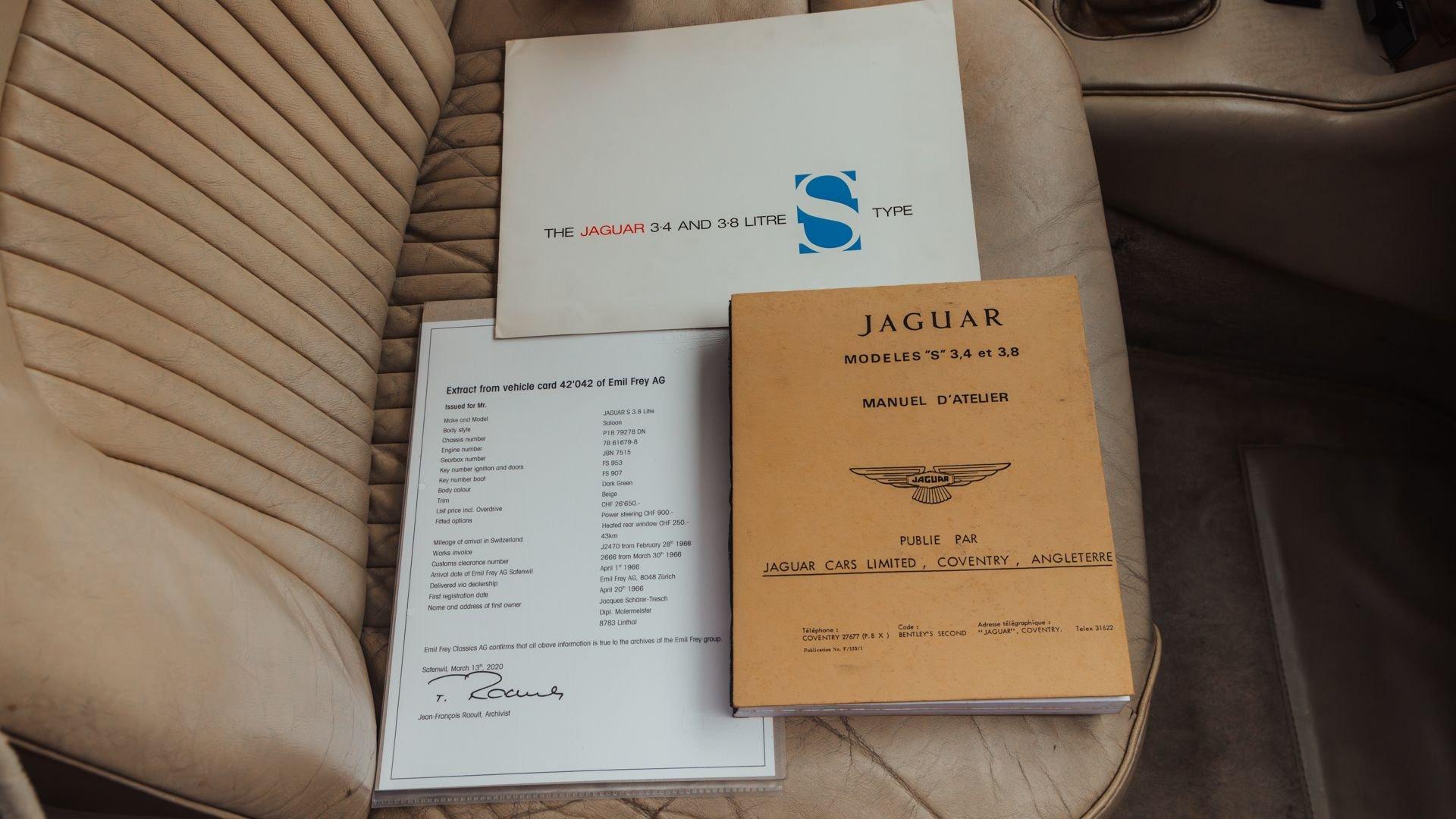Chassis No. P1B79278DN Engine No. 7B61679-8 Finished in Opalescent Dark Green, this Jaguar arrived at the historic Emil Frey AG dealership of Zurich, Switzerland, on 1 April 1966. Clearly with sporting intentions in mind, the car was specified with the top-of-the-line 3.8-liter inline-six mated to a four-speed manual transmission with overdrive. Additionally, the car was outfitted with a Beige leather interior, a heated rear window, and power steering, which pushed the original listed price to 26'650 CHF. The car was then purchased by master craftsman Jacques Scharer-Tresch of Jacques Schäer AG painting and wallpapering on 20 April 1966. The car remained in Switzerland with Scharer-Tresch until October 2004, when it was brought to Epinal, France, with its next owner, architect Daniel Billerey. Taken in by its high degree of originality at the time and beloved color combination, the car continued to be lovingly preserved until it entered Serge Allaert’s collection in August 2020. Today, the car displays charming patina throughout with just 59,000 kilometers at cataloging. With just three owners from new, the car has been remarkably well preserved, still wearing largely original paintwork. When new, the 'S' Type was beloved for combining the luxury of the large Mark X with the improved roadholding of the Mark II. Now a beloved classic, this top-of-the-line 3.8-liter model in its timeless color scheme is surely one of the finest original examples currently on offer. PREVIEW DETAILS: This lot will be available for viewing by appointment from Waregem, Belgium. SALE LOCATION: Belgium BUYER’S PREMIUM: 10% + VAT on the Hammer Price TITLE/REGISTRATION DOCUMENTS: Belgian Certificat d'Immatriculation ADDITIONAL NOTES: N/A POST-AUCTION REMOVAL AND STORAGE: Following receipt of payment, collection can be arranged by appointment only from Waregem, Belgium with 24 hours' notice.