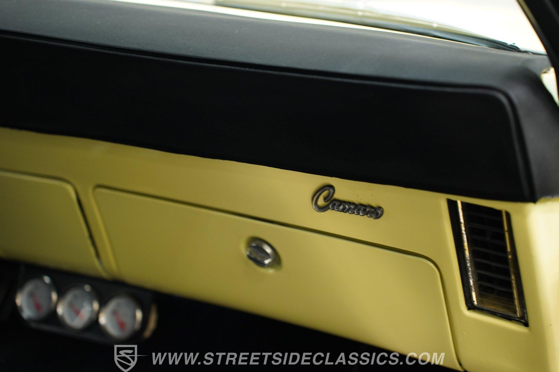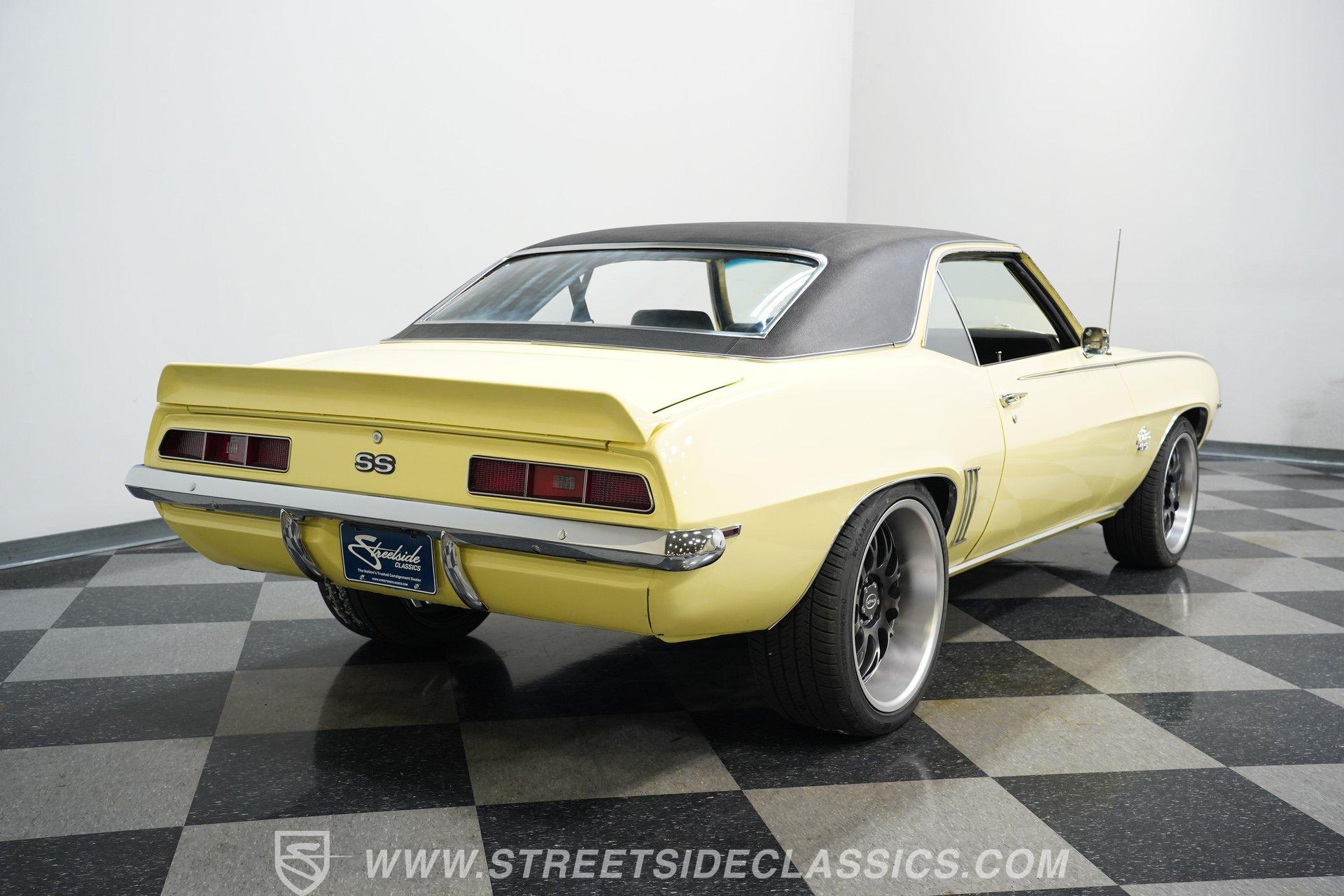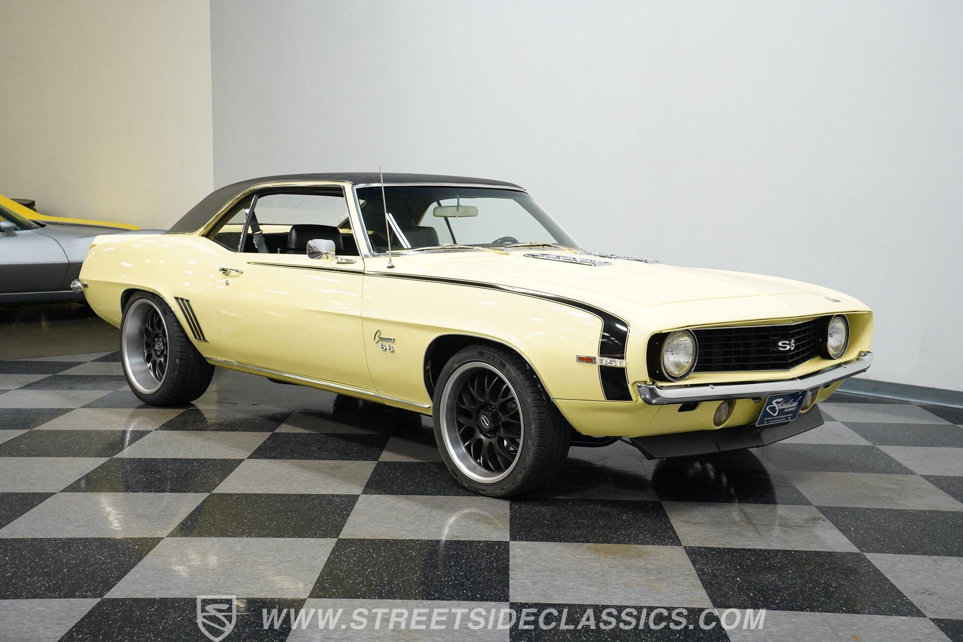 There are cars that turn heads, and then there are cars that capture hearts. The 1969 Chevrolet Camaro stands as an enduring symbol of freedom, power, and American ingenuity. Imagine the thrill of cruising down Main Street, the sun glinting off fresh Butternut yellow paint, the powerful rumble of a classic V8 echoing memories of golden-era muscle. This Camaro SS 350 Tribute is more than just a car-it's a rolling piece of history, ready to create new stories with its next owner. If you've ever dreamed of owning a true icon, this 1969 Chevrolet Camaro SS 350 Tribute is your chance. Step inside and you'll find an interior that channels the spirit of the late '60s. The cabin has been restored back to stock, offering the classic look and feel that enthusiasts crave. The seating is supportive and comfortable, the vinyl surfaces are inviting, and the classic gauge cluster keeps you connected to the car's heartbeat. Everything about the interior encourages you to sit back, grip the wheel, and enjoy the ride. Under the hood, this Camaro boasts a period-correct, date-coded 350 cubic inch V8, dressed with a mild cam for extra punch. Performance upgrades include a Jegs aluminum intake, Edelbrock carburetor, and long tube headers, all paired to a 4-speed manual transmission for a truly engaging driving experience. The Ford 9-inch rear axle ensures robust power delivery, while tubular control arms and frame connectors help the car handle with confidence. Power steering and power disc brakes at all four corners provide both safety and control. Highlights 1969 Chevrolet Camaro SS 350 Tribute Butternut Yellow With Fresh Respray And Graphics SS-Style Hood Complements Tribute Theme 350 CID V8 With Mild Cam Jegs Aluminum Intake And Edelbrock Carb Long Tube Headers For Enhanced Performance 4-Speed Manual Transmission Ford 9-Inch Rear Axle Tubular Control Arms And Frame Connectors Power Steering And Four-Wheel Power Disc Brakes 18" Front And 20" Rear SKOP (Coy) Wheels Factory Style Suspension With Fresh Tires (Dated 2025) Vinyl Interior Restored Back To Stock Full Repaint With Replaced Body Panels Documentation Includes Restoration Photos Financing Available Vehicle Protection Plans Available Worldwide Shipping This 1969 Chevrolet Camaro SS 350 Tribute offers a unique blend of classic style and modern upgrades, making it an excellent addition to any collection or a thrilling weekend cruiser. Don't miss your chance to own a true piece of muscle car history. Call, email, or come visit our showroom today!