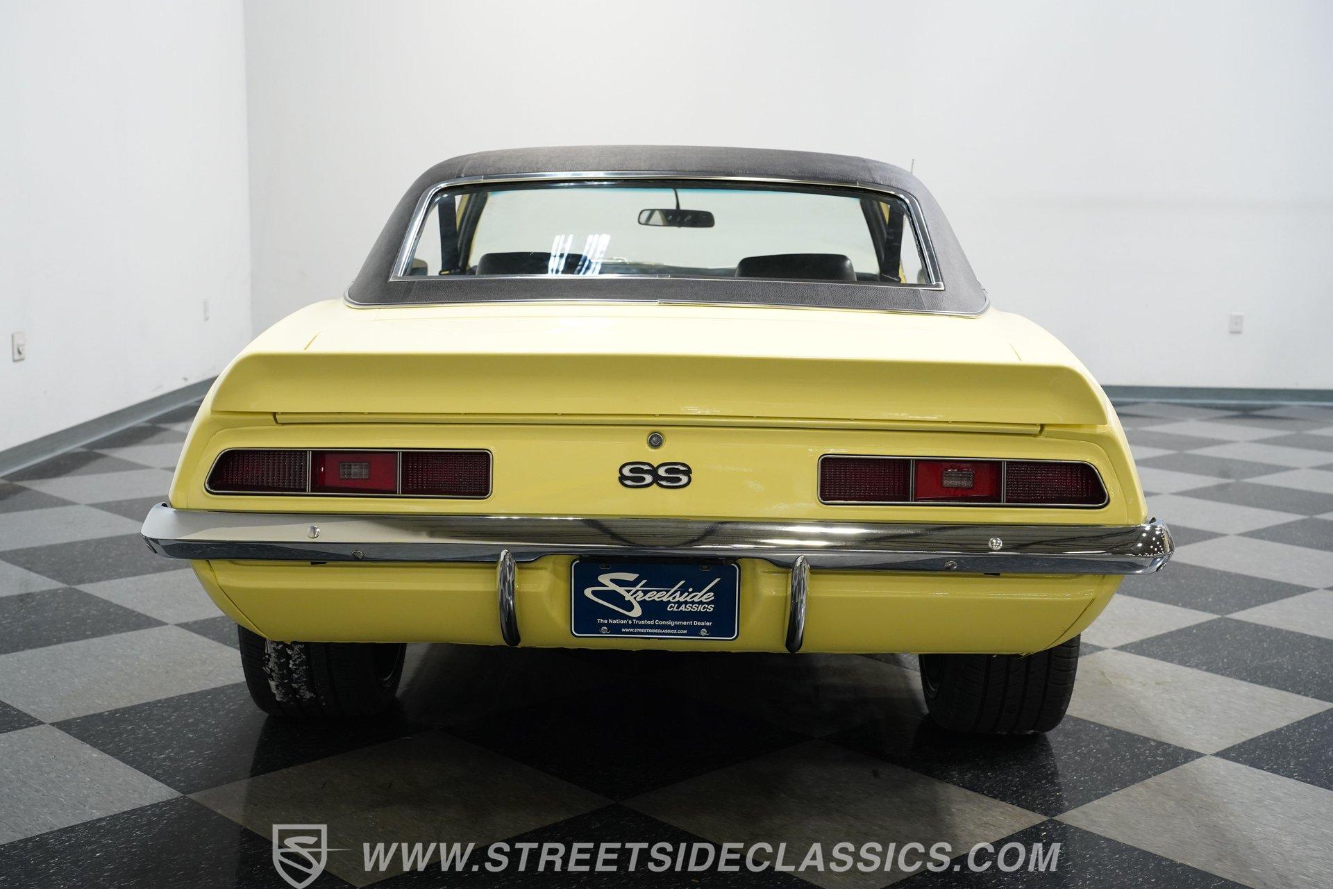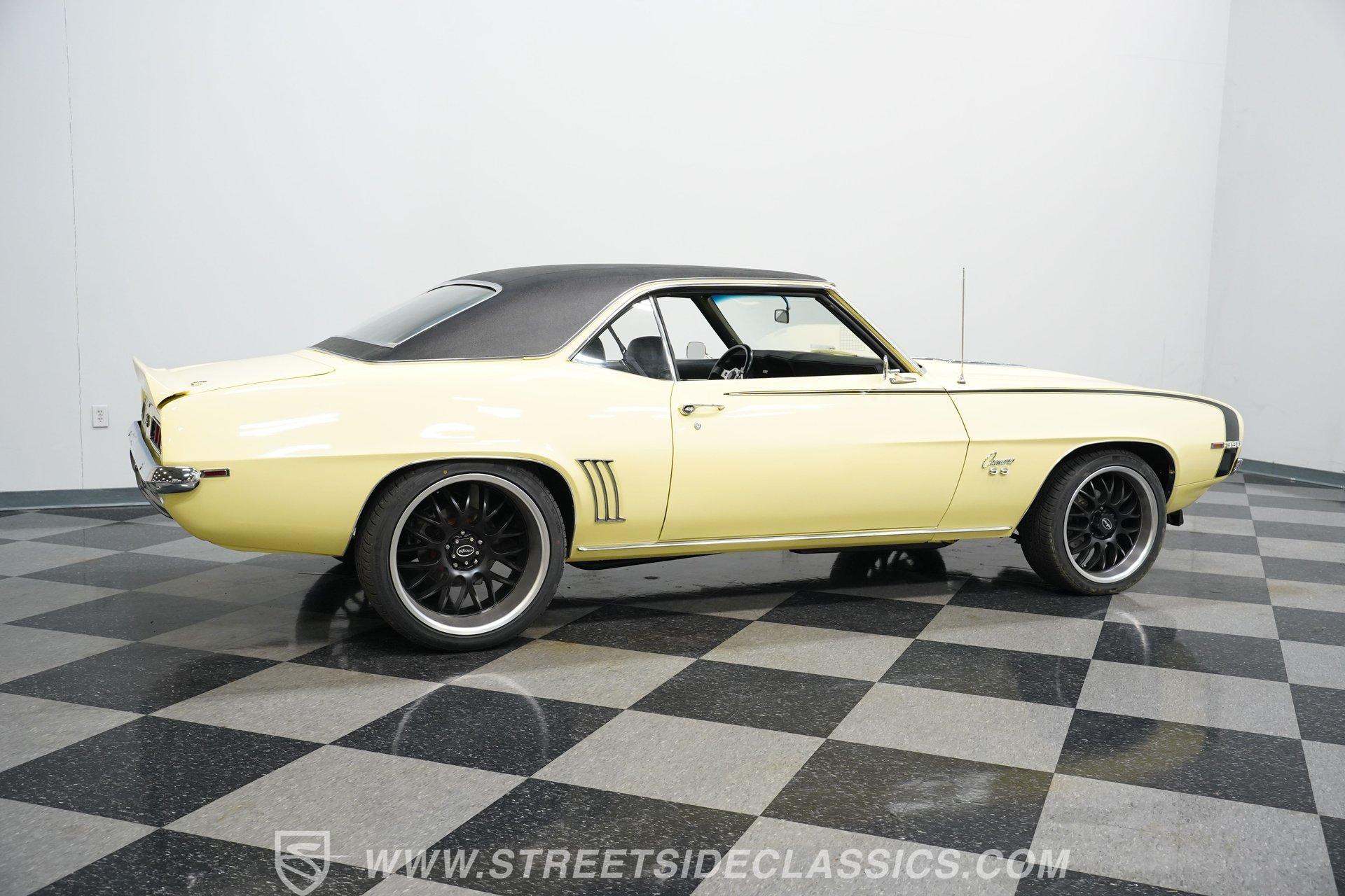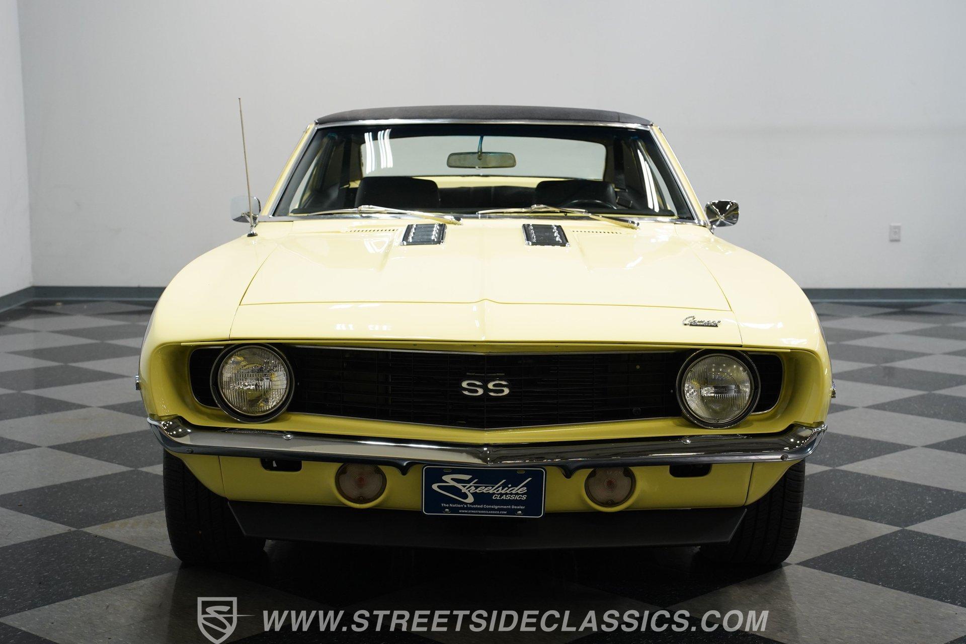 There are cars that turn heads, and then there are cars that capture hearts. The 1969 Chevrolet Camaro stands as an enduring symbol of freedom, power, and American ingenuity. Imagine the thrill of cruising down Main Street, the sun glinting off fresh Butternut yellow paint, the powerful rumble of a classic V8 echoing memories of golden-era muscle. This Camaro SS 350 Tribute is more than just a car-it's a rolling piece of history, ready to create new stories with its next owner. If you've ever dreamed of owning a true icon, this 1969 Chevrolet Camaro SS 350 Tribute is your chance. Step inside and you'll find an interior that channels the spirit of the late '60s. The cabin has been restored back to stock, offering the classic look and feel that enthusiasts crave. The seating is supportive and comfortable, the vinyl surfaces are inviting, and the classic gauge cluster keeps you connected to the car's heartbeat. Everything about the interior encourages you to sit back, grip the wheel, and enjoy the ride. Under the hood, this Camaro boasts a period-correct, date-coded 350 cubic inch V8, dressed with a mild cam for extra punch. Performance upgrades include a Jegs aluminum intake, Edelbrock carburetor, and long tube headers, all paired to a 4-speed manual transmission for a truly engaging driving experience. The Ford 9-inch rear axle ensures robust power delivery, while tubular control arms and frame connectors help the car handle with confidence. Power steering and power disc brakes at all four corners provide both safety and control. Highlights 1969 Chevrolet Camaro SS 350 Tribute Butternut Yellow With Fresh Respray And Graphics SS-Style Hood Complements Tribute Theme 350 CID V8 With Mild Cam Jegs Aluminum Intake And Edelbrock Carb Long Tube Headers For Enhanced Performance 4-Speed Manual Transmission Ford 9-Inch Rear Axle Tubular Control Arms And Frame Connectors Power Steering And Four-Wheel Power Disc Brakes 18" Front And 20" Rear SKOP (Coy) Wheels Factory Style Suspension With Fresh Tires (Dated 2025) Vinyl Interior Restored Back To Stock Full Repaint With Replaced Body Panels Documentation Includes Restoration Photos Financing Available Vehicle Protection Plans Available Worldwide Shipping This 1969 Chevrolet Camaro SS 350 Tribute offers a unique blend of classic style and modern upgrades, making it an excellent addition to any collection or a thrilling weekend cruiser. Don't miss your chance to own a true piece of muscle car history. Call, email, or come visit our showroom today!