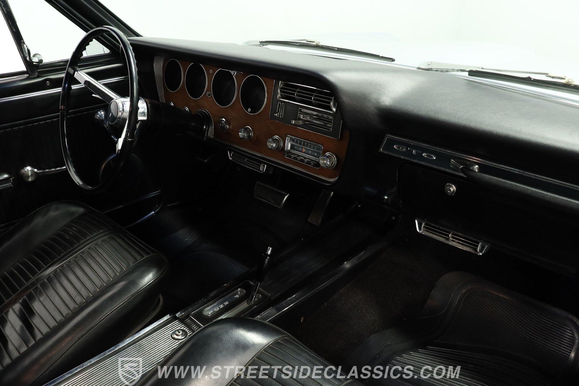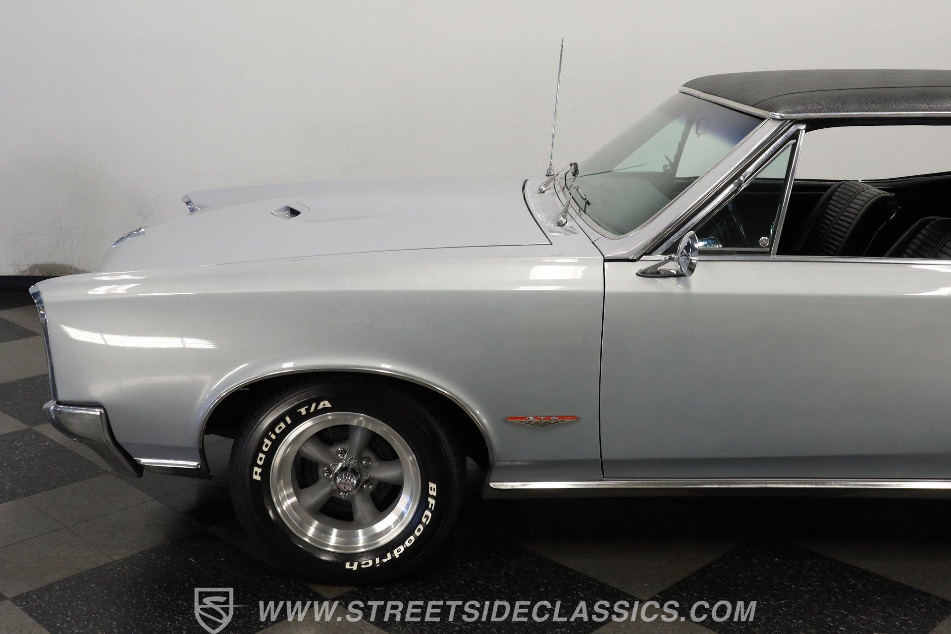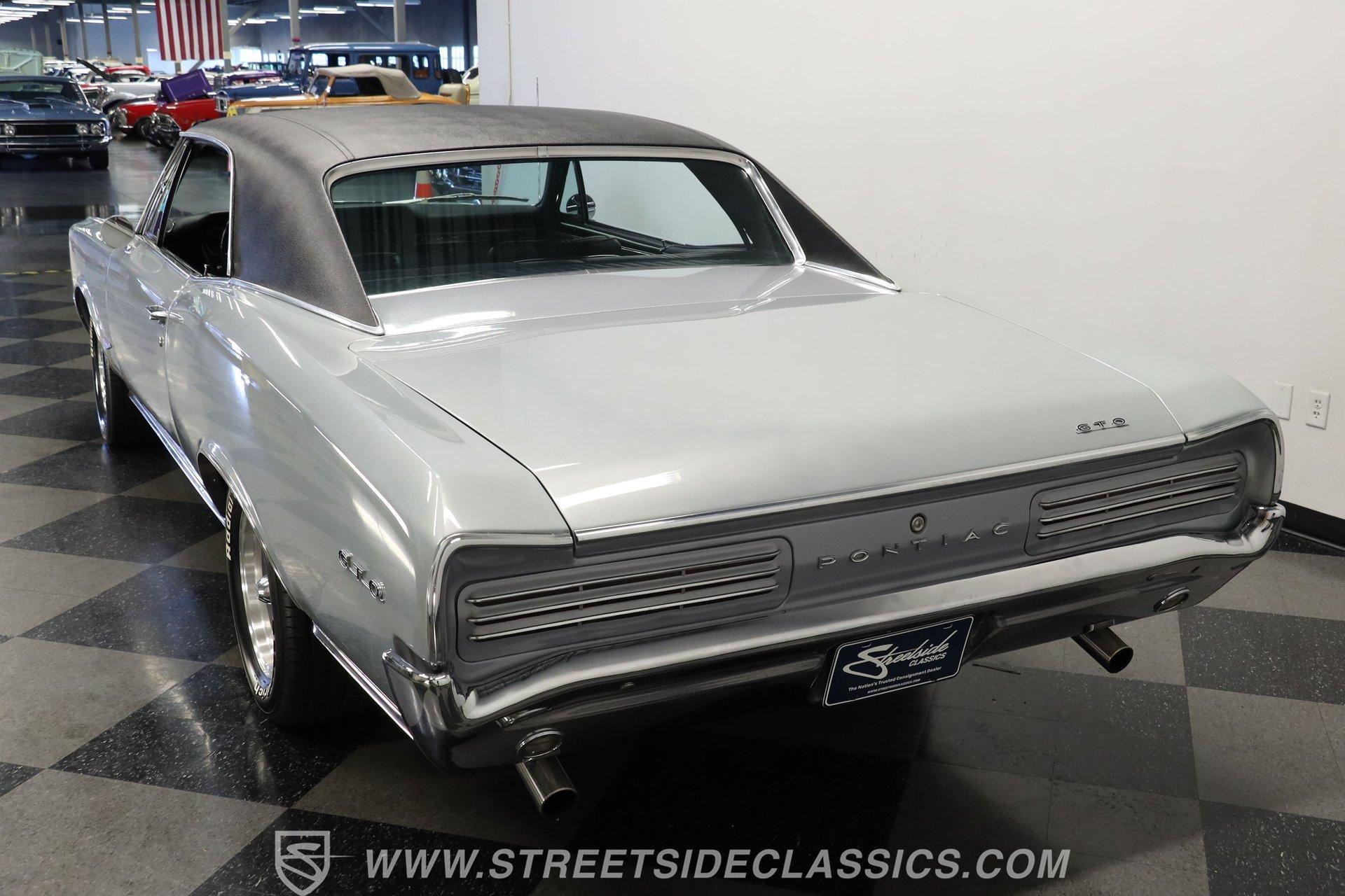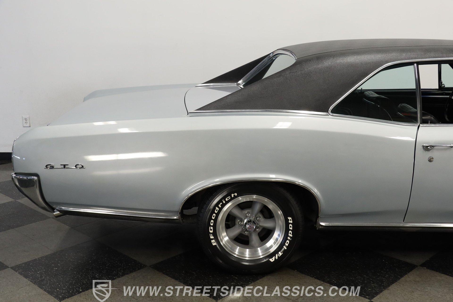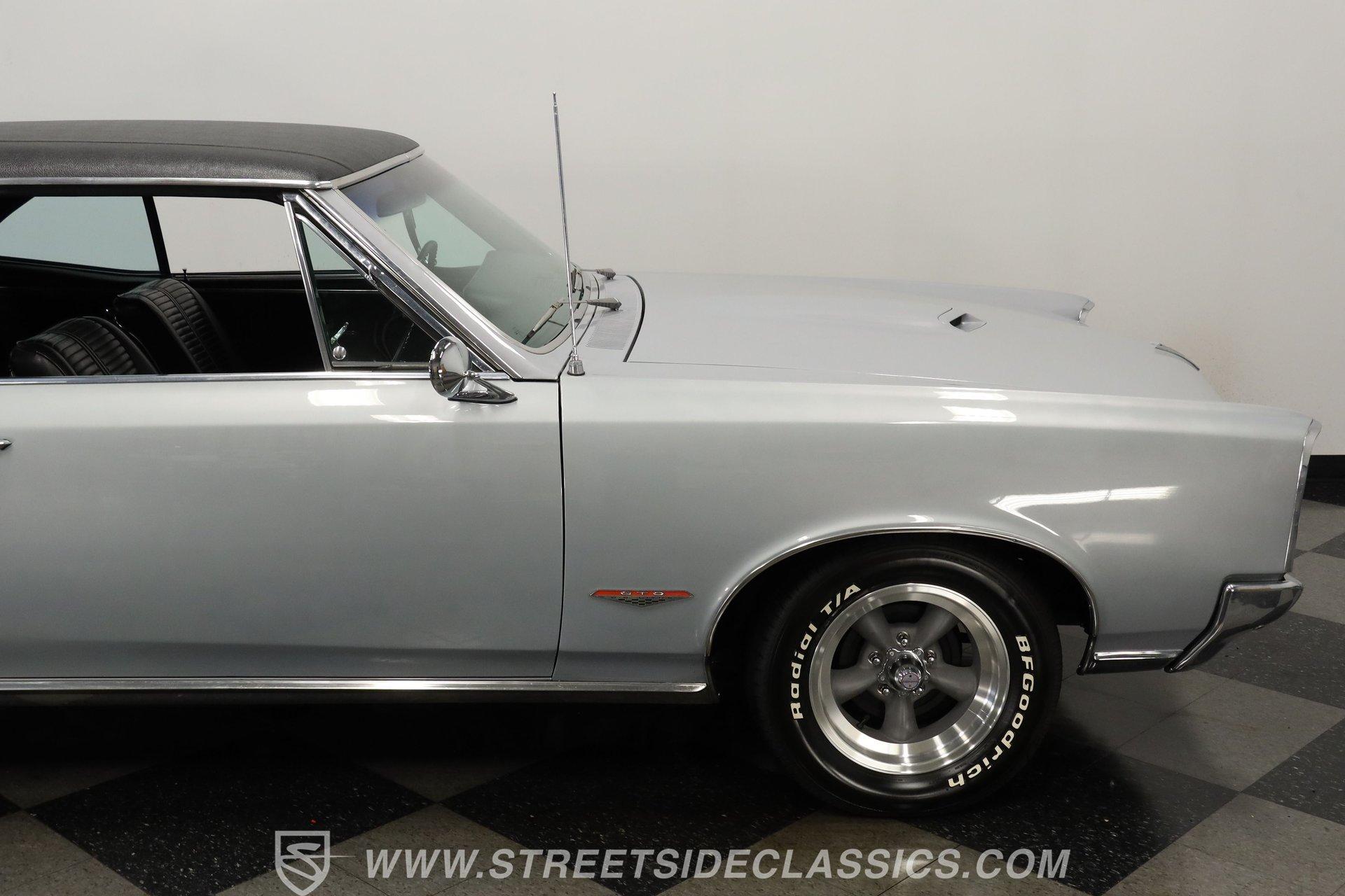 For Sale: 1966 Pontiac GTO – Platinum Power, Timeless Cool There is something truly special about slipping behind the wheel of a classic muscle car like the 1966 Pontiac GTO. It is more than a mode of transportation-it is a symbol of American ingenuity and the golden era of cruising. Imagine the sound of a throaty V8 rumbling to life, the glint of platinum paint under the sun, and the unmistakable presence this GTO brings wherever it goes. Every drive is a journey back to a time when style and power ruled the road. If you are ready to own a piece of history, this 1966 Pontiac GTO is waiting for you. Step inside and you are greeted by a well-preserved black interior, true to the original trim code (223 Black). The dash stands out with no cracks or fading, and the original gauge cluster and steering column evoke the car's heritage. The factory-style center console provides handy storage, while the headliner remains clean and intact. Manual windows and door locks keep things authentic, and an upgraded Pioneer radio hides discreetly in the glovebox, blending modern sound with classic looks. Under the hood, you will find a robust 389 V8 engine topped with a 4-barrel Edelbrock carburetor and high-rise Edelbrock intake, delivering the classic performance GTOs are known for. Power steering and power brakes make driving effortless, and an upgraded aluminum radiator with electric fan assembly helps keep things cool. The 3-speed automatic transmission ensures smooth cruising, while the clean engine bay speaks to the level of care this car has received. This GTO is equipped for both spirited drives and relaxed weekend outings. Highlights 1966 Pontiac GTO Platinum With Black Vinyl Top 389 V8 Engine With Edelbrock 4-Barrel Carb High Rise Edelbrock Intake Manifold 3-Speed Automatic Transmission Power Steering And Power Drum Brakes R12 Air Conditioning Upgraded Aluminum Radiator With Electric Fan Factory Style 15" American Racing Wheels Original Black Interior With Factory Console Repainted In Original Platinum (W-2 Code) Black Vinyl Top In Good Condition Pioneer Radio Mounted In Glovebox Financing Available Vehicle Protection Plans Available Worldwide Shipping The 1966 Pontiac GTO blends timeless design with classic American muscle, offering a driving experience that never goes out of style. Whether you are looking to turn heads at your next car show or simply want a piece of automotive history for your garage, this GTO is ready to impress. Call, email, or come visit our showroom today! Be sure to ask about our services offered; Financing, Vehicle Protection Plan, Insurance, and Transportation to your driveway!