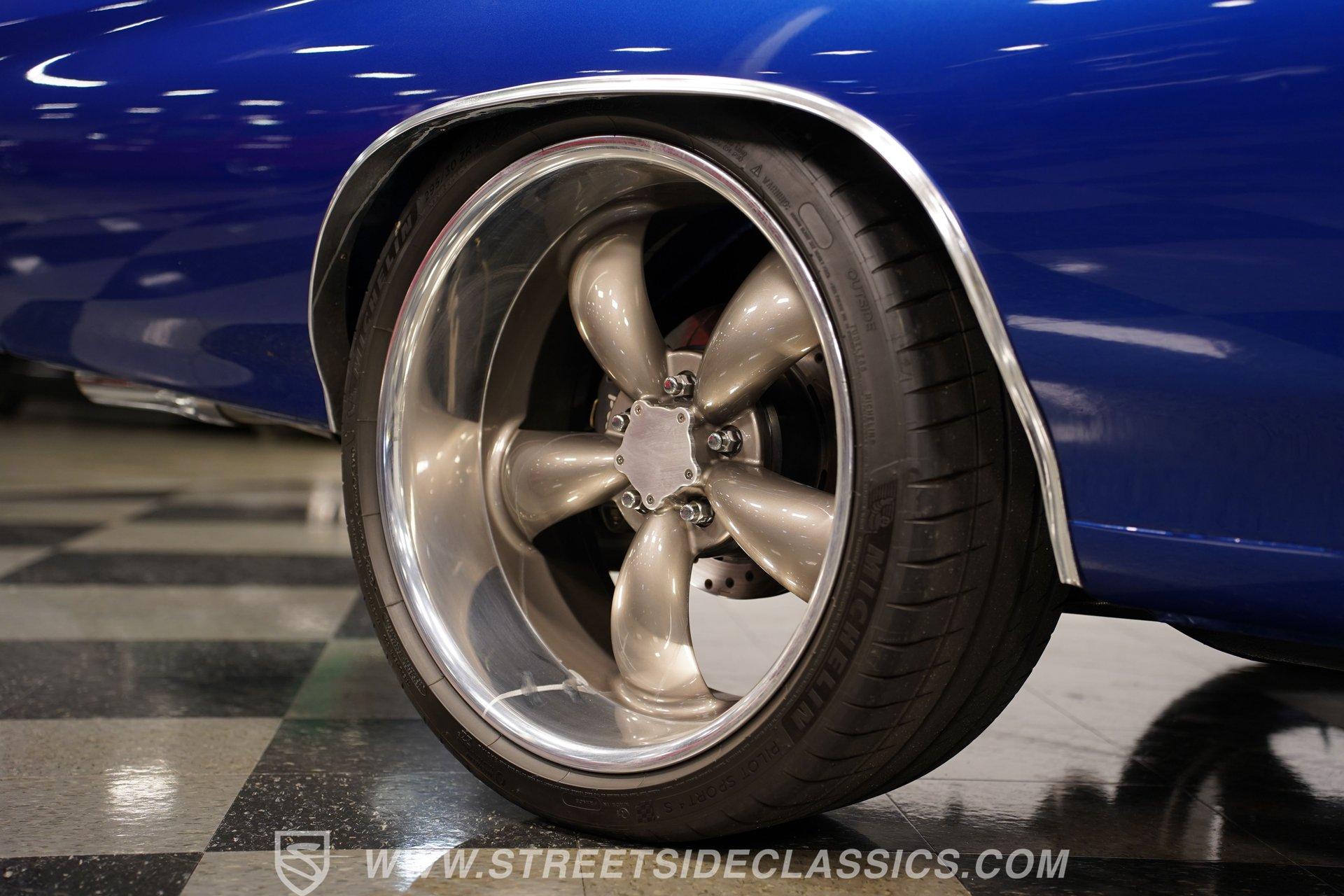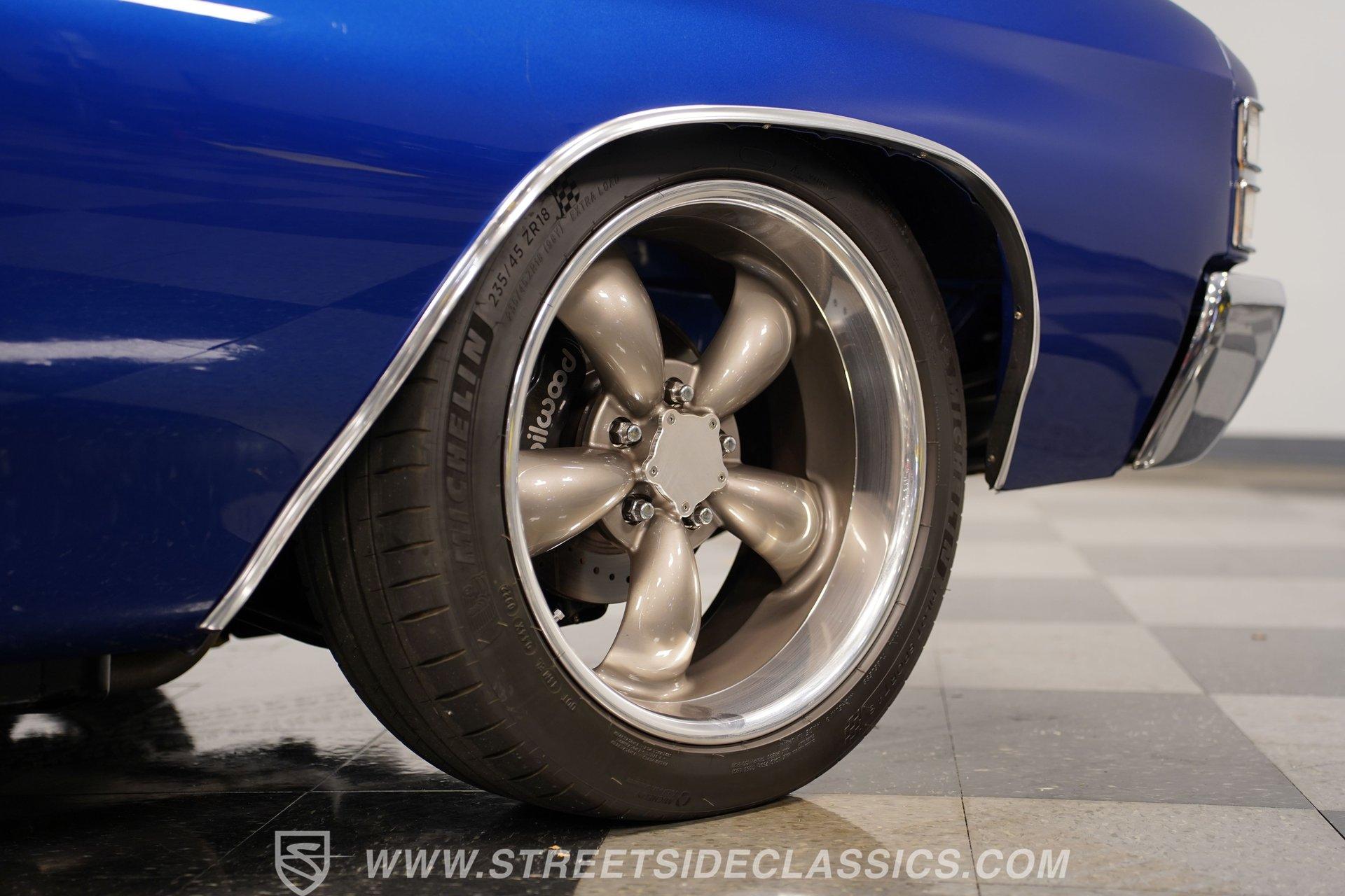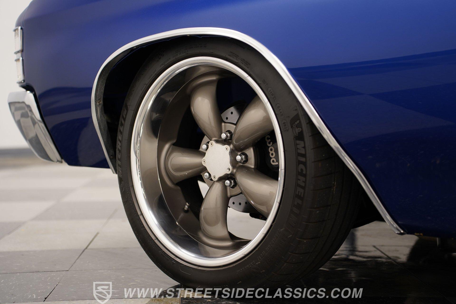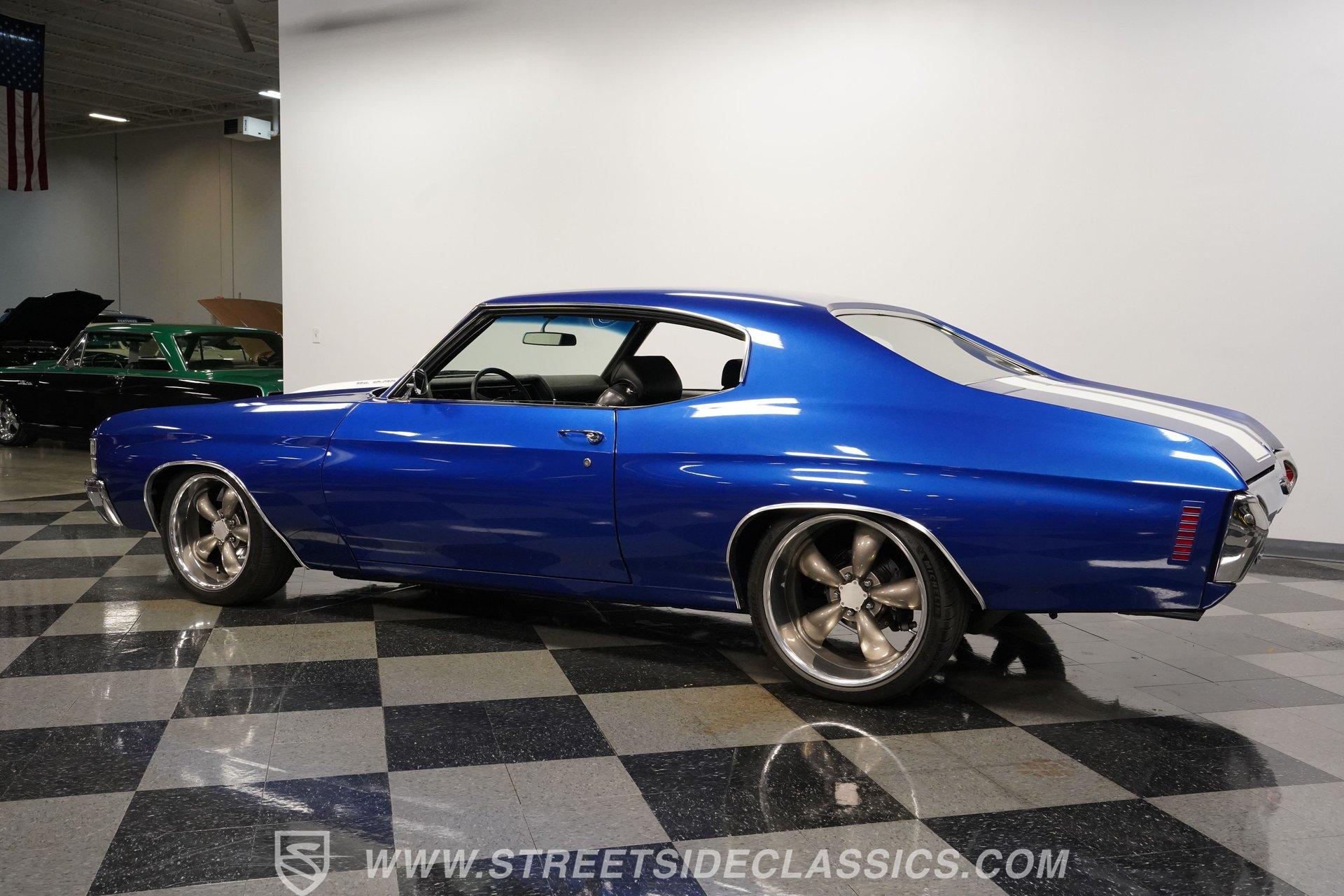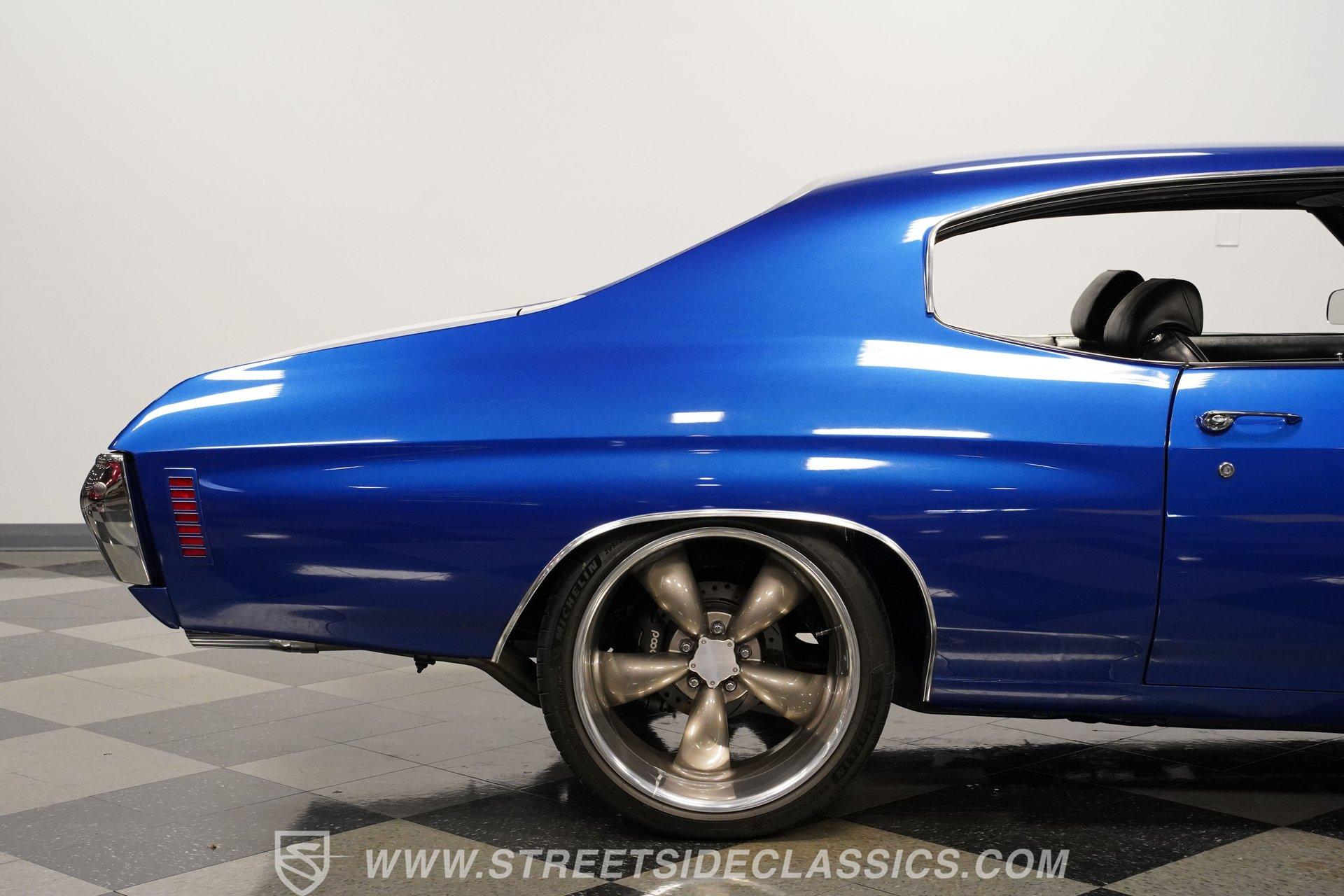 There are cars that turn heads, and there are cars that stop time. The 1971 Chevrolet Chevelle SS 454 Tribute Restomod is more than a machine... it is a rolling piece of American history, a symbol of power, freedom, and classic style. Imagine the stories told at every stoplight, the admiration at every gas station, and the pure thrill of driving a legend reborn. This Chevelle is not just a car... it is a statement, a celebration of the muscle car era with modern performance woven in. If you have ever dreamed of owning a car that blends vintage soul with contemporary upgrades, this 1971 Chevrolet Chevelle SS 454 Tribute Restomod is calling your name. Step inside and experience a cabin that honors the Chevelle's roots while subtly nodding to modern comfort. The factory-style interior is well preserved, comfy bucket seats, crisp carpeting, and a clean dash. Vintage Air controls ensure comfort in any season, while the aftermarket Dakota Digital gauges provide a modern touch... With all glass and seals in working order, and a shifter that feels just right in your hand, the interior is ready for both spirited drives and relaxed cruises. Under the hood, the heart of this Chevelle beats strong with a 454 big block V8, enhanced by Fi-Tech EFI for smooth startups and reliable power. Hedman long tube headers and FlowMaster mufflers deliver an unmistakable sound, while an aluminum intake and valve covers add a touch of show-car shine. The T56 5-speed manual transmission provides precise shifts, and a 12-bolt rear axle ensures that all that power gets to the ground. Suspension upgrades include CCP tubular control arms, coilovers, sway bars, and KYB shocks for a confident, smooth ride, while Wilwood 4-wheel power disc brakes with slotted and drilled rotors offer modern stopping power. A professionally detailed engine bay completes the mechanical package, making this Chevelle as fun to drive as it is to admire. Highlights 454 Big Block V8 Fi-Tech EFI Fi-Tech EFI T56 5-Speed Manual Transmission 12-Bolt Rear Axle CCP Tubular Control Arms KYB Shocks And Lowering Springs Wilwood Power 4-Wheel Disc Brakes Hedman Long Tube Headers, FlowMaster Mufflers Vintage Air Conditioning Dakota Digital Gauges Show Quality Engine Bay Metallic Flake Finish 20" Aftermarket Wheels, Michelin PS4 Tires Dual Chrome Tip Exhaust Financing Available Vehicle Protection Plans Available Worldwide Shipping This 1971 Chevrolet Chevelle SS 454 Tribute Restomod is a high-end build that offers the best of both worlds-classic muscle car charm and modern reliability. Whether you want a showstopper or a weekend cruiser, this Chevelle is ready for its next adventure. Call, email, or come visit our showroom today!