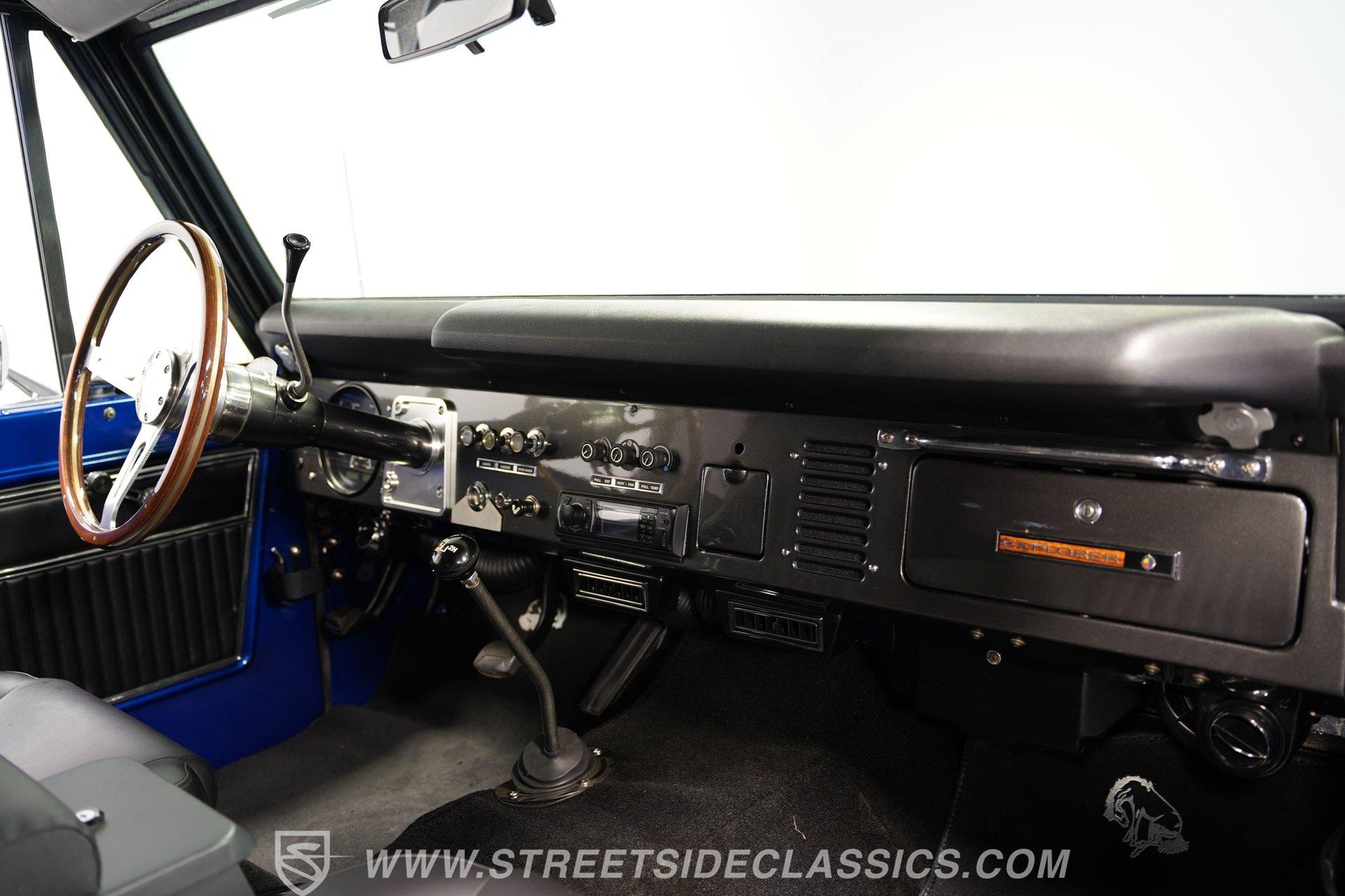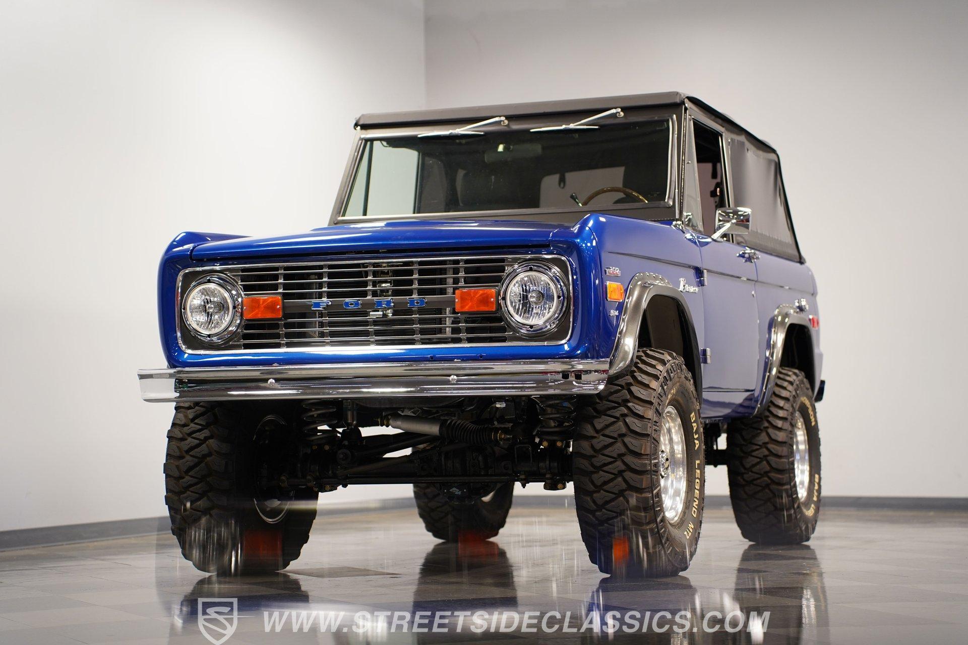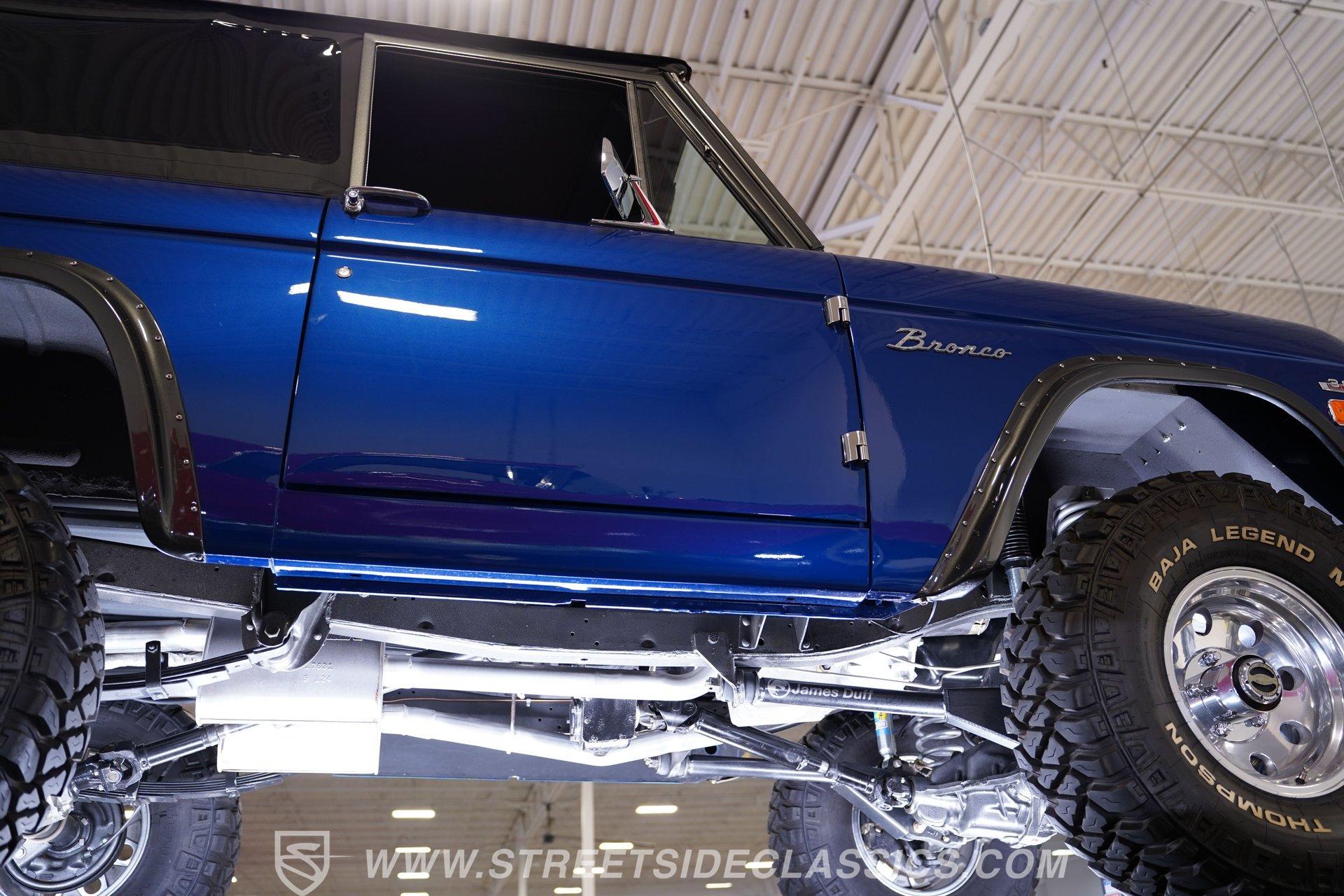 There are vehicles that simply get you from point A to point B, and then there are icons that turn every journey into an adventure. The 1973 Ford Bronco represents a time when open roads meant freedom, and every drive was a chance to make new memories. This Bronco is more than just a classic... it is a statement of style and capability, a symbol of rugged American spirit blended with modern comfort. If you have ever dreamed of owning a vintage SUV that draws attention and admiration wherever it goes, this beautifully restored 1973 Ford Bronco 4x4 Restomod is the one you have been waiting for. Step inside and discover an interior crafted for both comfort and style. The dash and doors are painted to match the glossy exterior, creating a unified and refined look. High-back bucket seats up front and a rear bench look brand new, offering support for every adventure. The Dakota Digital gauge cluster, wooden steering wheel, and Boss stereo head unit with speakers built into the rear panels add both sophistication and modern convenience. LED interior lighting, a locking center console, and well-fitted carpets complete a cabin built for enjoyment, whether you are cruising the boulevard or hitting the trail. Under the hood lies a 302 V8 engine, equipped with Blueprint heads, Edelbrock intake, Fi-Tech fuel injection, and Hooker headers for impressive power and reliability. The engine bay is a showpiece, featuring a glass-painted finish, March pulley system, and a newer aluminum radiator with dual electric fans to keep things cool. A smooth-shifting 3-speed automatic transmission and well-sorted drivetrain ensure every drive feels responsive and controlled. The Bronco's four-wheel-drive system operates seamlessly, making it ready for both city streets and off-road exploration. Highlights Pearl Gloss Finish 302 V8 With Blueprint Heads Fi-Tech Fuel Injection System Hooker Headers And March Pulley System Aluminum Radiator With Dual Electric Fans 3-Speed Automatic Transmission Dana 44 Front Axle And 9-Inch Rear Bilstein Shocks 15-Inch Eagle Alloy Wheels With 33-Inch Tires Power Front Disc Brakes High-Back Bucket Seats Dakota Digital Gauge Cluster And Boss Stereo Rampage Soft Top LED Interior Lighting And Locking Center Console Financing Available Vehicle Protection Plans Available Worldwide Shipping Owning this 1973 Ford Bronco 4x4 Restomod means experiencing the best of classic design and modern performance. Its combination of show-quality restoration, powerful upgrades, and timeless appeal make it a standout choice for collectors and enthusiasts alike. Opportunities like this do not come along often. Call, email, or come visit our showroom today!