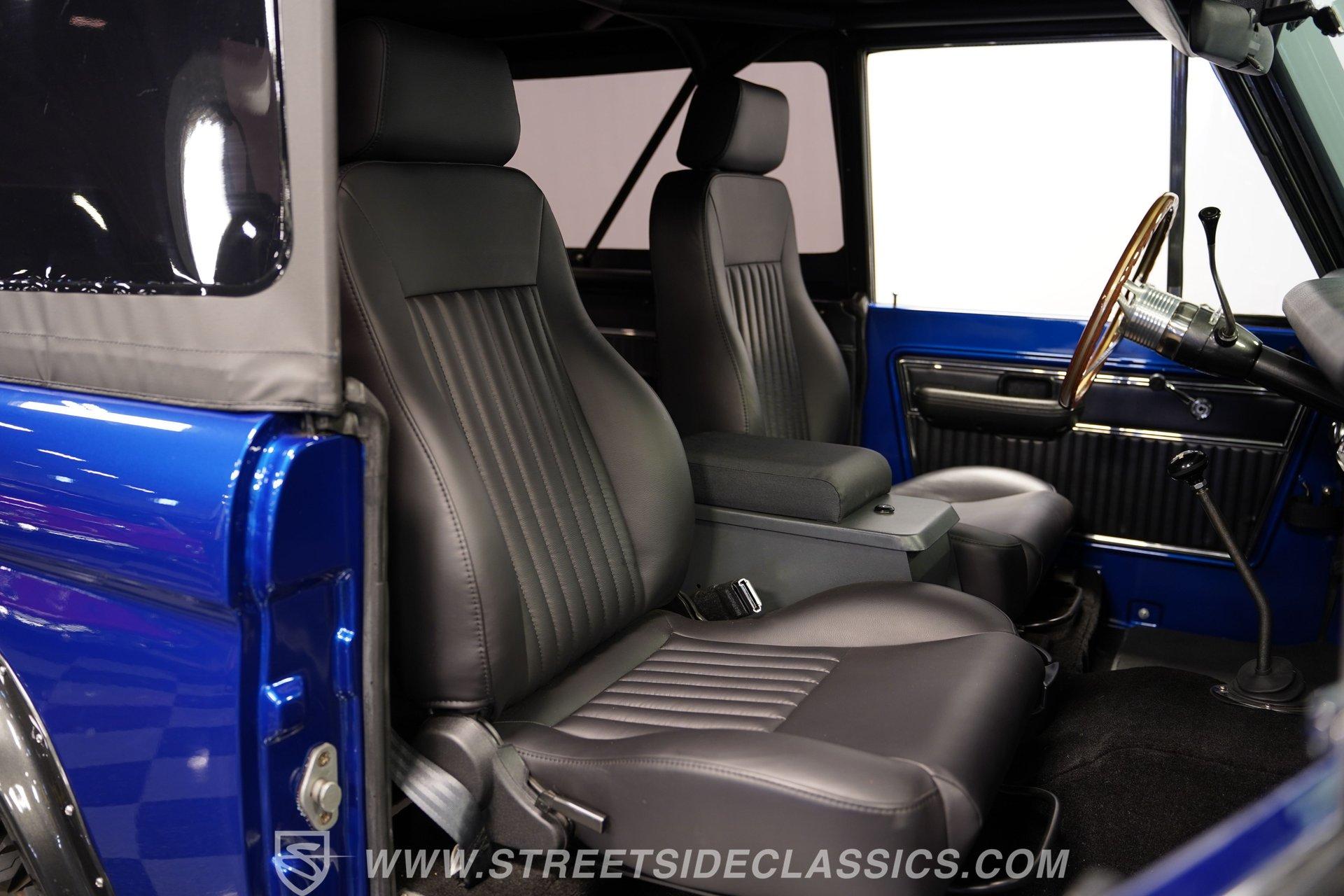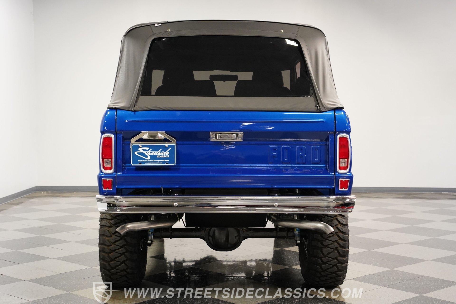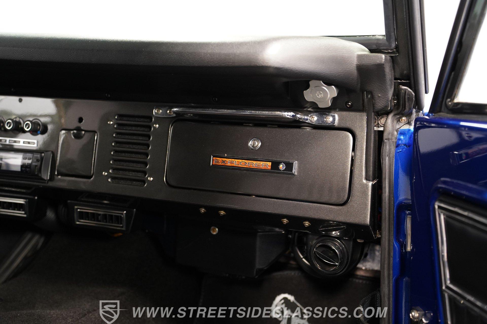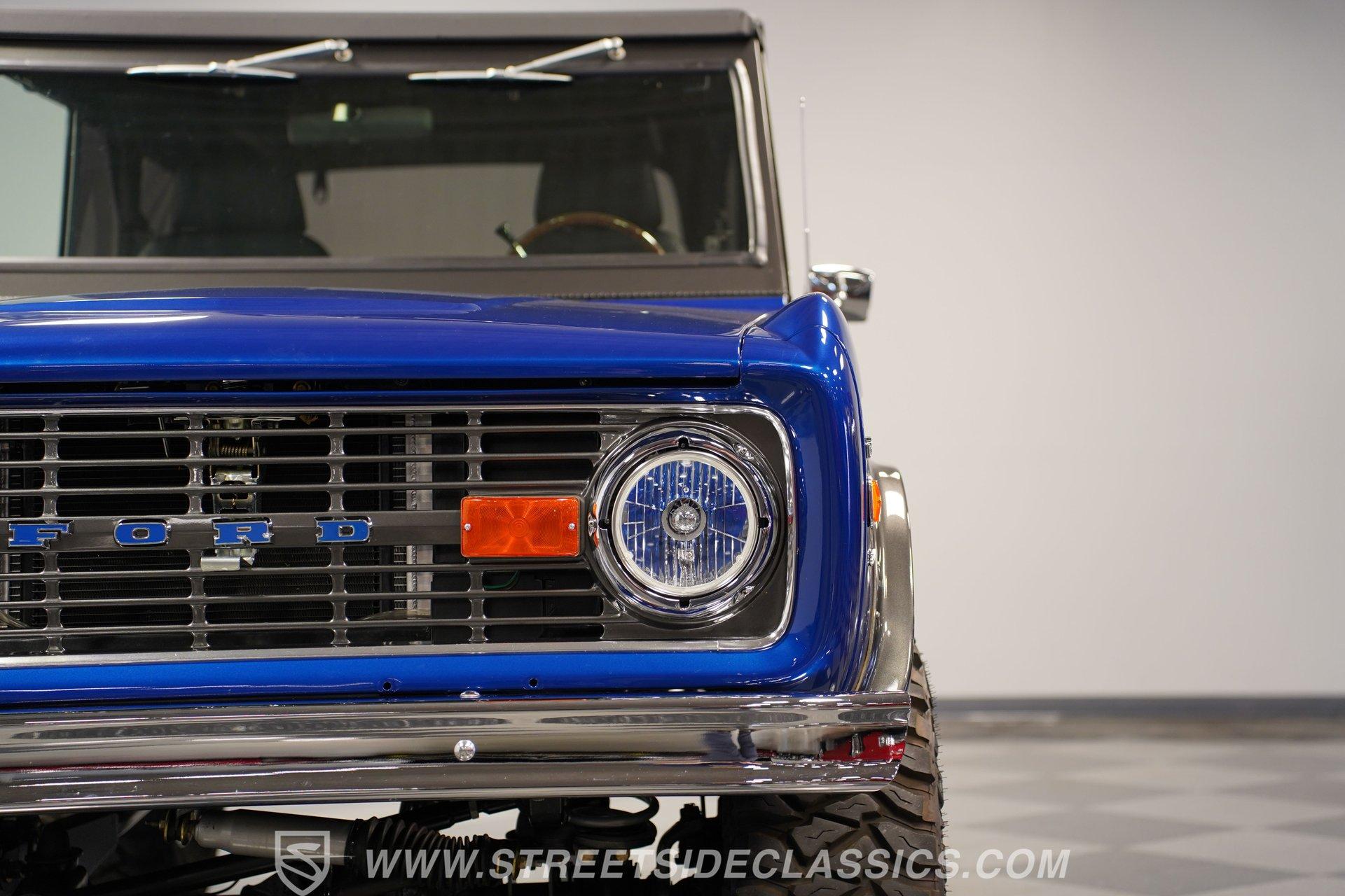 There are vehicles that simply get you from point A to point B, and then there are icons that turn every journey into an adventure. The 1973 Ford Bronco represents a time when open roads meant freedom, and every drive was a chance to make new memories. This Bronco is more than just a classic... it is a statement of style and capability, a symbol of rugged American spirit blended with modern comfort. If you have ever dreamed of owning a vintage SUV that draws attention and admiration wherever it goes, this beautifully restored 1973 Ford Bronco 4x4 Restomod is the one you have been waiting for. Step inside and discover an interior crafted for both comfort and style. The dash and doors are painted to match the glossy exterior, creating a unified and refined look. High-back bucket seats up front and a rear bench look brand new, offering support for every adventure. The Dakota Digital gauge cluster, wooden steering wheel, and Boss stereo head unit with speakers built into the rear panels add both sophistication and modern convenience. LED interior lighting, a locking center console, and well-fitted carpets complete a cabin built for enjoyment, whether you are cruising the boulevard or hitting the trail. Under the hood lies a 302 V8 engine, equipped with Blueprint heads, Edelbrock intake, Fi-Tech fuel injection, and Hooker headers for impressive power and reliability. The engine bay is a showpiece, featuring a glass-painted finish, March pulley system, and a newer aluminum radiator with dual electric fans to keep things cool. A smooth-shifting 3-speed automatic transmission and well-sorted drivetrain ensure every drive feels responsive and controlled. The Bronco's four-wheel-drive system operates seamlessly, making it ready for both city streets and off-road exploration. Highlights Pearl Gloss Finish 302 V8 With Blueprint Heads Fi-Tech Fuel Injection System Hooker Headers And March Pulley System Aluminum Radiator With Dual Electric Fans 3-Speed Automatic Transmission Dana 44 Front Axle And 9-Inch Rear Bilstein Shocks 15-Inch Eagle Alloy Wheels With 33-Inch Tires Power Front Disc Brakes High-Back Bucket Seats Dakota Digital Gauge Cluster And Boss Stereo Rampage Soft Top LED Interior Lighting And Locking Center Console Financing Available Vehicle Protection Plans Available Worldwide Shipping Owning this 1973 Ford Bronco 4x4 Restomod means experiencing the best of classic design and modern performance. Its combination of show-quality restoration, powerful upgrades, and timeless appeal make it a standout choice for collectors and enthusiasts alike. Opportunities like this do not come along often. Call, email, or come visit our showroom today!