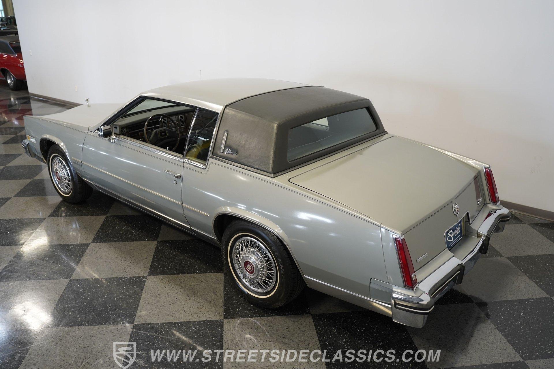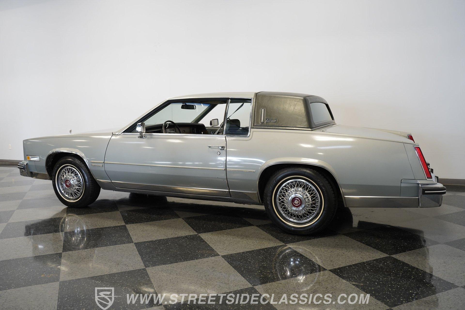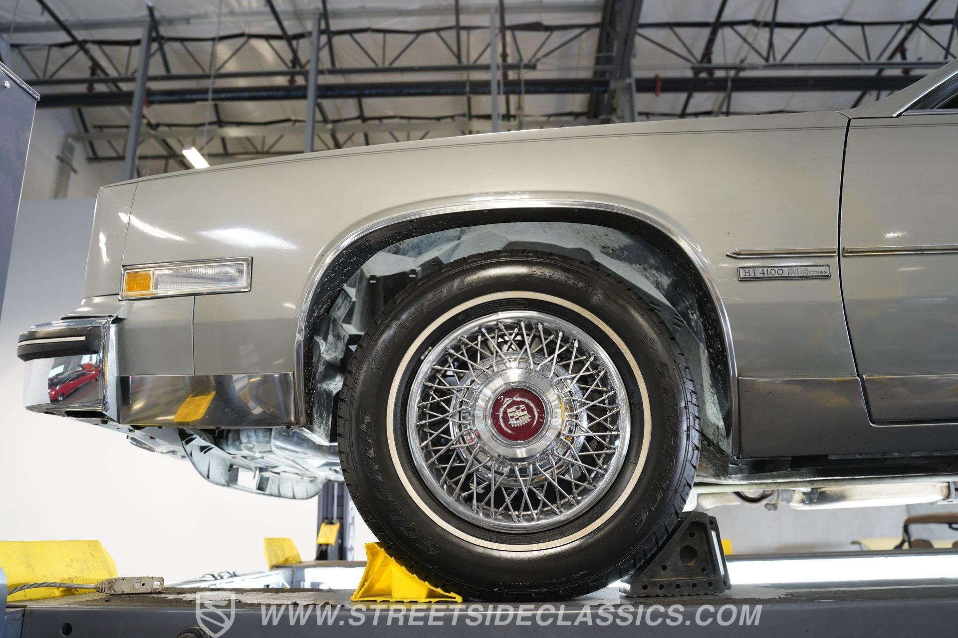 As it rolls into view, the 1983 Cadillac Eldorado exudes an air of elegance that's hard to ignore. Its Silver Metallic exterior glistens under the sun, a shade that whispers luxury rather than shouting it. This Cadillac rides on 15" wheels encased in 205/75R15 tires, a pairing that promises a smooth sail over the pavement. The chrome trim gives this vehicle an extra dose of sophistication, while the soft-close trunk adds a touch of modern convenience to the vintage charm. Step inside, and you're greeted by the sumptuous light gray leather interior. The seats, designed for luxury and comfort, pair beautifully with the well-preserved dash that hosts an array of gadgets, including the AM/FM/Cassette Delco Bose Symphony Sound system. The overall condition tells a story of love and care. Power windows, locks, mirrors, and seats are just the tip of the iceberg, with added comforts like telescopic steering, tilt, and cruise control making every drive a pleasure. Power from the 4.1L V8 engine, complemented by a 4-speed automatic transmission with overdrive, stands ready to deliver smooth acceleration. This setup, along with features such as fuel injection, power 4-wheel disc brakes, power steering, and a fully independent suspension, ensures that this Eldorado doesn't just look good-it feels good to drive too. The engine bay's cleanliness and organization reflect meticulous maintenance, hinting at the attention this Cadillac has received. HIGHLIGHTS: 4.1L V8 Engine 4-Speed Automatic Transmission with Overdrive Fuel Injection Power 4-Wheel Disc Brakes Fully Independent Suspension Silver Metallic Paint 15" Chrome Wire Wheels in 205/75R15 Tires Soft-Close Trunk Vinyl Top Leather Interior AM/FM/Cassette Delco Bose Symphony Sound System Power Windows, Locks, Mirrors, Seats Telescopic Steering Tilt Steering Wheel Power Steering This 1983 Cadillac Eldorado, with its sophisticated 4.1L V8 engine, leather interior that combines comfort with class, and the unmatched ride quality provided by its mechanical features, embodies automotive elegance. It offers a remarkable journey through time that still promises modern reliability and comfort. Call today!