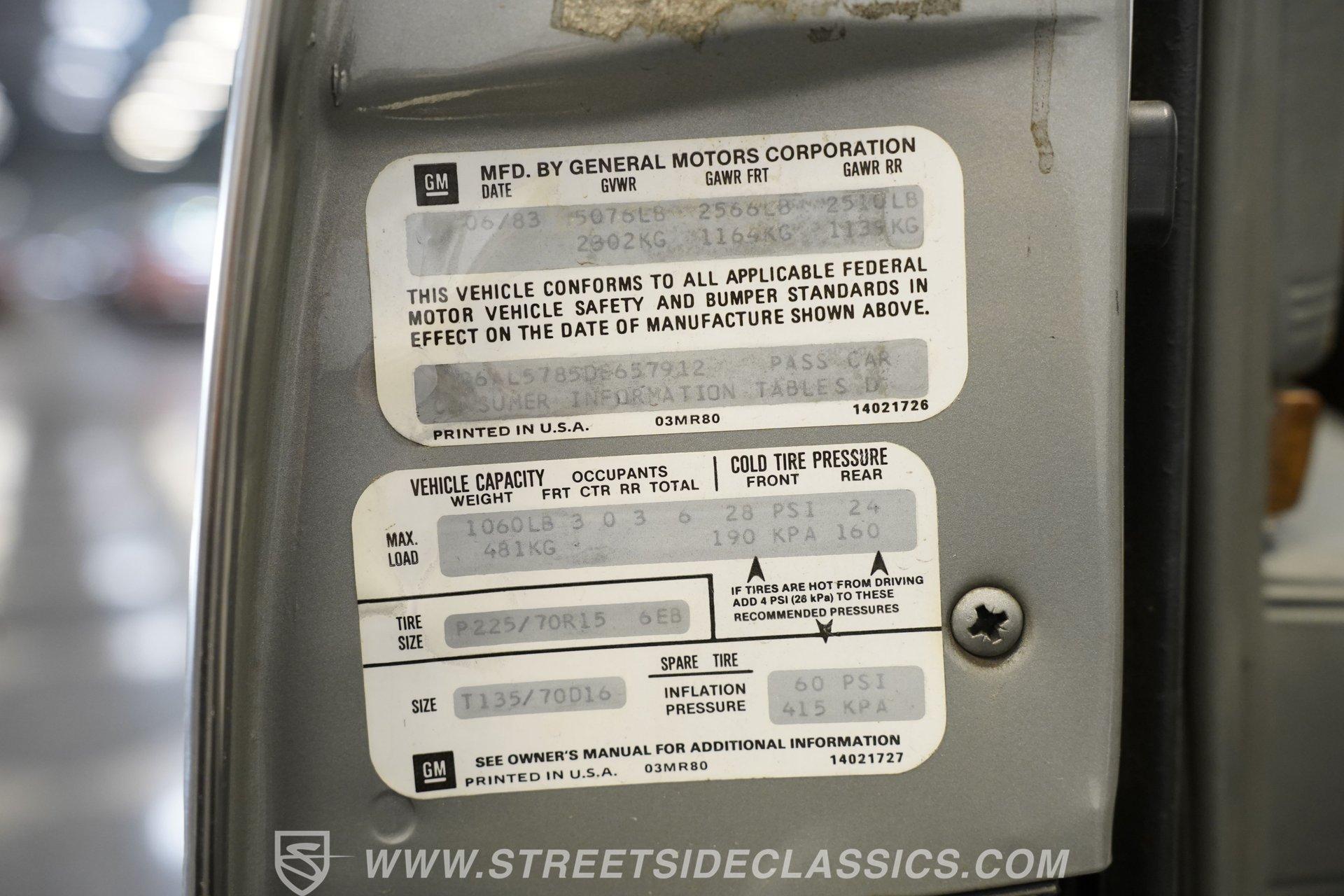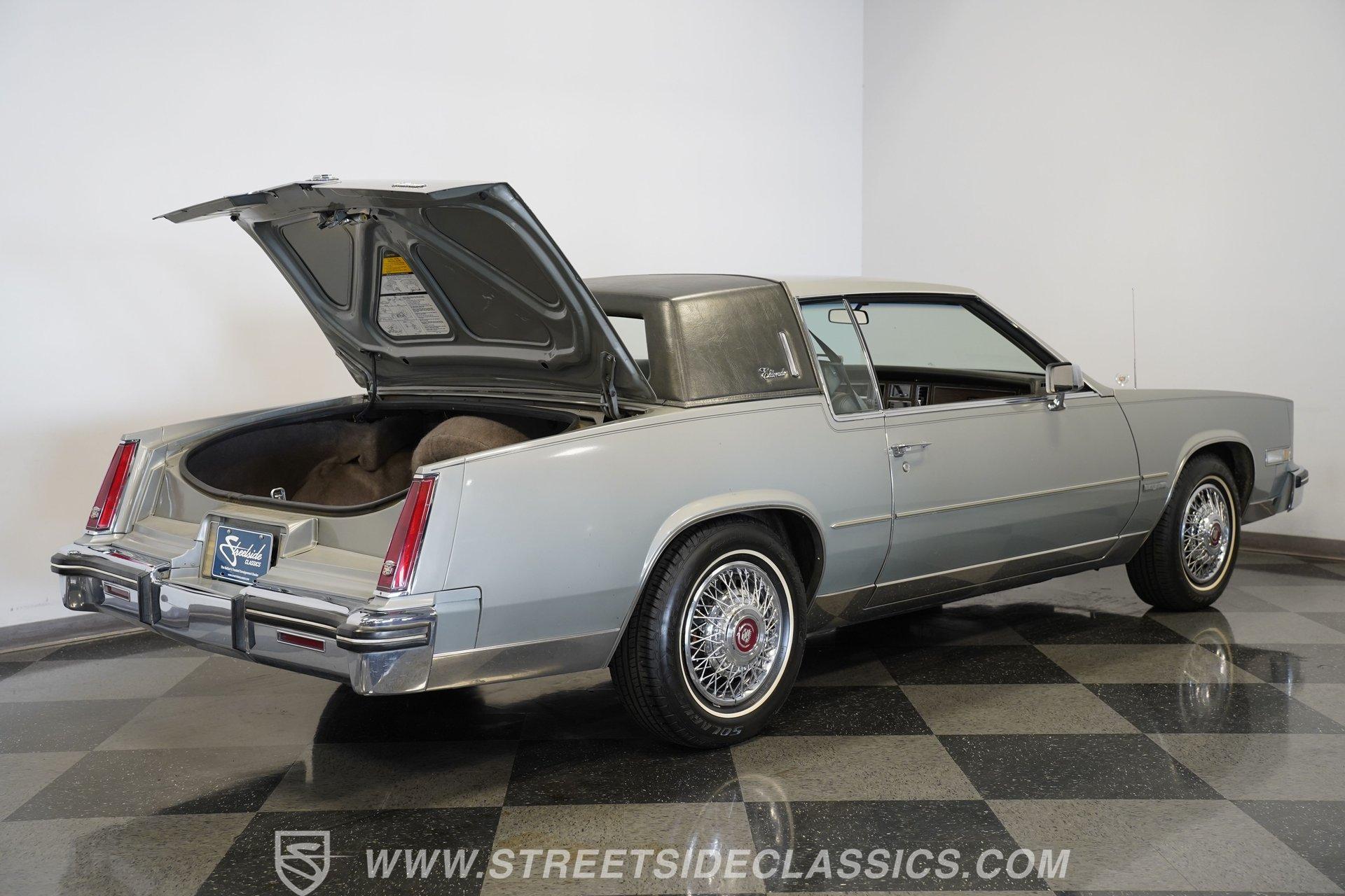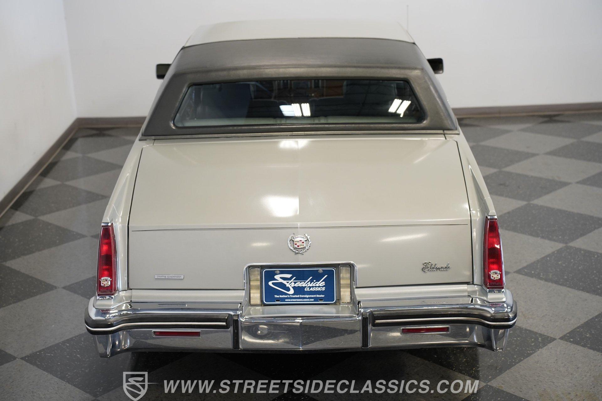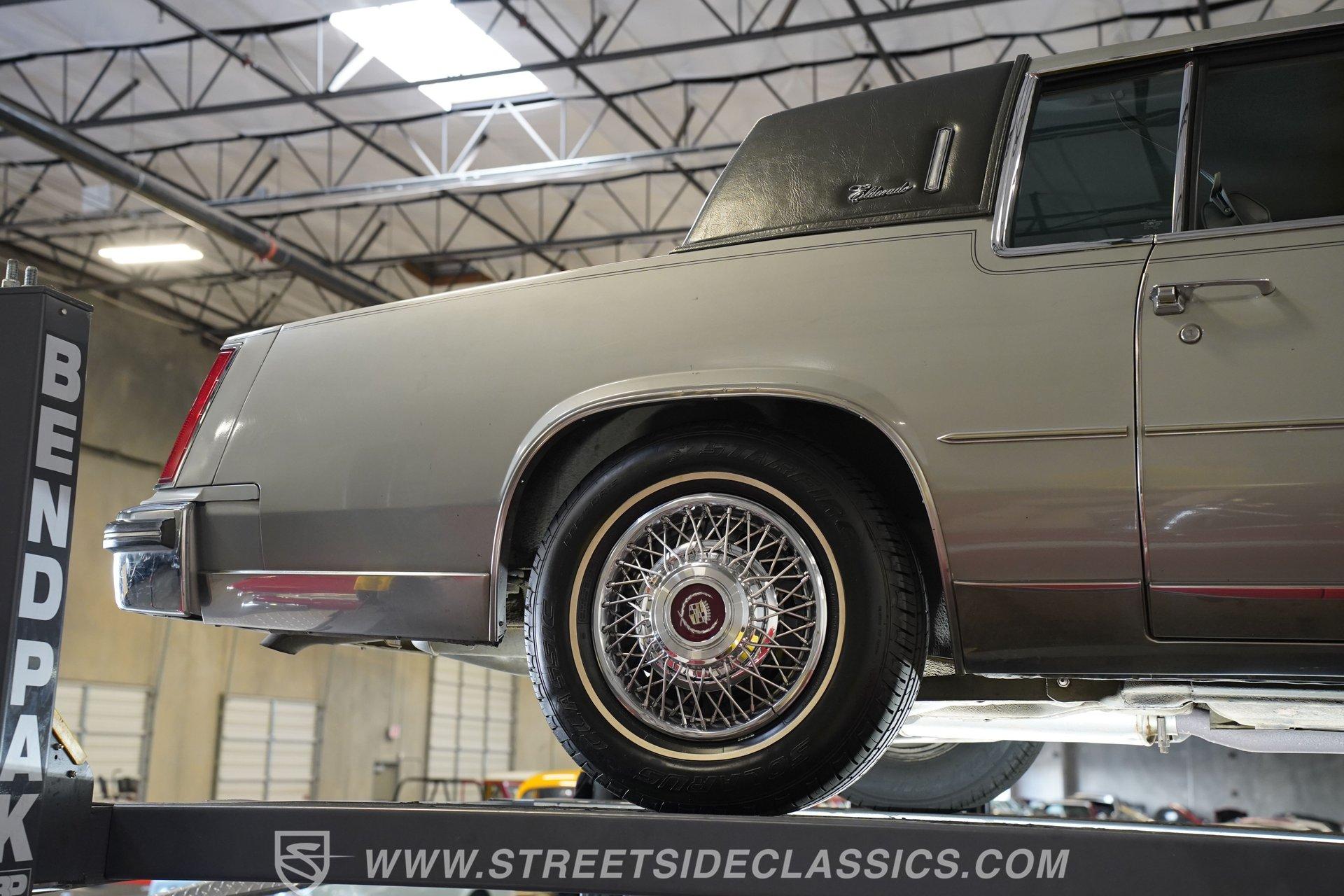 As it rolls into view, the 1983 Cadillac Eldorado exudes an air of elegance that's hard to ignore. Its Silver Metallic exterior glistens under the sun, a shade that whispers luxury rather than shouting it. This Cadillac rides on 15" wheels encased in 205/75R15 tires, a pairing that promises a smooth sail over the pavement. The chrome trim gives this vehicle an extra dose of sophistication, while the soft-close trunk adds a touch of modern convenience to the vintage charm. Step inside, and you're greeted by the sumptuous light gray leather interior. The seats, designed for luxury and comfort, pair beautifully with the well-preserved dash that hosts an array of gadgets, including the AM/FM/Cassette Delco Bose Symphony Sound system. The overall condition tells a story of love and care. Power windows, locks, mirrors, and seats are just the tip of the iceberg, with added comforts like telescopic steering, tilt, and cruise control making every drive a pleasure. Power from the 4.1L V8 engine, complemented by a 4-speed automatic transmission with overdrive, stands ready to deliver smooth acceleration. This setup, along with features such as fuel injection, power 4-wheel disc brakes, power steering, and a fully independent suspension, ensures that this Eldorado doesn't just look good-it feels good to drive too. The engine bay's cleanliness and organization reflect meticulous maintenance, hinting at the attention this Cadillac has received. HIGHLIGHTS: 4.1L V8 Engine 4-Speed Automatic Transmission with Overdrive Fuel Injection Power 4-Wheel Disc Brakes Fully Independent Suspension Silver Metallic Paint 15" Chrome Wire Wheels in 205/75R15 Tires Soft-Close Trunk Vinyl Top Leather Interior AM/FM/Cassette Delco Bose Symphony Sound System Power Windows, Locks, Mirrors, Seats Telescopic Steering Tilt Steering Wheel Power Steering This 1983 Cadillac Eldorado, with its sophisticated 4.1L V8 engine, leather interior that combines comfort with class, and the unmatched ride quality provided by its mechanical features, embodies automotive elegance. It offers a remarkable journey through time that still promises modern reliability and comfort. Call today!