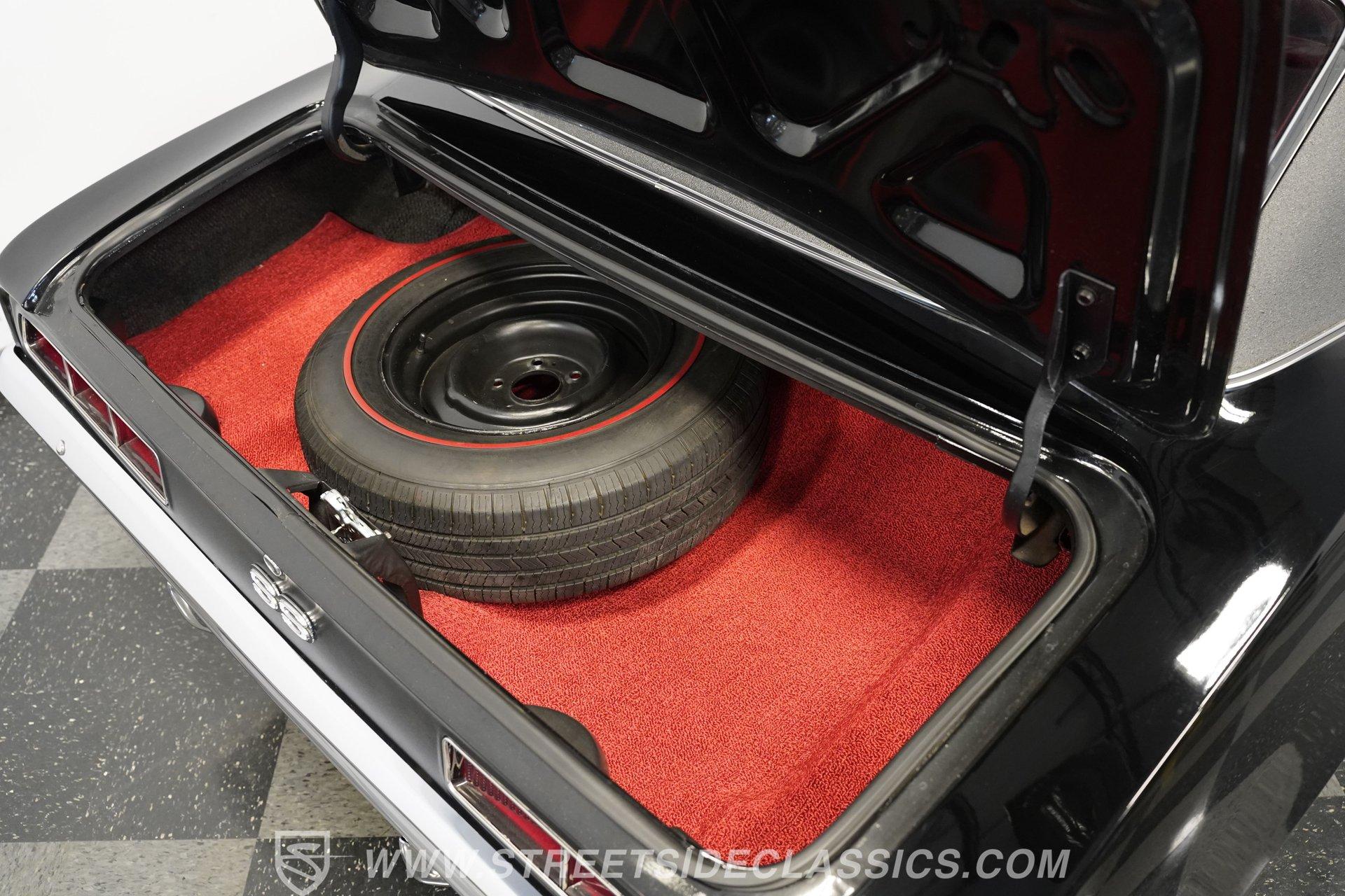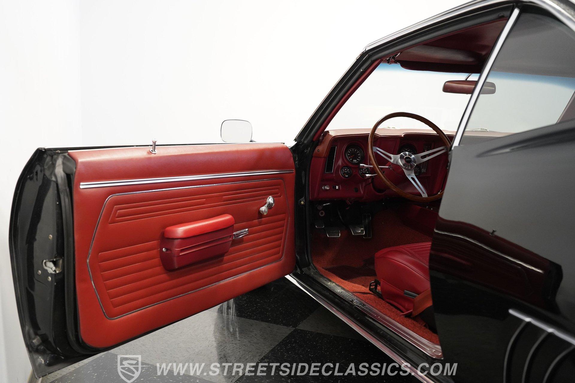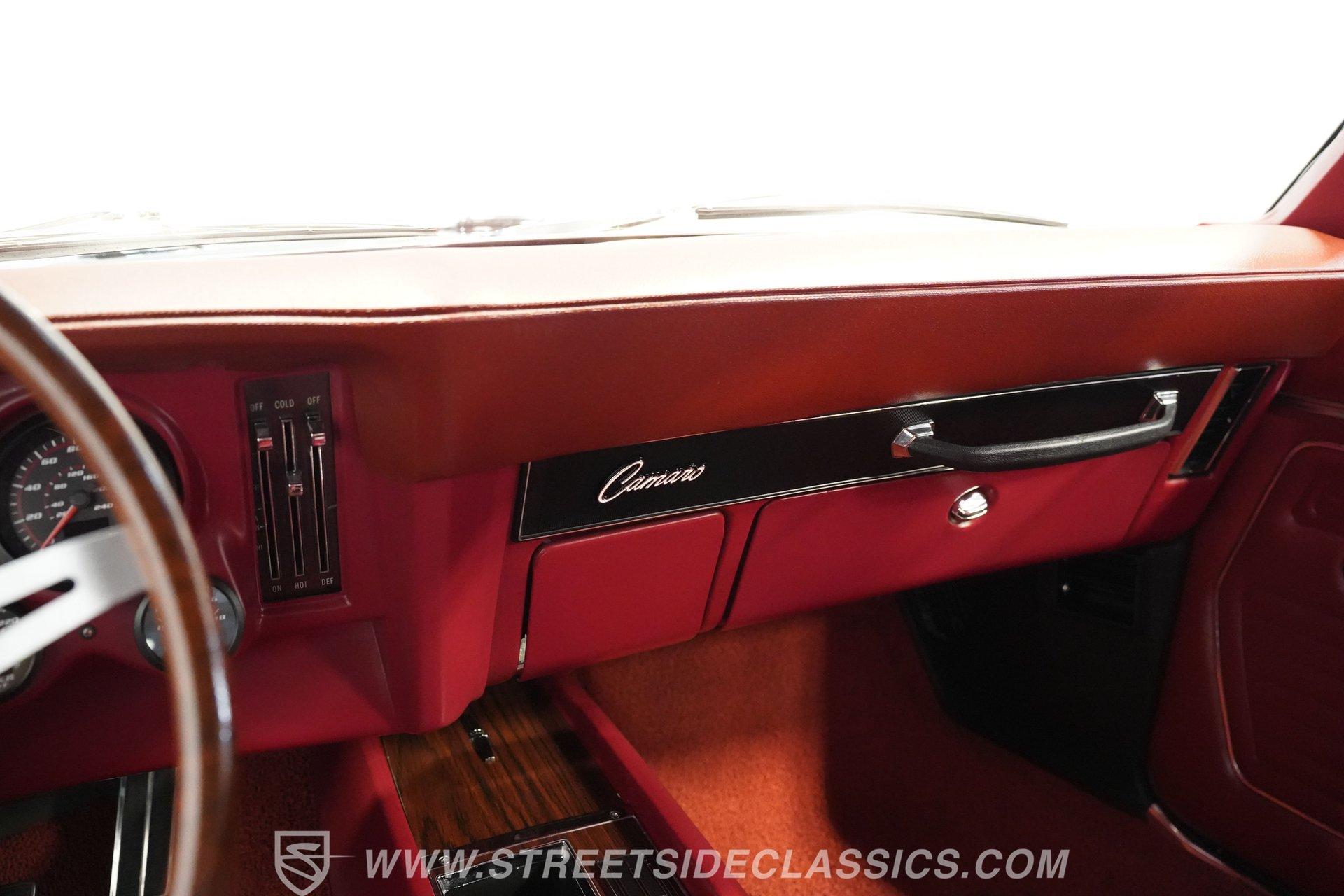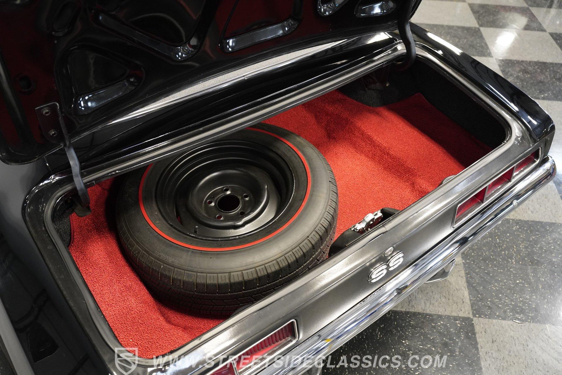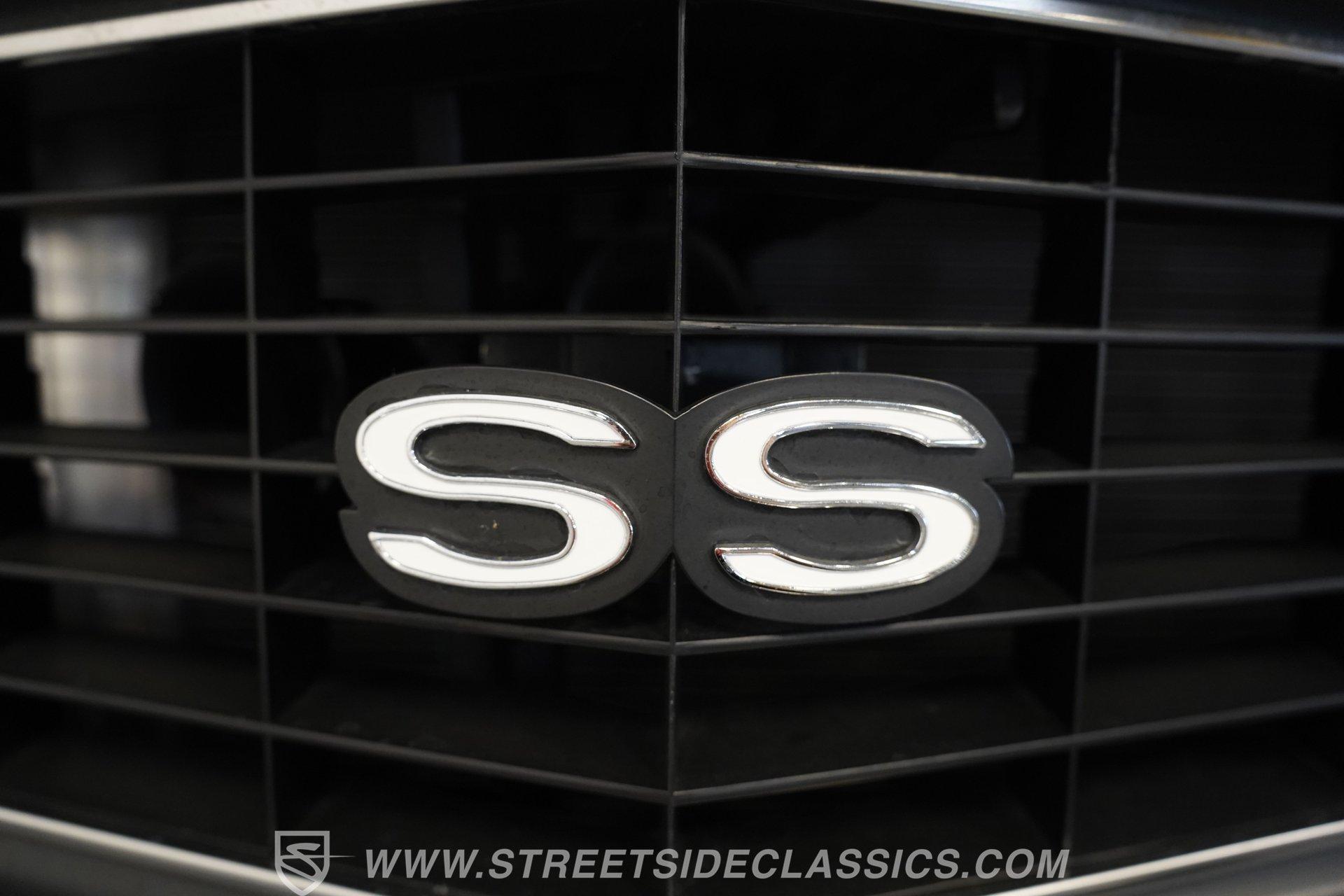 When it comes to muscle cars, there is nothing quite like a first-generation Camaro. Power, prestige, and pizazz begin to describe this beautiful 1969 Chevrolet Camaro SS 502. Fully repainted in a deep black exterior paint, this Super Sport comes with all the correct SS badging, and aside from its polished Cragar SS wheels, there is almost nothing hinting that this car has a bit more lurking under its hood than stock; at least not until you start it up. But before we get to that power part of the fun, first let us introduce you to this exquisitely redone red vinyl interior. A pair of plush and supportive bucket seats sit just ahead of a wood-rimmed steering wheel and matching woodgrain console trim to add a bit of contrast. Just beyond that wheel is a six-pod Marshall gauge cluster, featuring a big 160 mph speedometer and 10,000 rpm tachometer. A white Hurst cueball-style shifter and padded expletive handle give both the driver and passenger something to hold onto when this Pony Car really digs in. Under that louvered hood, we find a clean engine bay with a massive 502 cubic-inch naturally-aspirated V-8 sitting comfortably between the fenders. A single four-barrel Holley QFT carburetor feeds into an aluminum intake manifold, while a dual exhaust and chambered exhaust do away with spent gases. Power from that big block gets funneled through a tried-and-true Muncie four-speed manual before heading out to the twelve-bolt Moser rear end. HIGHLIGHTS: Full Black Repaint 502 Crate V8 Holley QFT Carb Aluminum Intake Dual Exhaust Muncie Four Speed Hurst Shifter Moser 12 Bolt Rear Fully Redone Interior Upgraded Bucket Seats Marshall Gauges Power Brakes Four Wheel Discs Cross Drilled Slotted Rotors Cragar SS Wheels Tubular A-arm Front Suspension Sway Bars Coilovers Subframe Connectors This 1969 Chevrolet Camaro SS 502 isn't just a straight-line monster. Thanks to a lowered suspension that features tubular A-arms, coilovers, and a sway bar up front, along with another sway bar and subframe connectors in the rear, this Pony Car can gallop through the twisties, too. A set of four-wheel power disc brakes featuring cross-drilled and slotted rotors stands ready to scrub off speed whenever necessary. If you enjoy the thrill of a first-gen Camaro as much as we do, but want just a bit more power than the factory ever made, then don't wait any longer because this beautiful black boulevard bruiser won't be around long. Call today!
