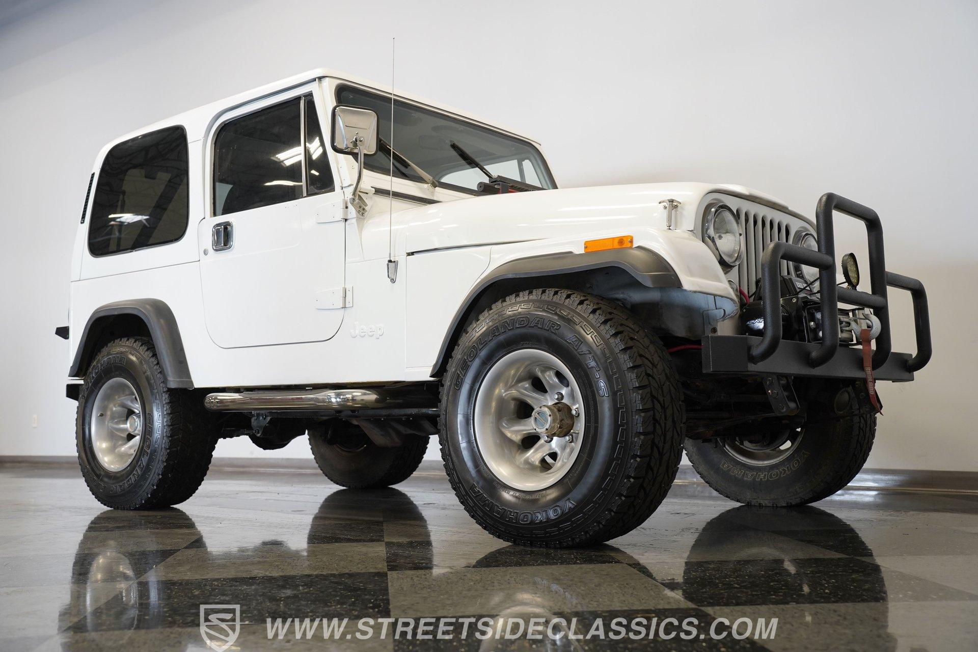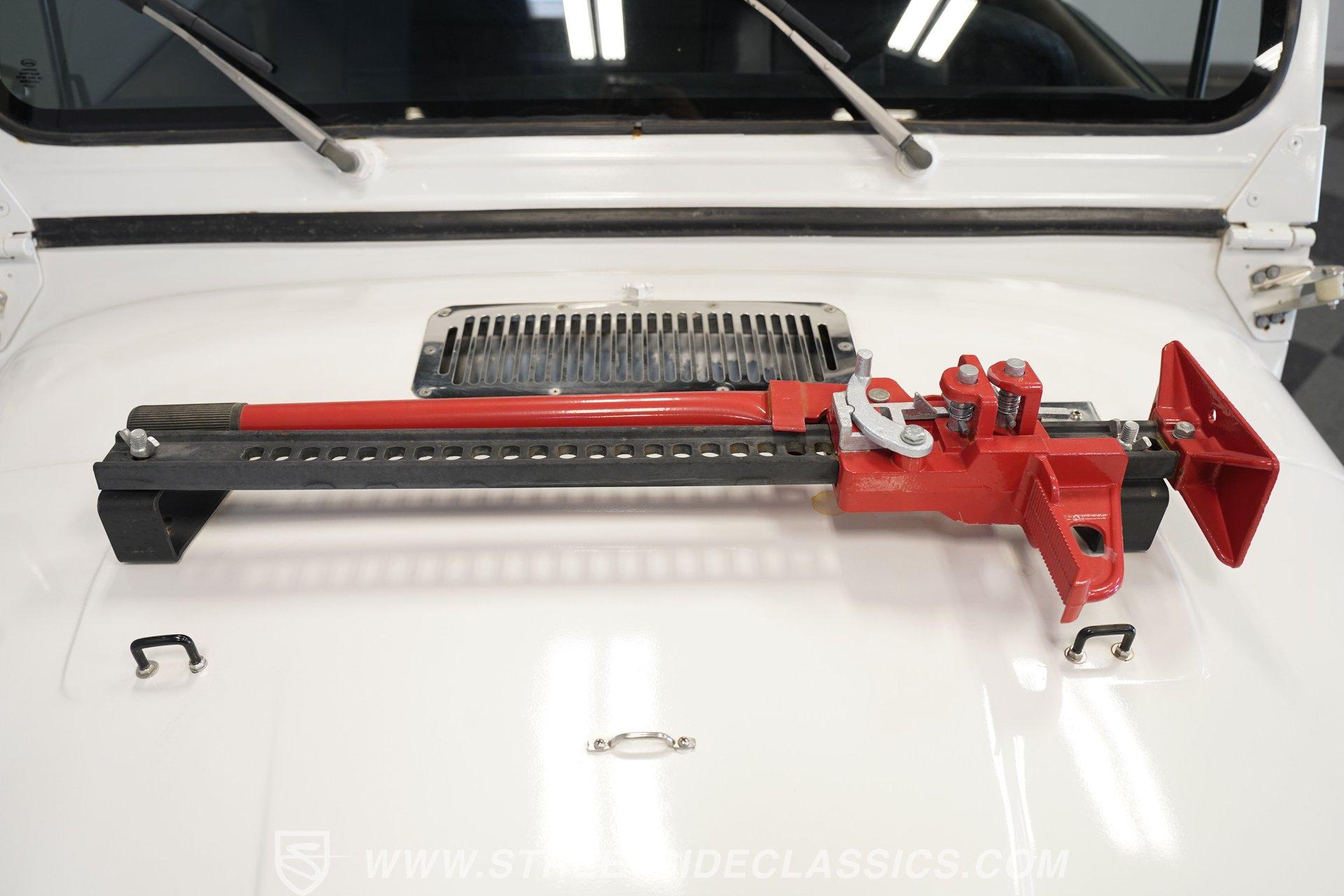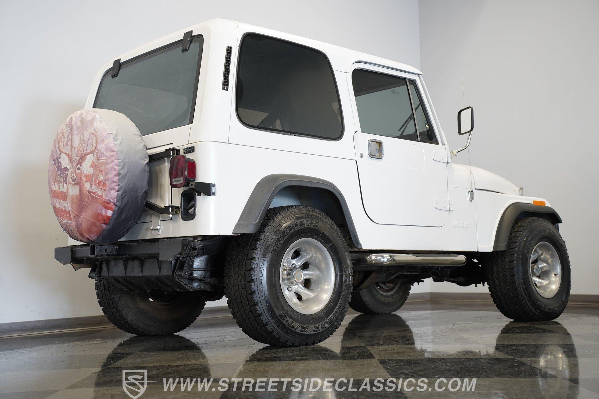 American outdoor heritage rolls on with this 1982 Jeep CJ7, a true off-road machine draped in clean white paint. The red jack assembly mounted on the hood, as well as the black front brush guard mounted with fog lights and a heavy-duty Badland 9500 ZXR winch create a rugged backcountry vibe that belongs on mountain trails. The white fiberglass removable hard top adds versatility for all-season adventures, while Smittybilt running boards allow quick access after muddy expeditions. Mounted on sturdy 15" alloy wheels and tall 32X11.50R15 Yokohama Geolander A/T-S tires, this CJ7 sits high and mighty, ready for whatever wilderness challenge awaits. Inside the cabin, the black interior creates a no-nonsense environment built for off-road action. The upgraded black vinyl bucket seats hold occupants firmly when tackling rough terrain, while the floor shifter puts direct control in hand for navigating through mud, sand, and rocks. A Pioneer AM/FM/CD player radio provides music and the dash is simple and functional, adding continuity to this trail-ready package, complete with clear, gauges that monitor all vital systems during off-grid adventures. The 4.2L inline-6 engine provides the gutsy power and low-end torque that made these Jeeps legendary among off-road fans. Shifting through the 4-speed manual transmission gives direct control over the 4x4 drivetrain when climbing over obstacles or fording streams. The engine compartment shows careful maintenance with quality hoses, belts and wiring throughout. Power steering makes wheeling through tight trails much easier, while front disc brakes help control descents on steep grades. The single exhaust and single 2-barrel fuel delivery system complete this proven mechanical package that's built for wilderness treks. HIGHLIGHTS: 4.2L Inline 6 Engine 4-Speed Manual Transmission Power Steering Front Disc Brakes 4X4 Drivetrain Edelbrock Air Cleaner Badland 9500 ZXR Winch Fiberglass Removable Hard Top 15" Alloy Wheels Chrome Tubular Side Steps 32X11.50R15 Yokohama Geolander A/T-S Tires Front Brush Guard Fog Lights Upgraded Black Bucket Seats Pioneer AM/FM/CD Radio Heavy-Duty Bumper Jack Built for trails, camping trips, and backroad adventures, this 1982 Jeep CJ7 mixes classic American 4x4 capability with a look that belongs in the great outdoors. The white paint, upgraded accessories, and go-anywhere tires make a perfect combination for explorers who want both style and substance. Call today!