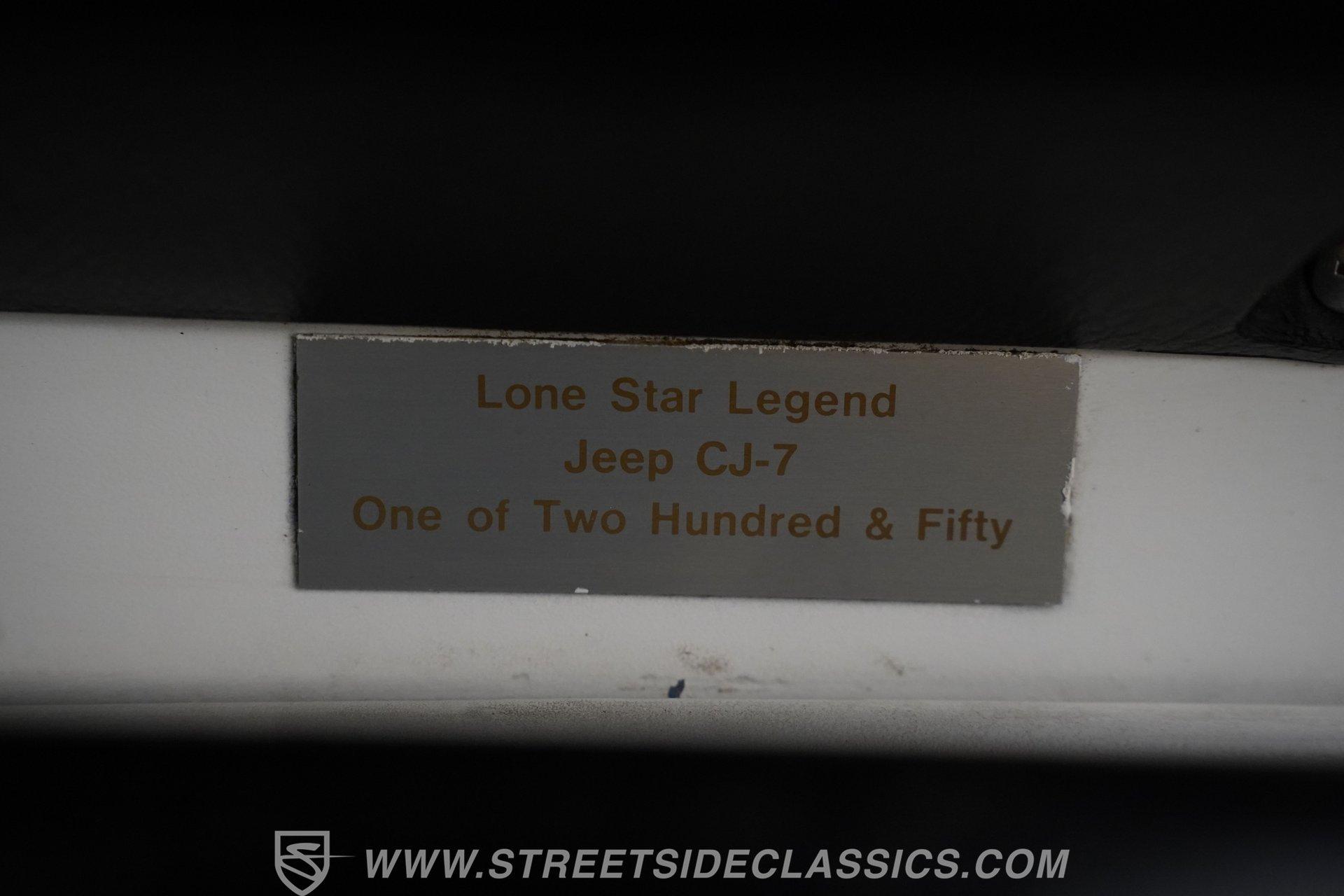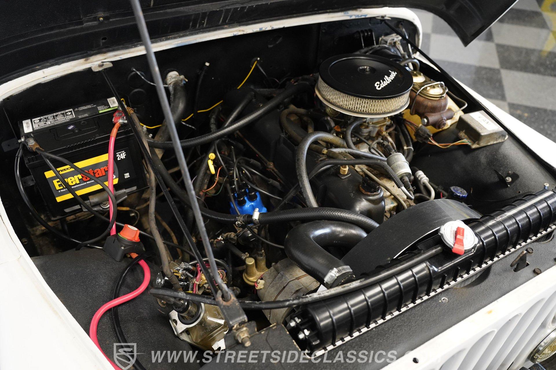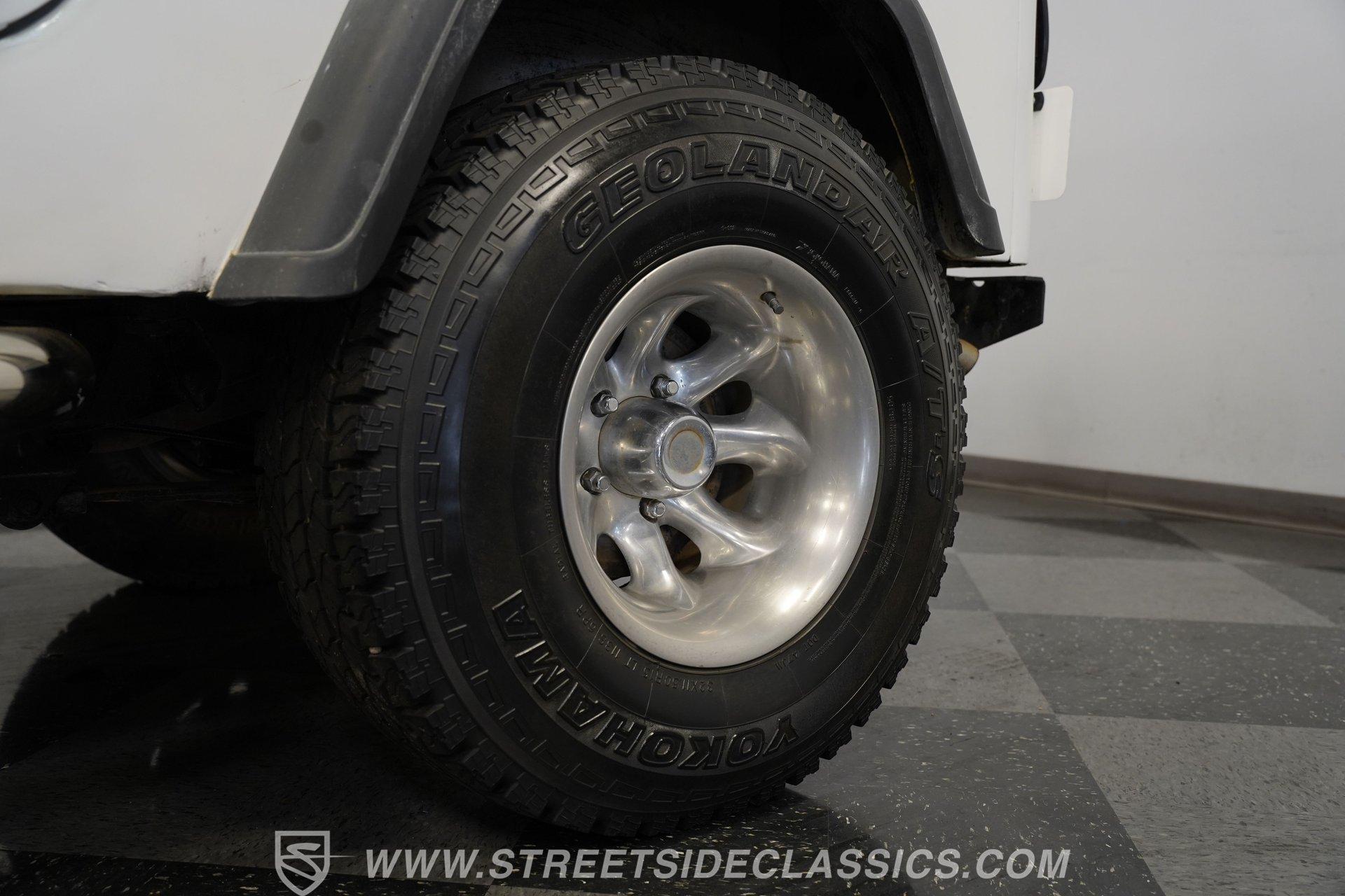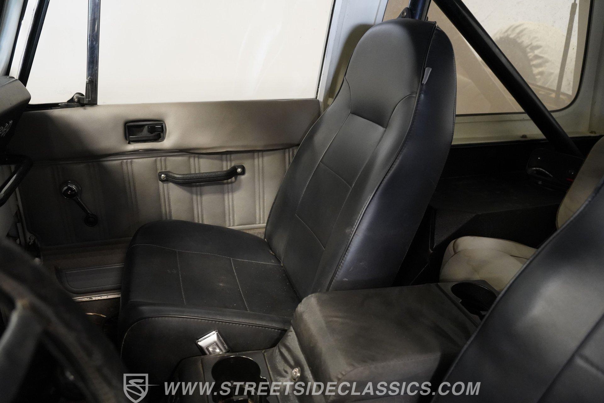American outdoor heritage rolls on with this 1982 Jeep CJ7, a true off-road machine draped in clean white paint. The red jack assembly mounted on the hood, as well as the black front brush guard mounted with fog lights and a heavy-duty Badland 9500 ZXR winch create a rugged backcountry vibe that belongs on mountain trails. The white fiberglass removable hard top adds versatility for all-season adventures, while Smittybilt running boards allow quick access after muddy expeditions. Mounted on sturdy 15" alloy wheels and tall 32X11.50R15 Yokohama Geolander A/T-S tires, this CJ7 sits high and mighty, ready for whatever wilderness challenge awaits. Inside the cabin, the black interior creates a no-nonsense environment built for off-road action. The upgraded black vinyl bucket seats hold occupants firmly when tackling rough terrain, while the floor shifter puts direct control in hand for navigating through mud, sand, and rocks. A Pioneer AM/FM/CD player radio provides music and the dash is simple and functional, adding continuity to this trail-ready package, complete with clear, gauges that monitor all vital systems during off-grid adventures. The 4.2L inline-6 engine provides the gutsy power and low-end torque that made these Jeeps legendary among off-road fans. Shifting through the 4-speed manual transmission gives direct control over the 4x4 drivetrain when climbing over obstacles or fording streams. The engine compartment shows careful maintenance with quality hoses, belts and wiring throughout. Power steering makes wheeling through tight trails much easier, while front disc brakes help control descents on steep grades. The single exhaust and single 2-barrel fuel delivery system complete this proven mechanical package that's built for wilderness treks. HIGHLIGHTS: 4.2L Inline 6 Engine 4-Speed Manual Transmission Power Steering Front Disc Brakes 4X4 Drivetrain Edelbrock Air Cleaner Badland 9500 ZXR Winch Fiberglass Removable Hard Top 15" Alloy Wheels Chrome Tubular Side Steps 32X11.50R15 Yokohama Geolander A/T-S Tires Front Brush Guard Fog Lights Upgraded Black Bucket Seats Pioneer AM/FM/CD Radio Heavy-Duty Bumper Jack Built for trails, camping trips, and backroad adventures, this 1982 Jeep CJ7 mixes classic American 4x4 capability with a look that belongs in the great outdoors. The white paint, upgraded accessories, and go-anywhere tires make a perfect combination for explorers who want both style and substance. Call today!