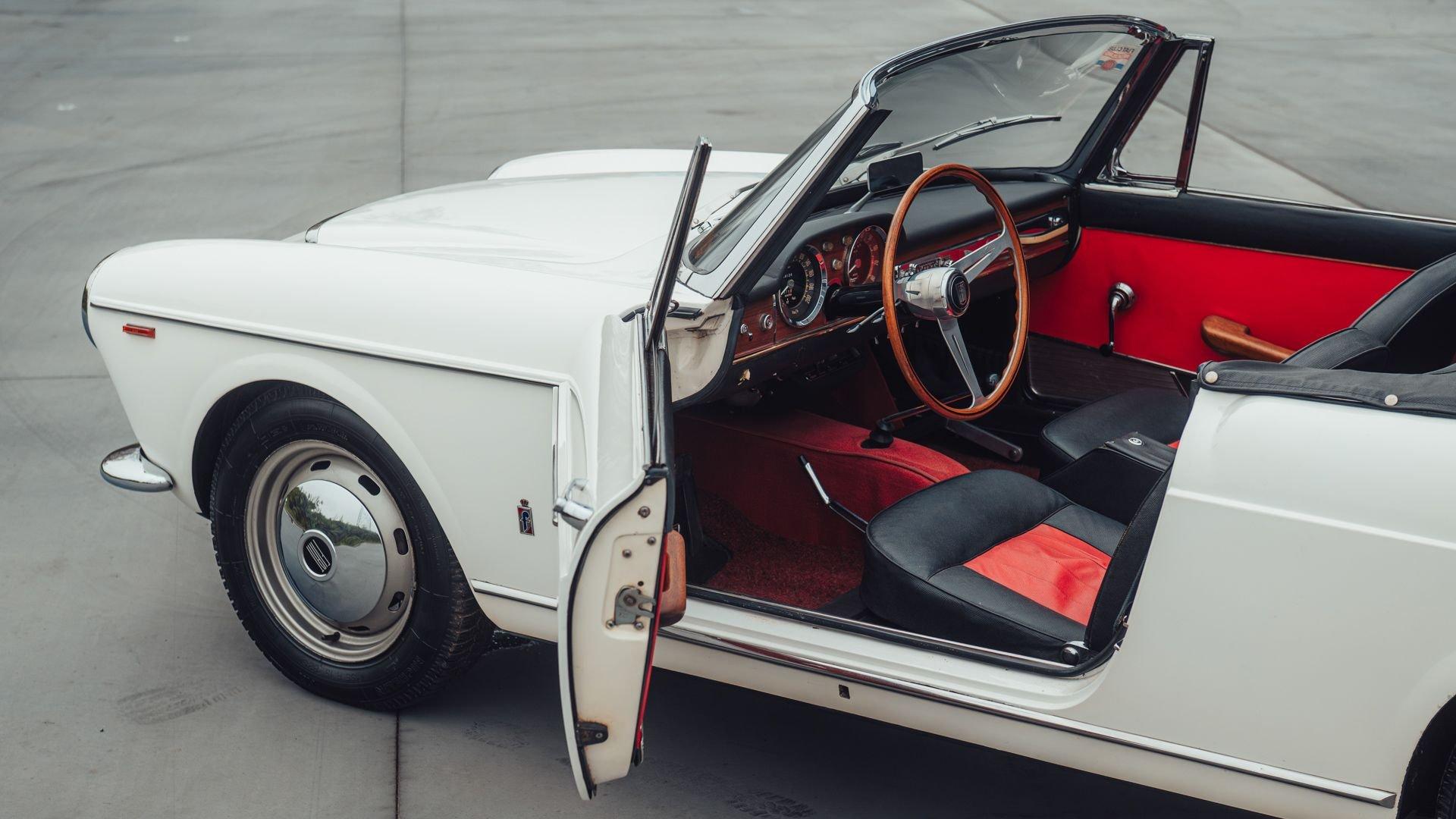 Chassis No. 118S 009586 Engine No. 118000 006424 To give the Pininfarina Cabriolet the performance to match its Ferrari-inspired looks, Fiat paired the new 1959 1500 S with an OSCA-built, twin-cam 1.5-liter engine derived from the Maserati brothers’ competition experience. Assembled by Pininfarina yet sold and badged as a Fiat, the OSCA-powered Cabriolets remained a rare offering, with period estimates suggesting that just 3,089 twin-cam examples were produced among 34,211 Cabriolets and Coupes built from 1959–1966. The Cabriolet offered here, chassis number 9586, was purchased by the current Belgian caretaker from the Netherlands in May 2014 and has remained in long-term static storage since. Recently, the owner’s in-house mechanic performed a careful start-up after years of standstill, including fresh fuel and fluids. The consigning Broad Arrow Car Specialist notes that the car starts and runs nicely today, though it would benefit from a thorough inspection and recommissioning prior to extensive road use. Finished in a white exterior over a two-tone red and black interior, this OSCA Cabriolet presents with charming touches, including a wood dash fascia, wood-rimmed steering wheel, and push-button radio, complemented by a black soft top and tonneau cover. Offered with a spare engine, gearbox, and an assortment of additional parts including numerous body panels, it is a well-supported example for its next caretaker. Uncommon then as now, this is a wonderful opportunity to acquire a beautifully-proportioned Italian roadster with OSCA-powered 160-km/h performance. PREVIEW DETAILS: This lot will be available for viewing by appointment from Waregem, Belgium. SALE LOCATION: Belgium BUYER’S PREMIUM: 10% + VAT on the Hammer Price TITLE/REGISTRATION DOCUMENTS: Bill of Sale ADDITIONAL NOTES: N/A POST-AUCTION REMOVAL AND STORAGE: Following receipt of payment, collection can be arranged by appointment only from Waregem, Belgium with 24 hours' notice.
