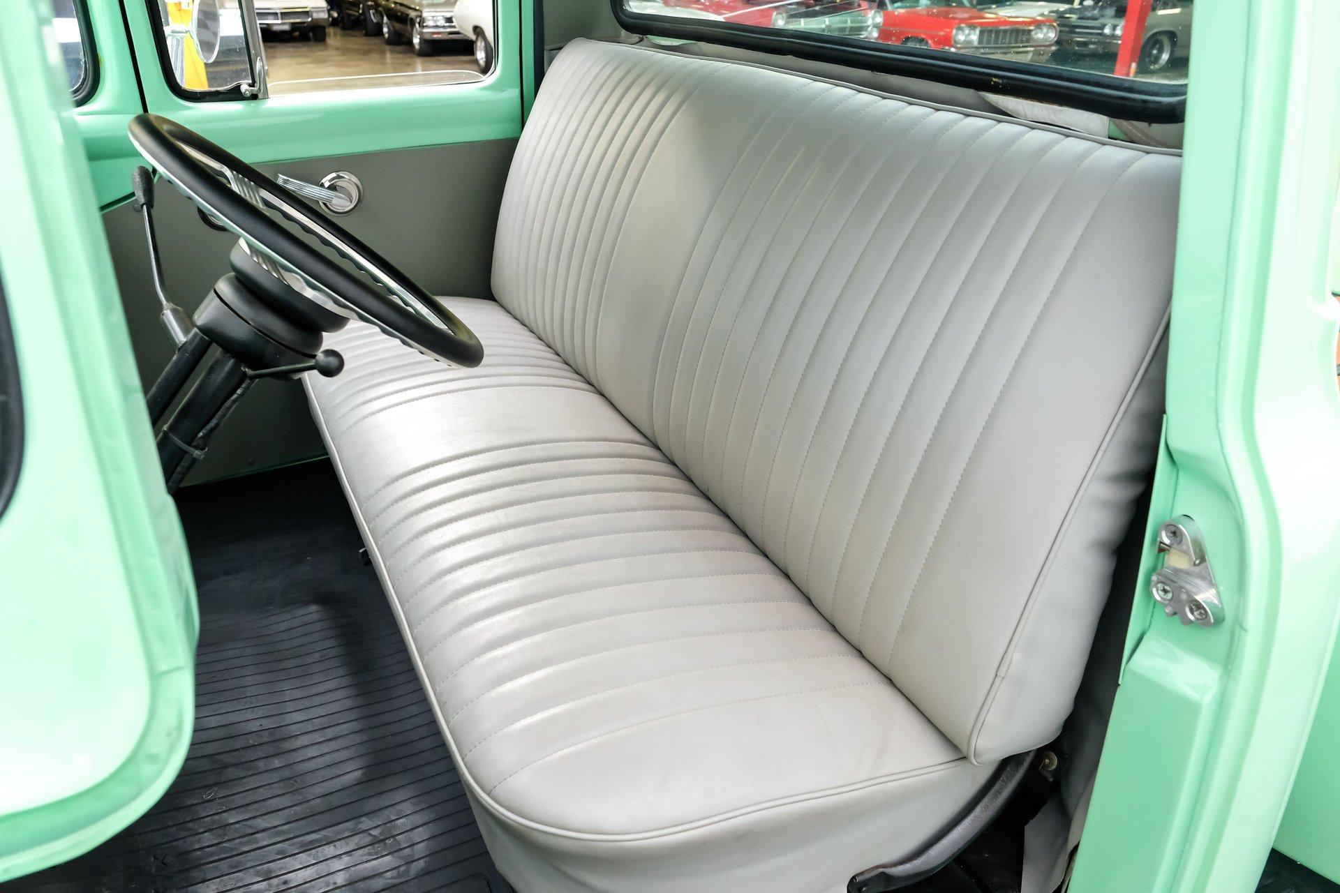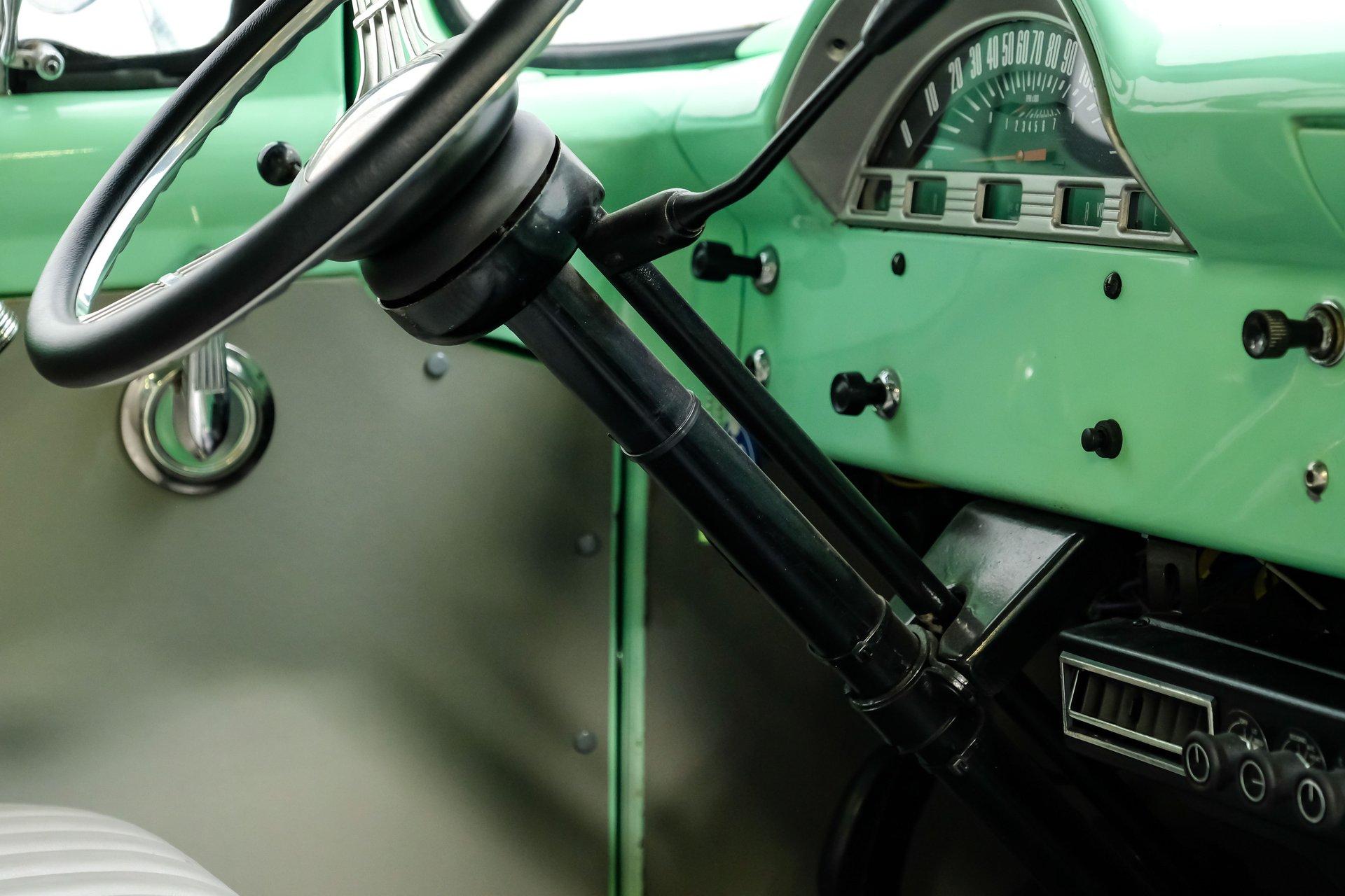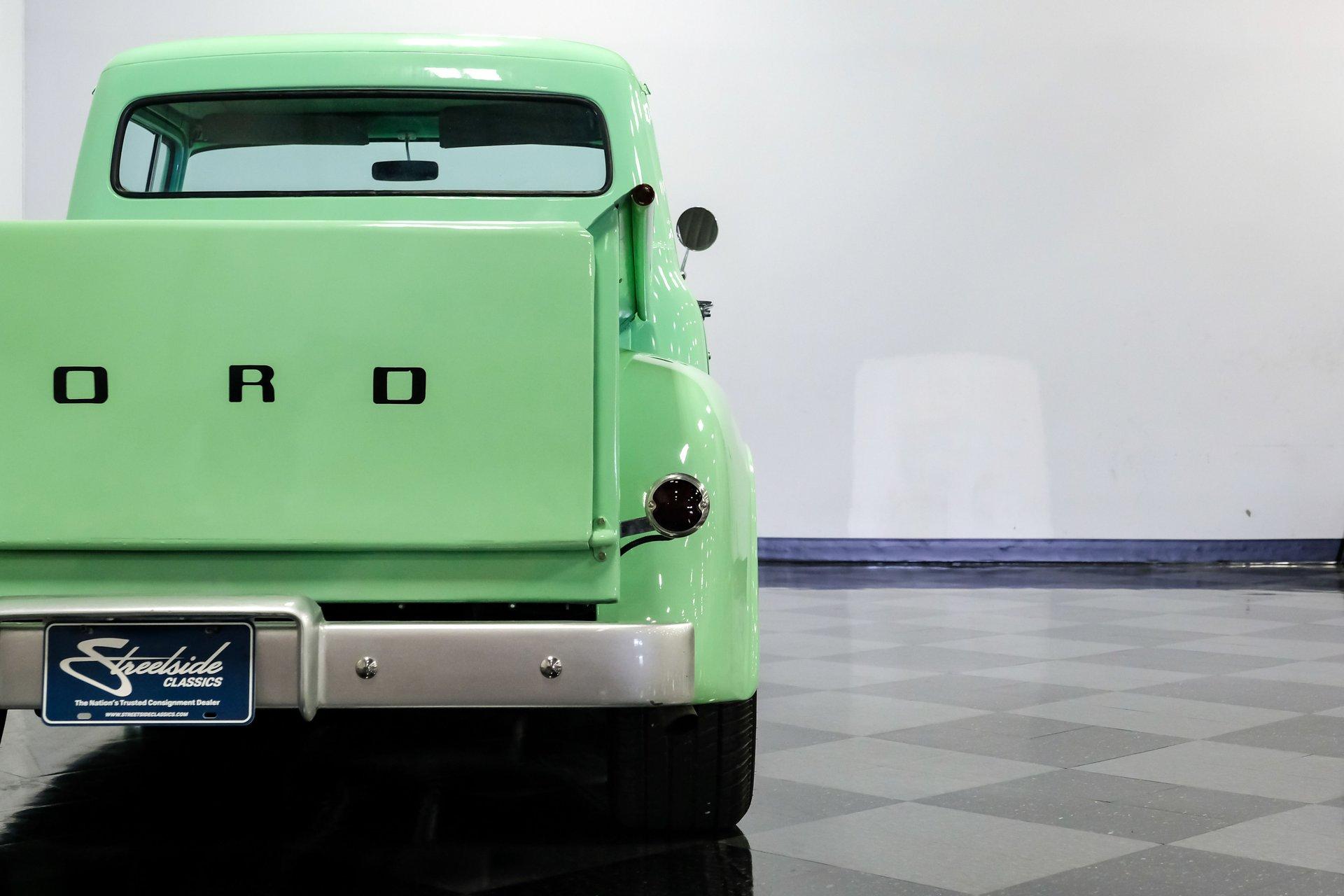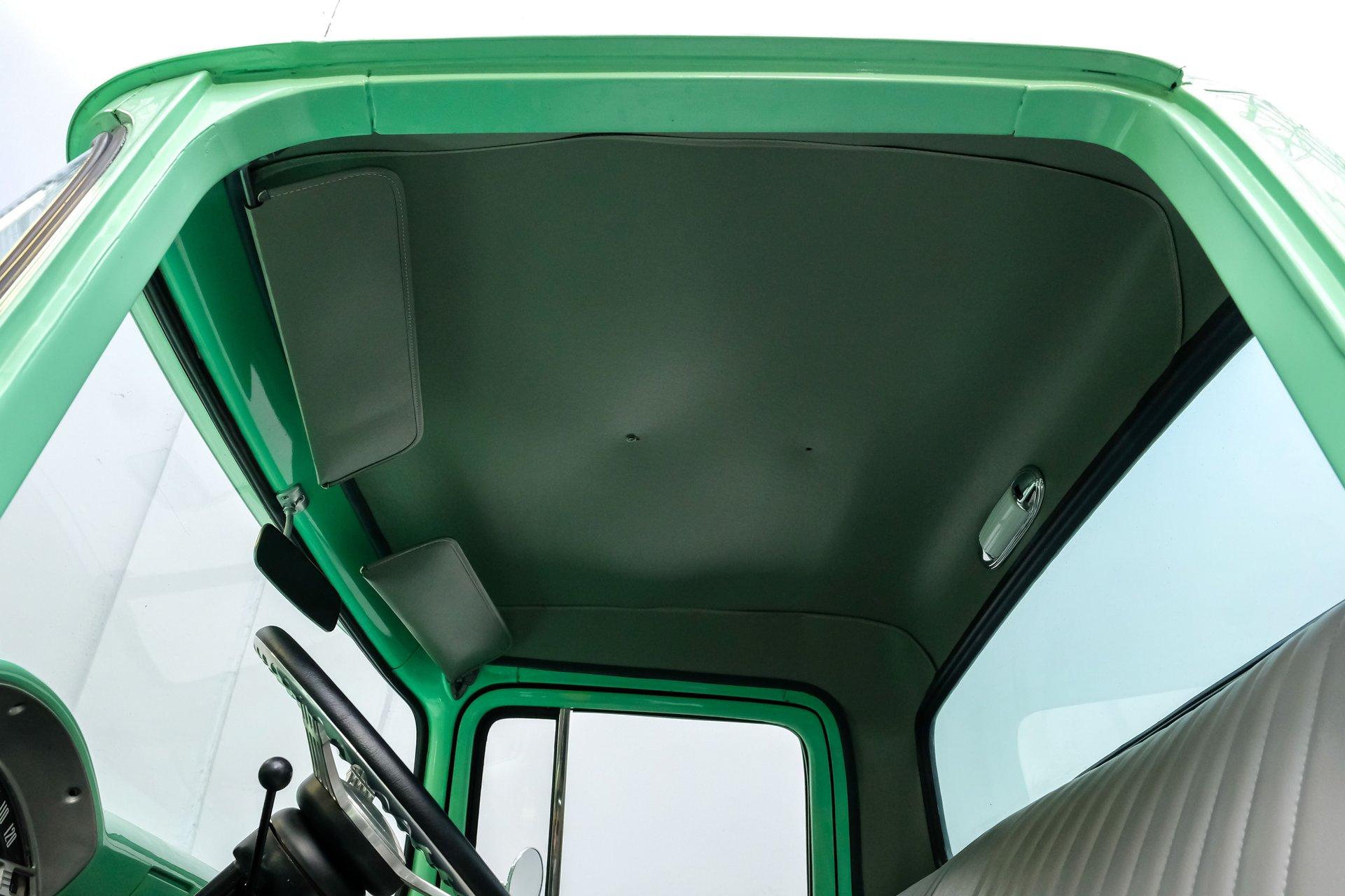 This 1956 Ford F-100 comes to us wearing a very pretty coat of Meadow Mist Green, a factory-correct hue that evokes the feeling of driving a dirt road on a Texas prairie. The truck's clean, flowing lines are enhanced by custom touches like an integrated fuel filler door for the relocated fuel tank as well as a streamlined tailgate. Sitting on 15-inch Vision wheels, this F-100 cuts a striking figure, especially with its slightly lowered stance that gives it an extra dose of attitude. Inside, gray vinyl covers the bench seat and door panels, creating a crisp, period-appropriate interior. A banjo-style steering wheel adds a dash of style, while Classic Instruments gauges blend vintage looks with modern reliability. Power steering and under-dash air conditioning make this F-100 a joy to drive, whether you're cruising Main Street or heading out on the highway. The column-mounted shifter for the 3-speed manual transmission keeps things authentically old-school. Under the hood, Ford's 312 V8 takes center stage, breathing through an Edelbrock 4-barrel carburetor. The engine bay showcases a mix of original components and smart upgrades, including a Cadillac-style air grabber. An X-pipe dual exhaust system provides a muscular soundtrack, while power drum brakes at all four corners offer confident stopping power. This powertrain combo delivers plenty of get-up-and-go for cruising or hauling, staying true to the F-100's versatile nature. HIGHLIGHTS: 312 V8 engine 3-speed manual transmission Edelbrock 4-barrel carburetor X-pipe dual exhaust system Power steering Power brakes Lowered suspension Meadow Mist Green paint Custom smooth tailgate Integrated fuel filler in rear fender Gray interior with bench seat Banjo-style steering wheel Classic Instruments gauges Under-dash air conditioning Body-off restoration This 1956 Ford F-100 combines classic style with subtle hot rod flair. From its potent V8 to its comfortable, upgraded interior, this truck offers an ideal blend of vintage appeal and modern drivability. Perfect for weekend cruises or daily drives, this F-100 is ready to hit the road. Call today!