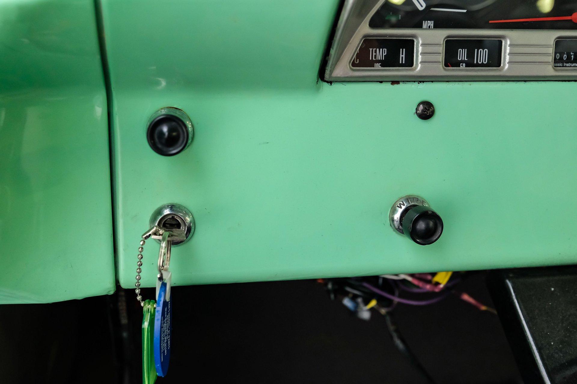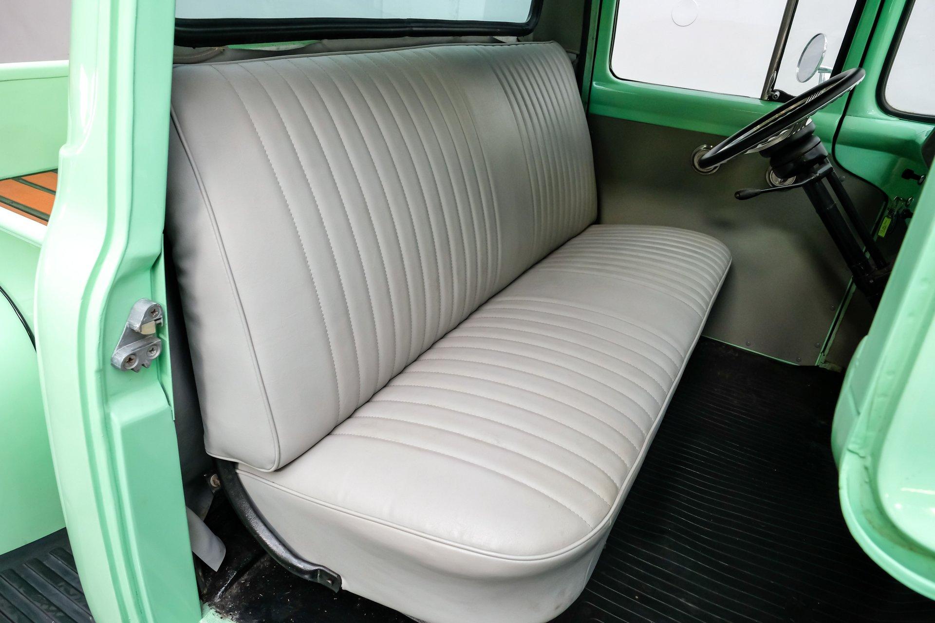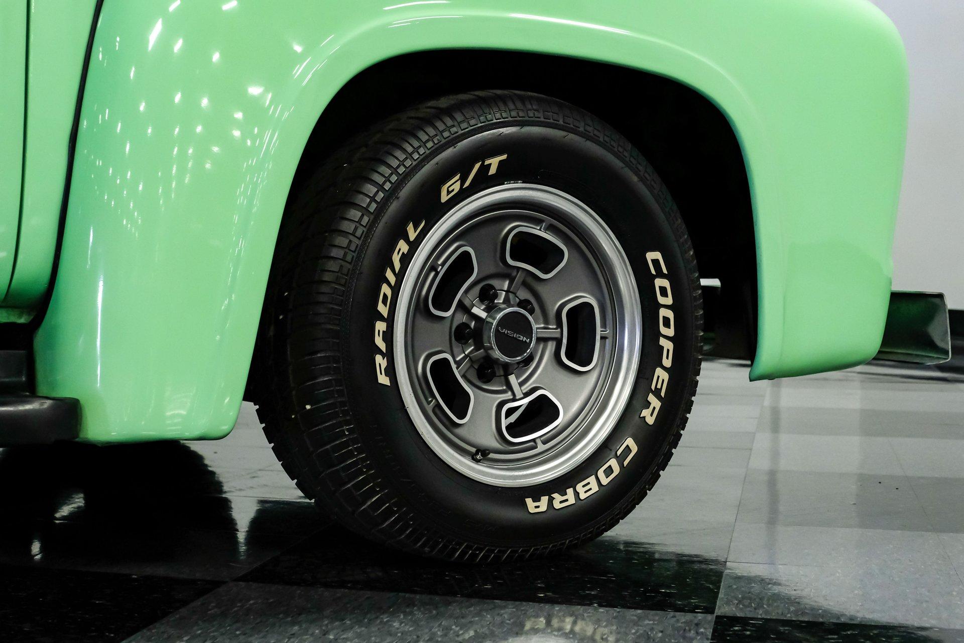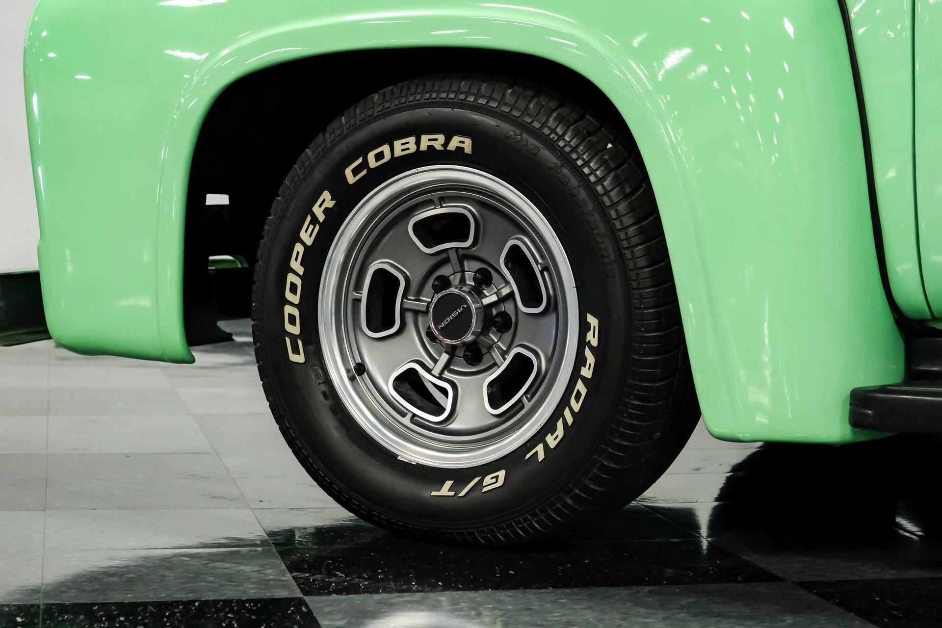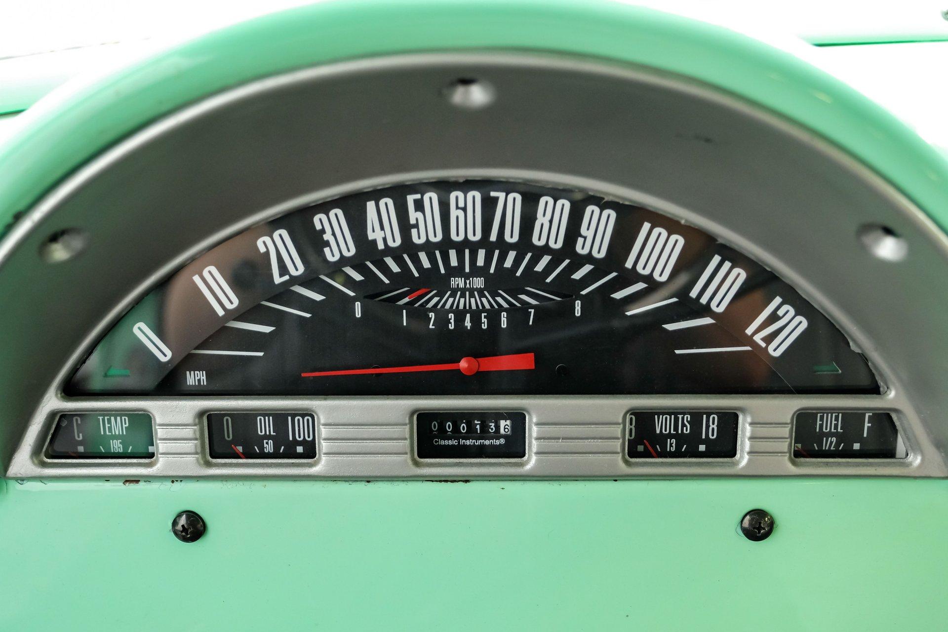 This 1956 Ford F-100 comes to us wearing a very pretty coat of Meadow Mist Green, a factory-correct hue that evokes the feeling of driving a dirt road on a Texas prairie. The truck's clean, flowing lines are enhanced by custom touches like an integrated fuel filler door for the relocated fuel tank as well as a streamlined tailgate. Sitting on 15-inch Vision wheels, this F-100 cuts a striking figure, especially with its slightly lowered stance that gives it an extra dose of attitude. Inside, gray vinyl covers the bench seat and door panels, creating a crisp, period-appropriate interior. A banjo-style steering wheel adds a dash of style, while Classic Instruments gauges blend vintage looks with modern reliability. Power steering and under-dash air conditioning make this F-100 a joy to drive, whether you're cruising Main Street or heading out on the highway. The column-mounted shifter for the 3-speed manual transmission keeps things authentically old-school. Under the hood, Ford's 312 V8 takes center stage, breathing through an Edelbrock 4-barrel carburetor. The engine bay showcases a mix of original components and smart upgrades, including a Cadillac-style air grabber. An X-pipe dual exhaust system provides a muscular soundtrack, while power drum brakes at all four corners offer confident stopping power. This powertrain combo delivers plenty of get-up-and-go for cruising or hauling, staying true to the F-100's versatile nature. HIGHLIGHTS: 312 V8 engine 3-speed manual transmission Edelbrock 4-barrel carburetor X-pipe dual exhaust system Power steering Power brakes Lowered suspension Meadow Mist Green paint Custom smooth tailgate Integrated fuel filler in rear fender Gray interior with bench seat Banjo-style steering wheel Classic Instruments gauges Under-dash air conditioning Body-off restoration This 1956 Ford F-100 combines classic style with subtle hot rod flair. From its potent V8 to its comfortable, upgraded interior, this truck offers an ideal blend of vintage appeal and modern drivability. Perfect for weekend cruises or daily drives, this F-100 is ready to hit the road. Call today!