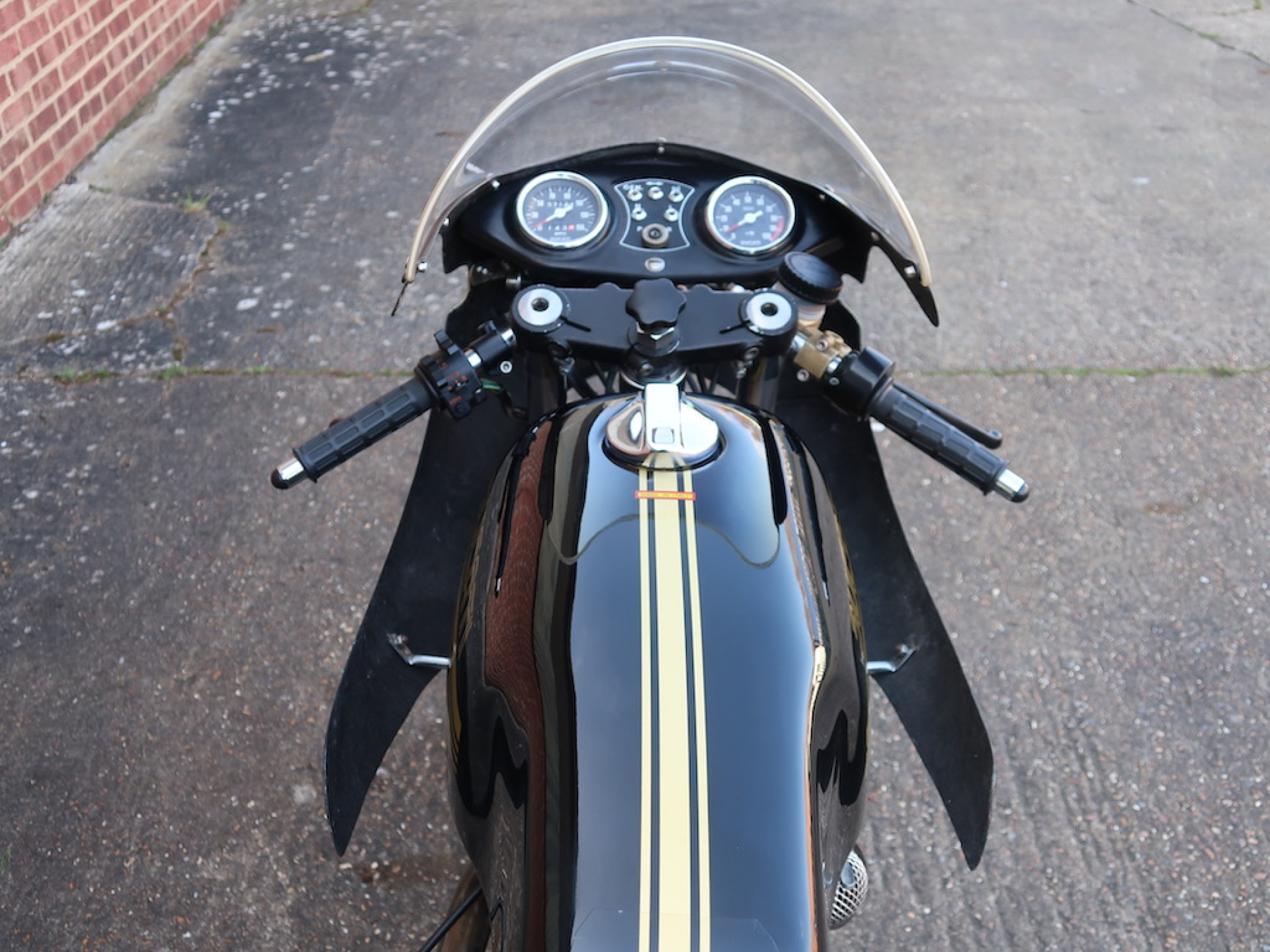 The first owner sold the bike not long after purchase as he found it a handful, after another UK owner it was re registered in Germany when the third owner moved there. The engine was subsequently rebuilt by RN-MotorTechnik of Reutlingen which was completed in 2014. Other restoration work included the frame being powder-coated and the body work repainted.