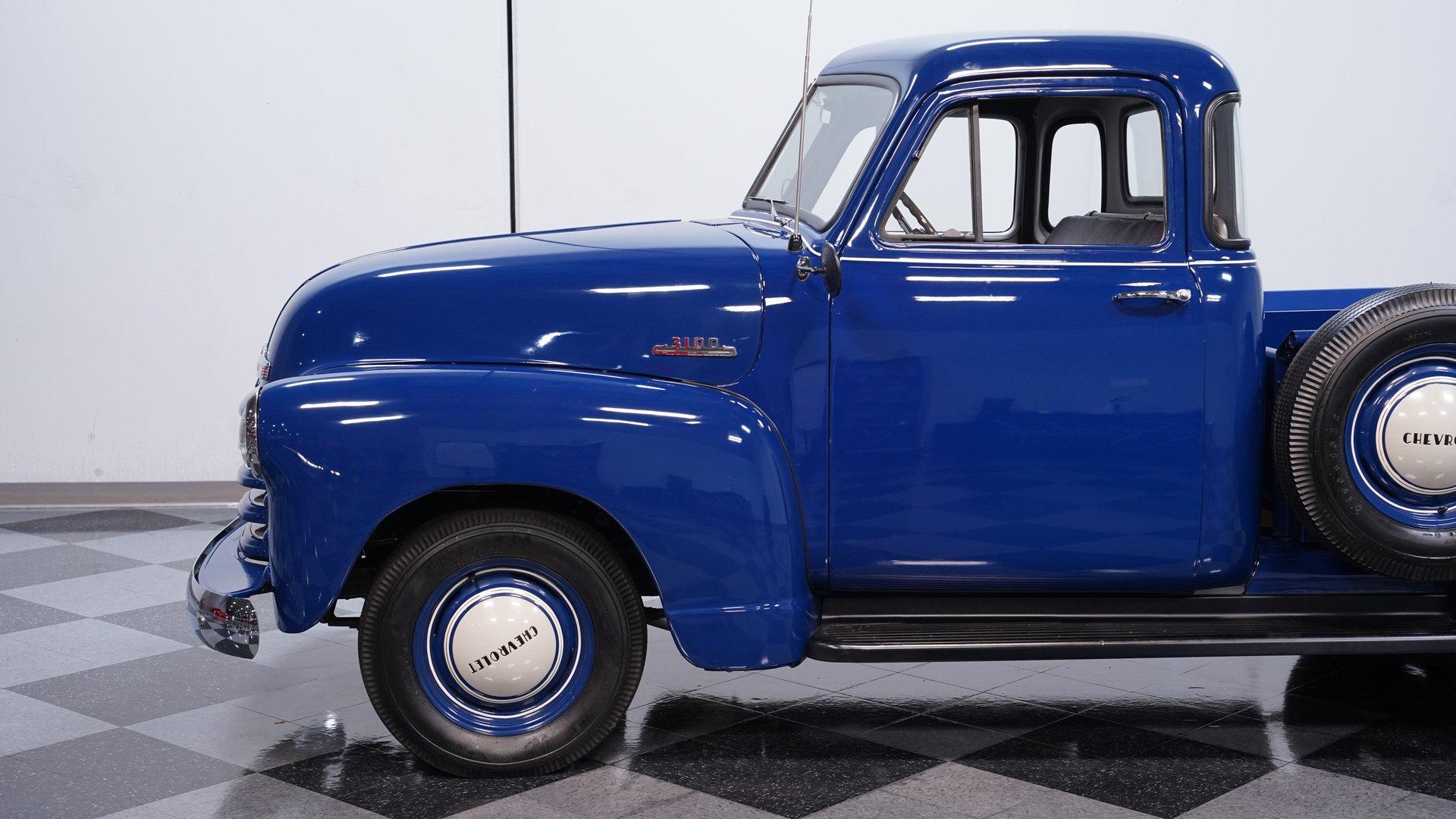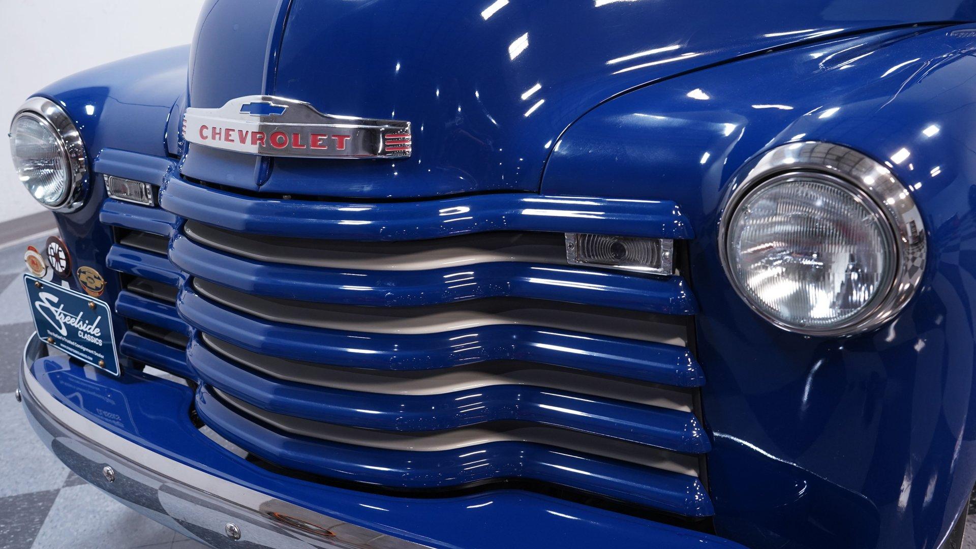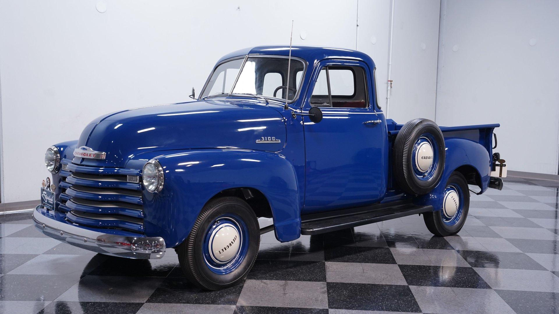 The signs are all there that the restorer of this 1953 Chevrolet 3100 5 Window had obviously high standards and also put a high premium on era-appropriate aesthetics. Dressed in pristine Mariner Blue paint that's complemented by unblemished chrome from front to back, this is one sharp-looking vintage pickup truck, an outstanding representative of its era. It looks like it was meant to wear that distinctive, tranquil shade from the start and, judging by its slick texture and deep shine, the paint was applied only a little while back at the hands of a skilled professional. Its short bed configuration gives it a stout, capable appearance. If you take a look in the back, you'll see that the bed has been upgraded with wood paneling and, with its refurbishment done so recently, there are no scratches or dents to be found. The interior is in very clean condition and echoes the same optimized vintage theme shown outside the doors. You'll find no signs of wear on the burgundy vinyl bench seat, and the door panels sit nicely against their surrounding steel. Up front, the instrument panel has also been revitalized while retaining its convincingly original appearance, with clear, easily readable gauges standing by to broadcast their readings. An AM/FM stereo with an auxiliary port and Bluetooth connectivity, one of the few other deviations from stock configuration, has been seamlessly recessed into the dash to provide a wider range of audio options. This outstanding classic is powered by a period-correct 216-cubic-inch Thriftmaster 3100 inline 6-cylinder that's running in impressive form. It sits in a very clean and well-organized engine compartment, paired with a 3-speed manual transmission that shifts without issue to form a drivetrain with rock-solid functionality, which is truly hard to come by in a vehicle from this era. The select group of mechanical modifications that have been made were done so to increase dependability without affecting the overall appearance, including an upgraded carburetor that allows this vintage ride to run on ethanol, an electronic ignition for stronger sparks and better efficiency, and a modern 12-volt electrical system that's far more reliable than the original. The entire fuel system, including the gas tank, has also been replaced. HIGHLIGHTS 216-CUBIC-INCH THRIFTMASTER 3100 INLINE 6 3-SPEED MANUAL TRANSMISSION DRUM BRAKES SHOW-STOPPING MARINER BLUE PAINT FACTORY-STYLE 16" WHEELS UPGRADED CARBURETOR ACCEPTS ETHANOL ELECTRONIC IGNITION UPGRADED 12-VOLT ELECTRICAL SYSTEM UPGRADED 6-VOLT TAILLIGHTS BURGUNDY VINYL INTERIOR BENCH SEAT AM/FM STEREO WITH AN AUXILIARY PORT AND BLUETOOTH CONNECTIVITY OWNER'S MANUAL INCLUDED A clean, skillfully restored, and well-maintained example of its segment, this 1953 Chevrolet 3100 5 Window rolls on a set of factory-style, color-matched 16" wheels wearing period-correct black wall tires that appear to have plenty more miles left on them. If you're searching for a strong-running classic truck with its aesthetic authenticity intact, this one is worth checking out. Call today!