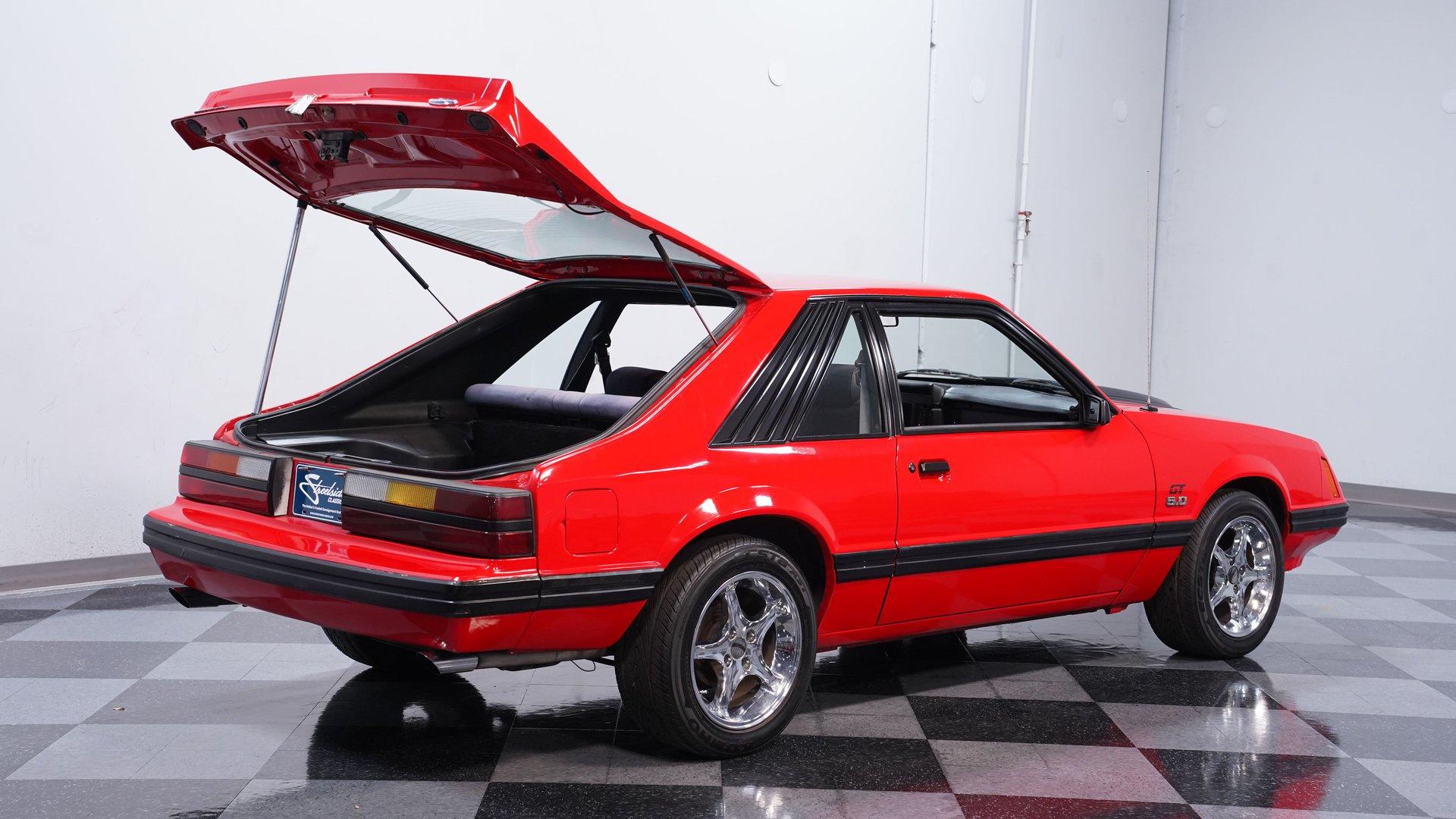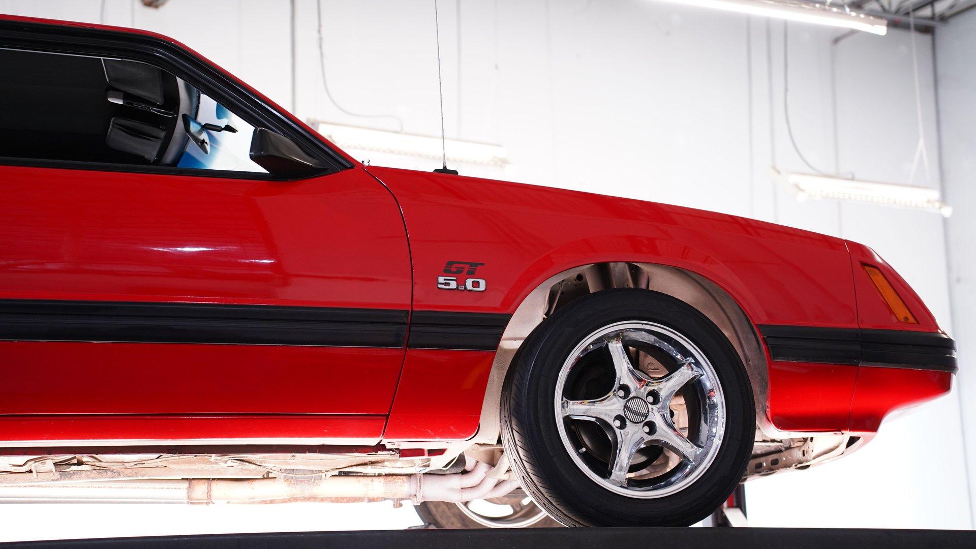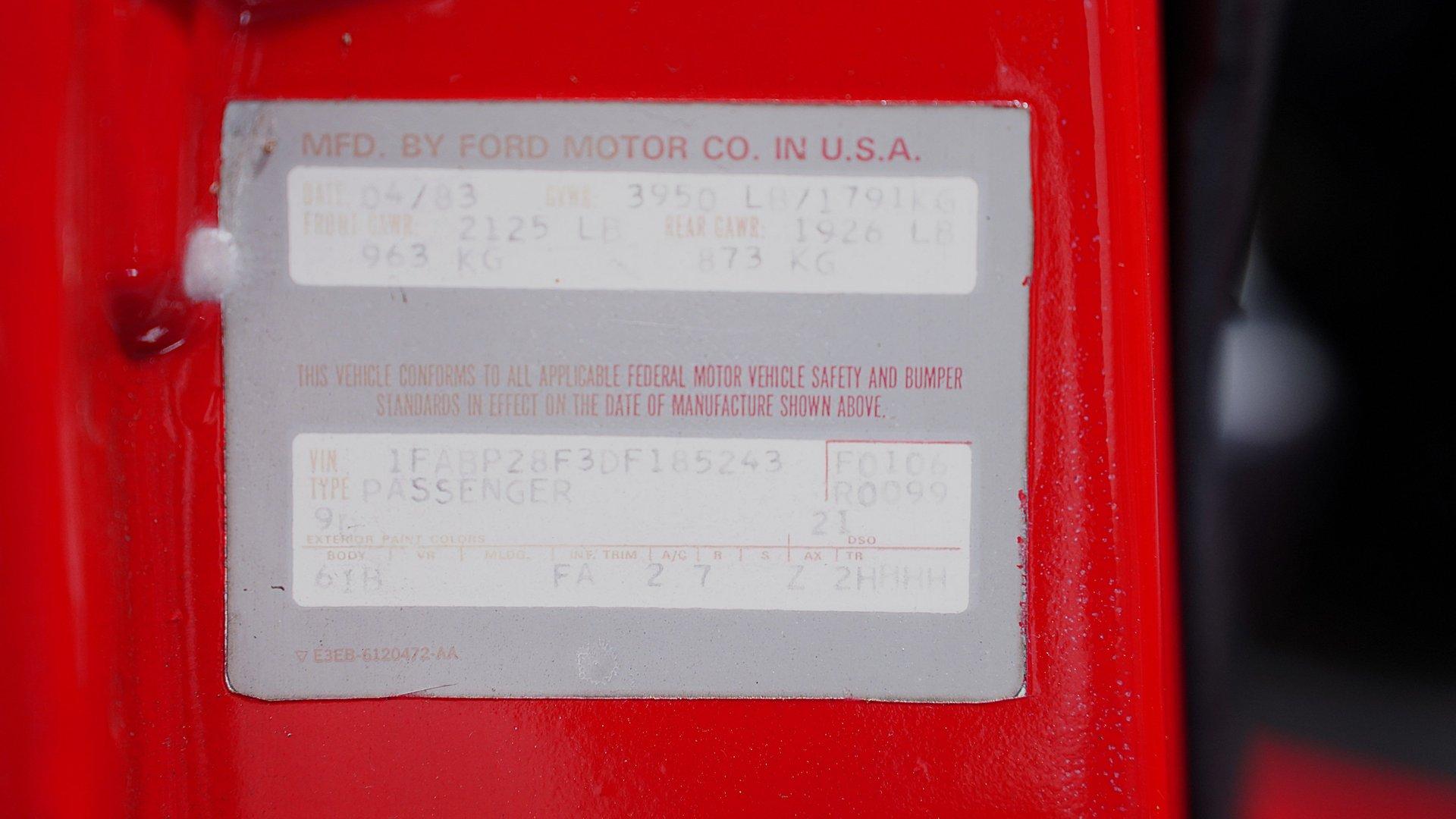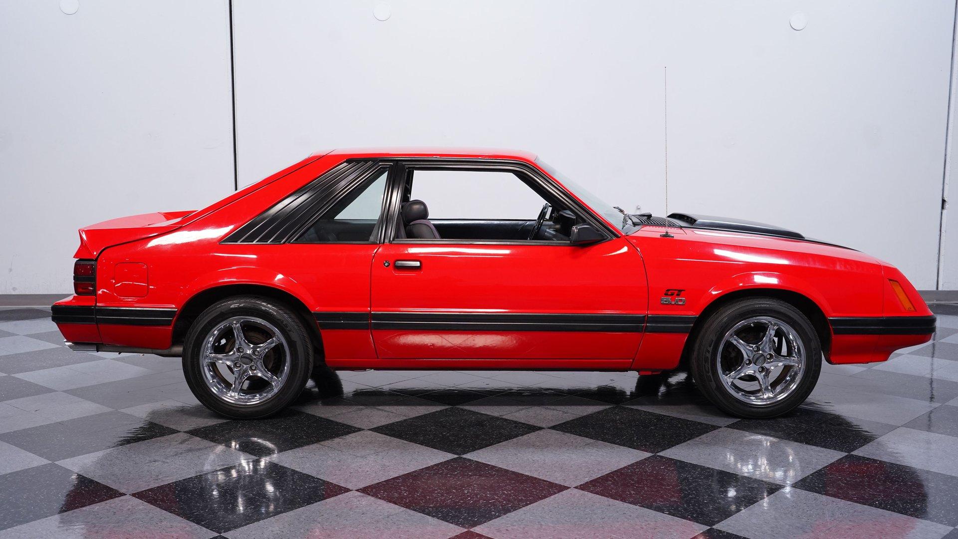 With its striking, deep red paint, assortment of contrasting black stripes, and a geometric hood scoop, this 1983 Ford Mustang GT is an outstanding torchbearer of early '80s automotive aesthetics. This sharp-looking cruiser holds some serious historical significance as well, as it's a proud member of the class of Fox-bodied Mustangs that not only served as proof that its manufacturer had returned to producing performance-centric cars that rekindled the enthusiasm of the buying public, but arguably even helped save the Ford brand. Featuring that distinctive "four-eyed" headlight configuration and a confidence-inspiring running condition, it's well-positioned for plenty of future fun-filled miles. Although you may find some evidence of wear here and there inside the doors, this vintage Ford provides a comfortable driving environment. The front buckets are well-padded and straddle a center console that offers some welcome storage space while putting the shift lever within easy reach. An aftermarket steering wheel is perched on the tilting column and the factory gauges just beyond it are not only surprisingly clear, but also still functional. At the center of the dash area, the AM/FM/Cassette stereo is standing by to offer an era-appropriate audio experience. While the factory air conditioning will need a bit of attention to get back online, all the components are present and accounted for. Beneath that retro-stylish, scooped hood, the engine bay is in good shape and includes a few tasteful modifications to up its game. The 5.0-liter, high-output V8 standing by at the center of the compartment wears a pair of Mustang valve covers with eye-catching lettering and has been outfitted with a pair of steel long tube headers to help minimize back-pressure. It hails from a class of engines that developed a reputation for reliability and, true to form, fed by a Holley 4-barrel carburetor, it's running strong, starting up without issue, and idling smoothly. The accompanying 5-speed manual transmission shifts without issue and puts full control of its output in the hands of the driver. Power rack and pinion steering makes for low-effort, slop-free navigation, while power brakes that feature discs in front bring this classic to a prompt stop when called upon. HIGHLIGHTS 5.0-LITER, HIGH-OUTPUT V8 4-BARREL HOLLEY CARBURETOR 5-SPEED MANUAL TRANSMISSION POWER STEERING POWER BRAKES, WITH DISCS IN FRONT LONG TUBE HEADERS DUAL EXHAUST, WITH FLOWMASTER MUFFLERS STRONG RUNNING CONDITION STRIKING RED PAINT, WITH BLACK ACCENTING STRIPES SHARP AFTERMARKET 16" WHEELS GRAY CLOTH UPHOLSTERY CLEAR, FUNCTIONAL FACTORY GAUGES AIR CONDITIONING (INOPERABLE) AM/FM/CASSETTE STEREO Featuring undeniably time capsule-worthy '80s style, this 1983 Ford Mustang GT rolls on a set of sharp 16" aftermarket wheels wrapped with Kumho Ecsta tires and would be a great acquisition for the nostalgia-minded collector who wants a ride that can be enjoyed right away. Call today!