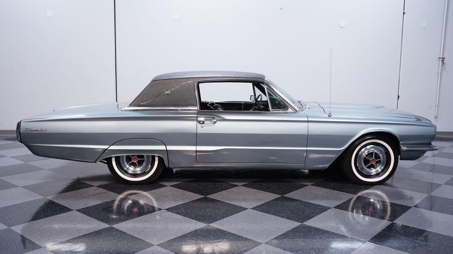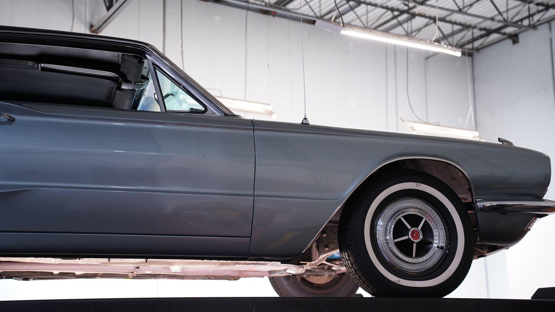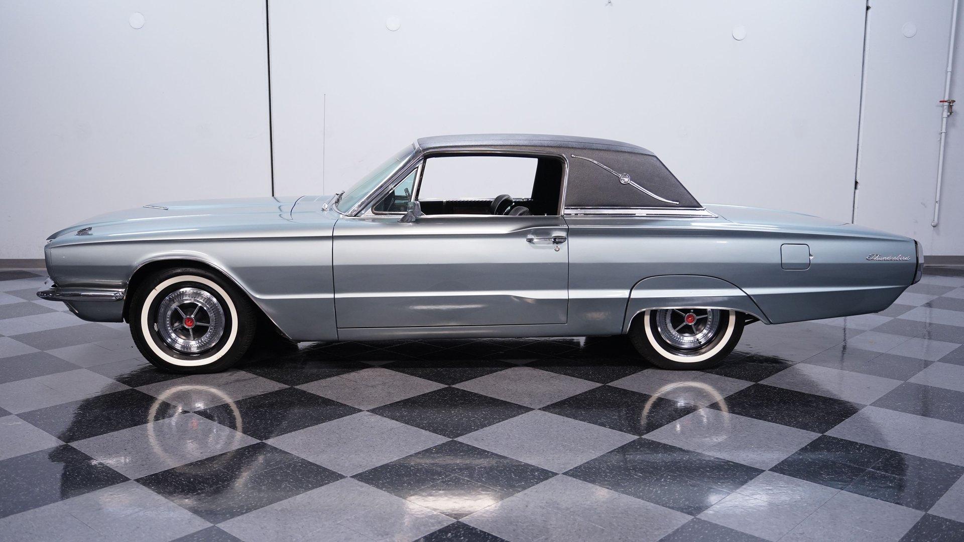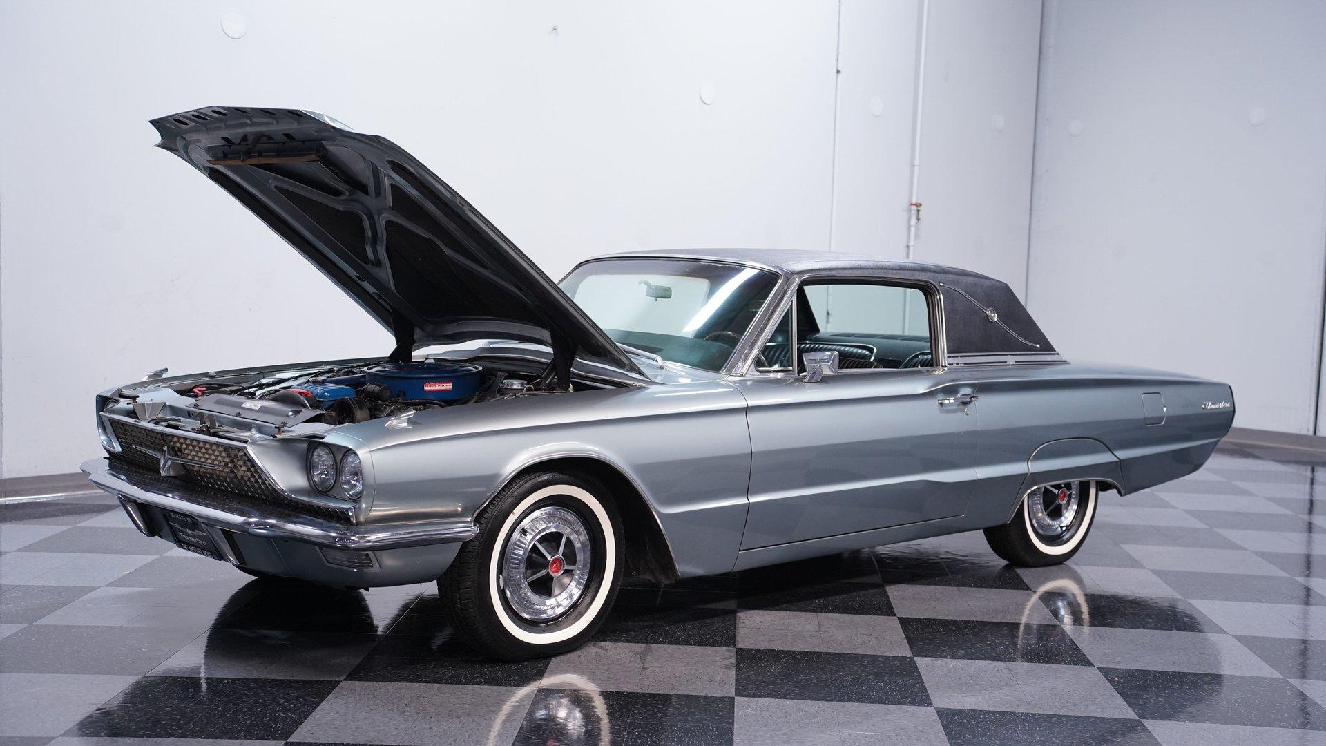 Designed for the executive class, this 1966 Ford Thunderbird Town Landau was among the special editions featuring the distinctive "town roof" with no rear quarter windows. The factory correct Silver Mink Metallic paint creates an aristocratic presence, complemented by the black vinyl top. Chrome accents frame the vinyl roof elegantly while the front bumper displays Ford's commitment to substantial styling. Rolling on 15" wheels with 215/75R15 whitewall tires, this Thunderbird's long, flowing lines exemplify mid-60s American luxury. The black vinyl bucket seats offer ample comfort for long drives, surrounded by clean door panels with tasteful wood grain accents. A tilt-away steering column allows easy entry to the luxurious interior. The factory gauges remain in excellent condition within the sleek dashboard, while an original in-dash AM radio with 8-track player adds to the vintage feel. Black carpet with Thunderbird floor mats completes the sophisticated cabin atmosphere. A 390 cubic inch V8 engine propels this luxury cruiser, paired with a smooth-operating 3-speed automatic transmission for effortless acceleration. Ford's engineering excellence continues with power steering, power front disc brakes, and factory air conditioning that still blows cold. The dual exhaust system provides a subtle but authoritative tone, perfectly matching the refined character of this grand tourer. HIGHLIGHTS: 390 V8 Engine 3-Speed Automatic Transmission Holley 4-Barrel Carburetor Dual Exhaust System Power Front Disc Brakes Power Steering Silver Mink Metallic Paint Black Vinyl Top 15" Wheels with 215/75R15 Whitewall Tires Sequential Tail Lights Black Interior with Bucket Seats with Console Tilt-Away Steering Column AM Radio with 8-Track Player Air Conditioning A genuine American luxury icon, this 1966 Ford Thunderbird Town Landau delivers the perfect combination of 390 V8 power and unmatched refinement. From its unmistakable silhouette to its well-appointed interior, this personal luxury car represents Detroit at its innovative best. Call today!