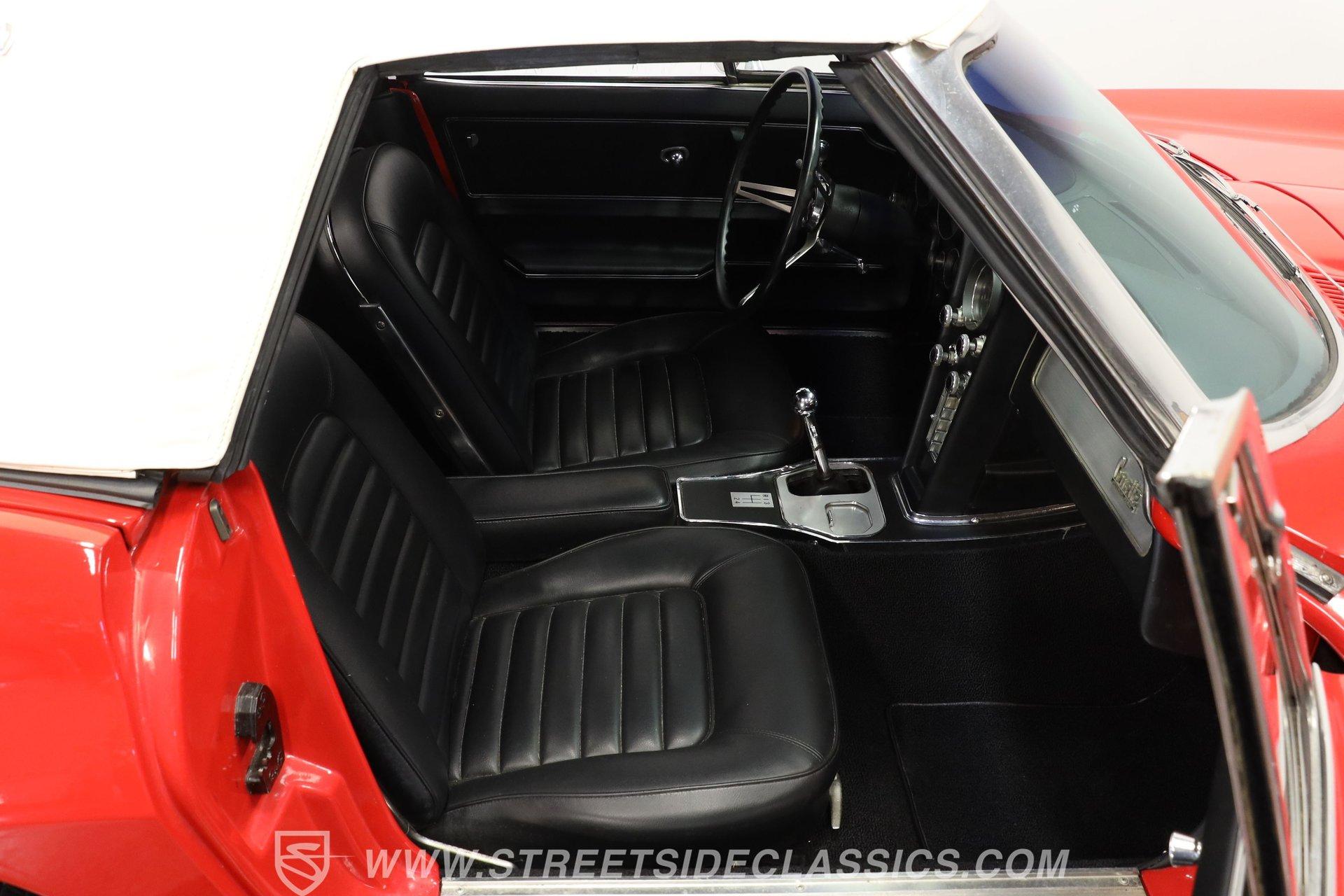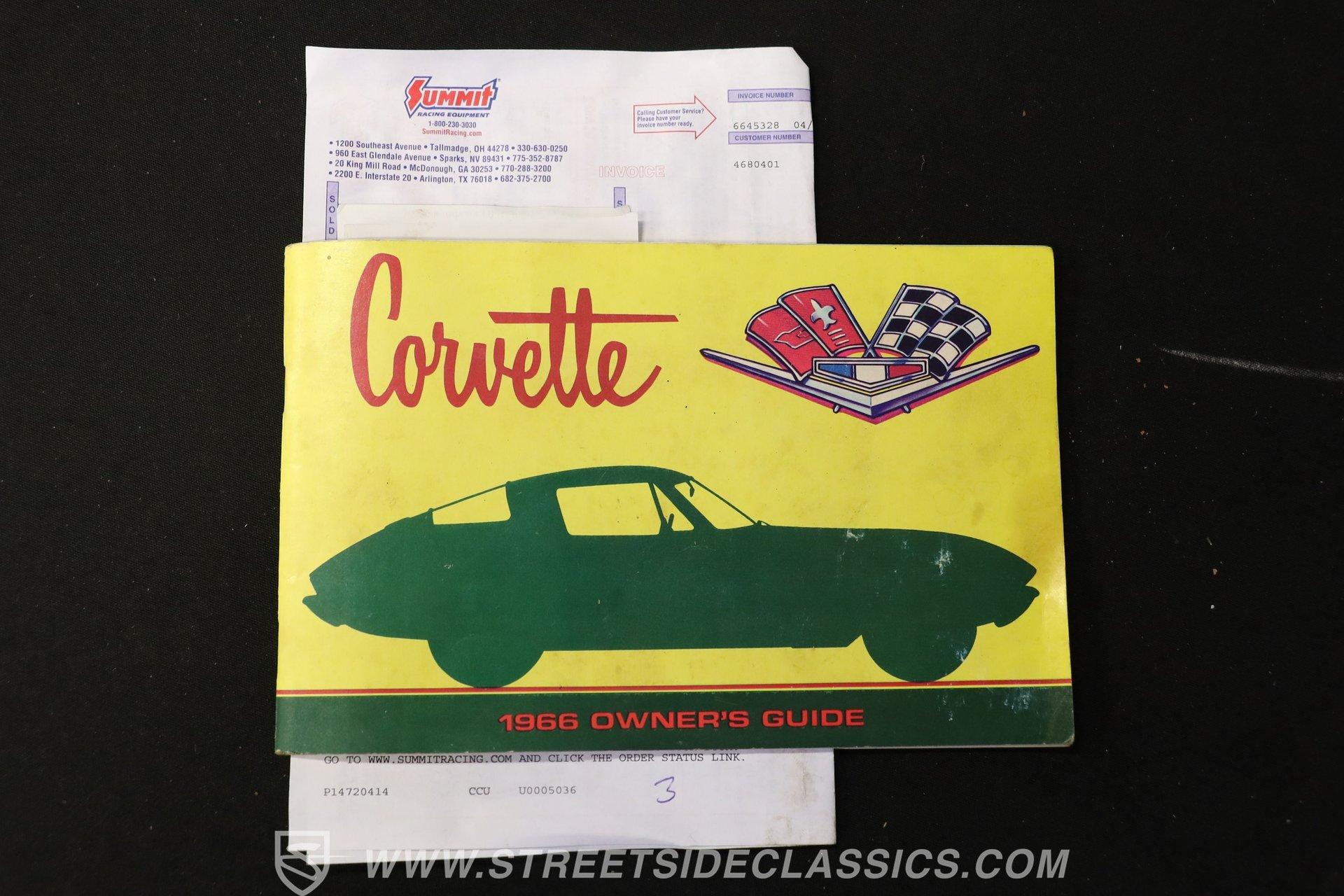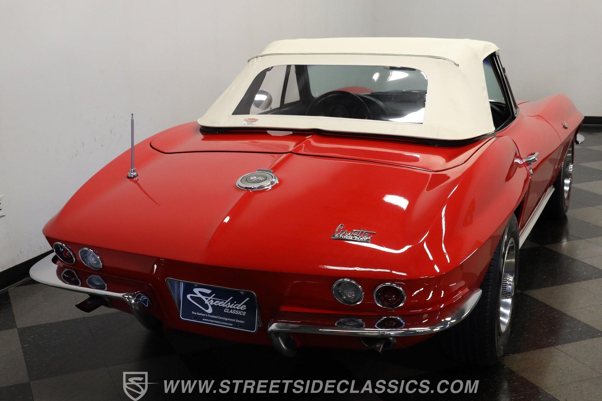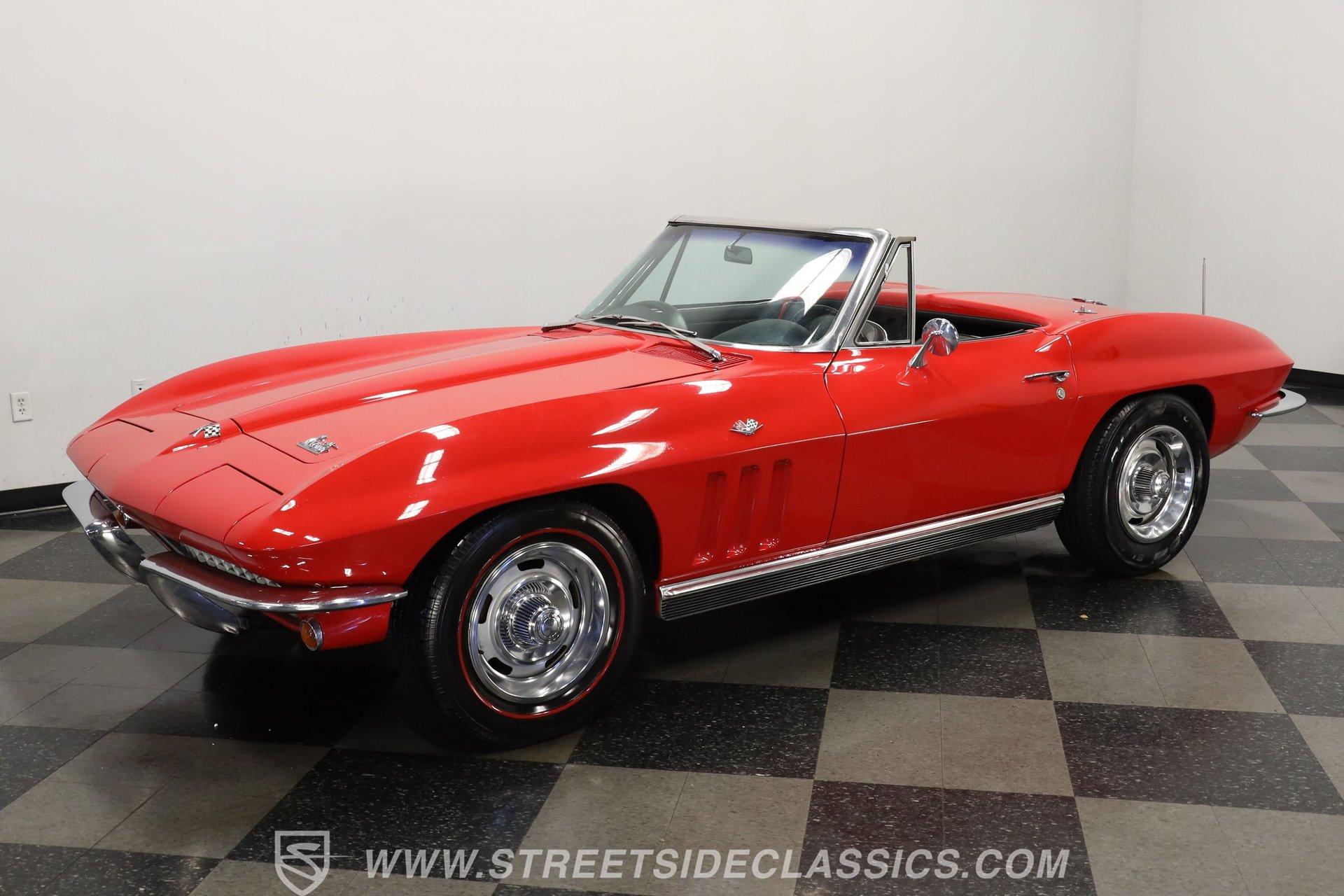 This 1966 Chevrolet Corvette Convertible sports the iconic first-generation color scheme: Red exterior, black interior, and white folding roof. It's a numbers-matching beauty with style. The Corvette's sleek silhouette is accentuated by its glossy paint job, interrupted only by the gleam of chrome bumpers and iconic 15-inch Chevrolet rally wheels. This C2 convertible rolls with authentic '60s style. Inside, the black vinyl interior presents a vibrant contrast to the red exterior. The cockpit features black bucket seats, a floor-mounted shifter, and a center console that epitomizes the sports car ethos of the era. A factory AM/FM Delco radio and a factory clock maintain the period-correct ambiance. The padded dash houses stock gauges, providing all the essential information at a glance. Under the hood, the numbers-matching 327 CI V8 engine stands ready to deliver classic Corvette performance. It's paired with a Muncie 4-speed manual transmission, allowing for full control of the powerband. The engine bay showcases a stock-style presentation with a few select upgrades: an HEI ignition system for improved reliability and a Holley four-barrel carburetor with aluminum intake manifold for optimized fuel delivery. Chrome touches on the air cleaner and chrome valve covers with Chevrolet script add a dash of flair. HIGHLIGHTS: Numbers-matching 327 CI V8 Engine Muncie 4-Speed Manual Transmission Holley 4-Barrel Carburetor HEI Ignition System Dual Exhaust Independent Front Suspension with Control Arms and Coil Springs Transverse Leaf Spring Rear Suspension 4-Wheel Disc Brakes Red Paint White Vinyl Convertible Top with Plastic Rear Window 15-Inch Rally Wheels Chrome Bumpers Black Vinyl Interior with Bucket Seats Center Console Factory AM/FM Delco Radio Stock Steering Wheel Stock Gauges with Clock Floor-Mounted Shifter Owner's Manual This 1966 Chevrolet Corvette Convertible combines classic styling with thoughtful upgrades. The numbers-matching 327 V8 engine, paired with a Muncie 4-speed manual transmission, delivers an authentic driving experience. This C2 Corvette is ready for its next adventure. Call today! Be sure to ask about our services offered; Financing, Vehicle Protection Plan, Insurance, and Transportation to your driveway!