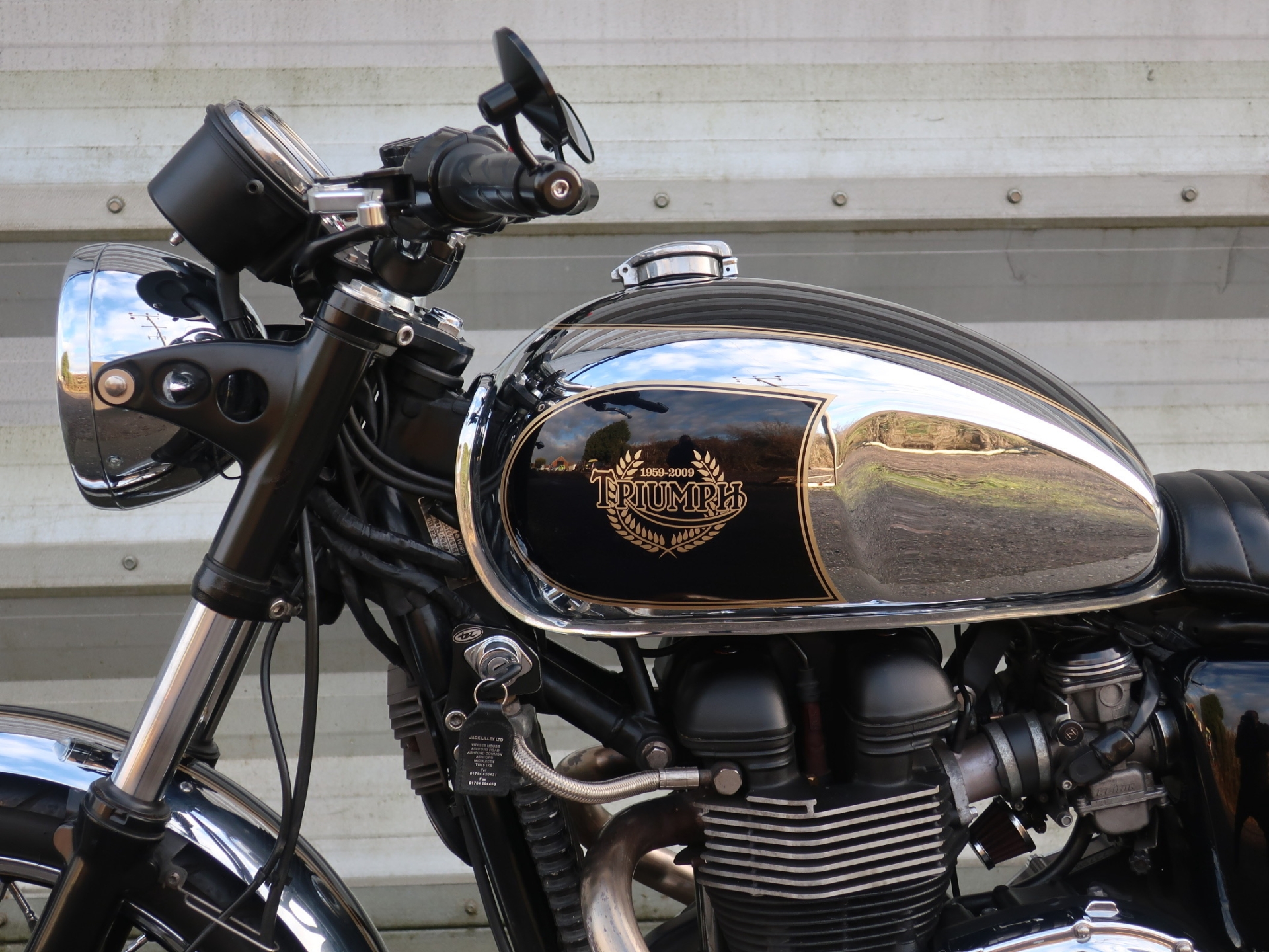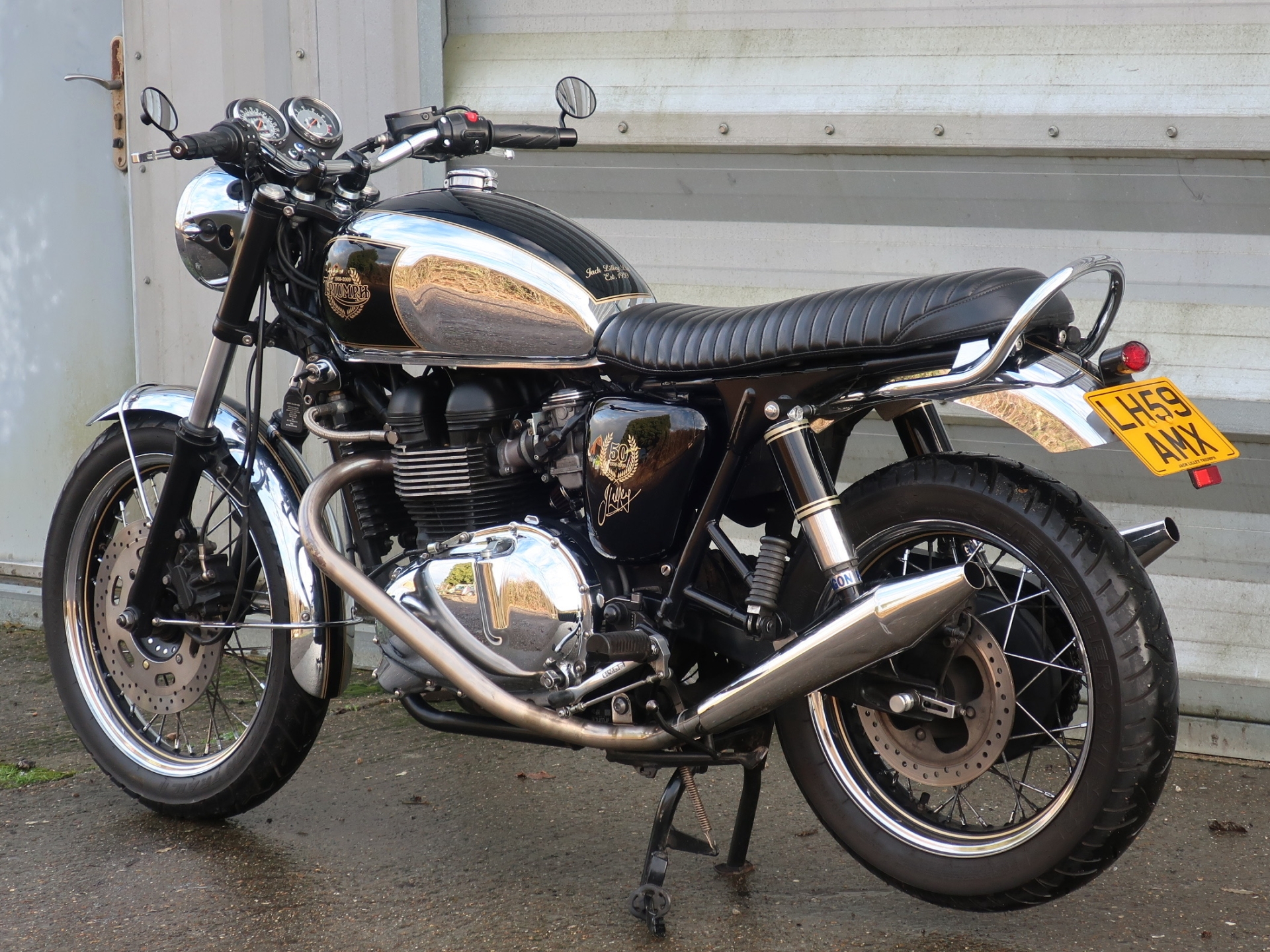 This special edition T100 Bonneville was created to mark the 50th Anniversary of Jack Lilly Motorcycles. Established in 1959 Jack Lilly Ltd had become a respected and well known motorcycle dealer operating in West London and was one of the first ‘Hinckley’ appointed Triumph dealerships in 1991, this 26 year relationship help bring the Triumph brand back to the phenomenal success it has now, with its enviable recored of build quality and reliability.