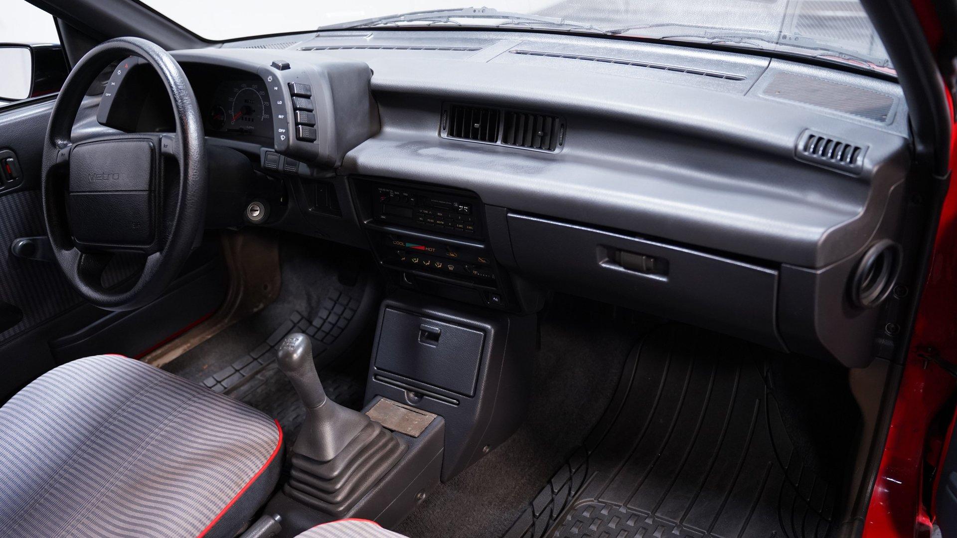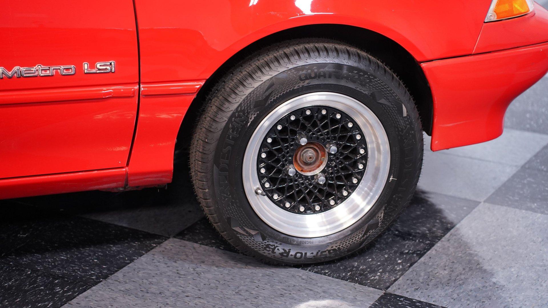 If you've been looking to add a fun, quirky, and rarely seen ride to your collection, there may be no better vehicle that fits that description than this 1991 Geo Metro Convertible. With its drop-top demeanor, engaging manual transmission, and only 69,486 (believed) actual miles on its odometer, this fuel-efficient econocar adds a little bit of driving excitement to any commute. Inside, we find a grey cloth interior that, unlike leather, does not get hot and sticky in the sun. A pair of bucket seats features red pinstriping, while the two-spoke wheel uses no power assistance and delivers accurate, responsive road feel without interference. A four-pod analog gauge cluster is highlighted by an 8,000-rpm tachometer, an option rarely seen on most early 1990s econocars. An AM/FM/Cassette stereo provides the soundtrack, while the functioning air conditioning offers a legitimate comfort feature in an open-air vehicle. Under the hood, we find a naturally-aspirated, Suzuki-built, 1.0-liter single-overhead-cam inline-three-cylinder engine. This frugal firepower delivers 55 horsepower and 58 pound-feet of torque. That power is routed through a tried-and-true five-speed manual transmission before heading out to the front transaxle. While that power may not seem impressive, keep in mind that this Metro checks in at a svelte curb weight of less than 1,800 pounds, so a little bit of power goes a long way. Fuel economy with a five-speed manual has been rated at an impressive 37/45 city/highway mpg. HIGHLIGHTS: 69,486 Believed Actual Miles Rare Convertible Model Manual Top Suzuki Built 1.0 Liter I3 EFI Five Speed Manual Front Wheel Drive Manual Steering Cloth Interior Factory Tachometer Air Conditioning Factory Style Suspension Power Brakes Front Disc Brakes Driver Airbag Maintenance Records Owner's Manual This 1991 Geo Metro Convertible rides on a factory-style suspension, while power brakes featuring a pair of front discs stand ready to scrub off speed at a moment's notice. This Metro also comes with maintenance records and its owner's manual to go along with its low mileage odometer reading, suggesting that there is plenty of life left in this drop-top that ranks high on fuel economy and, more importantly, fun factor, which is a rare combination to find anywhere in the autoverse. If you've been looking for a car that you're unlikely to see anywhere else without having to break your budget every time you fire it up, then this is the one you've been waiting for. Don't wait, call today!