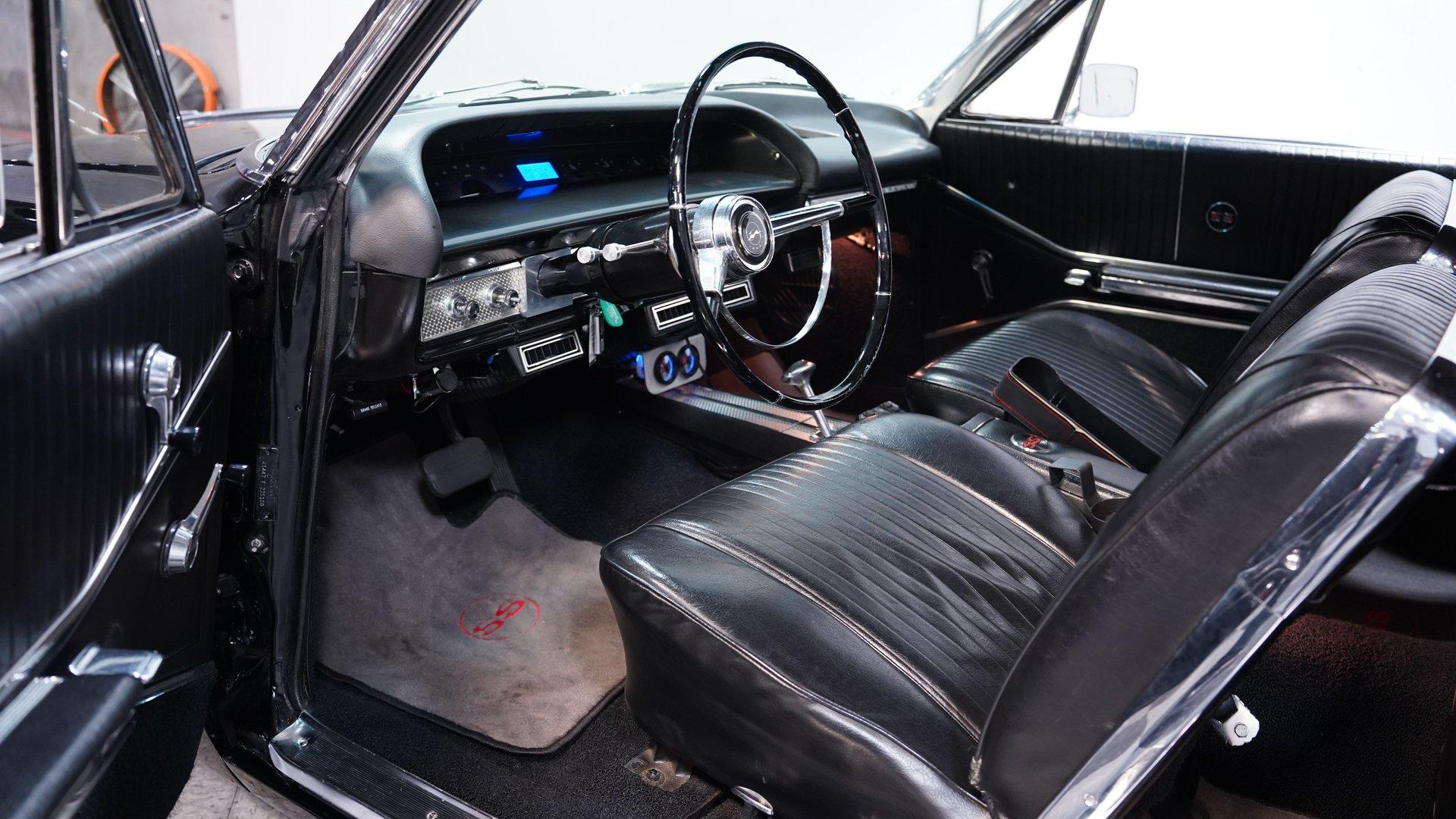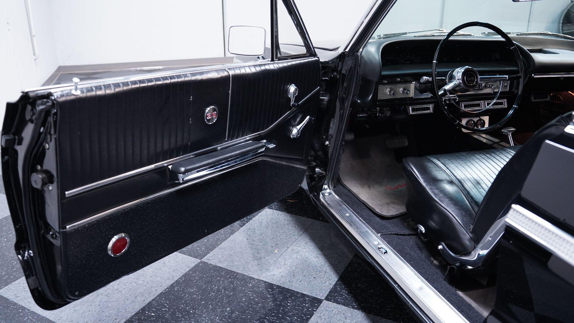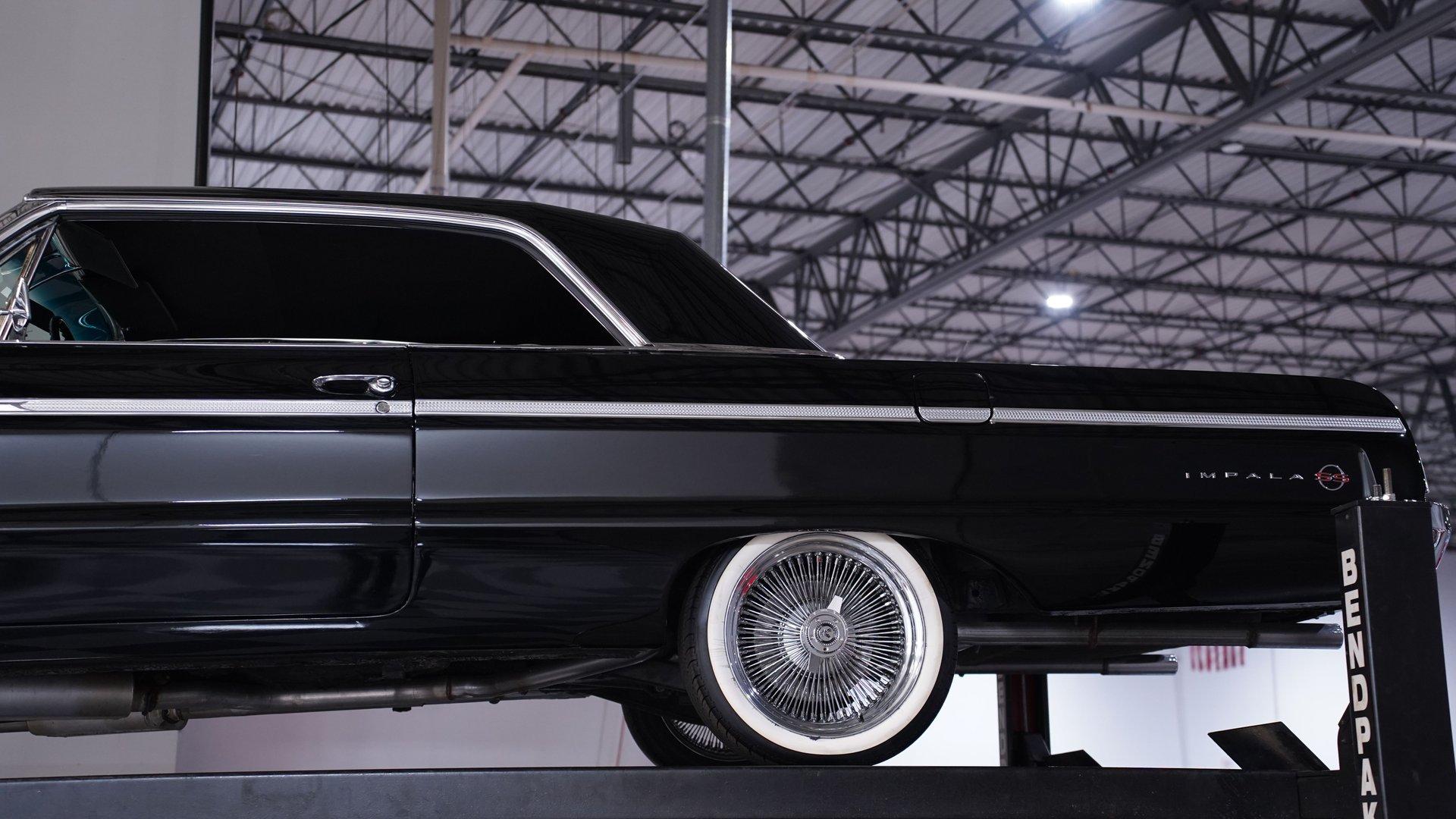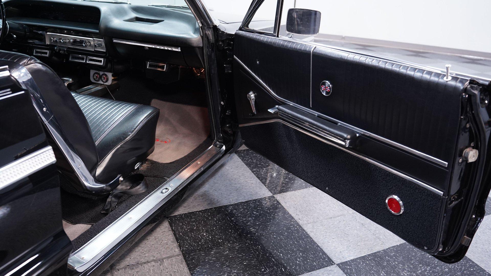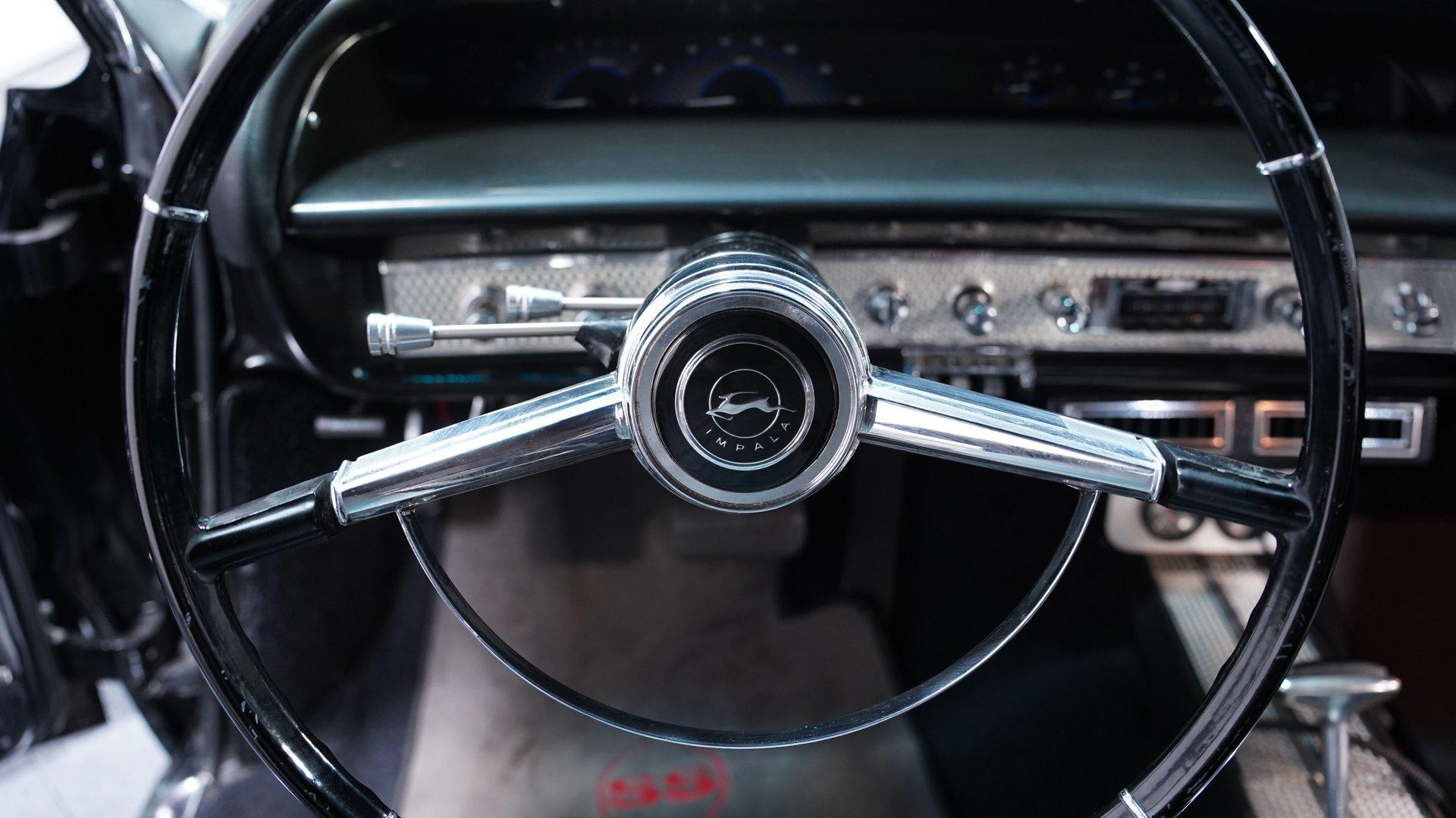 Decked out in high-impact black paint and showing just the right aggressively lowered stance you'd expect, given its bona fide, boulevard royalty status, this 1964 Chevrolet Impala SS makes a strong, positive impression right off the bat. The combination of its slick, well-applied paint with an assortment of chrome that looks great, even for a member of an automotive segment known for striking aesthetics, adds up to outstanding curb appeal. That aforementioned stance, coming as the result of its air suspension, gives the appearance that this classic Chevy is cruising the asphalt even when standing still. Climb inside, and you'll be surrounded by a black vinyl interior that's sure to impress. The front buckets and rear bench seat show only the slightest of wear, and both the headliner and carpeting are well-fitted and have a nice, fresh appearance. You'll find a factory-style steering wheel perched on the column, and the dash area beyond it is also in clean shape, with a full assortment of upgraded gauges in its instrument cluster and a straight, crack-free dash pad spanning its width. When the time comes for some music, there's an AM/FM stereo with an auxiliary port on hand that pairs with a set of Pioneer speakers to fill the cabin with quality sound. Unlike many of its counterparts, this Impala features a strong driving condition that will actually make you look forward to getting behind the wheel. It's powered by a 350-cubic-inch crate engine that's running at the top of its game and holds court in a compartment filled with enough chrome components to satisfy even the most ardent fan of striking engine bays. The V8 is outfitted with FiTech electronic fuel-injection that sits on top of a chrome Edelbrock Performer EPS intake manifold and pairs with an automatic four-speed 700R4 transmission with an overdrive gear to lower RPMs at highway speeds. With its long tube headers leading to a dual exhaust that terminates in a pair of Flowmaster mufflers, this Chevy sounds just as good as it runs. Power steering makes this low-slung cruiser easy to maneuver, while power disc brakes at all four corners provide fade-resistant stopping ability. HIGHLIGHTS 350-CUBIC-INCH CRATE V8 FITECH ELECTRONIC FUEL INJECTION CHROME EDELBROCK PERFORMER EPS INTAKE MANIFOLD 4-SPEED AUTOMATIC 700R4 TRANSMISSION WITH OVERDRIVE UPGRADED ALUMINUM RADIATOR WITH ELECTRIC FAN LONG TUBE HEADERS DUAL EXHAUST, WITH FLOWMASTER MUFFLERS POWER STEERING FOUR WHEEL POWER DISC BRAKES OUTSTANDING ARRAY OF CHROME COMPONENTS BENEATH THE HOOD ADJUSTABLE AIR SUSPENSION HIGH IMPACT BLACK PAINT 17" LUXOR WIRE WHEELS BLACK VINYL UPHOLSTERY BUCKET SEATS CENTER CONSOLE AIR CONDITIONING (CURRENTLY INOPERABLE) Riding on a set of ultra-sharp 17" Luxor wire wheels that are wrapped with low-profile white wall tires still showing plenty of tread, this 1964 Chevrolet Impala SS is sure to attract plenty of attention wherever it goes, and it would look fantastic in any garage. Call today!