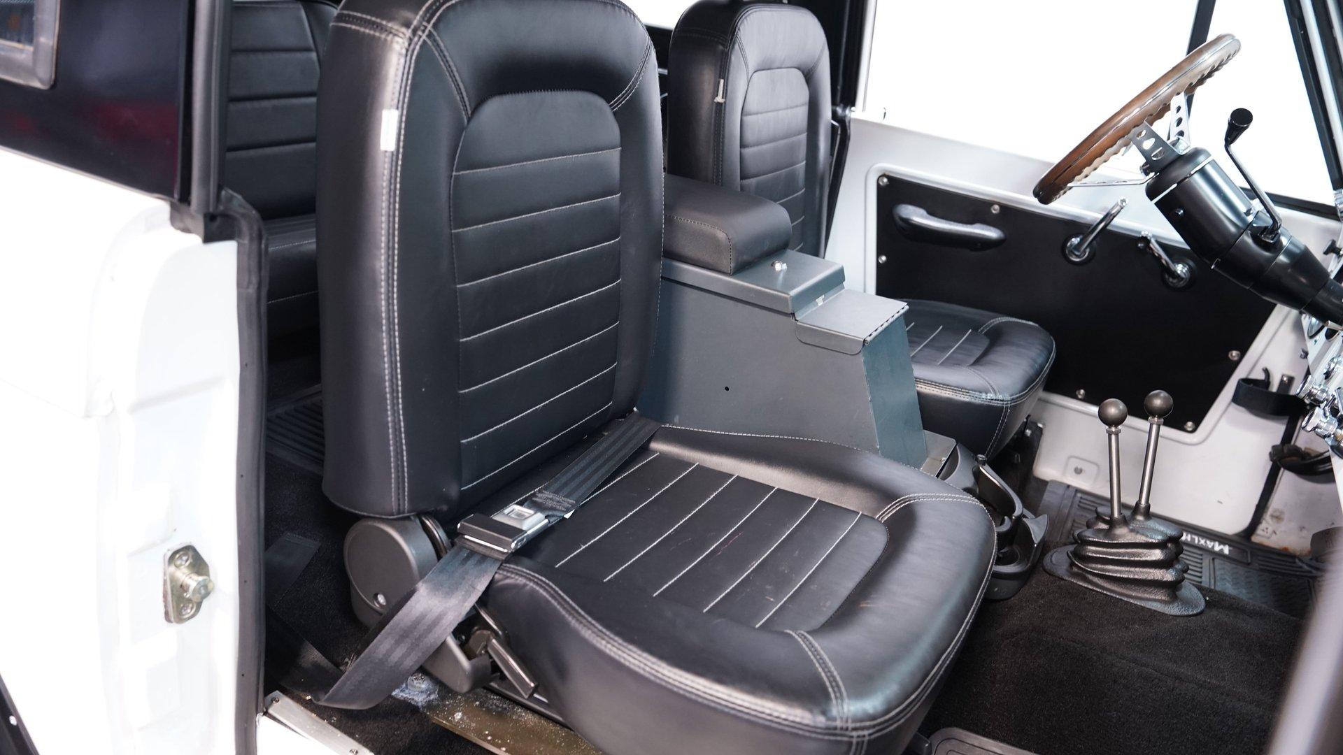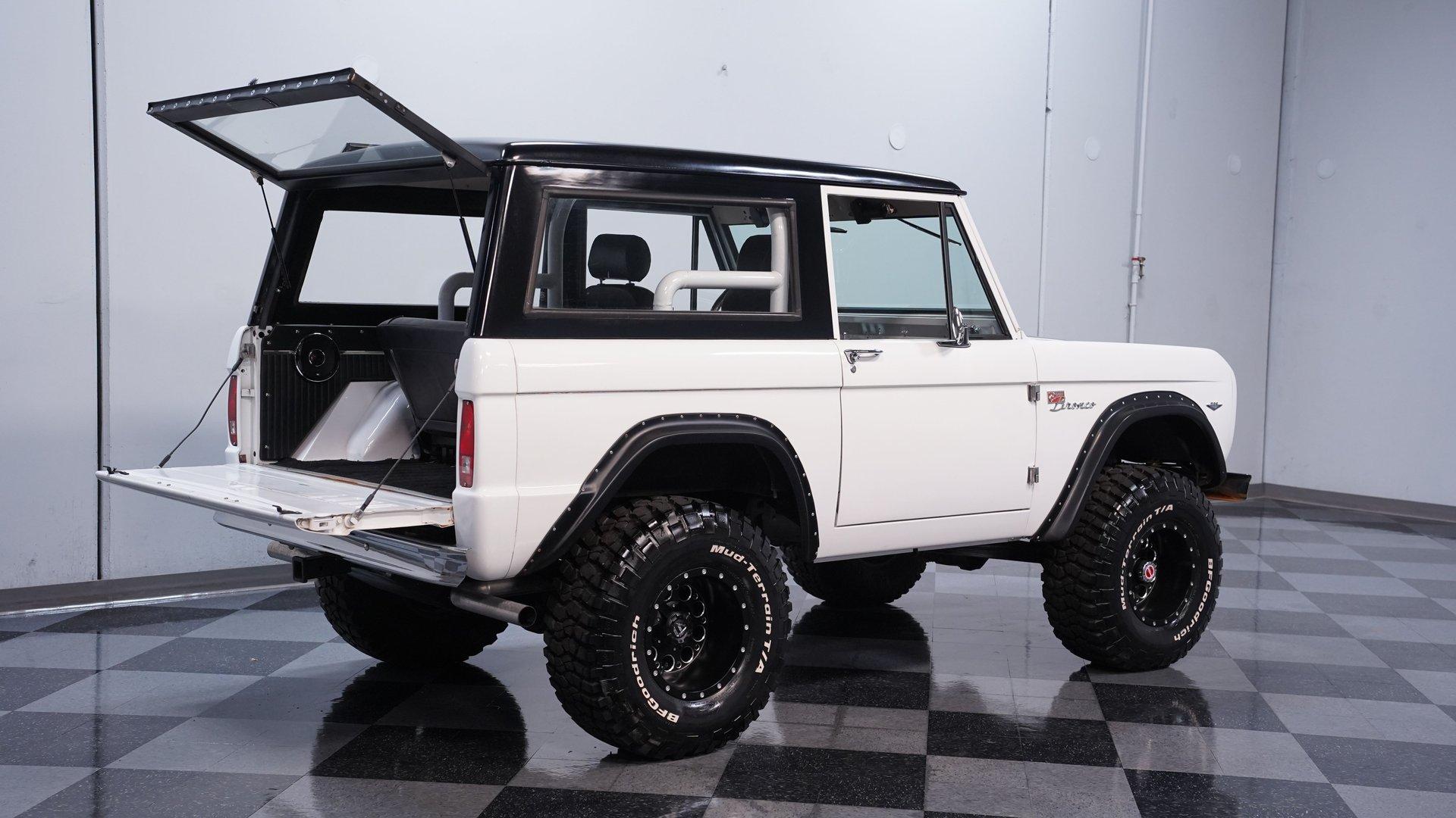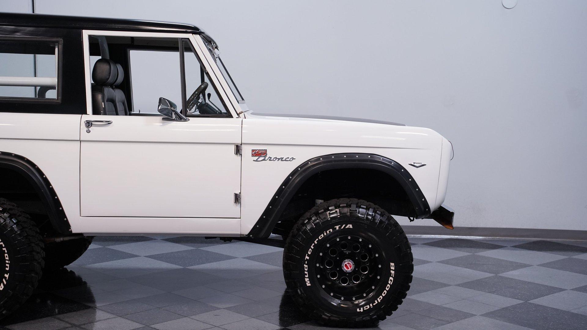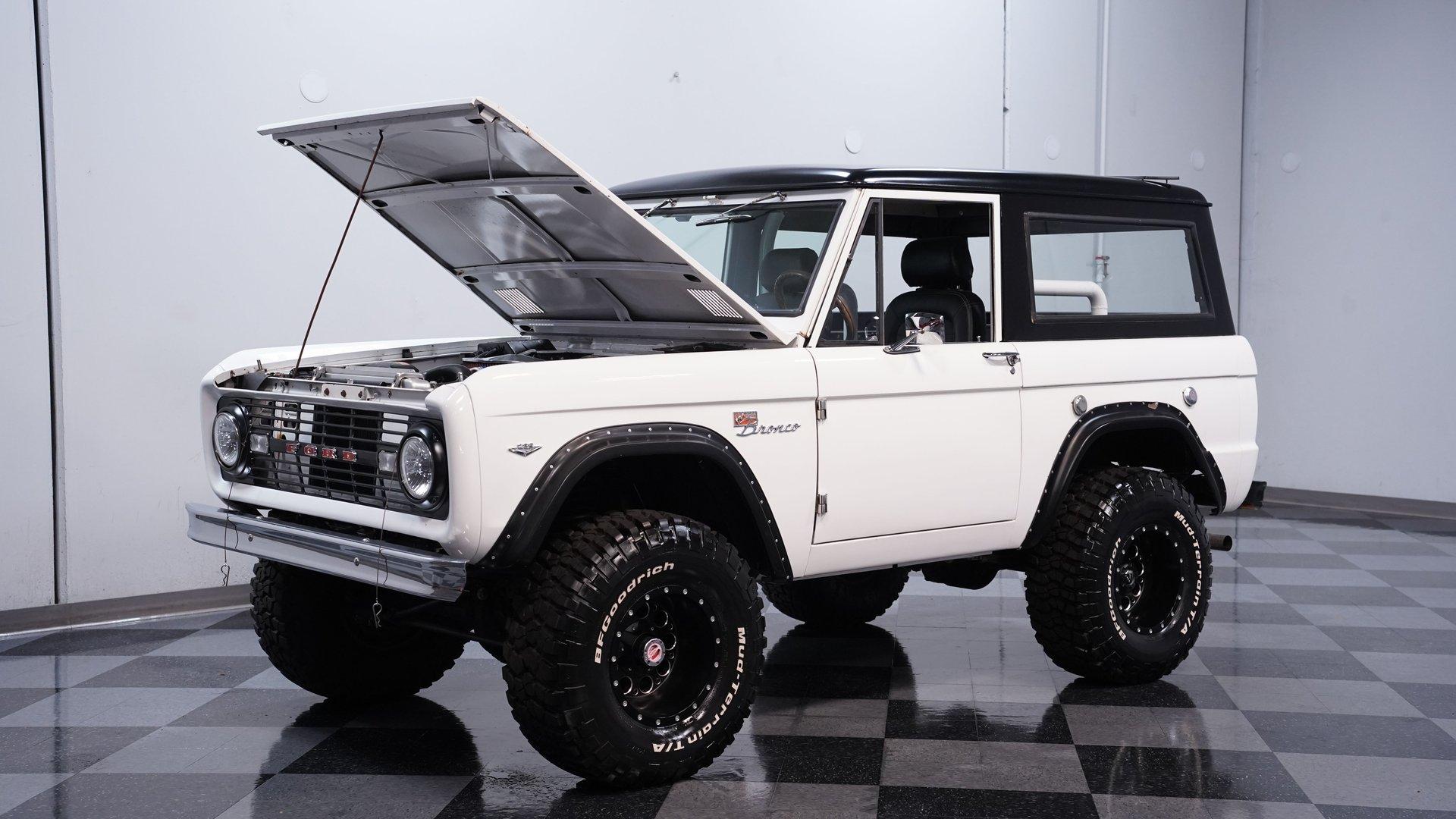 When the first-generation Bronco was released, it bridged an obvious gap in the automotive landscape, combining the rugged functionality that SUV buyers put such a premium on with more comfort and roominess, as well as better everyday drivability than the competition currently offered. Dressed in clean white paint and showing evidence of a thorough restoration, this 1967 Ford Bronco is an outstanding example of that pivotal class of vehicles. Sporting a tastefully elevated stance that enhances ground clearance without sacrificing maneuverability, it's a very sharp ride, with a well-fitted black hardtop that provides an effective contrast while also offering protection from the elements, and an assortment of unblemished chrome trim. The interior really shows nicely, with black vinyl upholstery in both front and back that looks clean, and an expanse of carpeting in matching condition. The sizable center console features ample lockable storage space, while positioning a pair of cupholders within easy reach, and farther forward, you'll find the distinctive, "twin-stick" levers that unleashes this vintage Ford's four-wheel-drive agility. A sharp woodgrain steering wheel is perched on the tilting column, and the dash area beyond it is another high point for this classic, with its freshly painted white steel surfaces and a set of clear, easily readable gauges in the instrument cluster. Whether you find yourself on the asphalt or on more unforgiving ground, there's also a retro-style stereo on hand with Bluetooth connectivity to provide your own personal soundtrack. If you're searching for a classic SUV that doesn't sacrifice drivability, then this Bronco should definitely move to the top of your "must see" list. It's powered by a 289-cubic-inch V8 that has been outfitted with an MSD Atomic electronic fuel injection system to enhance its reliability and all-weather performance. You'll find a time-tested Dana 44 axle up front to accompany the rugged Ford 9" rear axle, while James Duff shocks at all four corners equip it with a versatile ride that's equally at home both on and off the asphalt. The automatic four-speed transmission is also on point, shifting with slip-free precision to complete a drivetrain that's in top form. HIGHLIGHTS 289-CUBIC-INCH V8 MSD ATOMIC ELECTRONIC FUEL INJECTION 4-SPEED AUTOMATIC OVERDRIVE TRANSMISSION 4-WHEEL DRIVE DUAL EXHAUST, WITH XLERATOR MUFFLERS POWER STEERING POWER BRAKES, WITH DISCS UP FRONT DANA 44 FRONT AXLE TWIN STICK TRANSFER CASE PRISTINE WHITE PAINT TASTEFULLY ELEVATED STANCE BLACK VINYL UPHOLSTERY BUCKET SEATS CENTER CONSOLE AM/FM STEREO WITH AN AUXILIARY PORT AND BLUETOOTH CONNECTIVITY AIR CONDITIONING (CURRENTLY INOPERABLE) A great mix of classic aesthetics and drivability, this 1967 Ford Bronco rolls on a set of 33"x12.50R15 wheels that are wrapped with BF Goodrich All-Terrain tires still showing plenty of tread. It would be a strong match for the collector searching for a rugged, road-ready SUV still in possession of its authentic, vintage appearance. Call today!