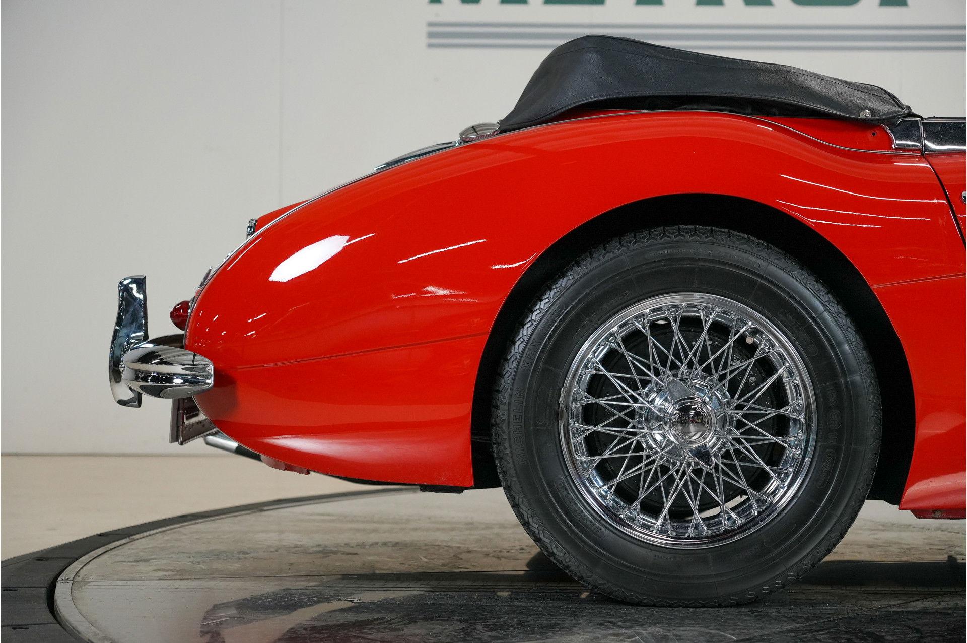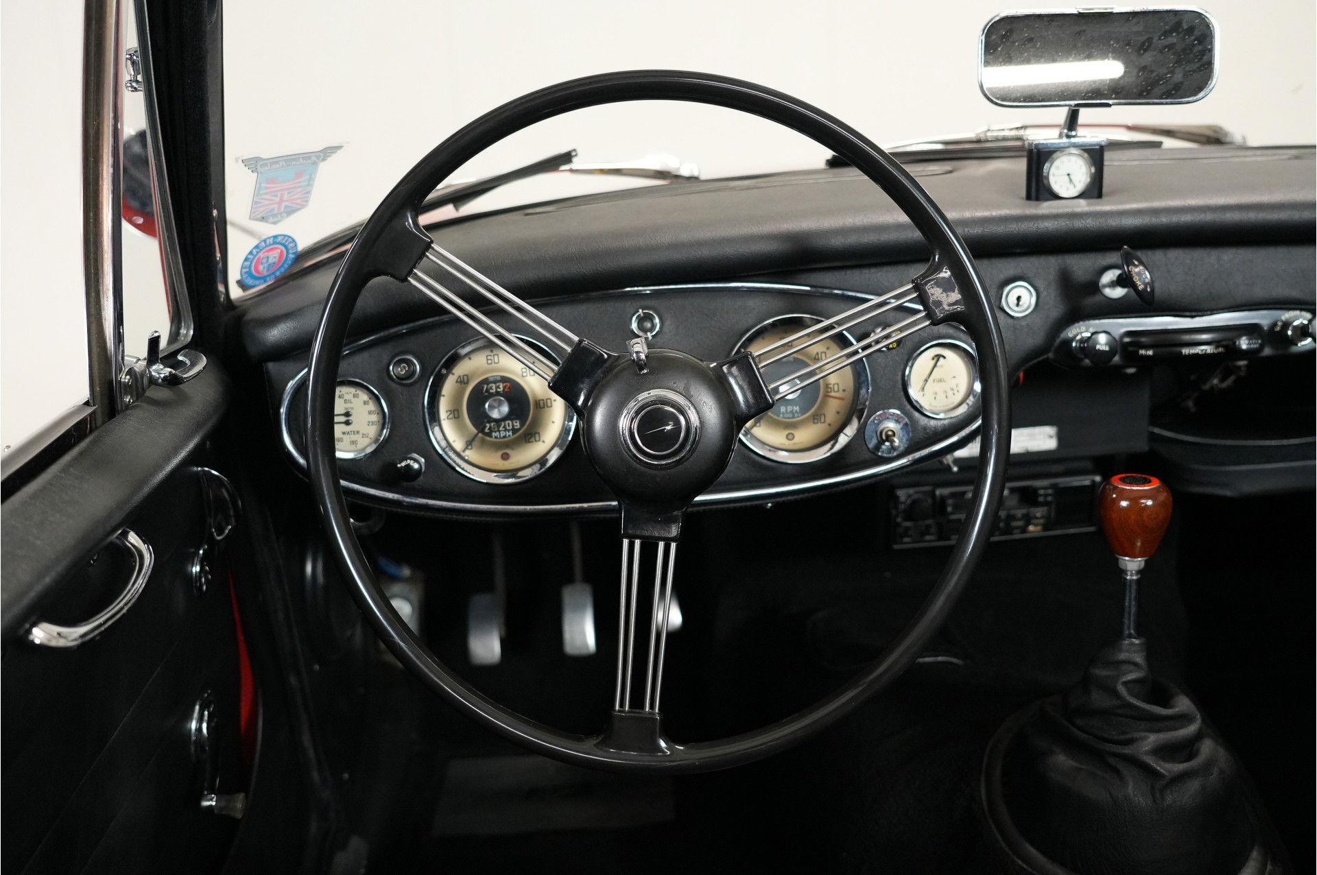 The engine, gearbox, and steering have also been overhauled, and the Healey runs smoothly and has plenty of pulling power. It's a 2A model, meaning the dashboard is an older version and therefore nicer than the MKIII's. The seams fit perfectly. The car already has crank windows, which makes it much easier to put the roof on. It has a vinyl roof that's still in good condition. The Healey runs on chrome wire wheels, which gives it a touch of class. Furthermore, the price is exceptionally competitive for anyone looking for the perfect MK2A Healey!