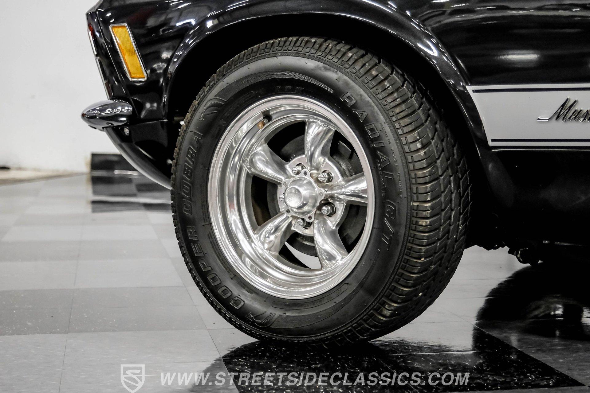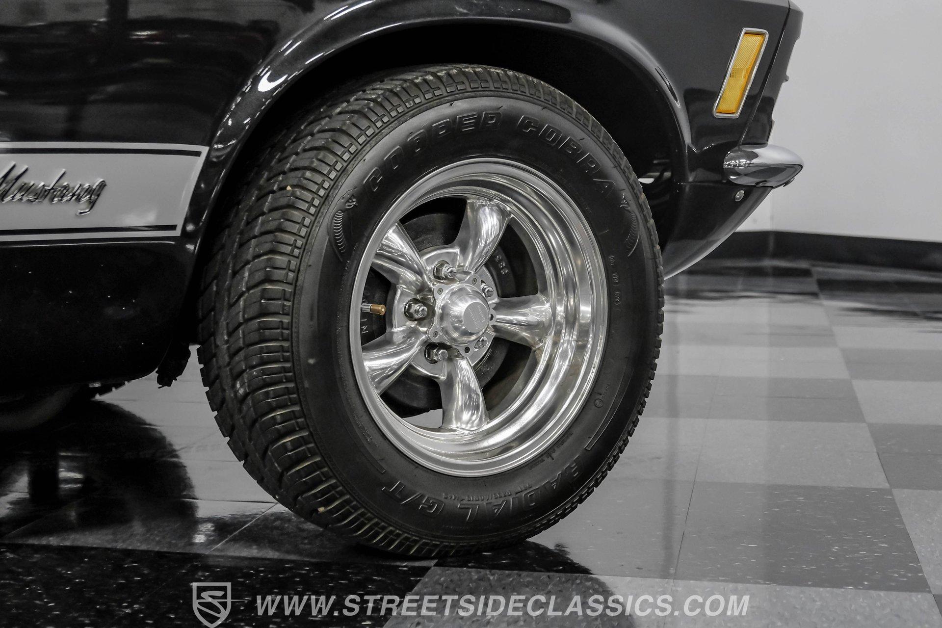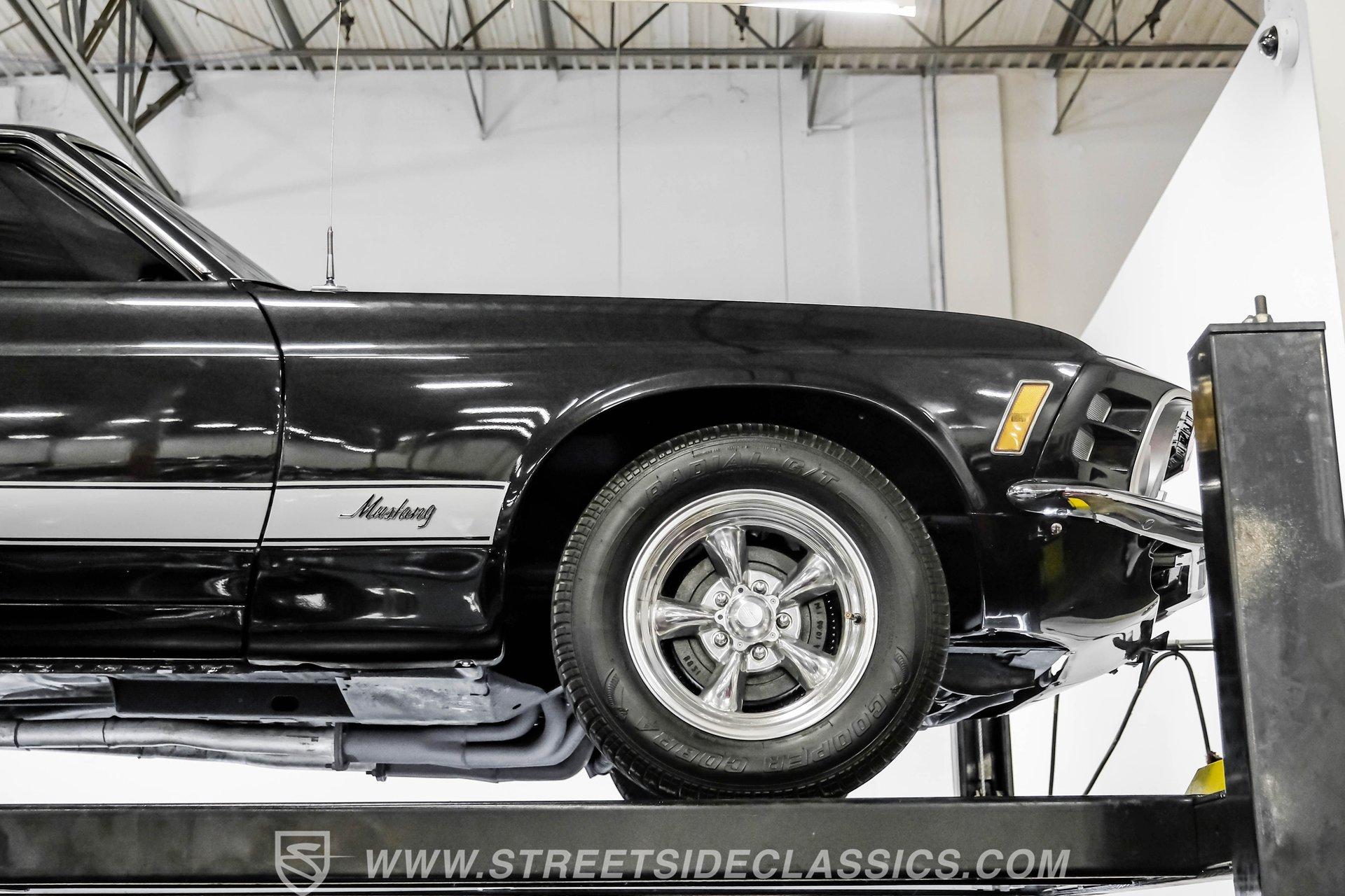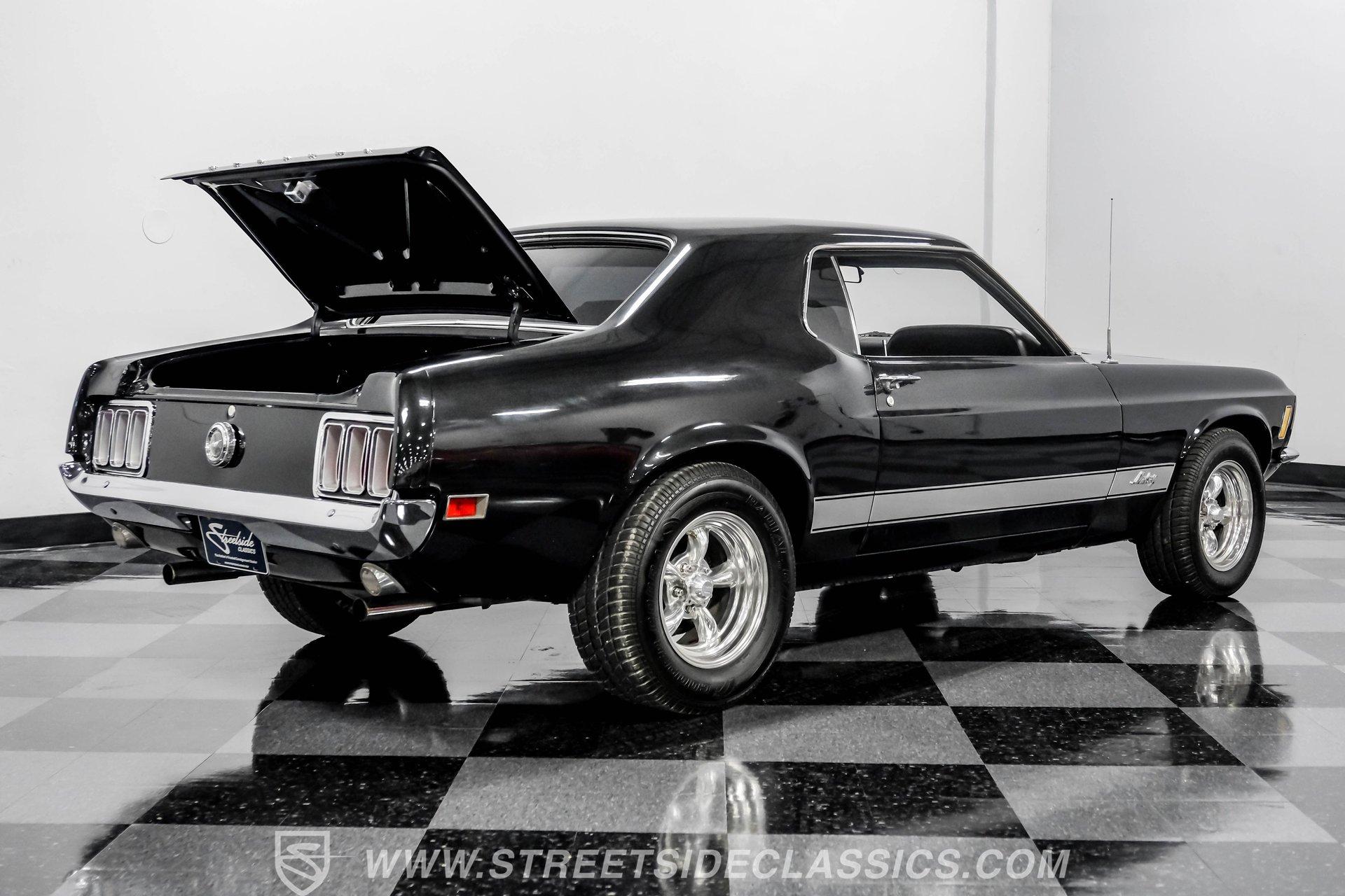 Some cars are more than transportation-they're icons. The 1970 Ford Mustang captures the spirit of classic American muscle, turning heads with its timeless style and delivering an unforgettable driving experience. If you're looking for a piece of automotive history that combines character, sound, and pure enjoyment, this Mustang is it. Finished in Black Metallic with silver painted stripes and accented by bright chrome bumpers, this Mustang is a true standout. Step inside and you will find a classic black interior that blends vintage charm with modern touches. The factory style black vinyl bucket seats offer comfort and style, while the floor shifter and aftermarket center console add a sporty edge. The Grant steering wheel invites you to take control, and the Planet Audio AM/FM/CD/BT radio ensures your favorite tunes are always at your fingertips. Black carpets and a fresh dash pad complete the inviting cockpit, making every drive a pleasure. Under the hood, this Mustang packs a punch with a 302 V8 engine topped by a Holley four-barrel carburetor and an Edelbrock intake. The engine bay is organized and features plenty of chrome accents for a show-ready look. Paired with a smooth-shifting three speed automatic transmission, aluminum radiator, and Hooker headers, this setup offers both reliability and performance. The power flows through to factory-style axles and American Racing wheels, delivering a classic muscle car feel that is sure to satisfy enthusiasts and casual drivers alike. HIGHLIGHTS 302 V8 Engine with Holley 4-Barrel Carburetor Edelbrock Intake and Aluminum Radiator Three Speed Automatic Transmission Full Black Metallic Paint with Silver Stripes Chrome Bumpers And Brightwork American Racing 15" Wheels Power Drum Brakes Front And Rear Factory Style Black Vinyl Bucket Seats Aftermarket Bluetooth Audio System Clean And Organized Engine Bay With Chrome Accents Financing Available Vehicle Protection Plans Available Worldwide Shipping This 1970 Ford Mustang is a standout blend of classic style, modern upgrades, and undeniable presence. Whether you are looking to relive the glory days or start new adventures, this Mustang offers a rare opportunity to own a true piece of American history. Call, email, or come visit our showroom today!