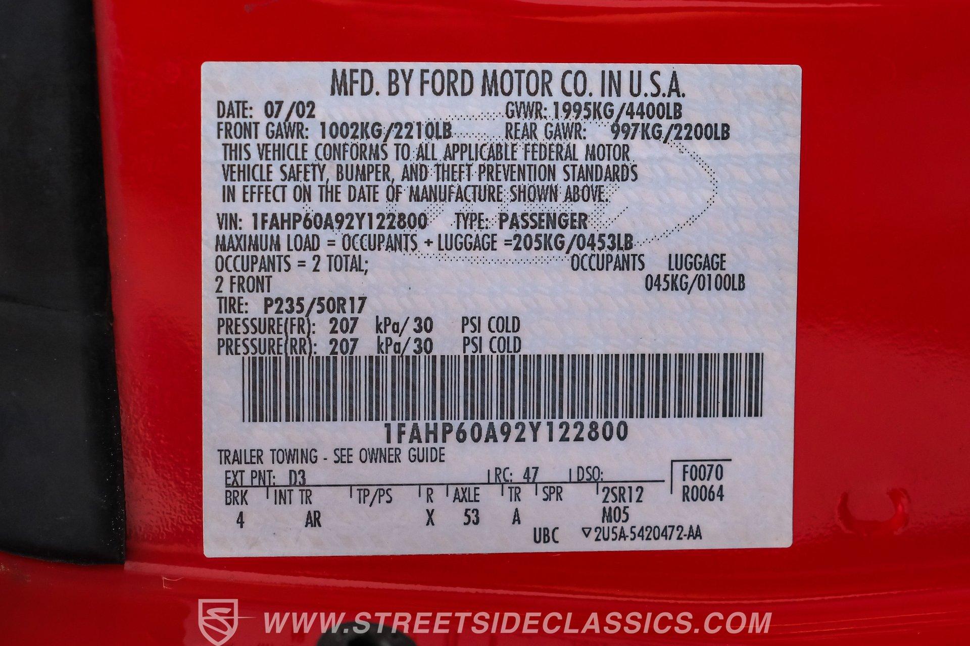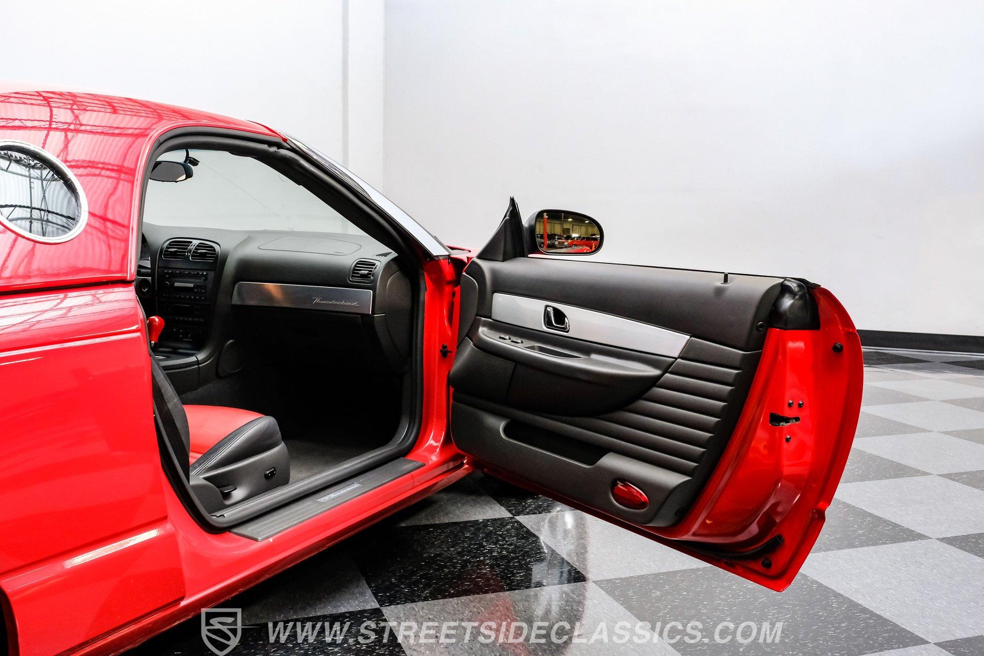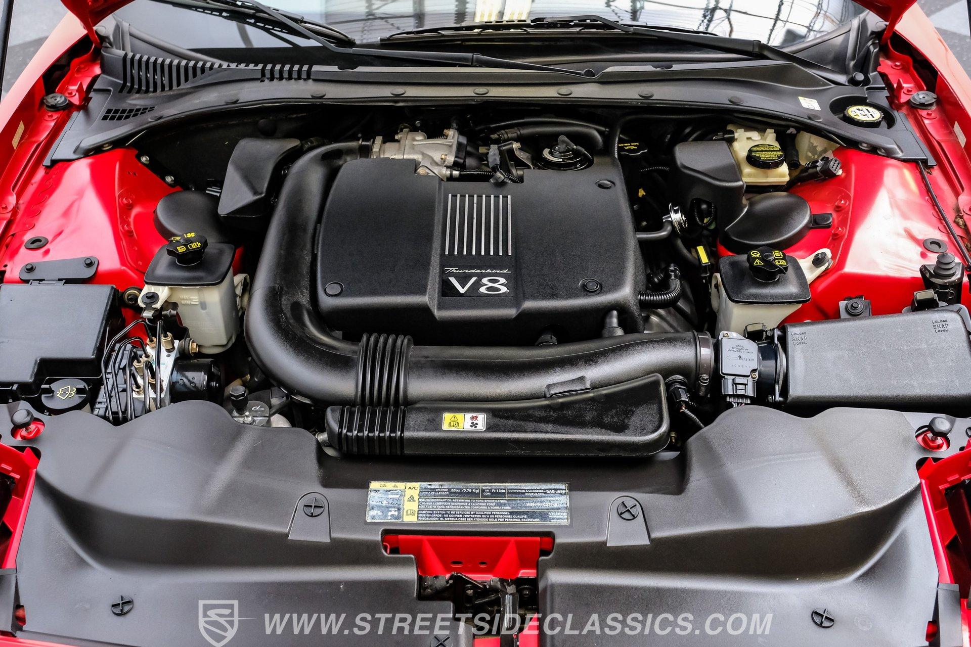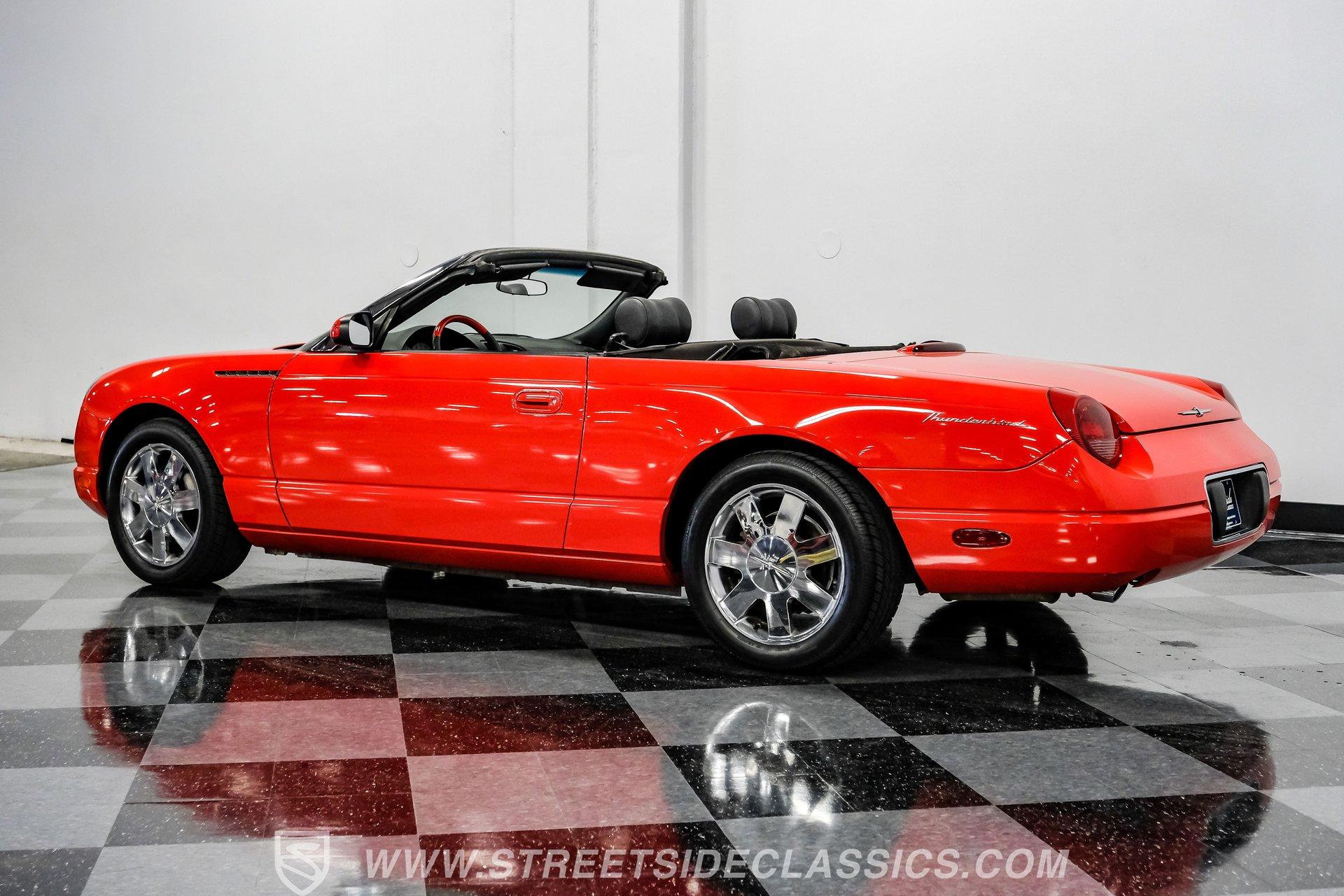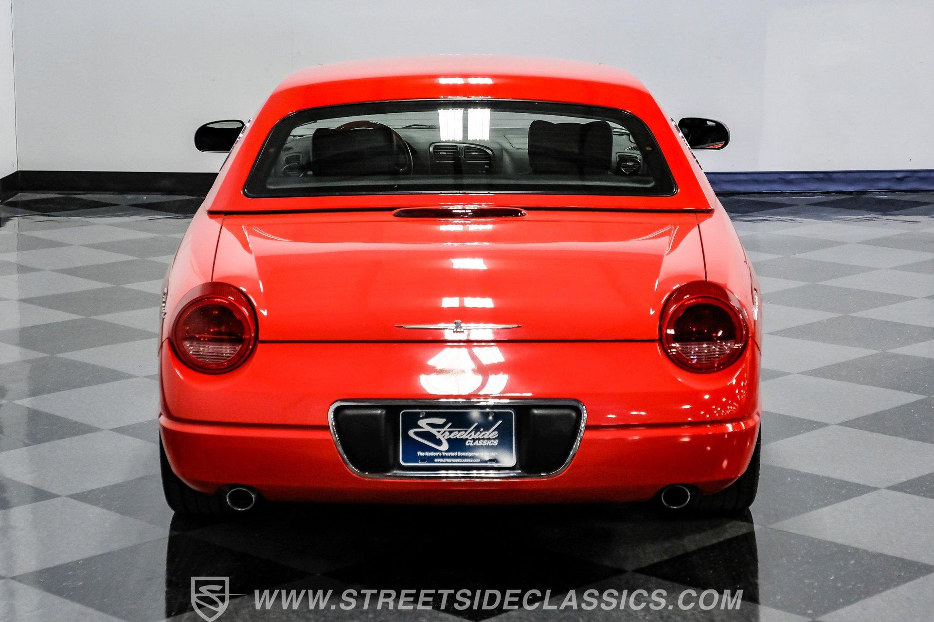 Cool style, luxurious features and proper V8 power are all what make this 2002 Ford Thunderbird awesome. The fact that this car has only been driven 46,496 miles from new is just the cherry on top of this beautiful T-Bird. The retro-cool look of this first model-year of the final generation Thunderbird has a timeless sense of style. Ford really took the time to integrate the best elements of the first-generation Thunderbird into this design. It can be seen in the long profile, hood scoop, subtle fender vents and afterburner-style tail lights. There are even great mirror-like brightwork elements, like the grille and the handsome chrome seven-spoke factory alloy wheels. This generation Thunderbird, finished in nostalgically in the highly desirable Torch Red with factory optional "full interior color accent package" two-tone Red and Black interior, features automatic A/C climate control allowing you to drive comfortably with the top down nearly all year round. This car was created to be a terrific cruiser loaded with power windows, power locks, keyless entry/alarm, dual front airbags, a premium AM/FM/6-CD changer stereo and cruise control. The leather seats feel comfy and have a well-respected style with the kind of use that goes with the low mileage. The power driver's seat gets you in the right position to really see nice details such as the steering wheel's classic turquoise streak in the Thunderbird logo that is coordinated with the needles on the gauges. While the looks of the car are meant to be retro-cool, the engine bay is a pure modern motor. It is a fuel-injected DOHC 3.9-liter V8 that fires up readily, idles smoothly and delivers plenty of power when you want it, making it the ideal smooth cruiser from day one. You will love using this Thunderbird to drive near or far with its smooth five-speed automatic transmission, power steering, four-wheel disc brakes and fully-independent suspension. HIGHLIGHTS: Only 46,946 miles from new Fuel-injected DOHC 3.9-liter V8 Automatic transmission Removable hardtop and folding soft top Hardtop Storge Cart Classic Torch Red Paint Desirable "Full Interior Color Accent Package" Red and Black Interior Air conditioning Heated/Power seats Power windows Disc brakes Window Sticker Factory AM/FM Stereo with Six CD Changer This may look like a vintage car, but this 2002 Ford Thunderbird with just 46,946 miles certainly has modern moves. Call today!